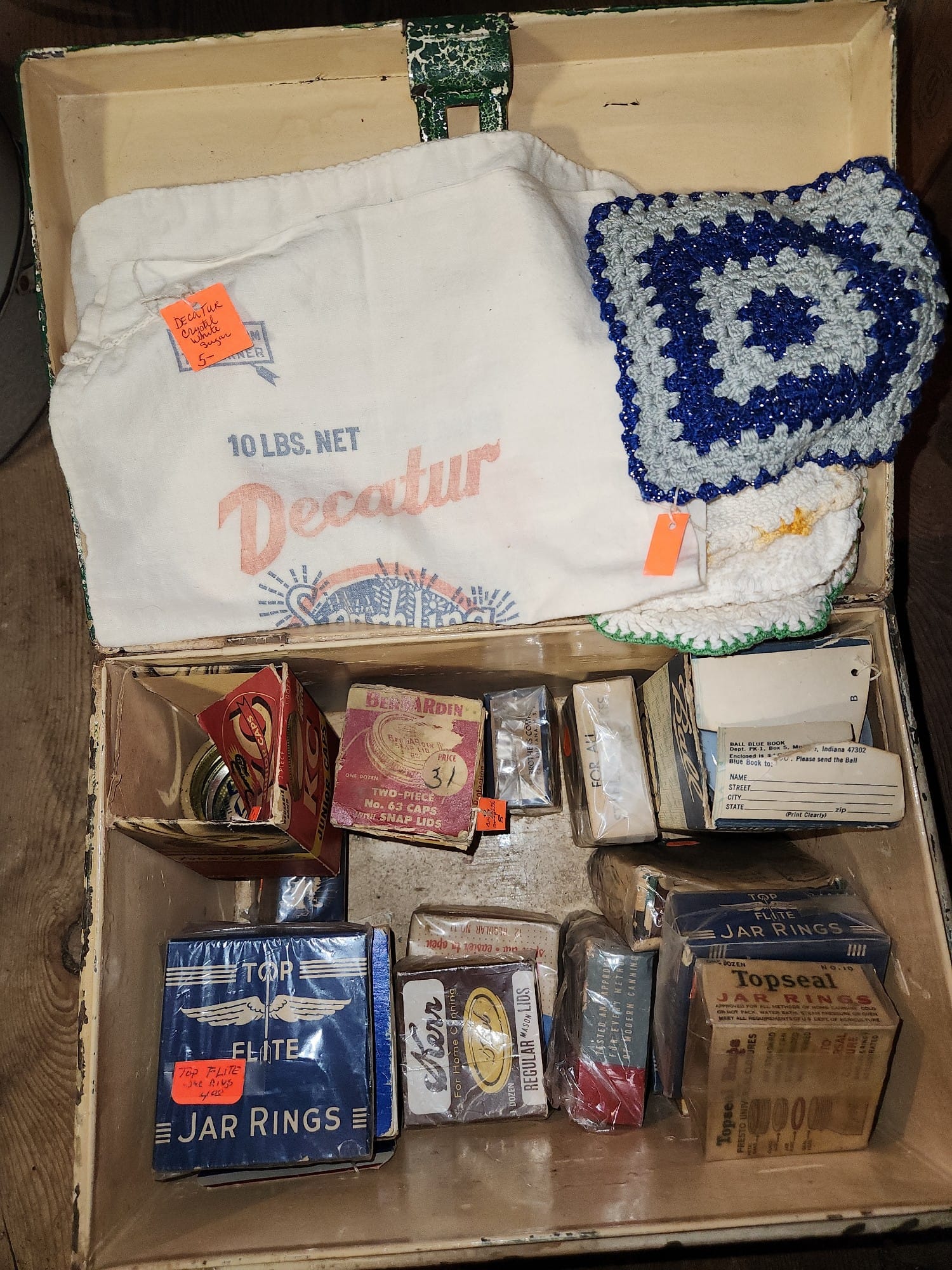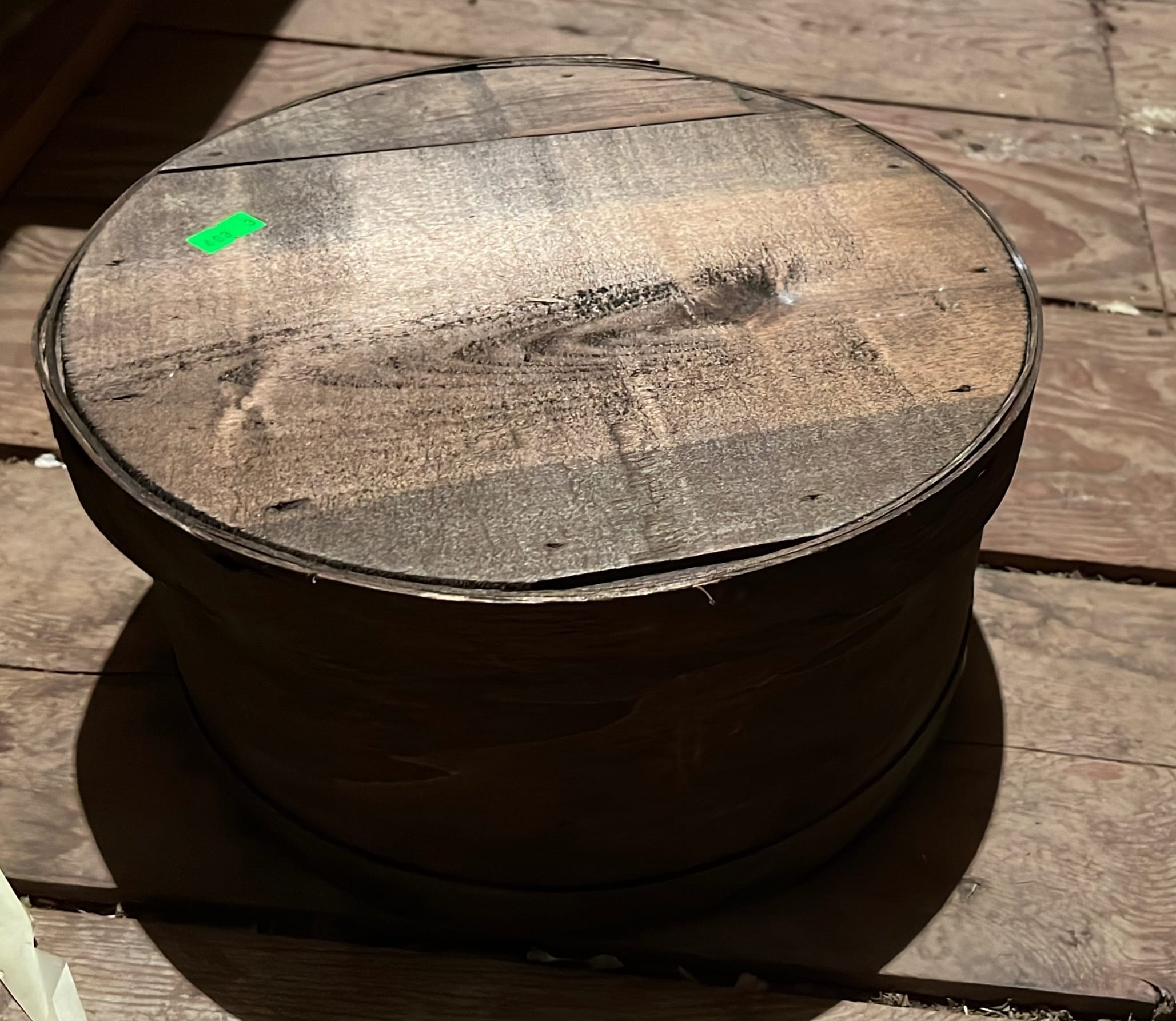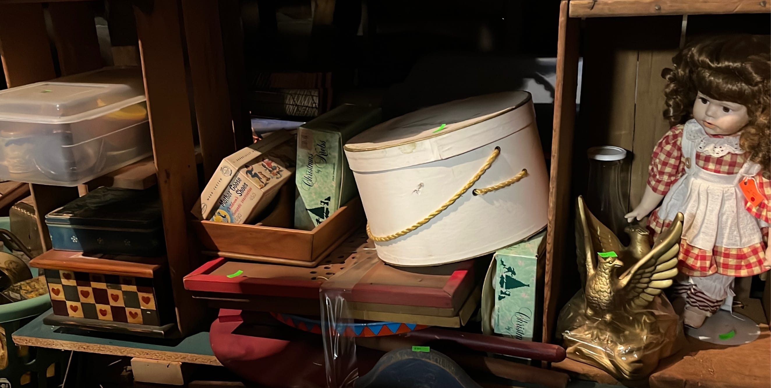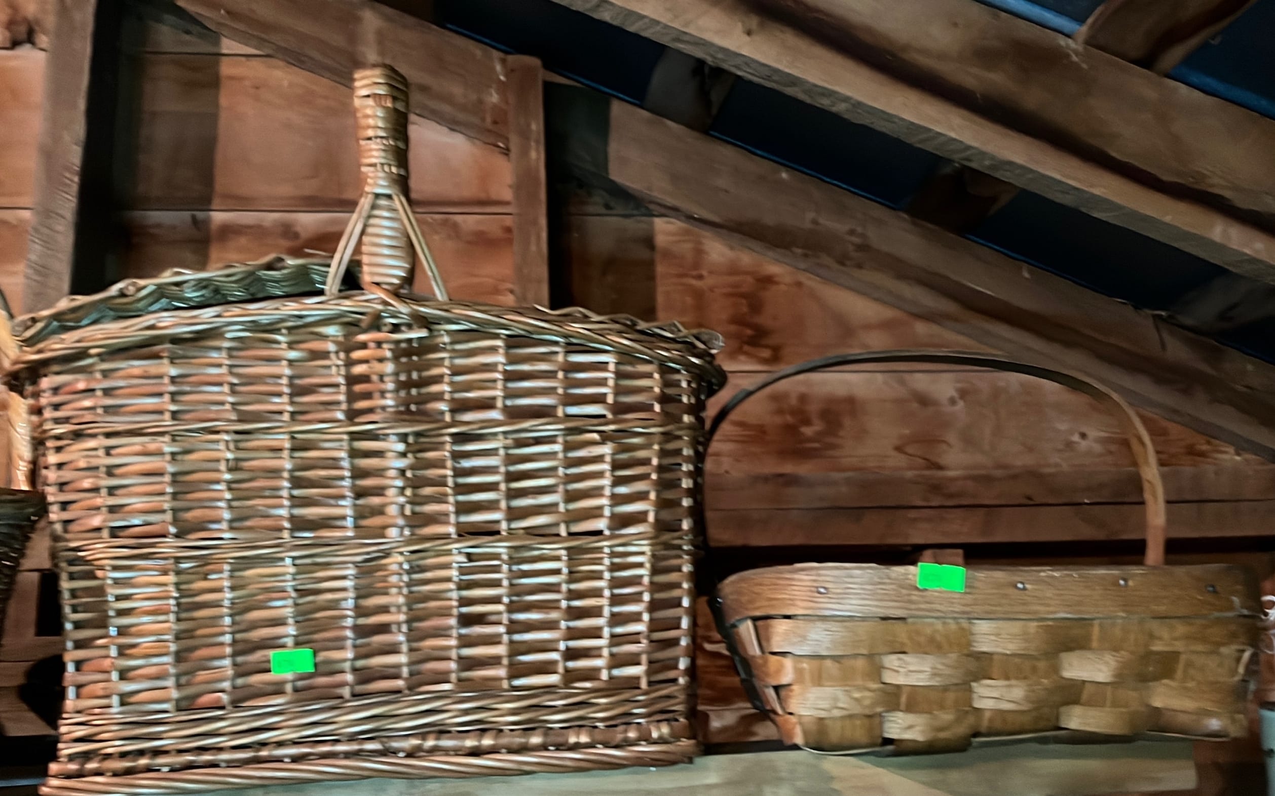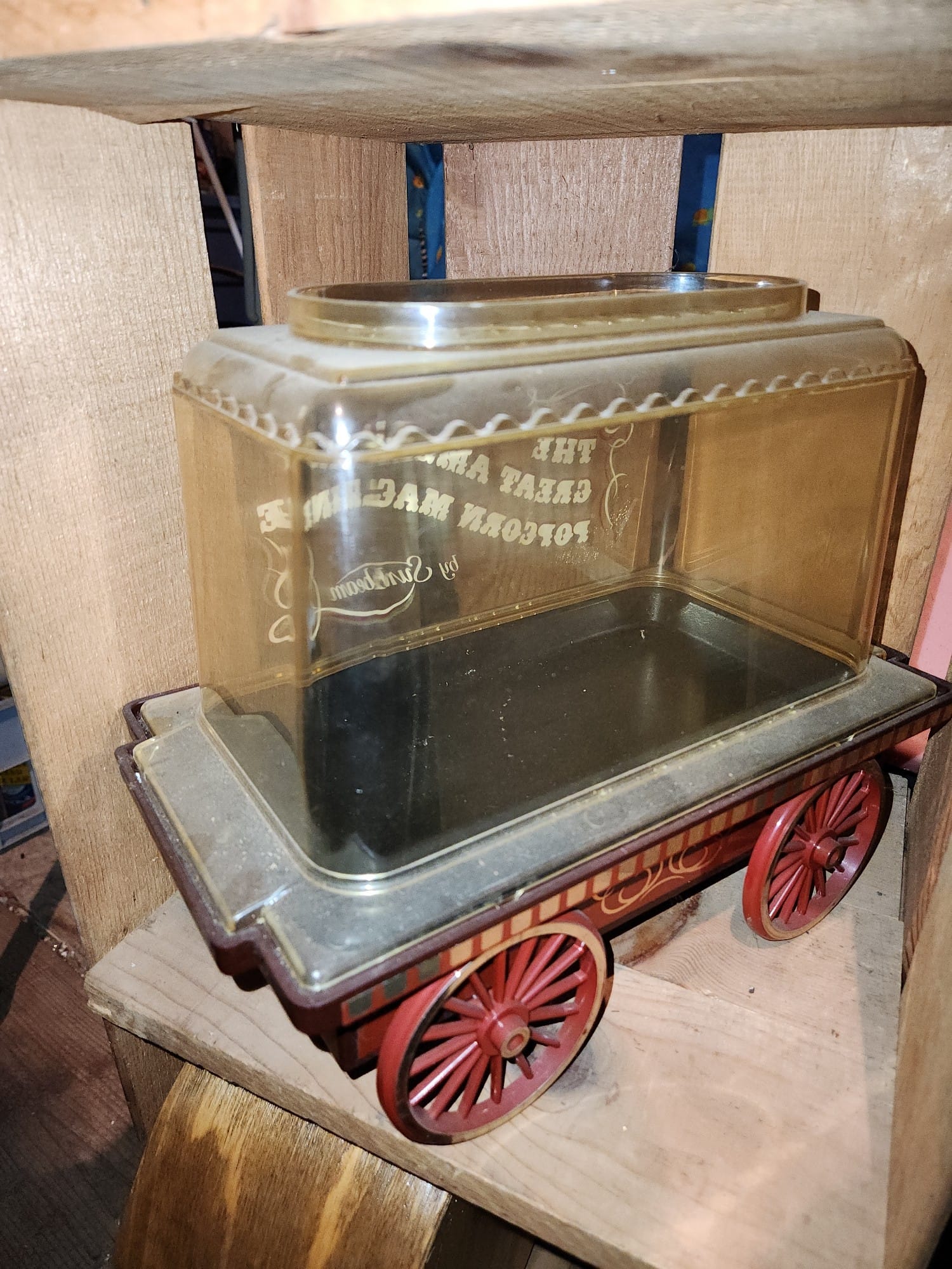 489 Checkerboard, shadow boxes, wood crate, popcorn popper, cheese box