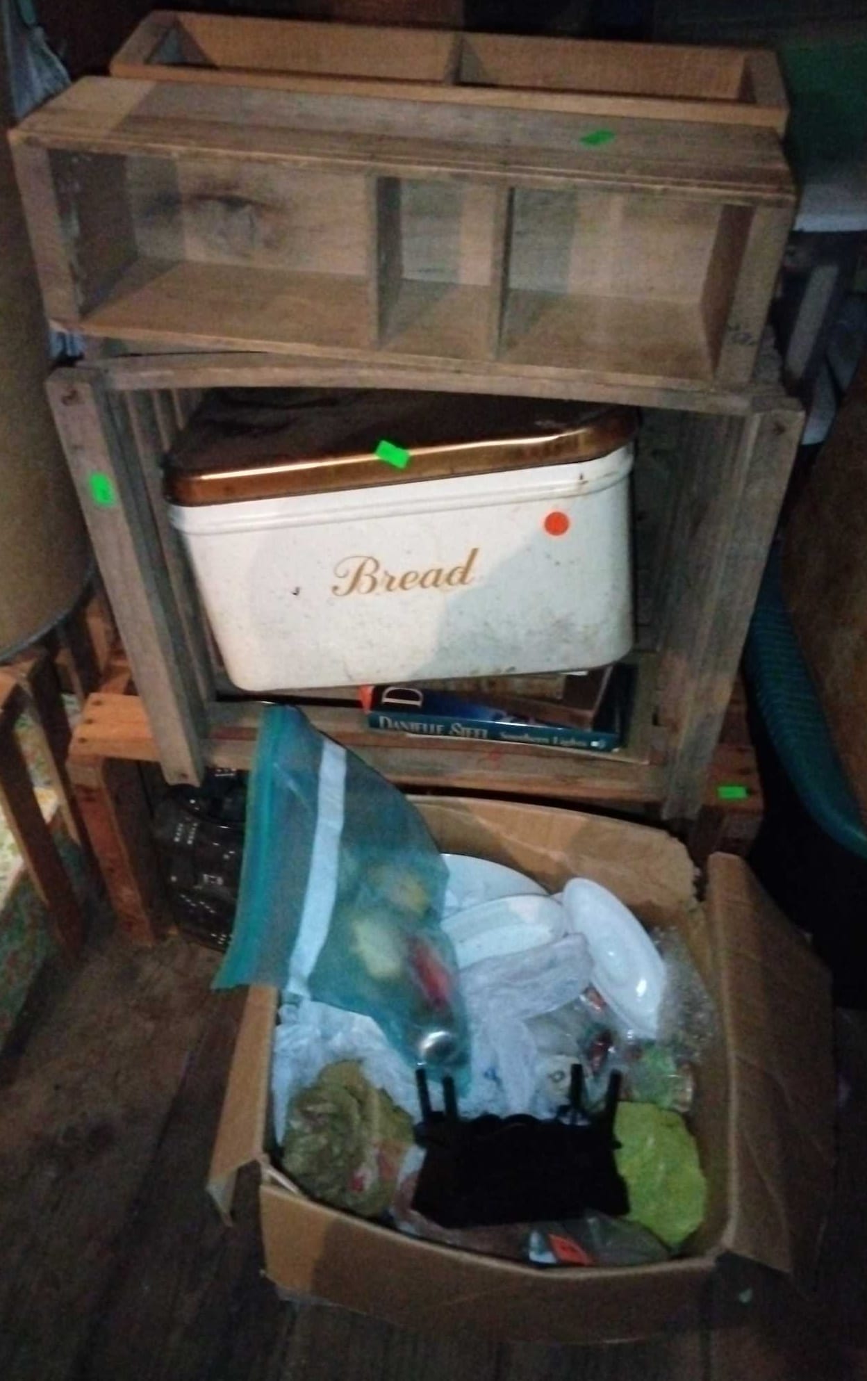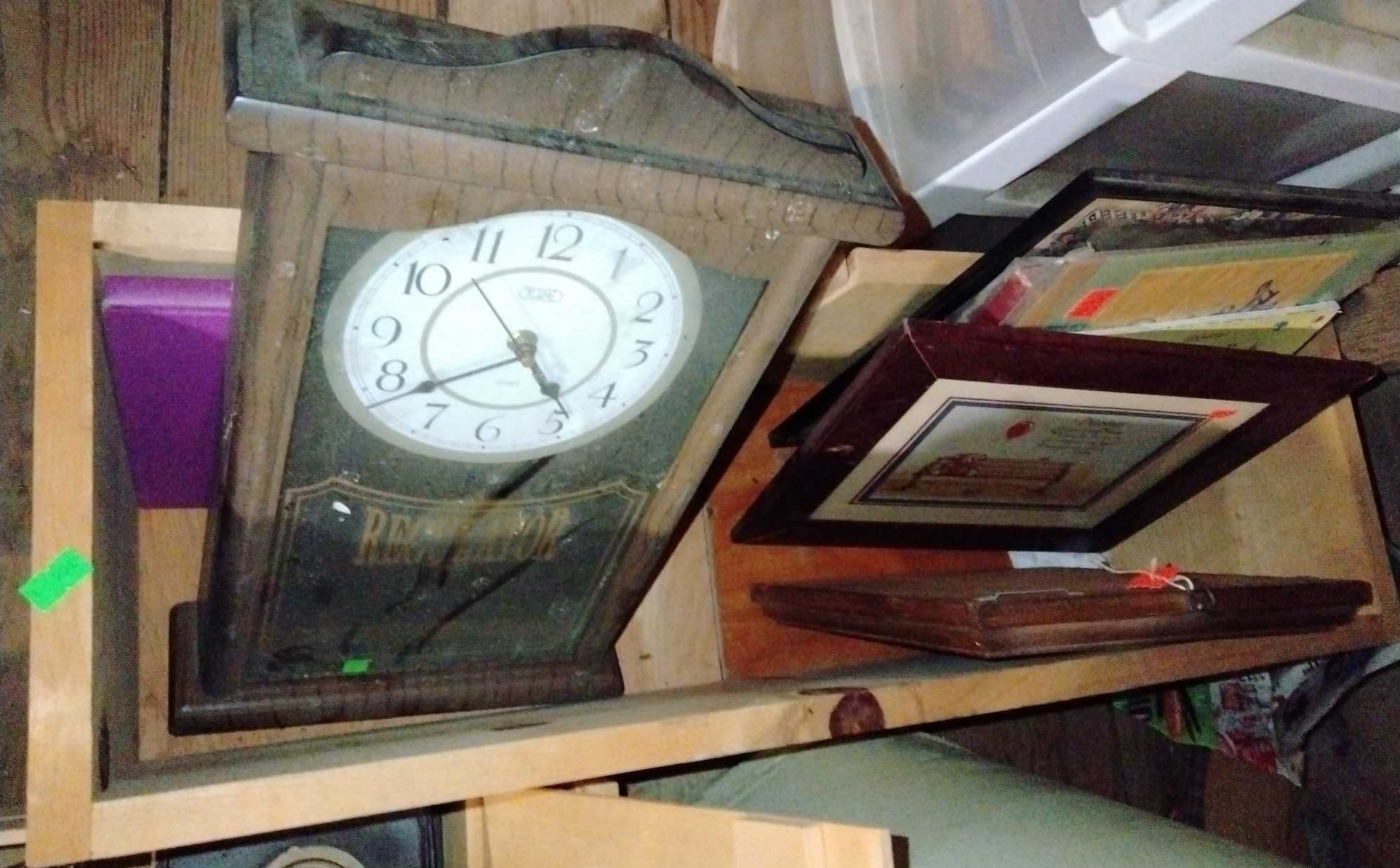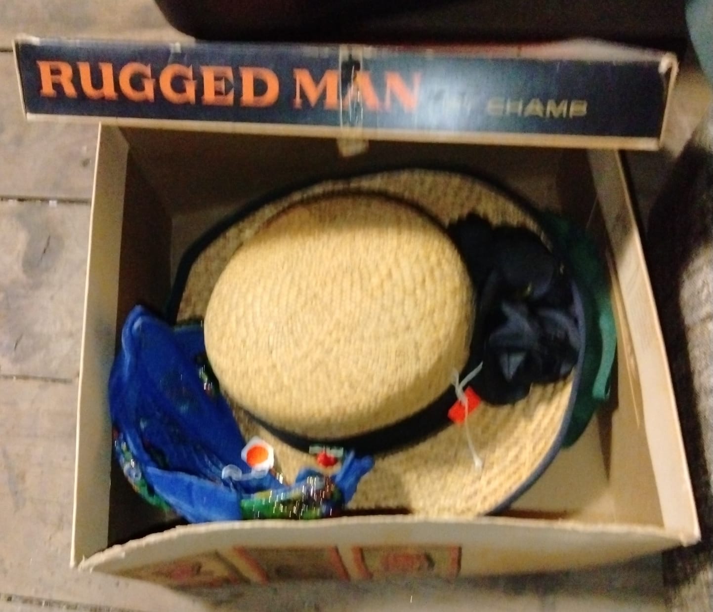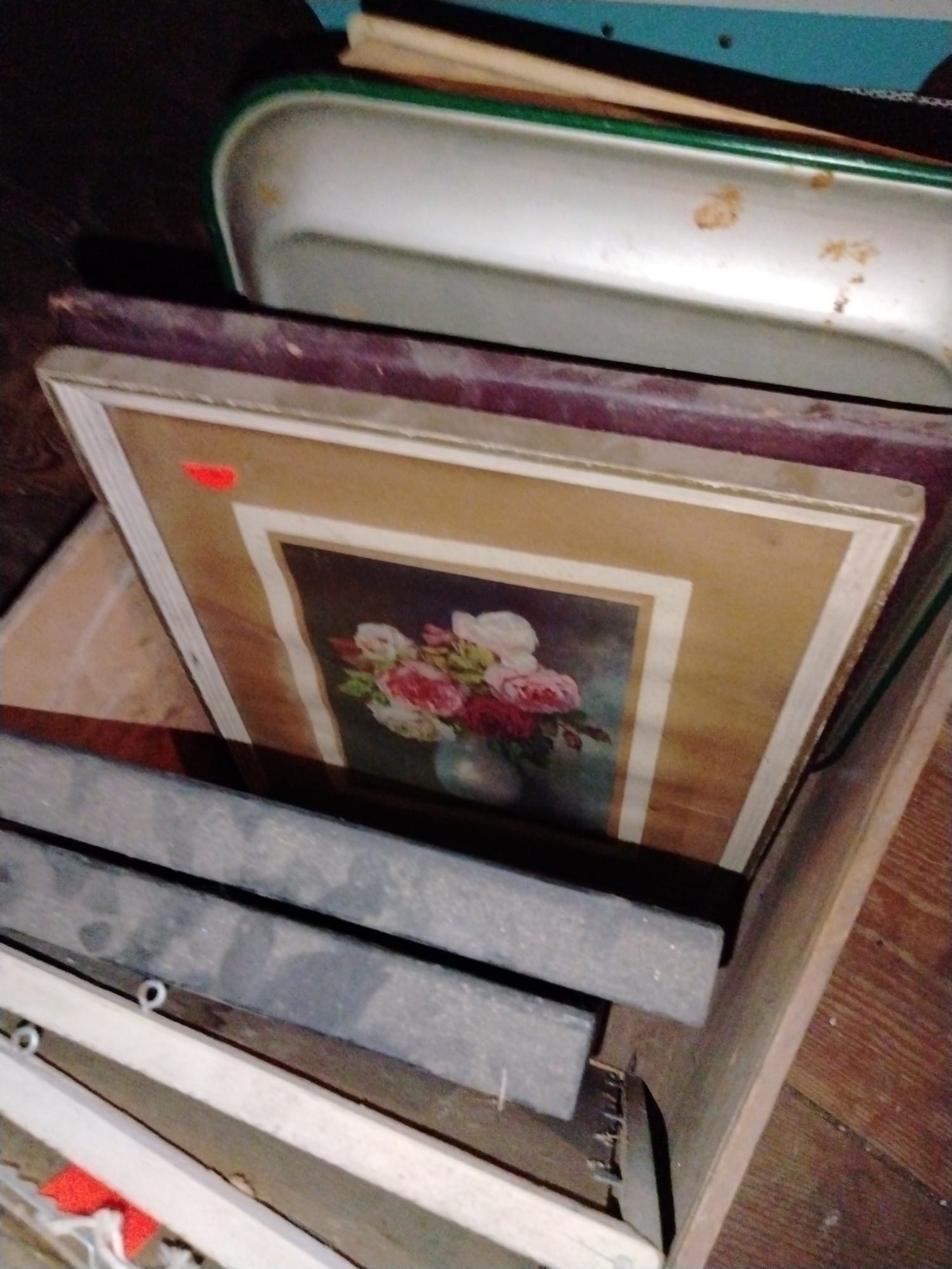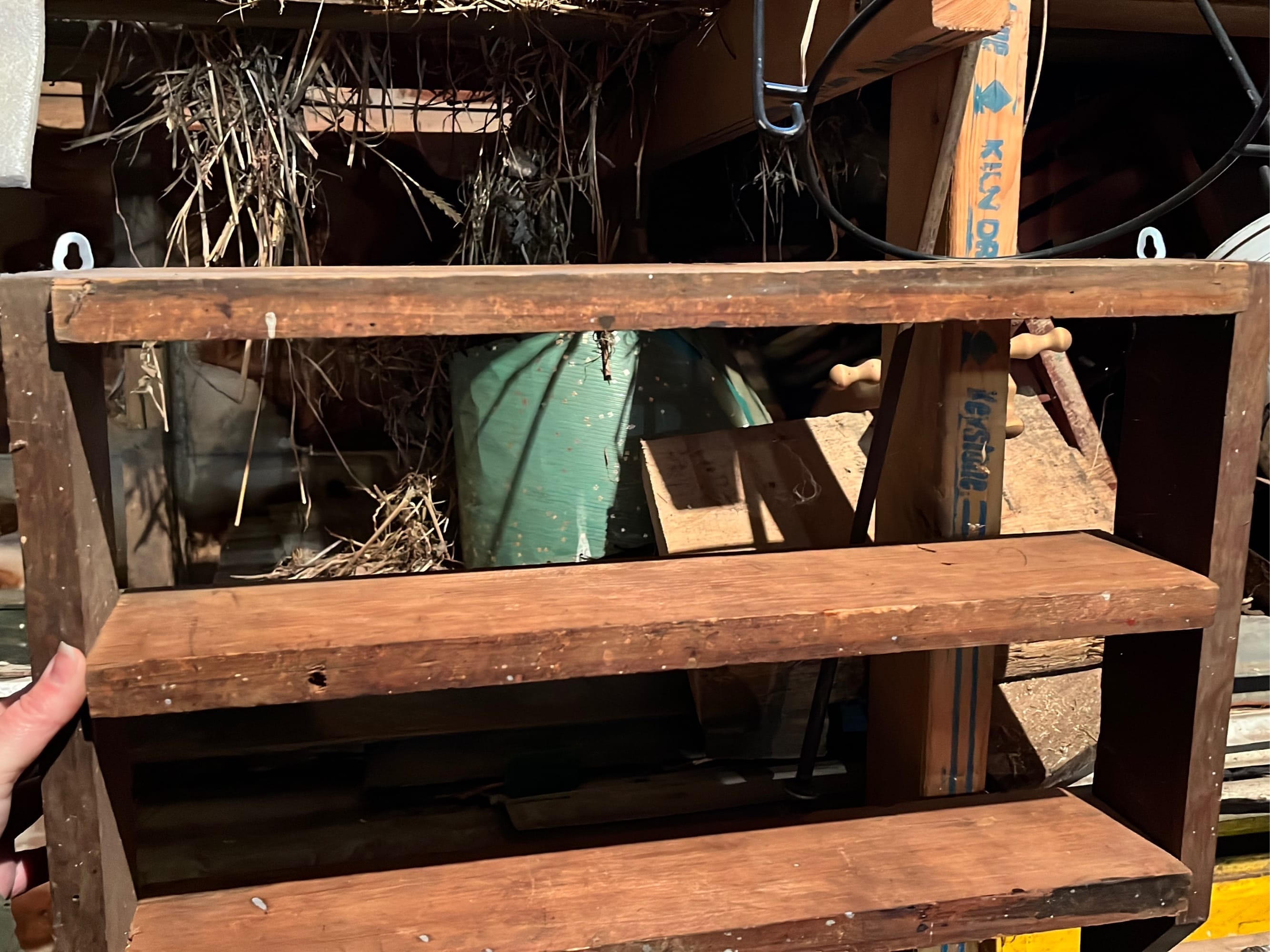 489 Checkerboard, shadow boxes, wood crate, popcorn popper, cheese box