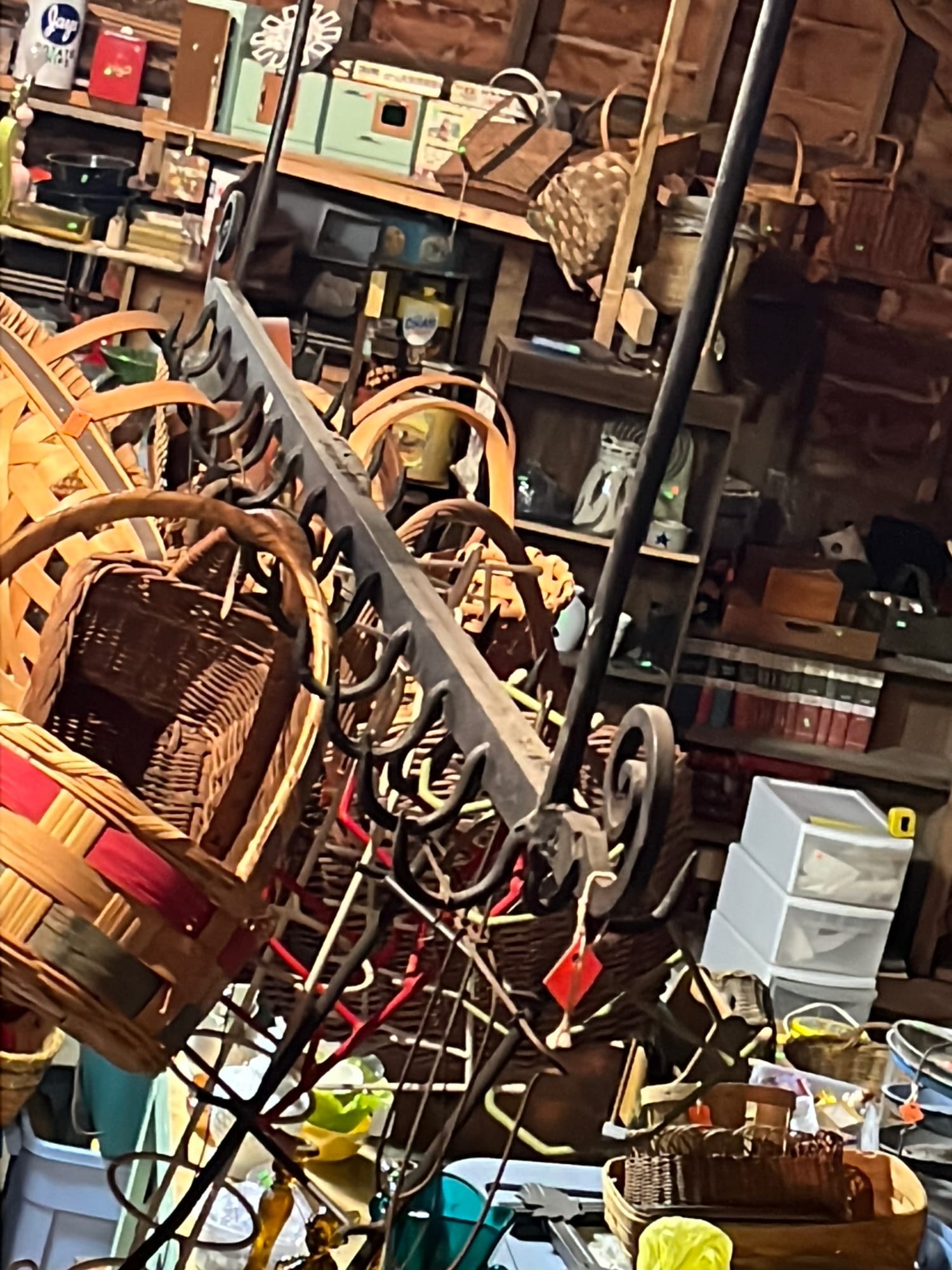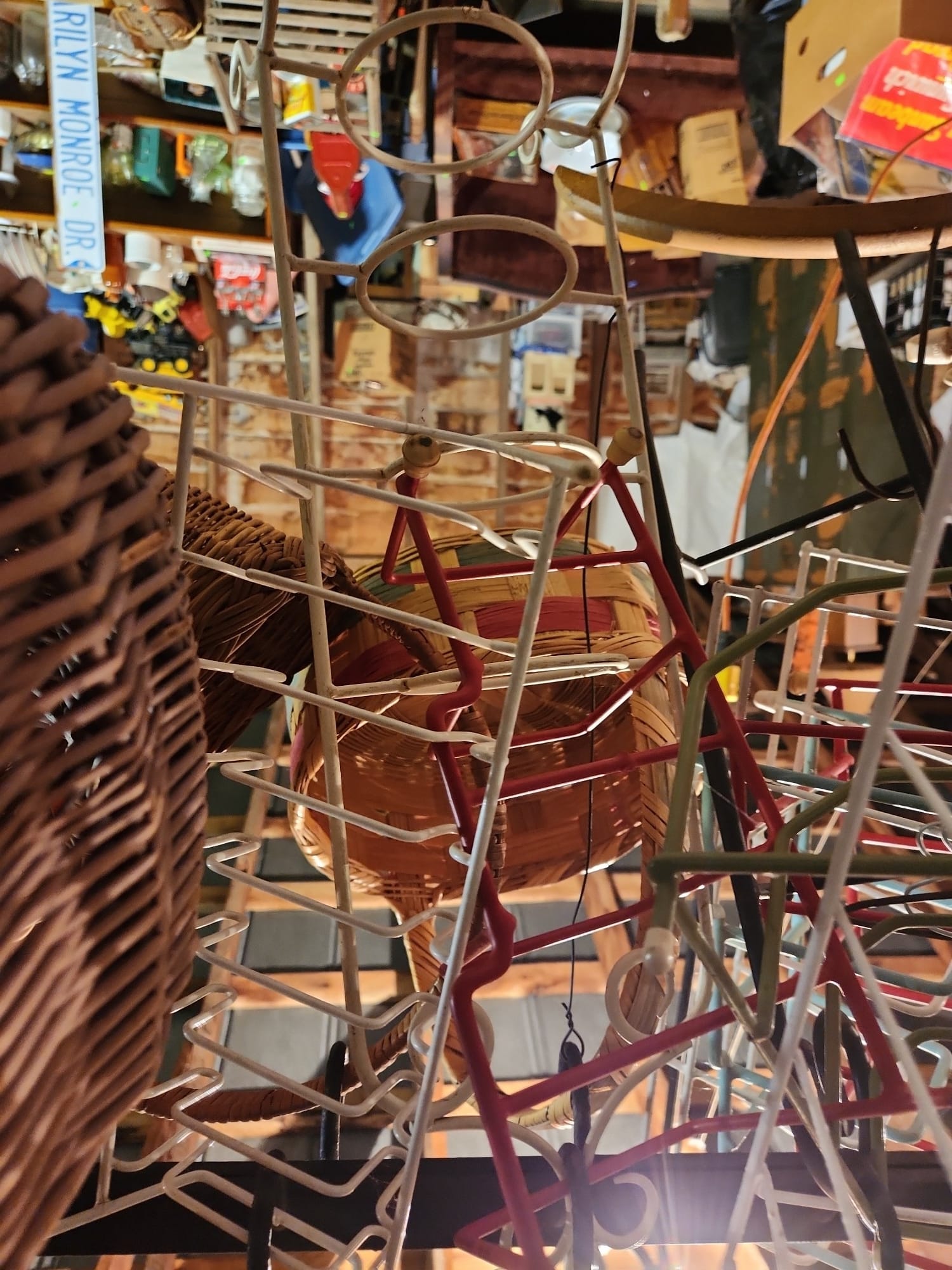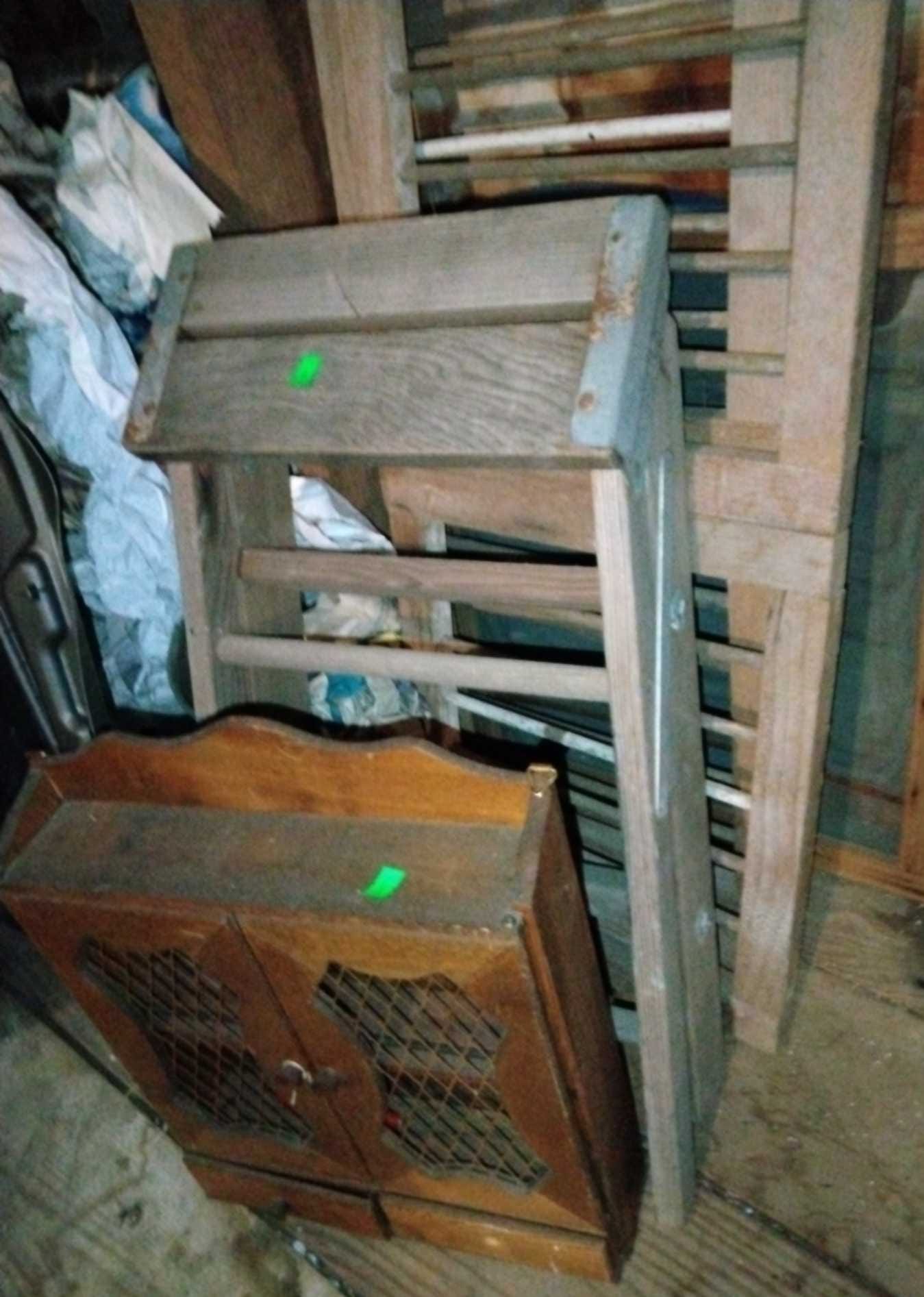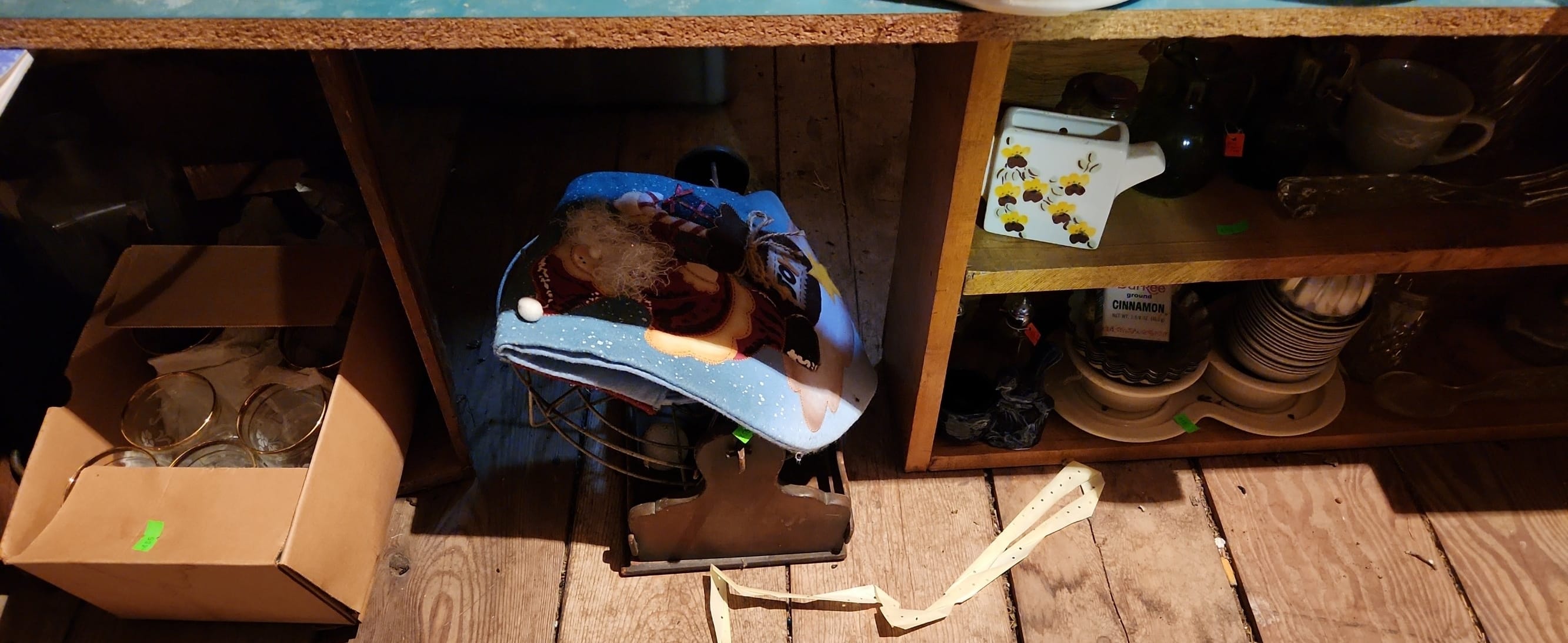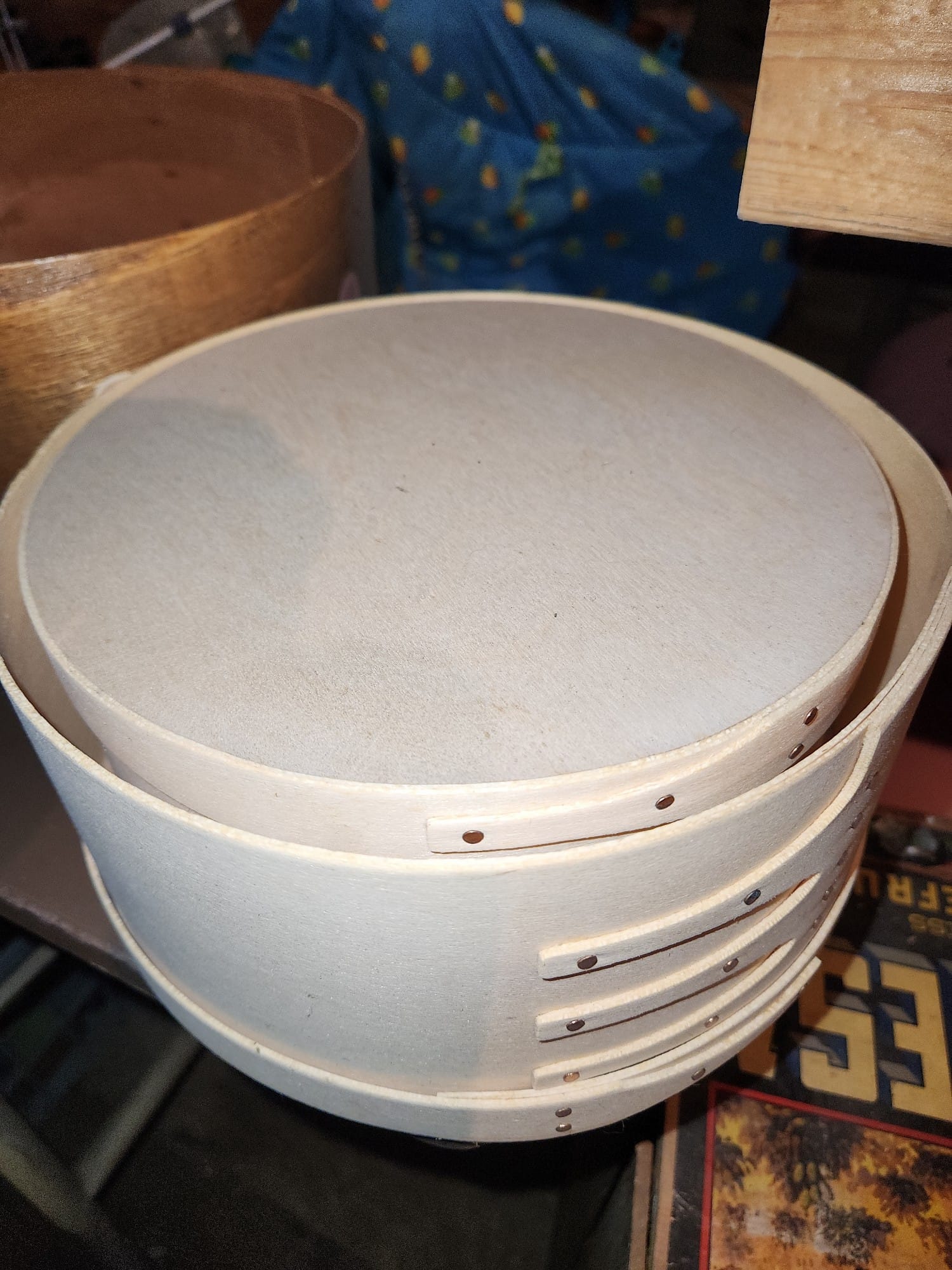 489 Checkerboard, shadow boxes, wood crate, popcorn popper, cheese box