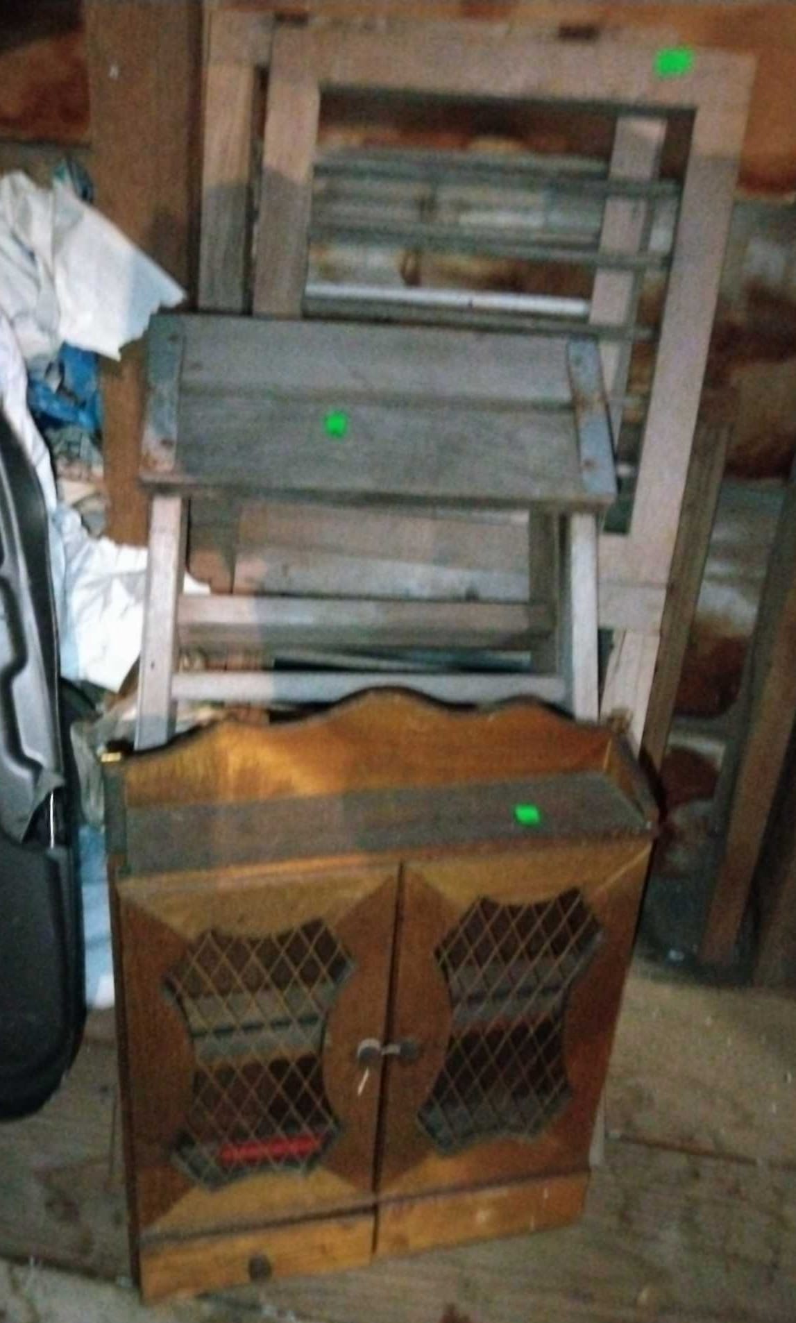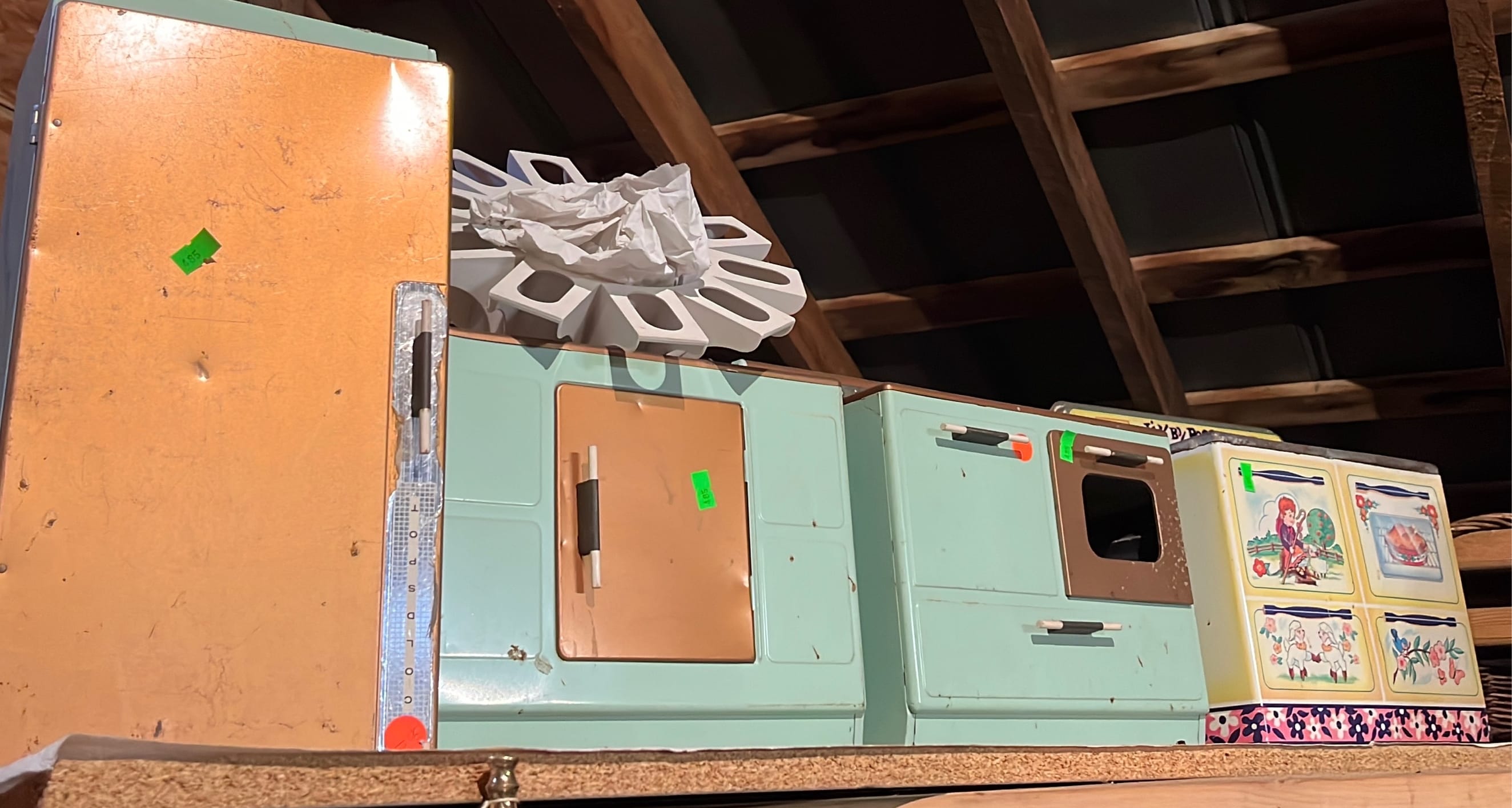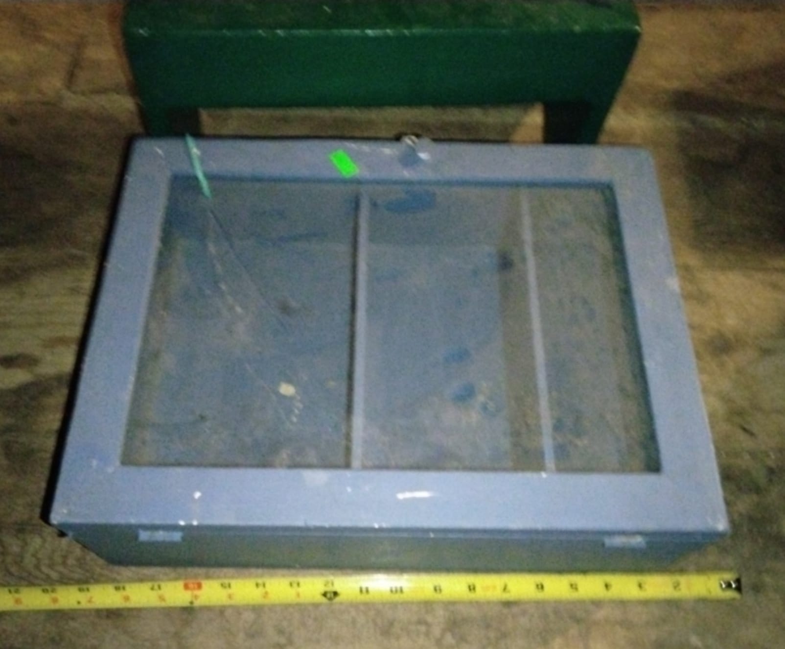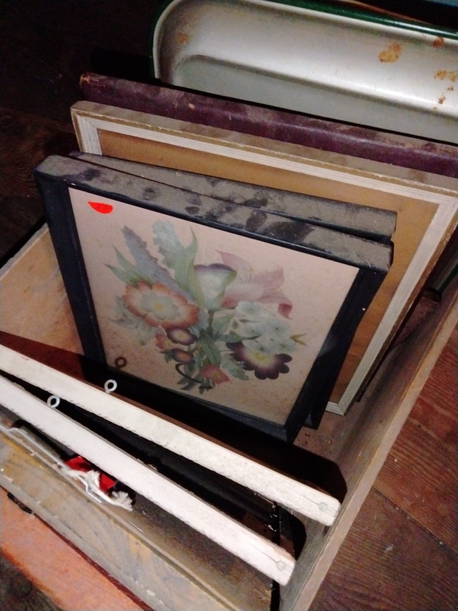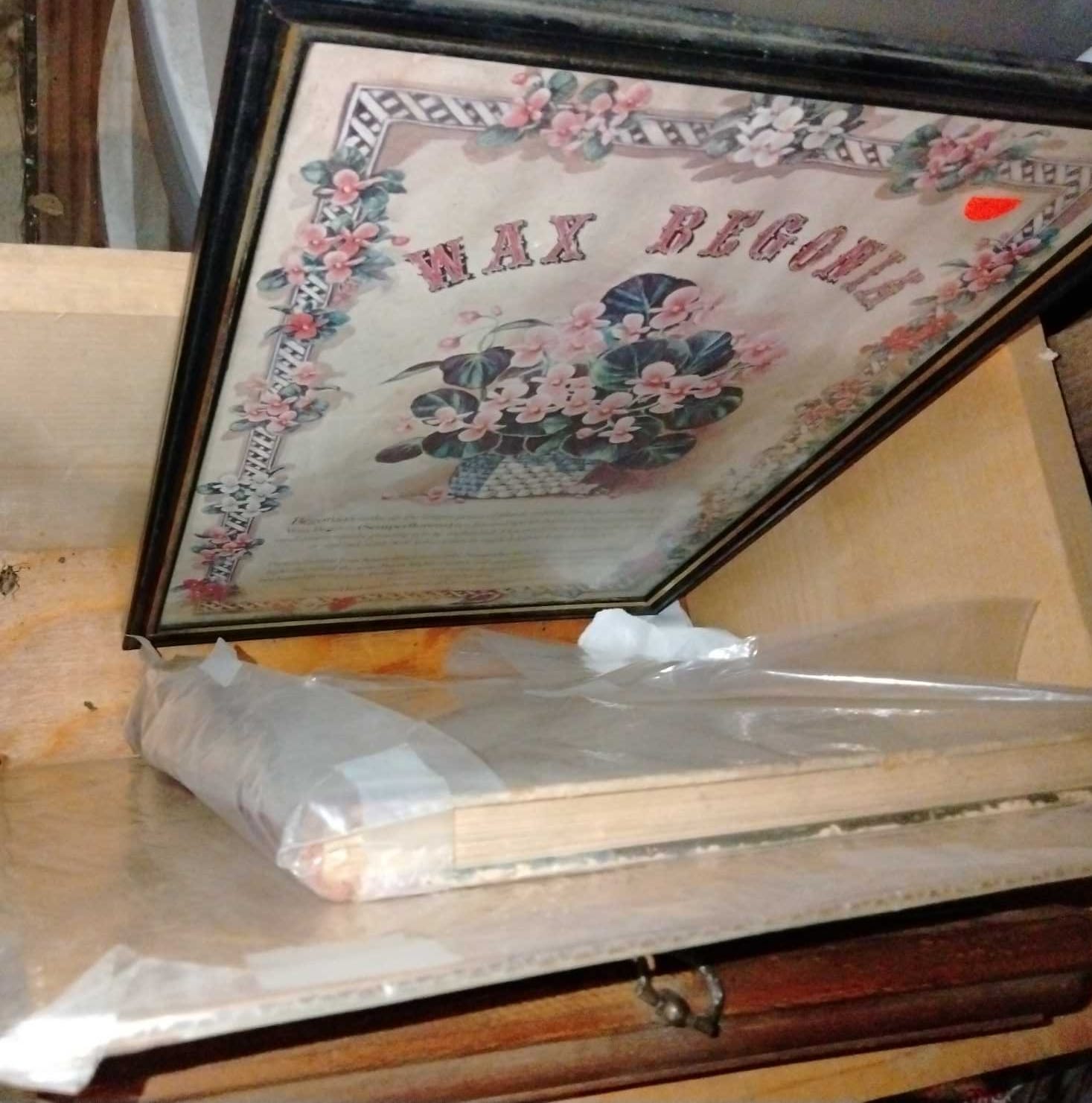 489 Checkerboard, shadow boxes, wood crate, popcorn popper, cheese box