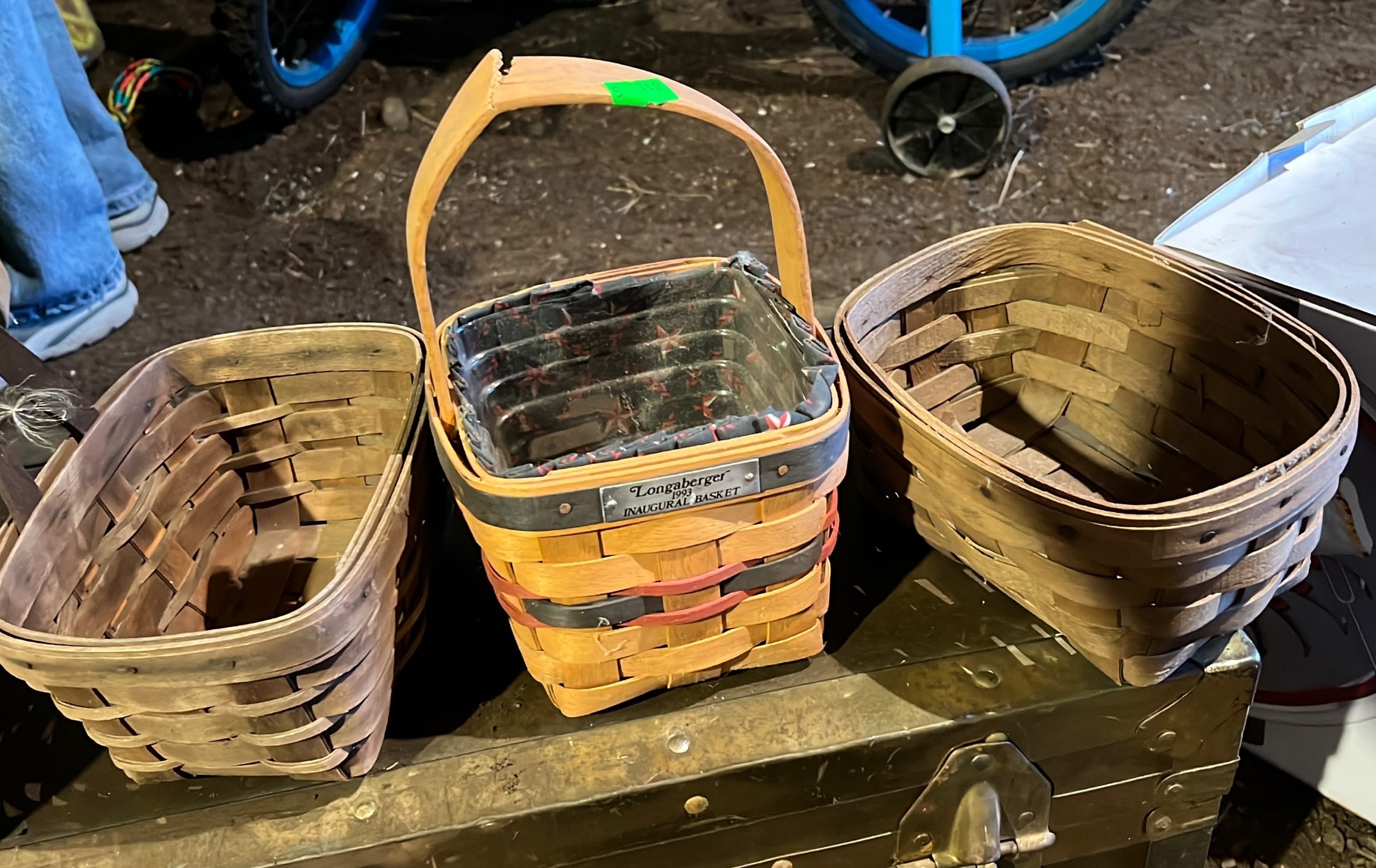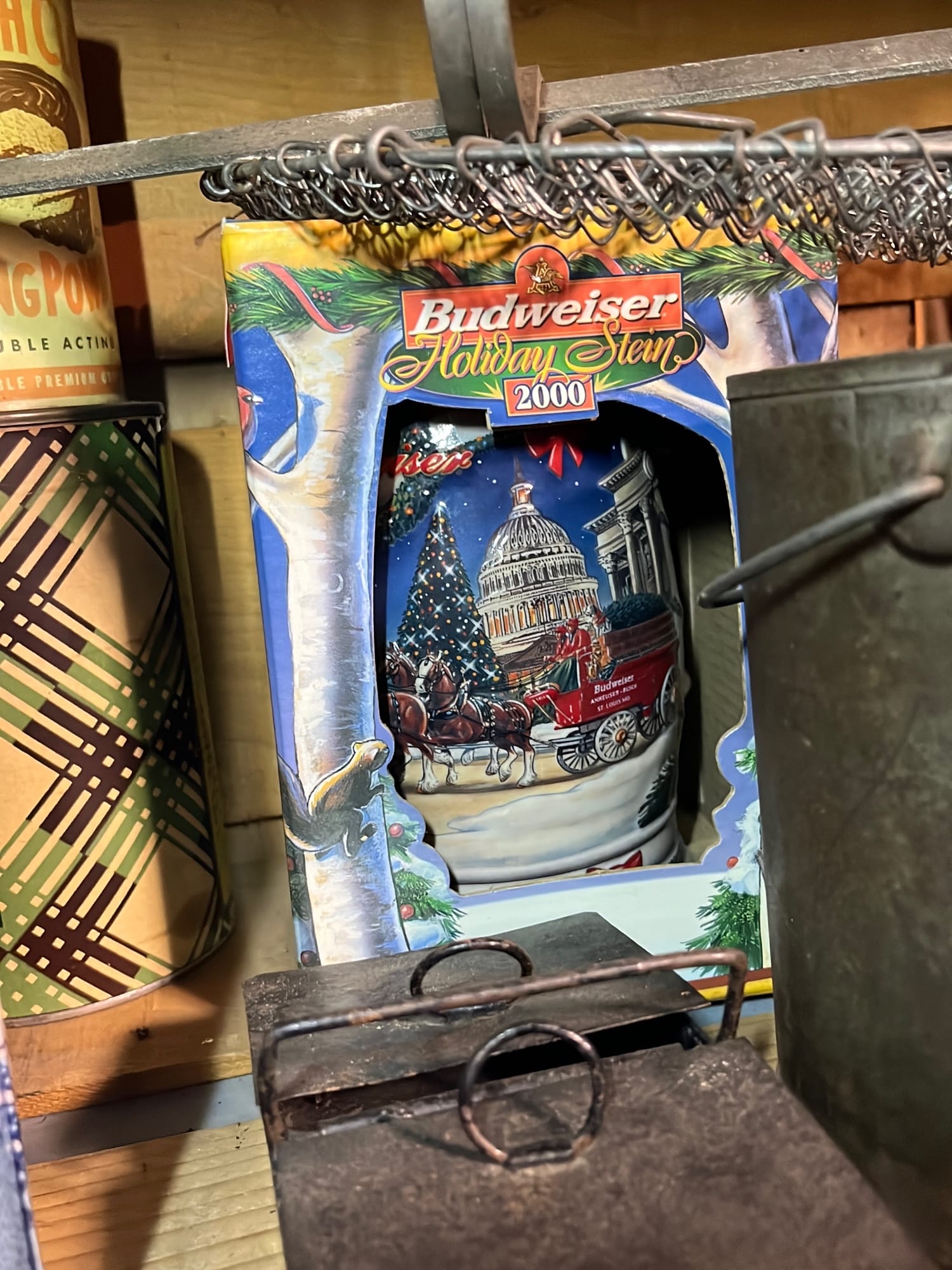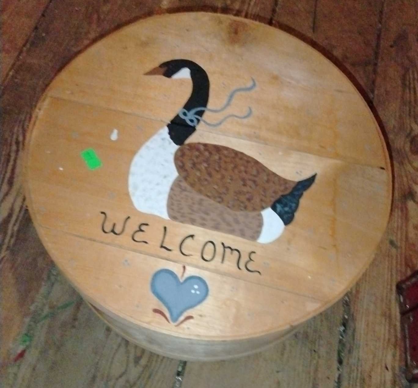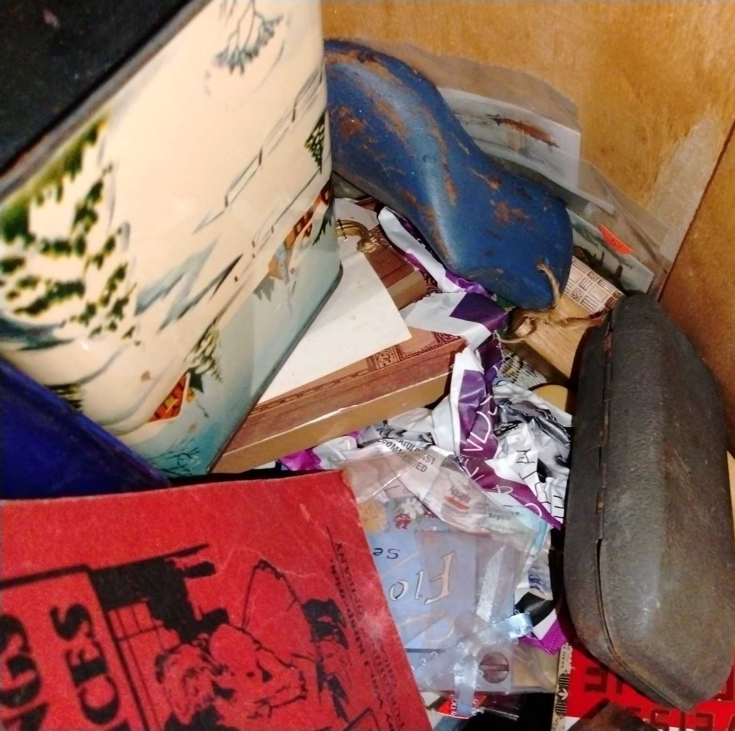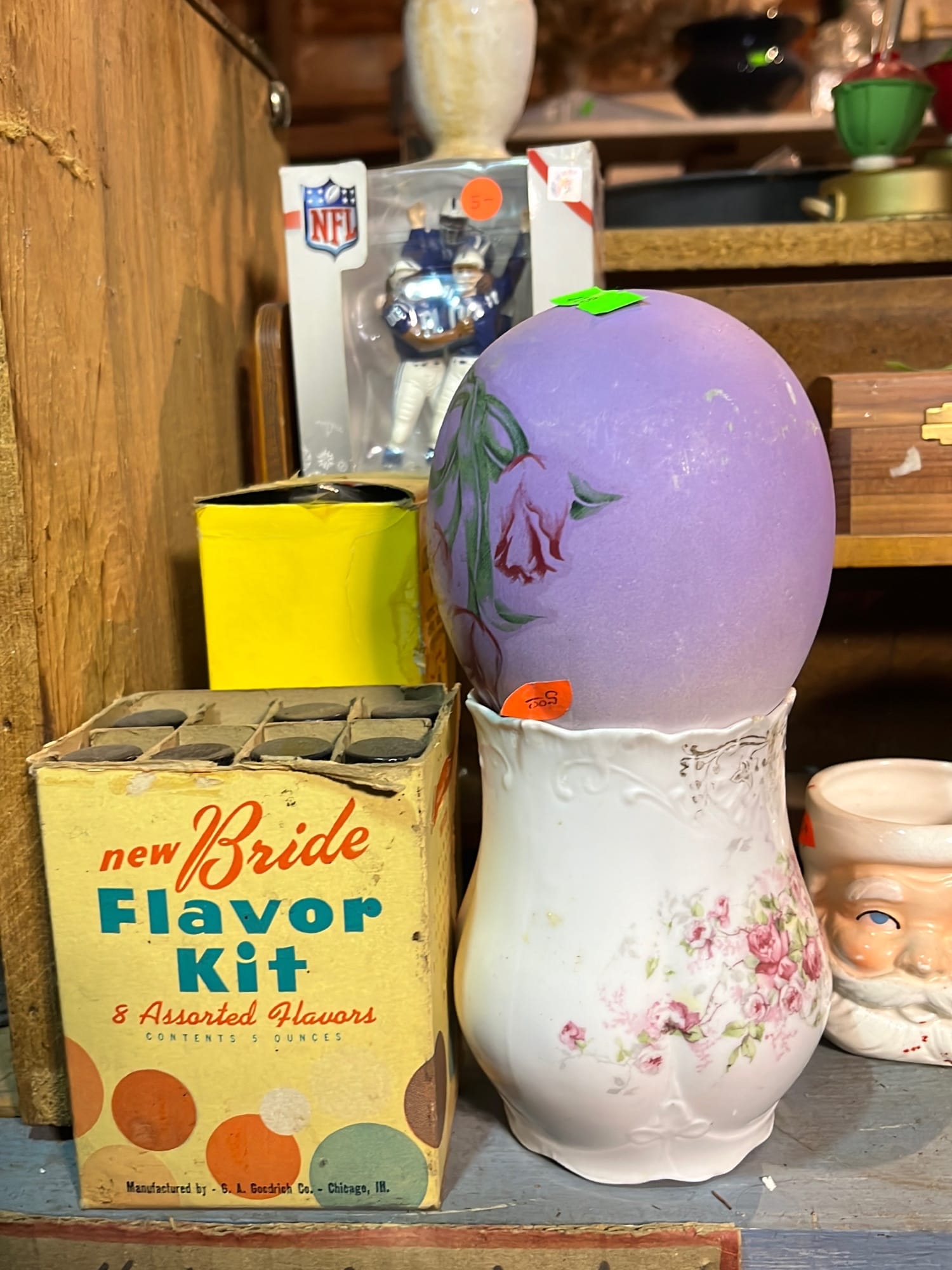 489 Checkerboard, shadow boxes, wood crate, popcorn popper, cheese box