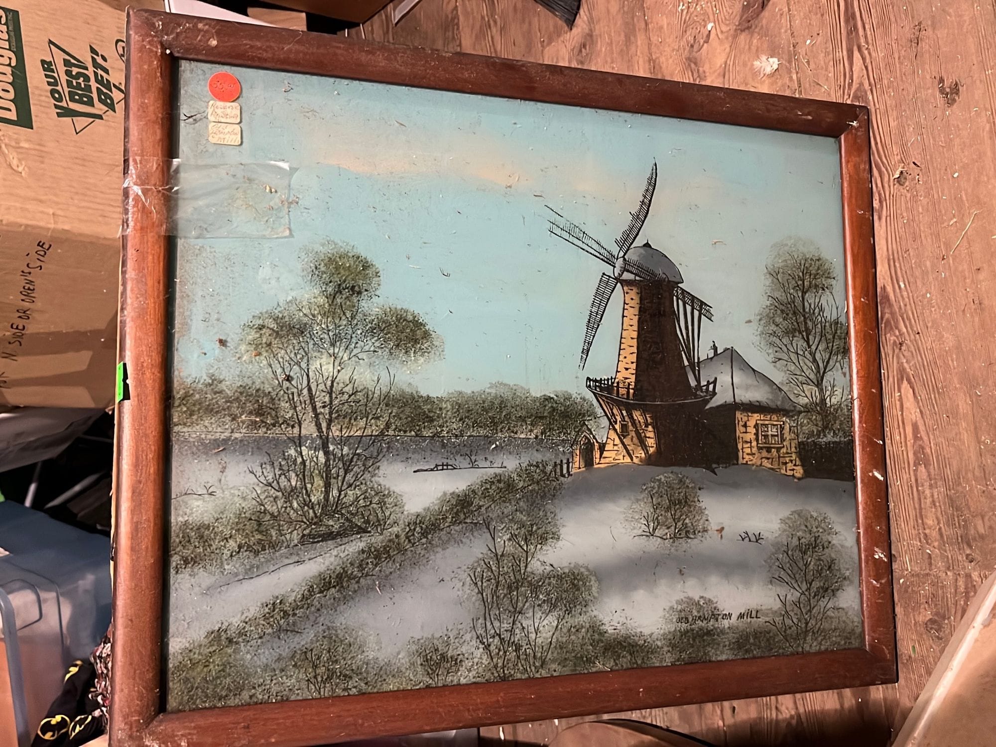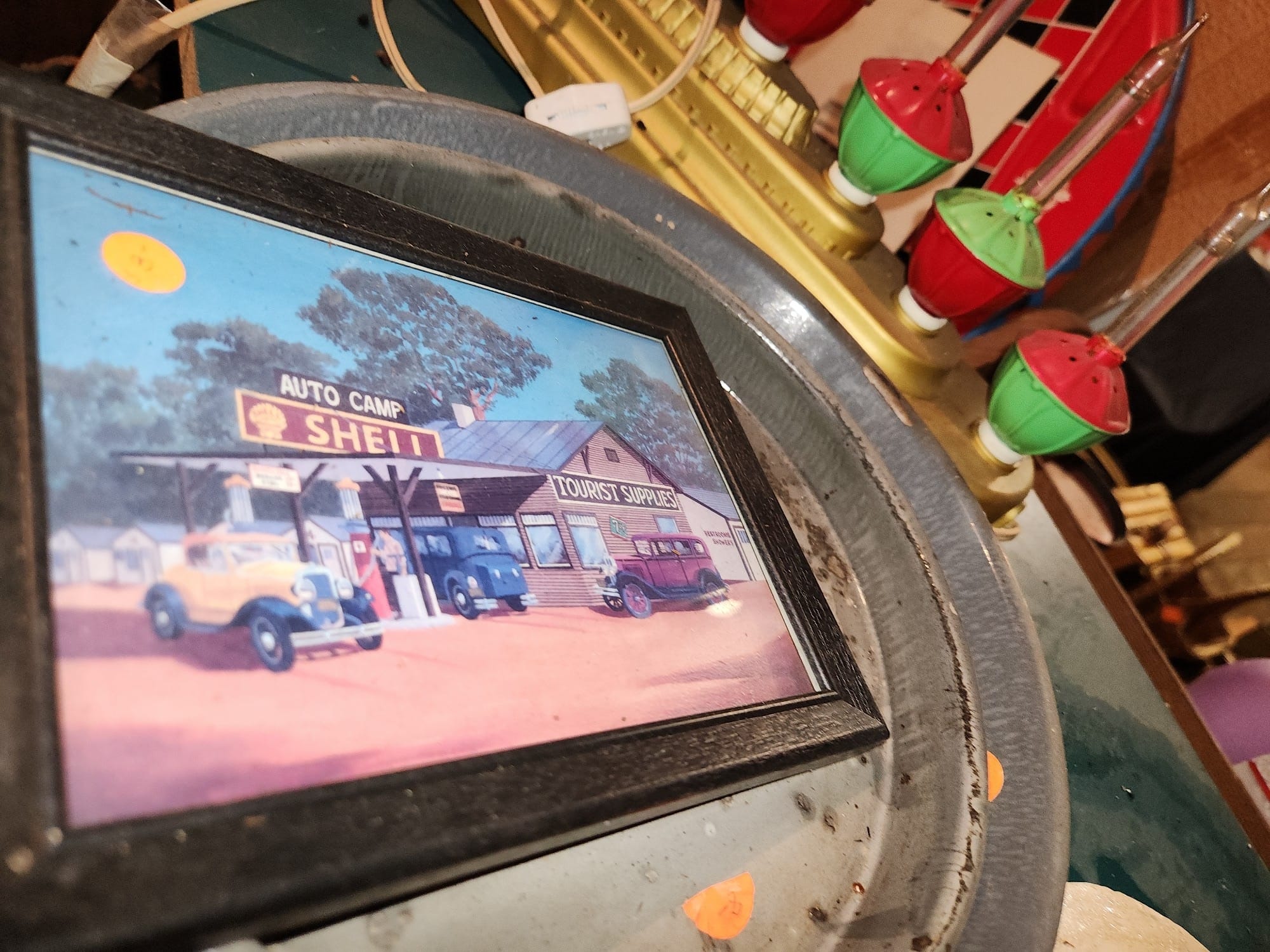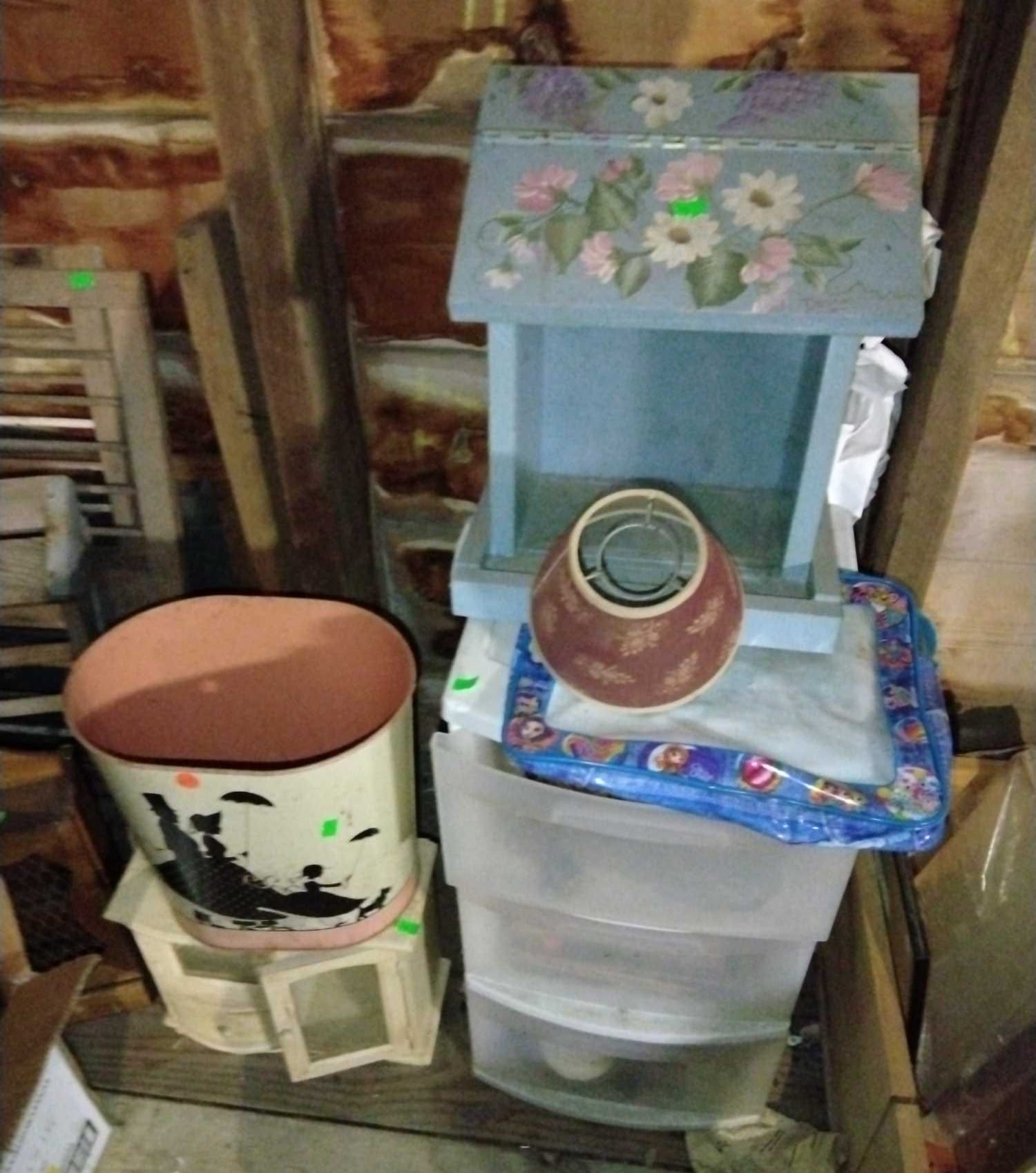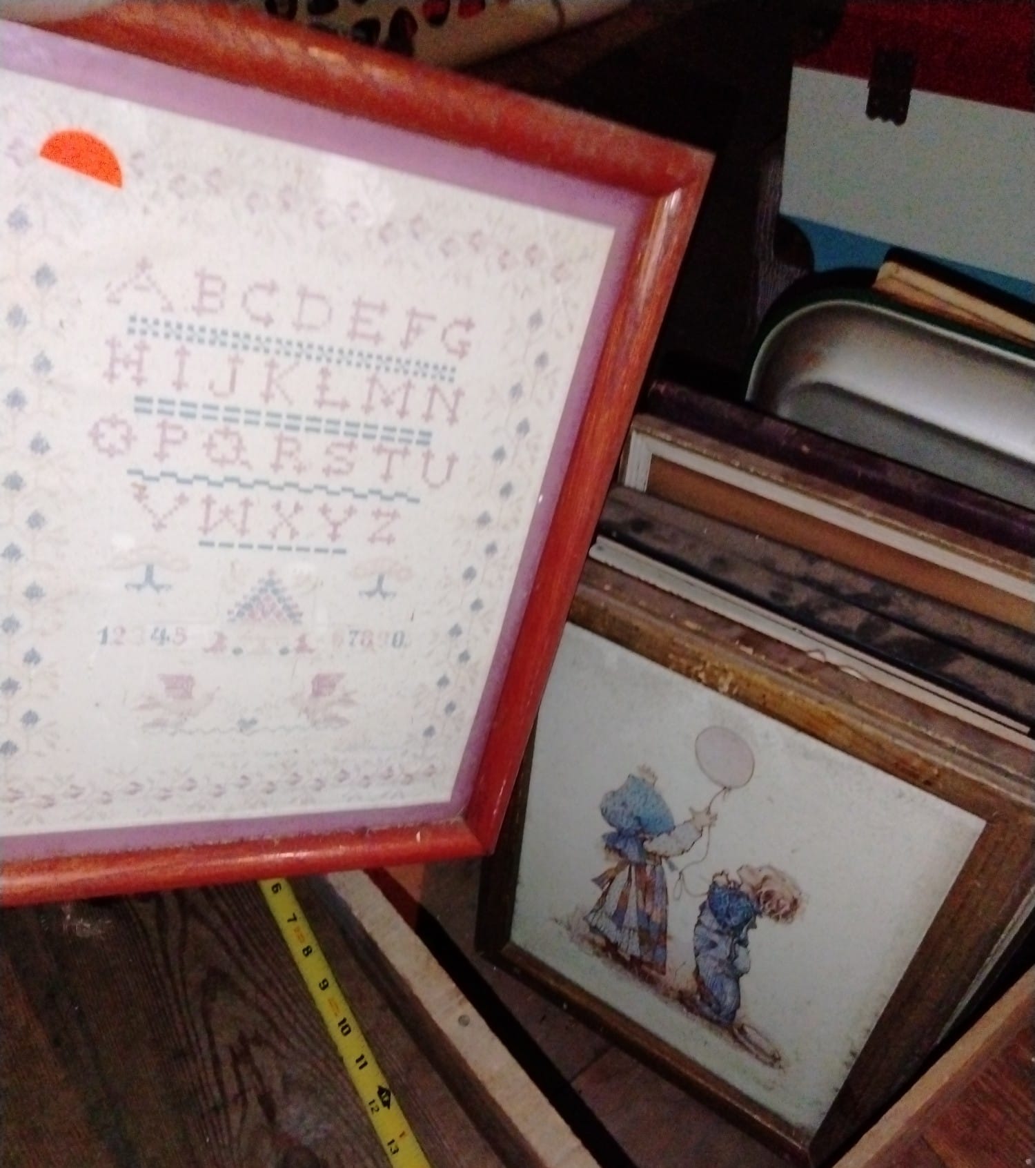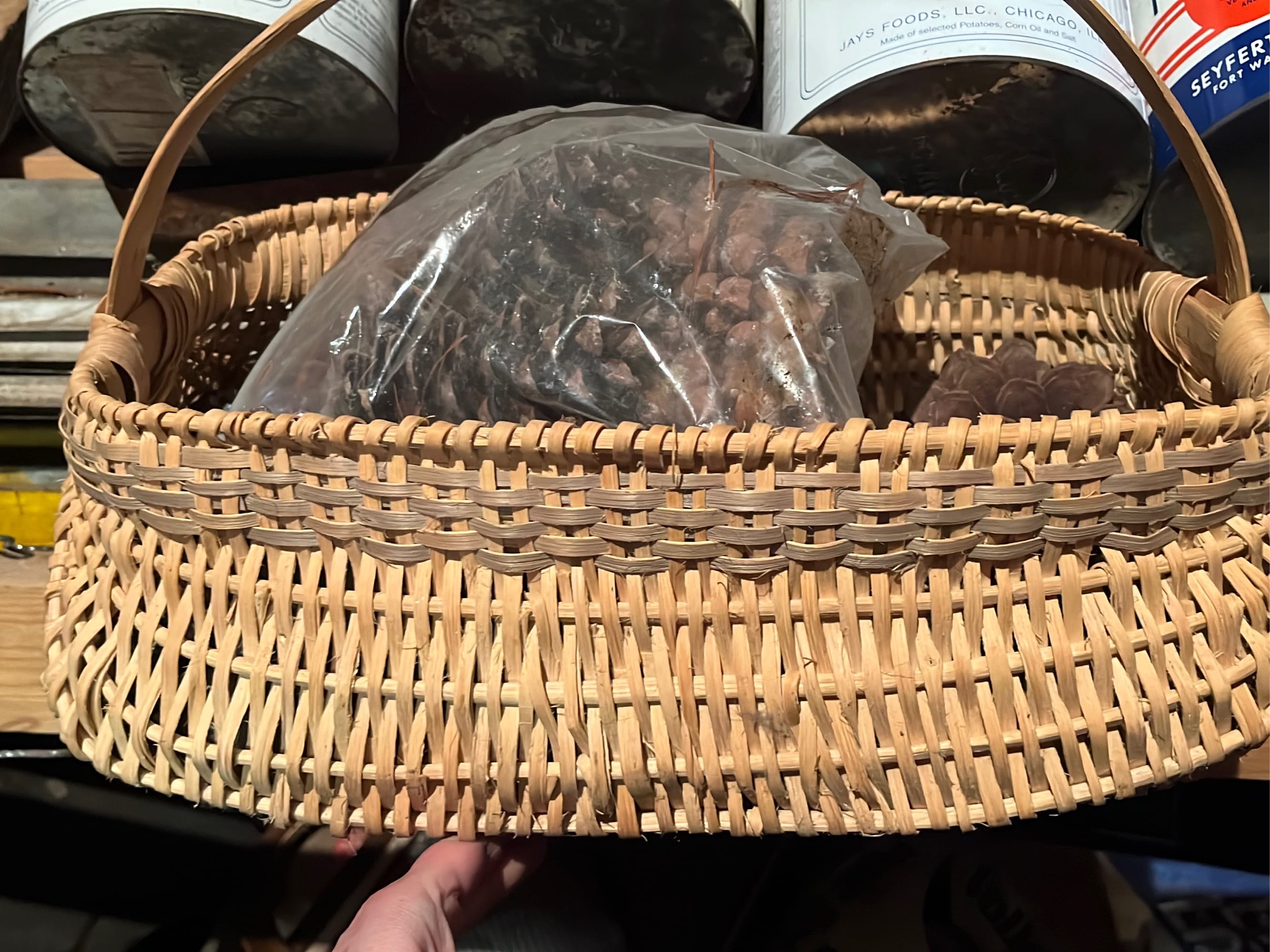 489 Checkerboard, shadow boxes, wood crate, popcorn popper, cheese box