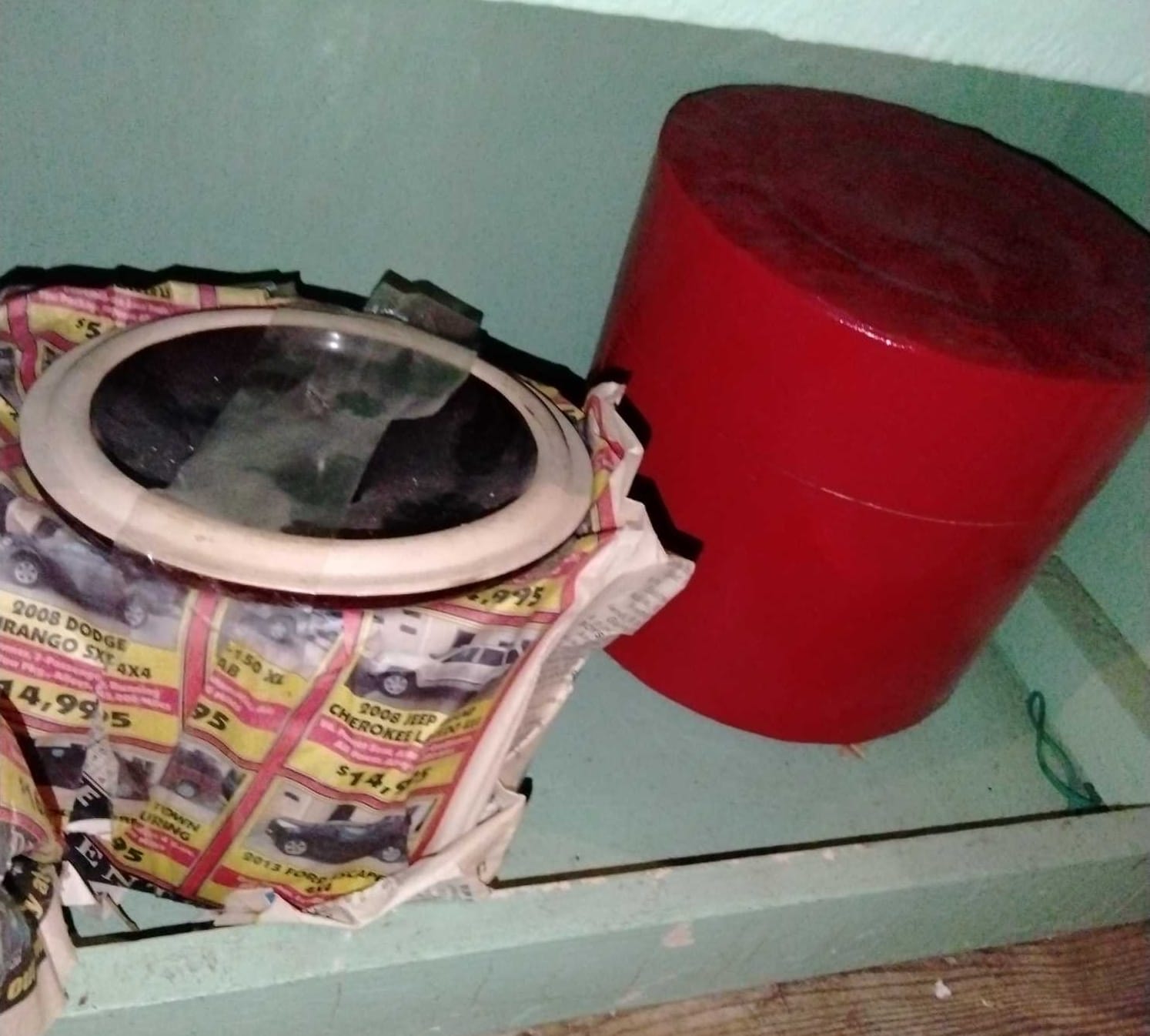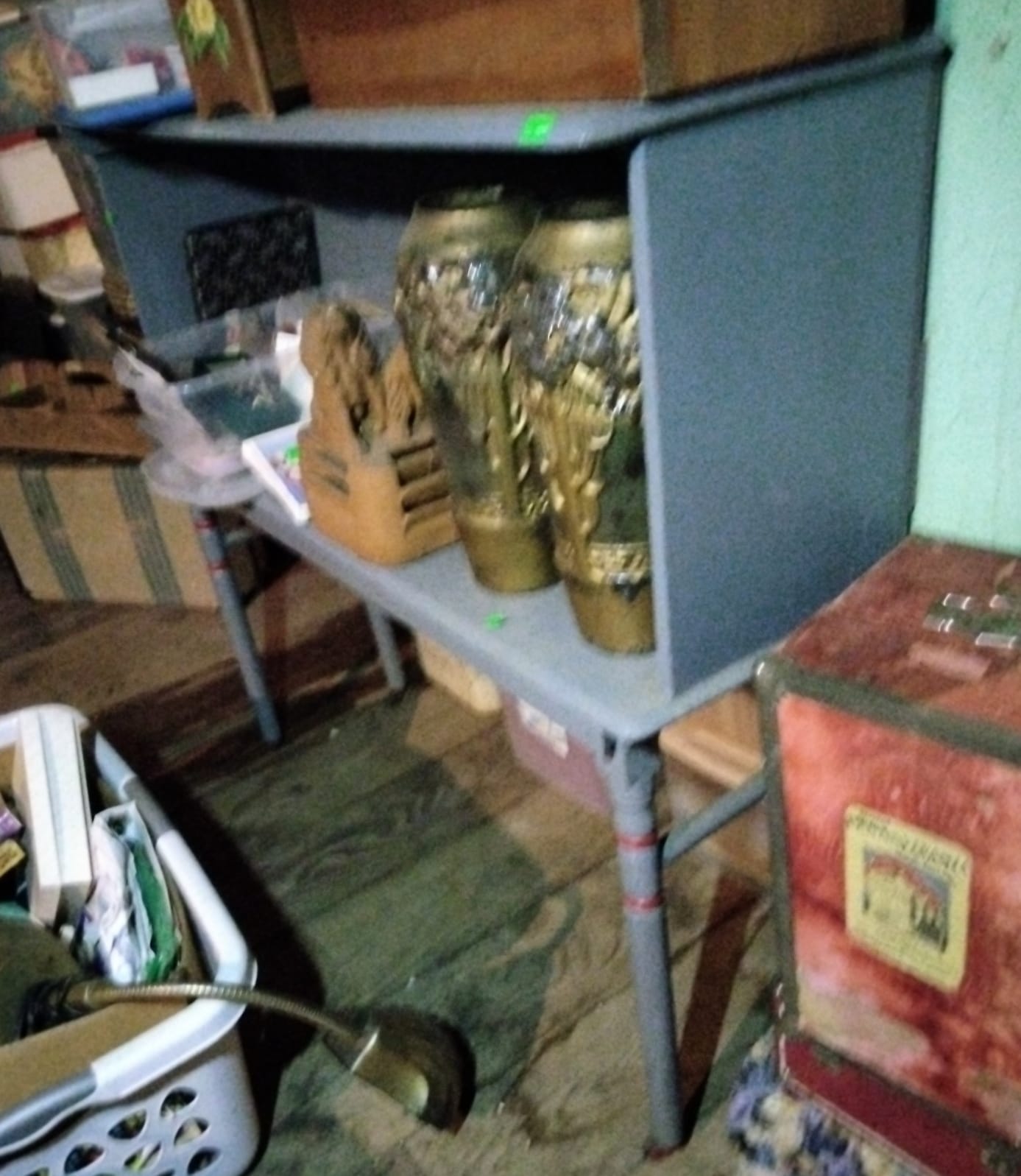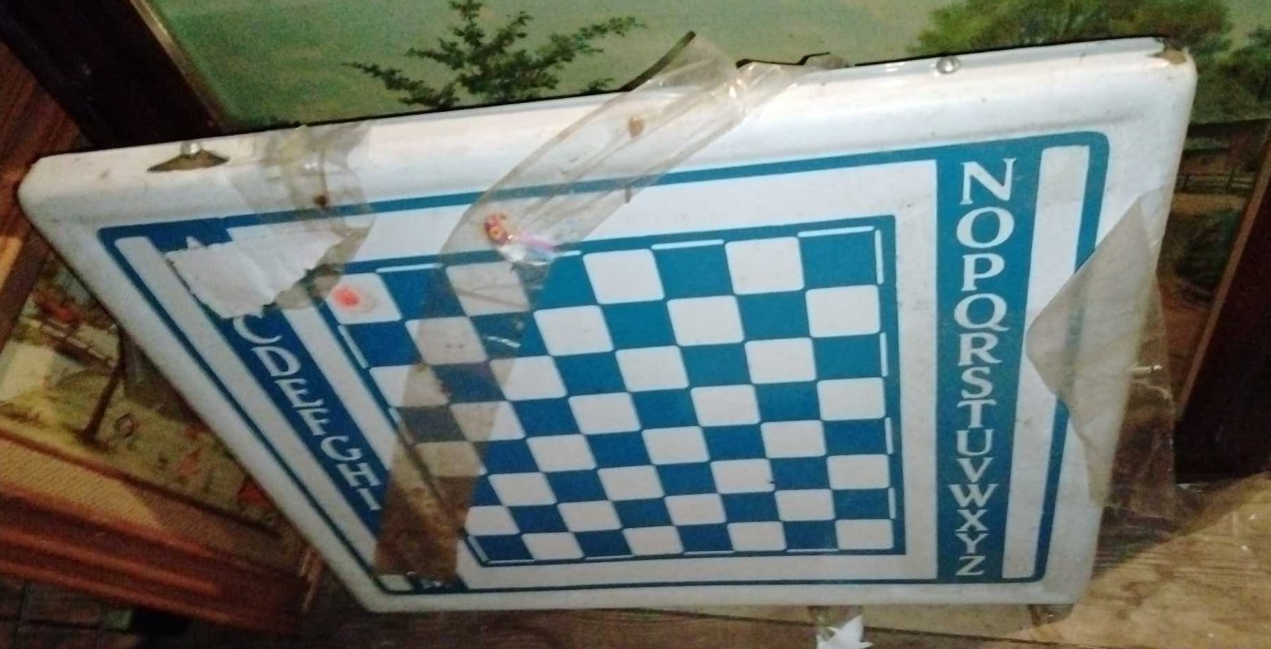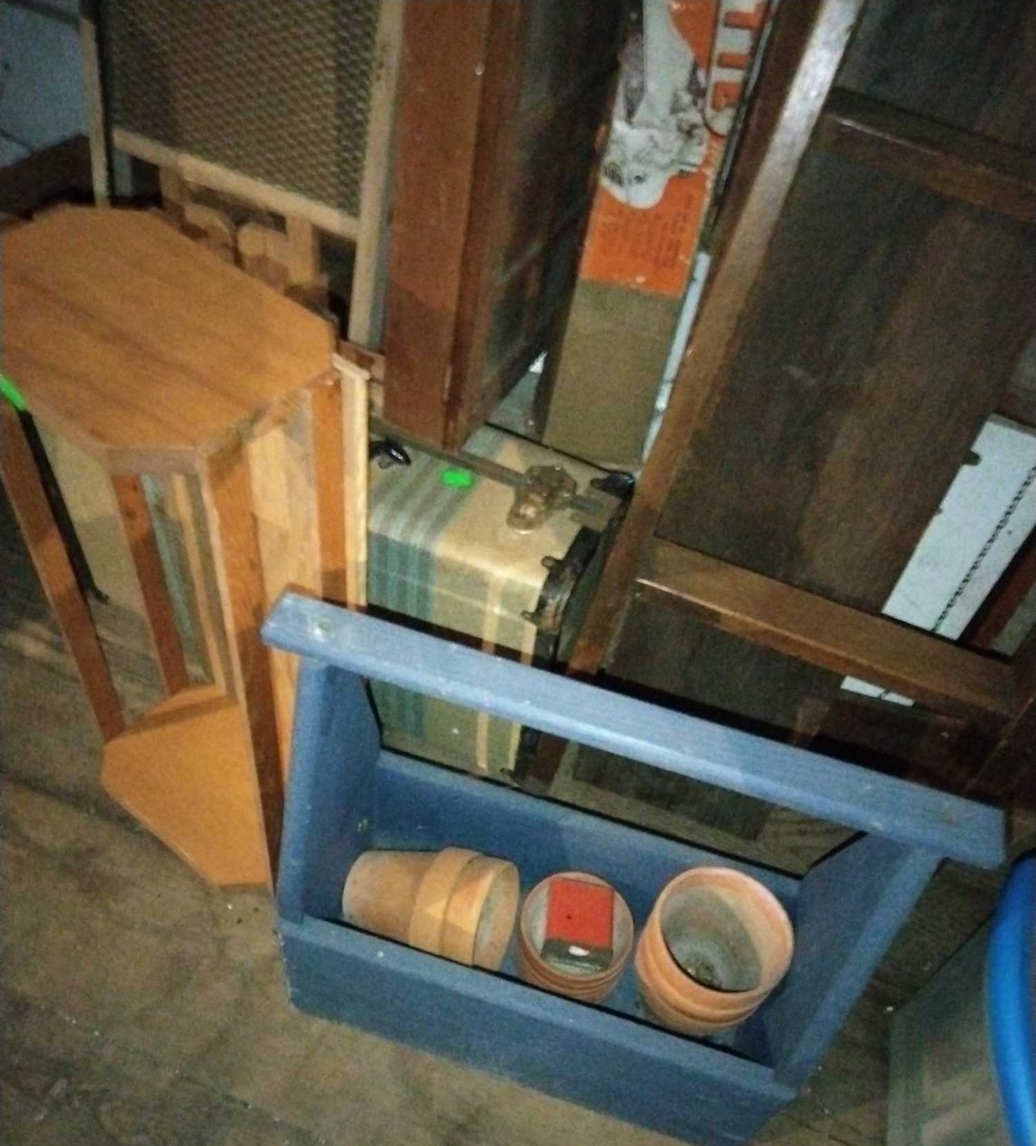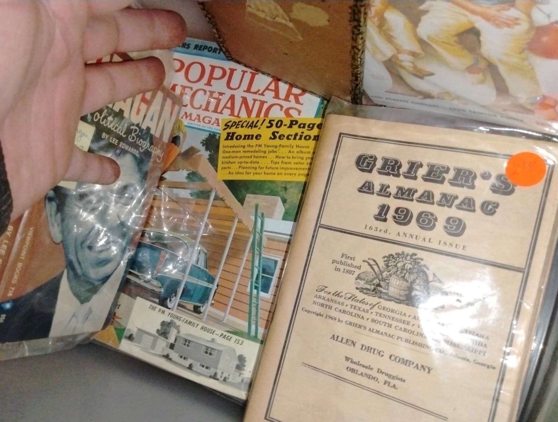 489 Checkerboard, shadow boxes, wood crate, popcorn popper, cheese box