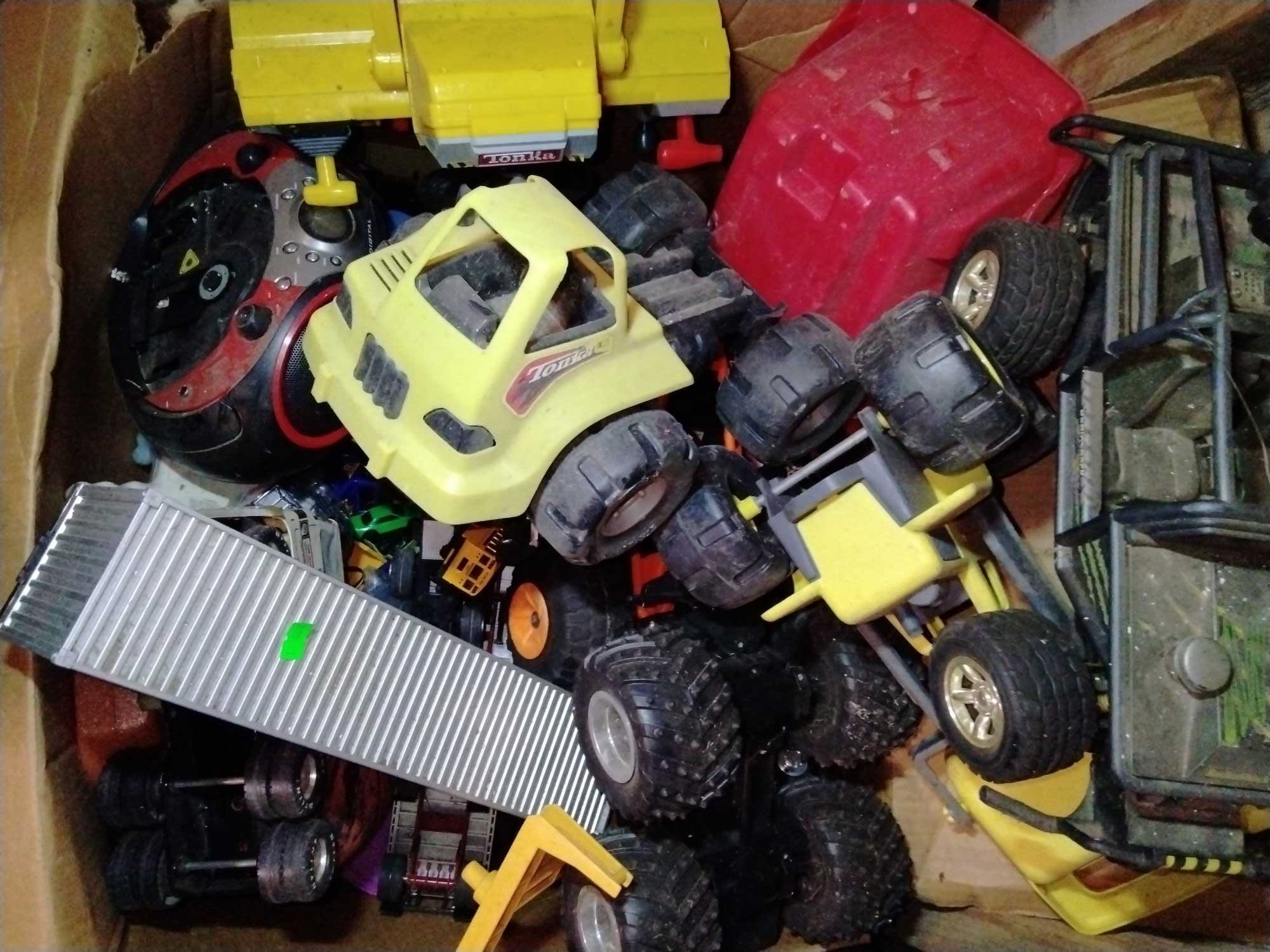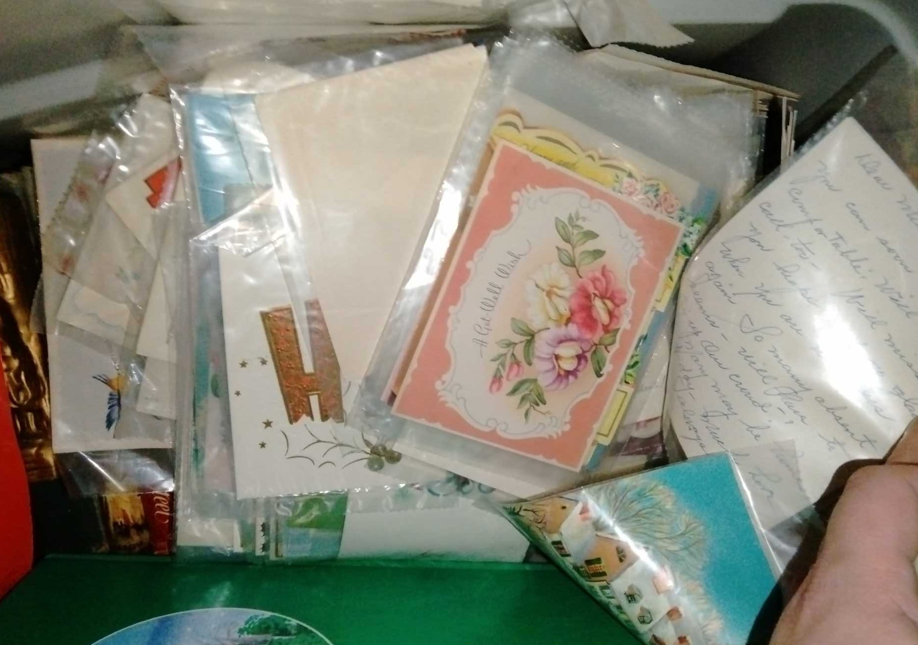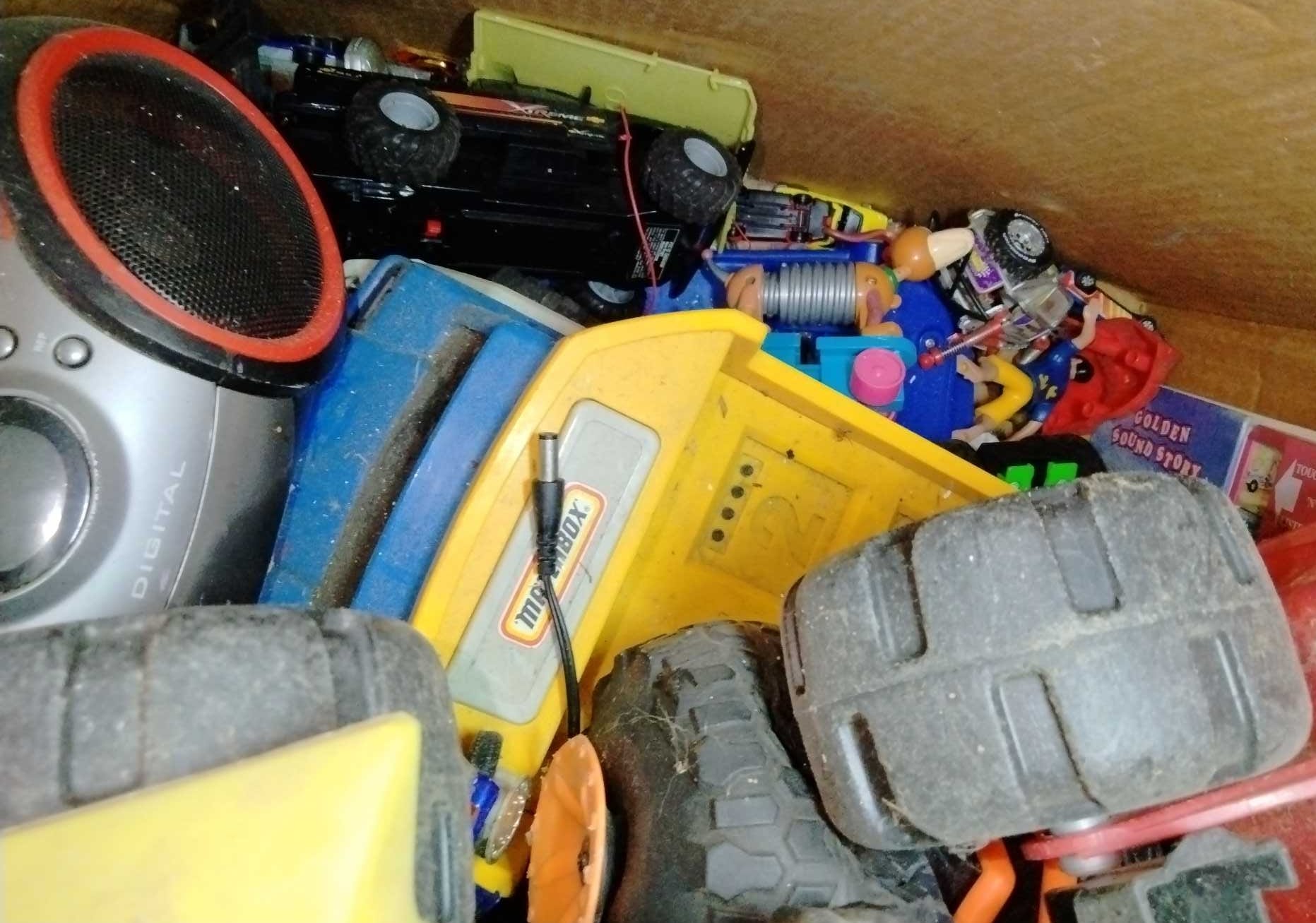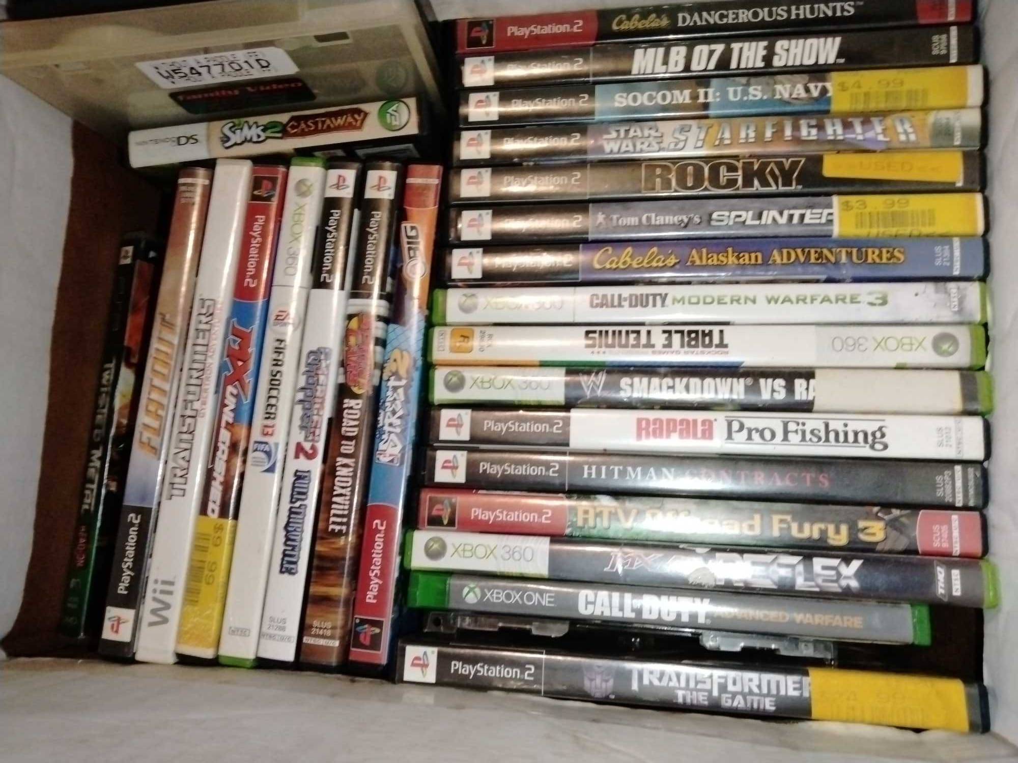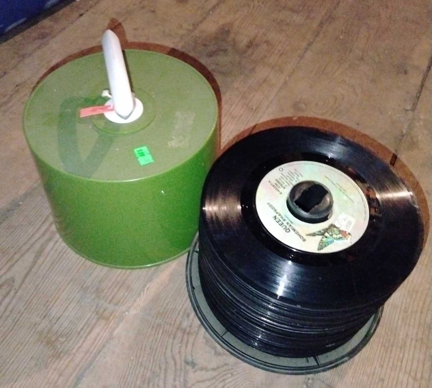 204 Wood crates, metal bread box, dominoes, books, cardboard barrel, metal lights