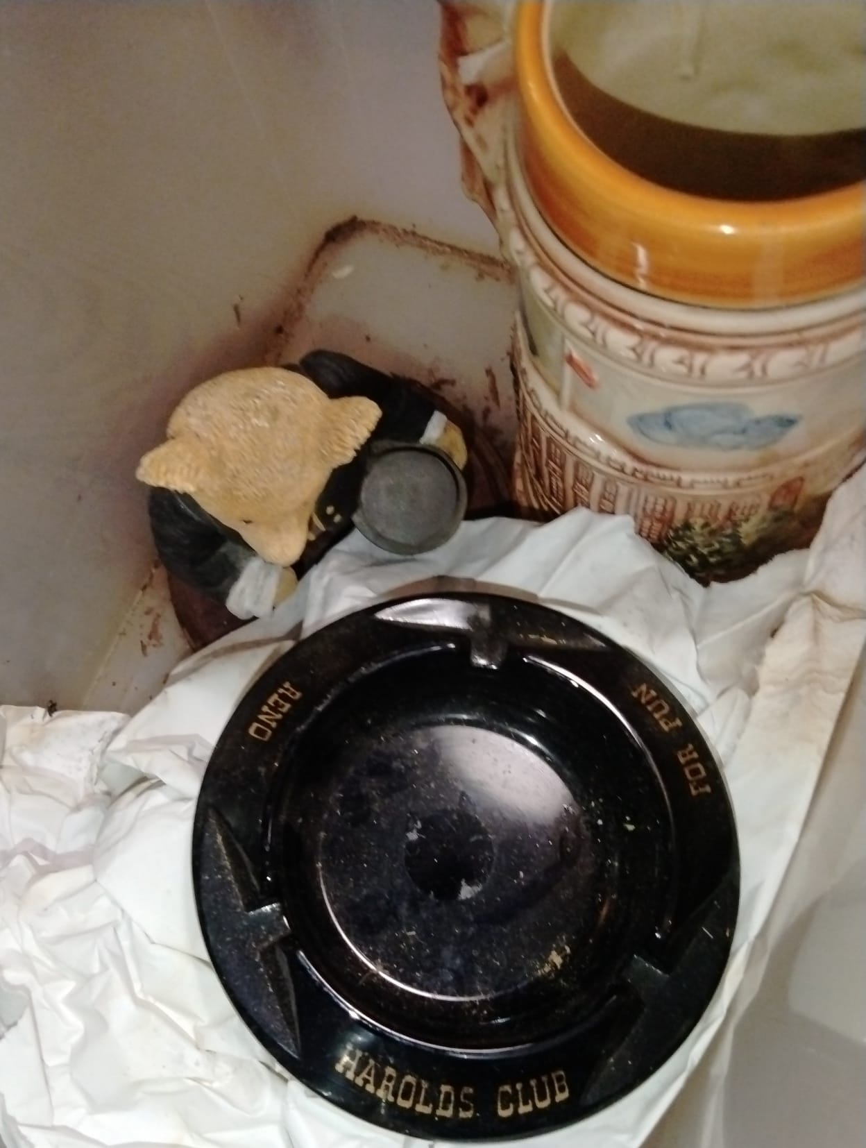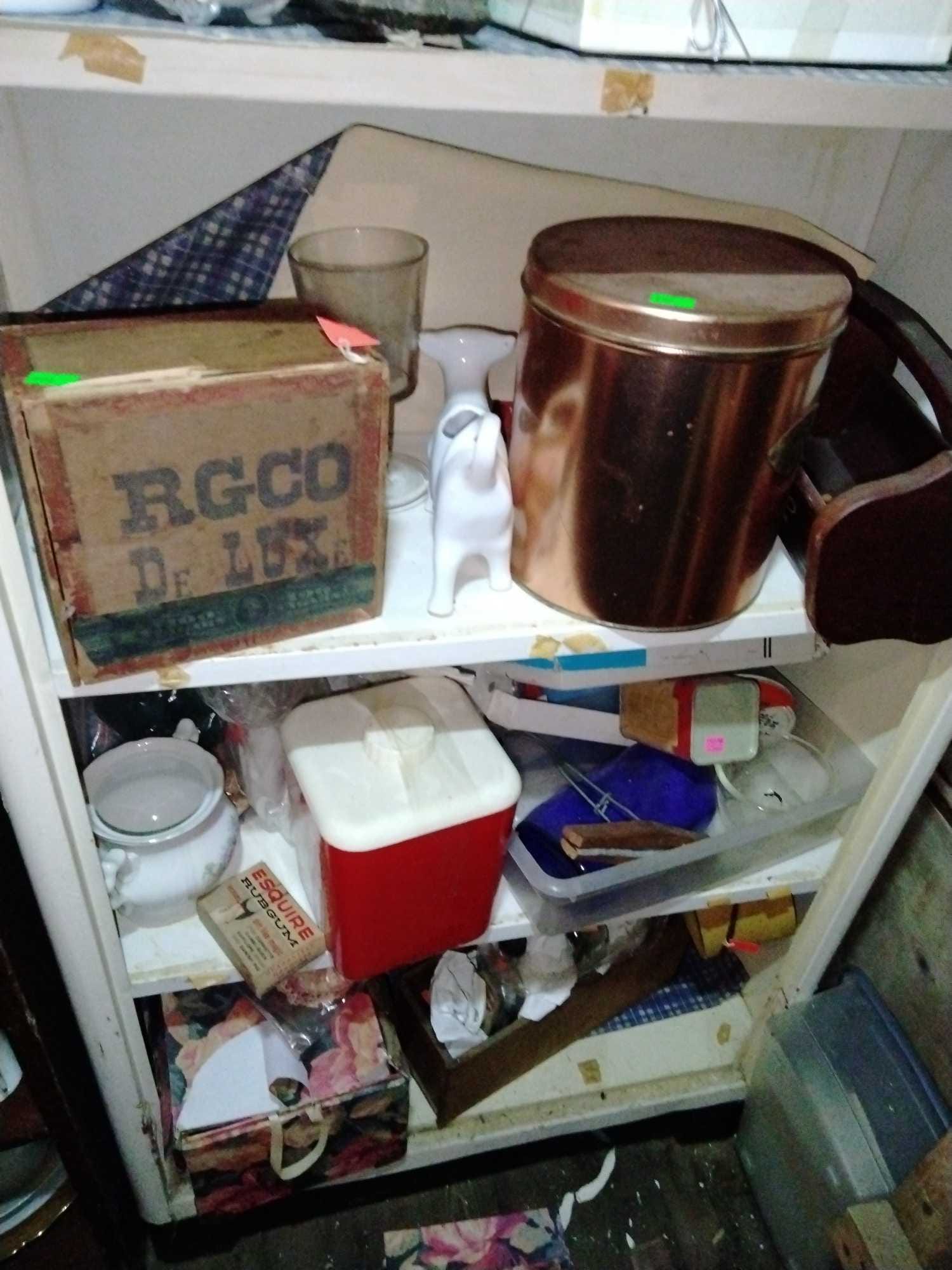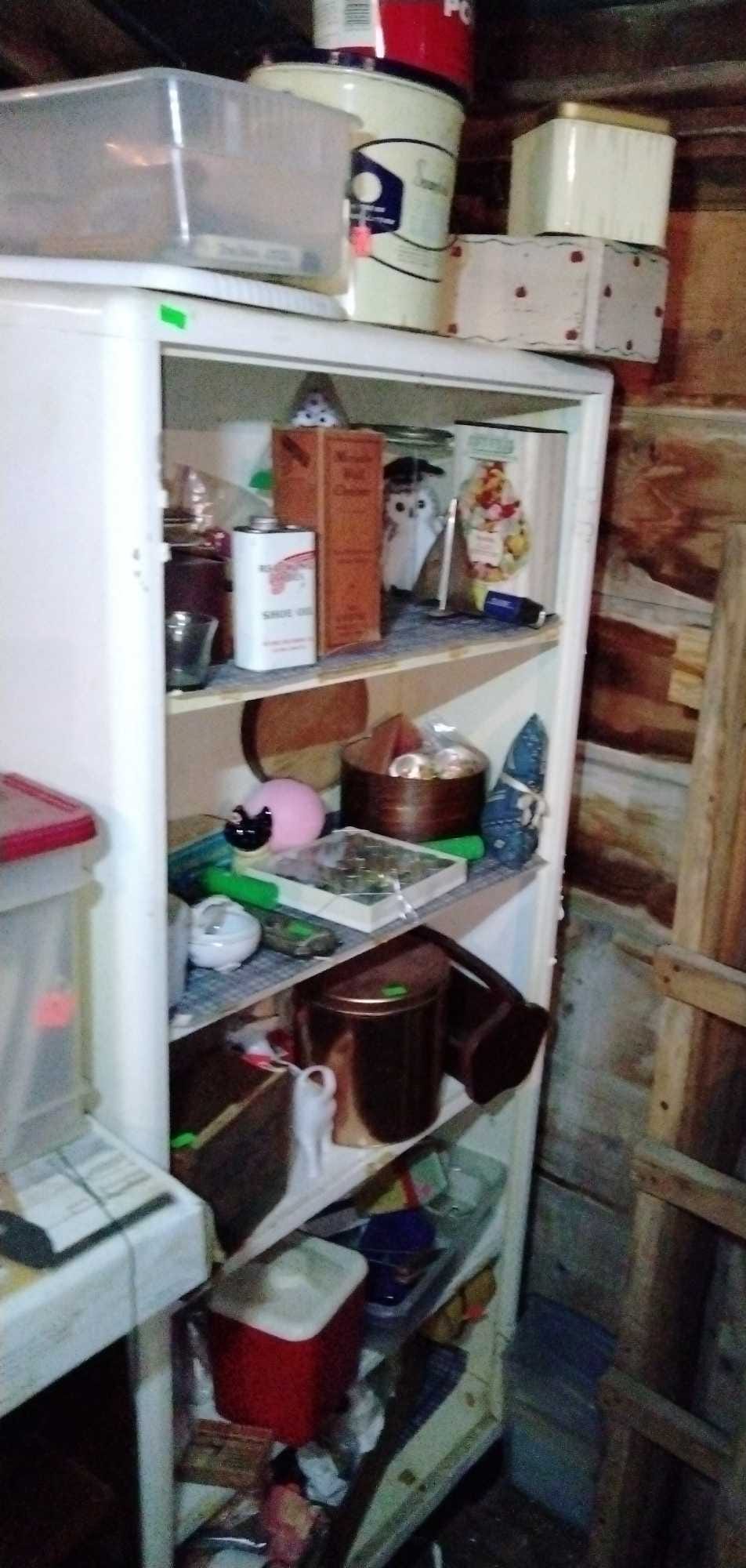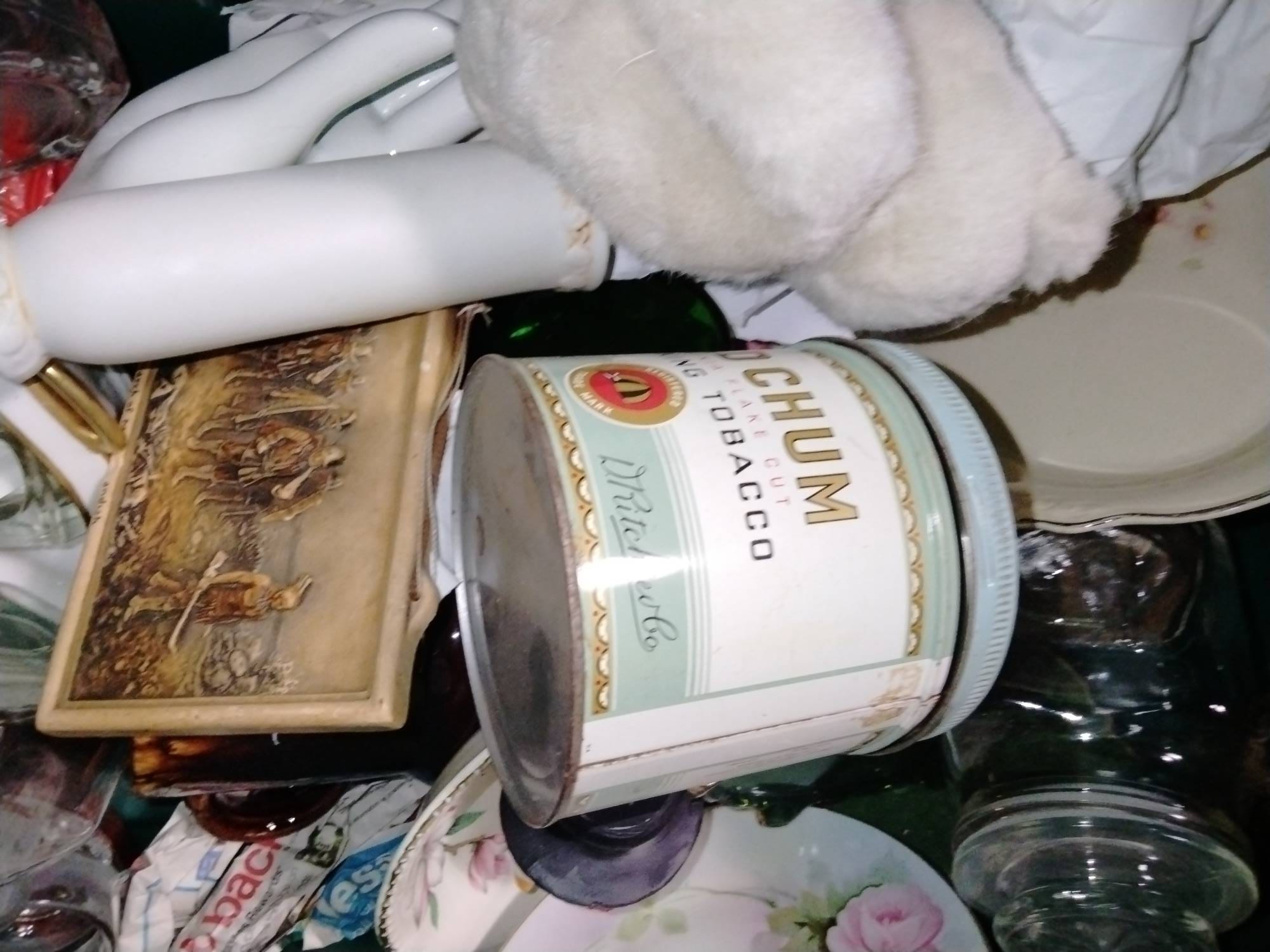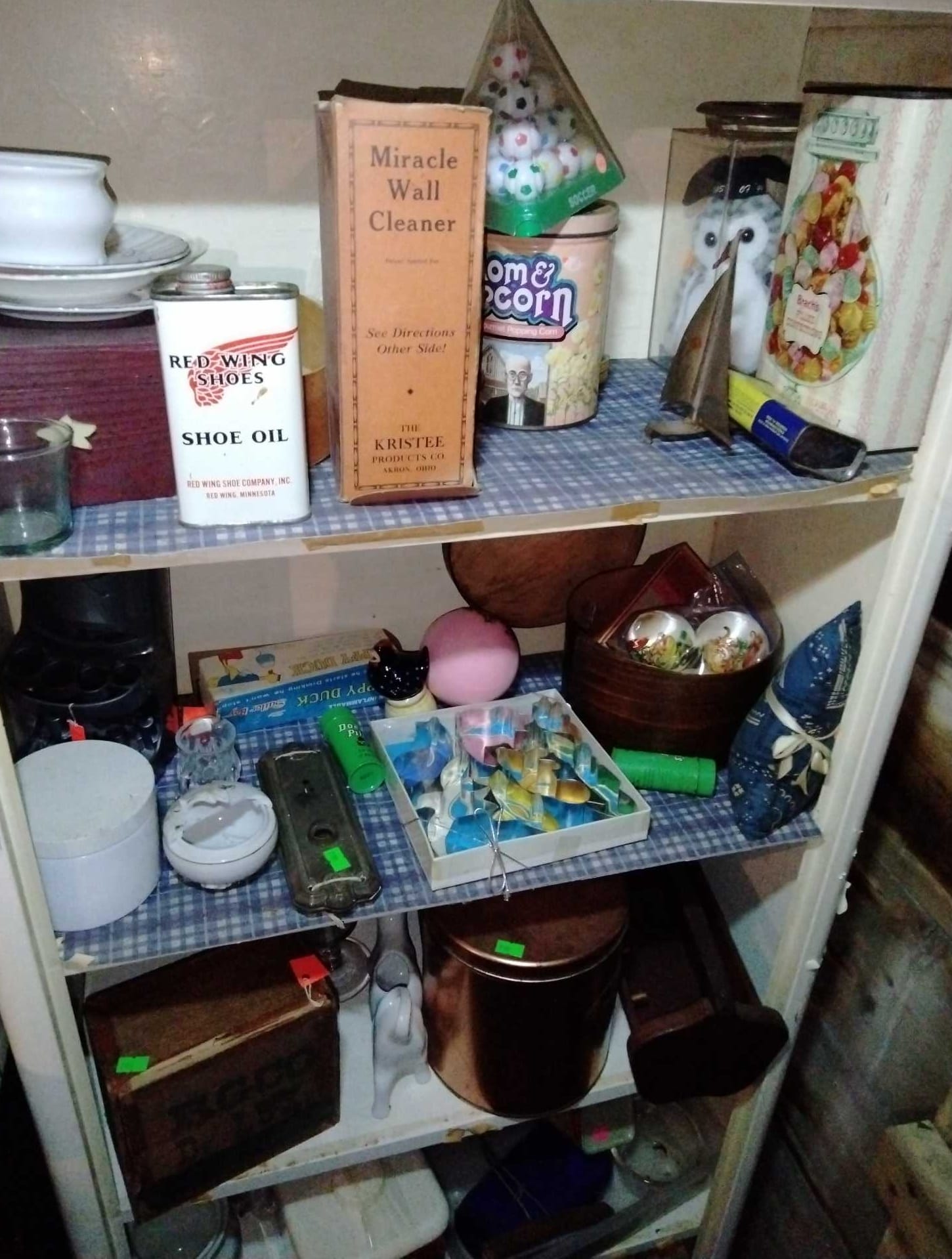 453 Coca-Cola bottles, Avon tin, East Knoll Pottery pitcher, pottery vase, McCormick Whiskey - empty, tins, miscellaneous