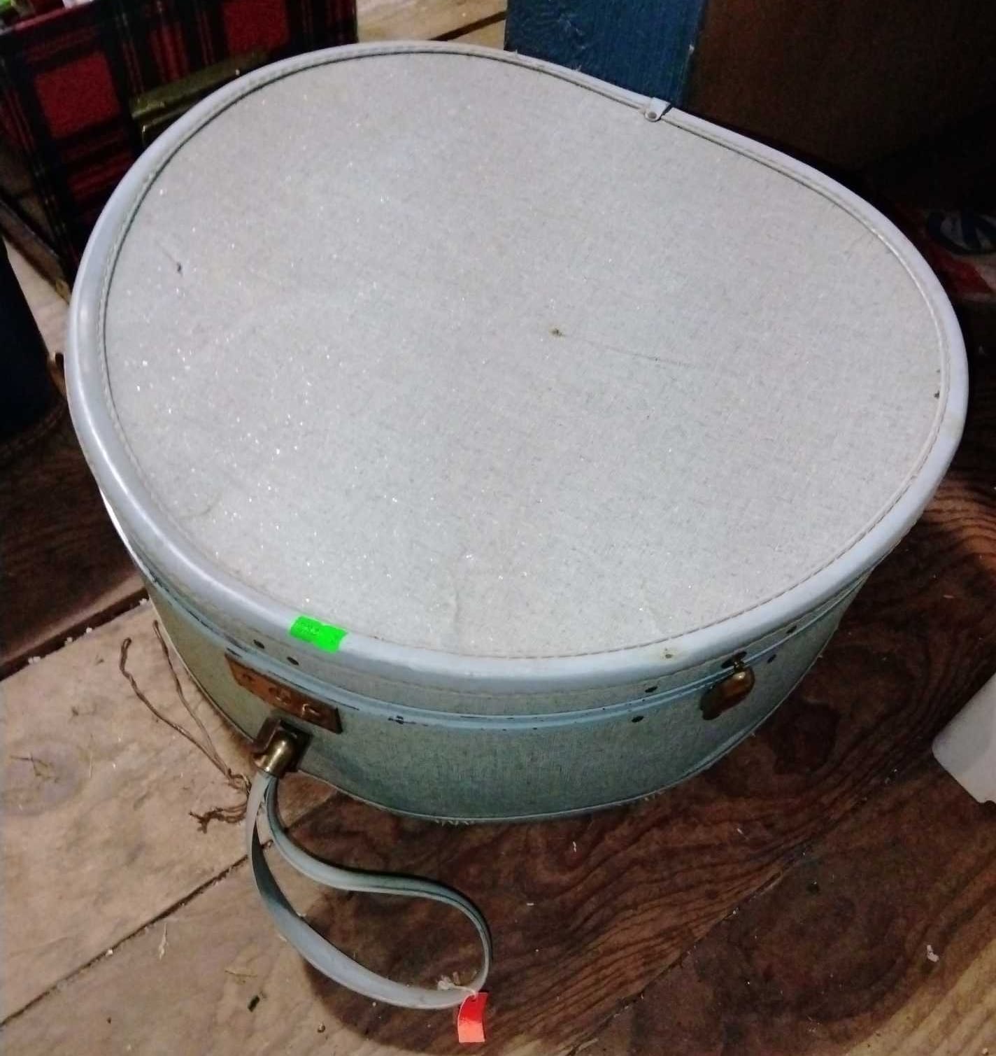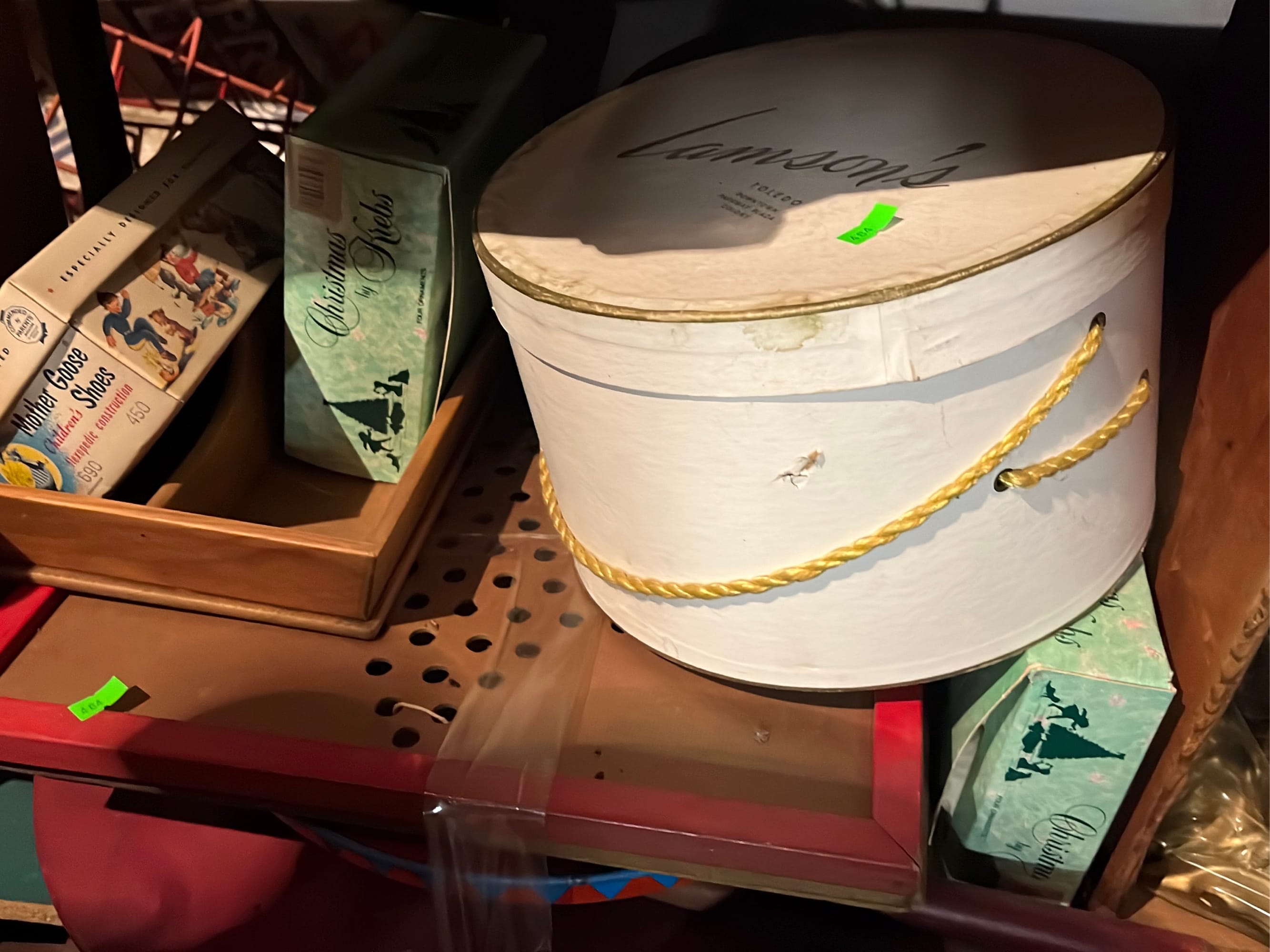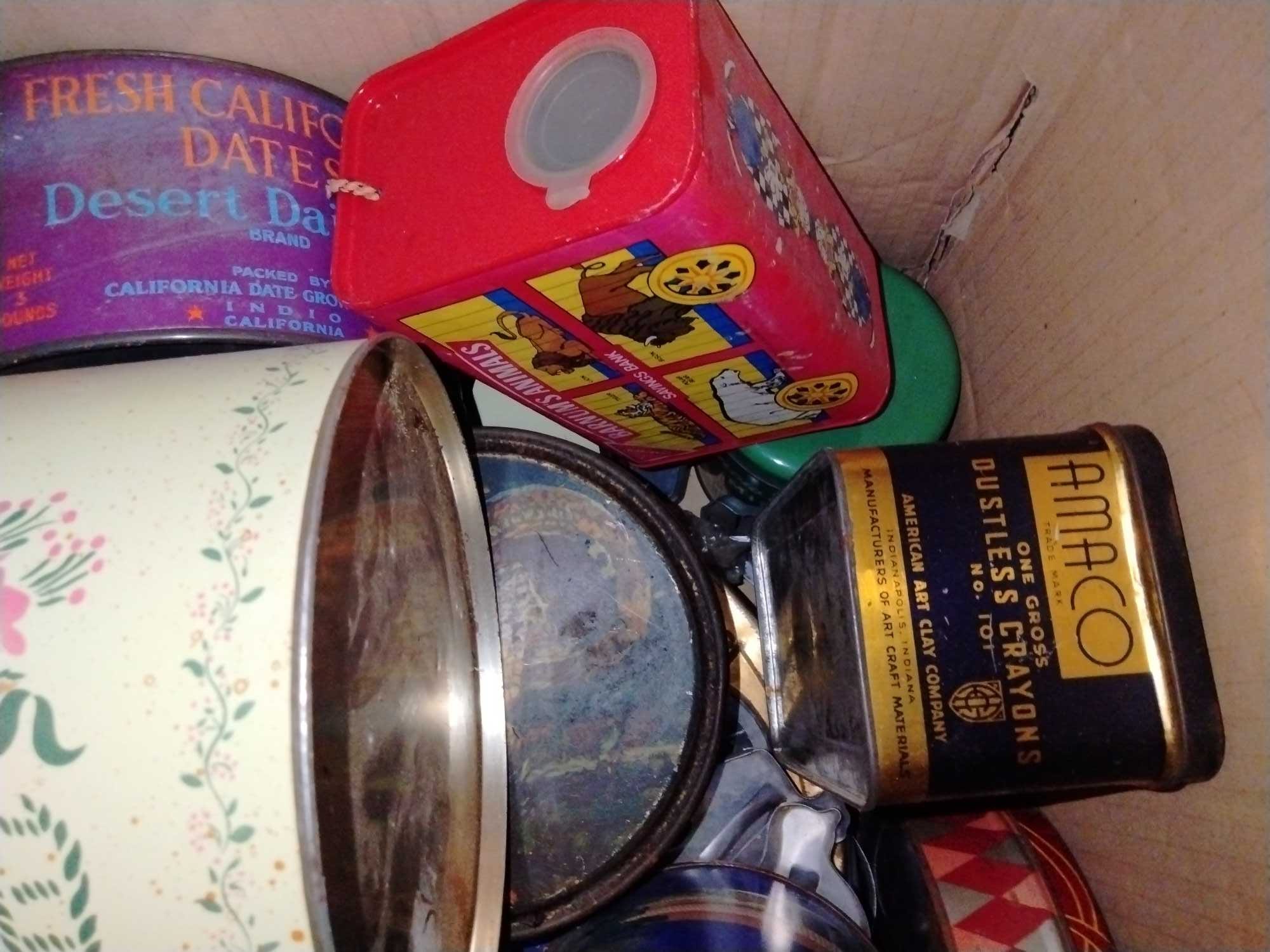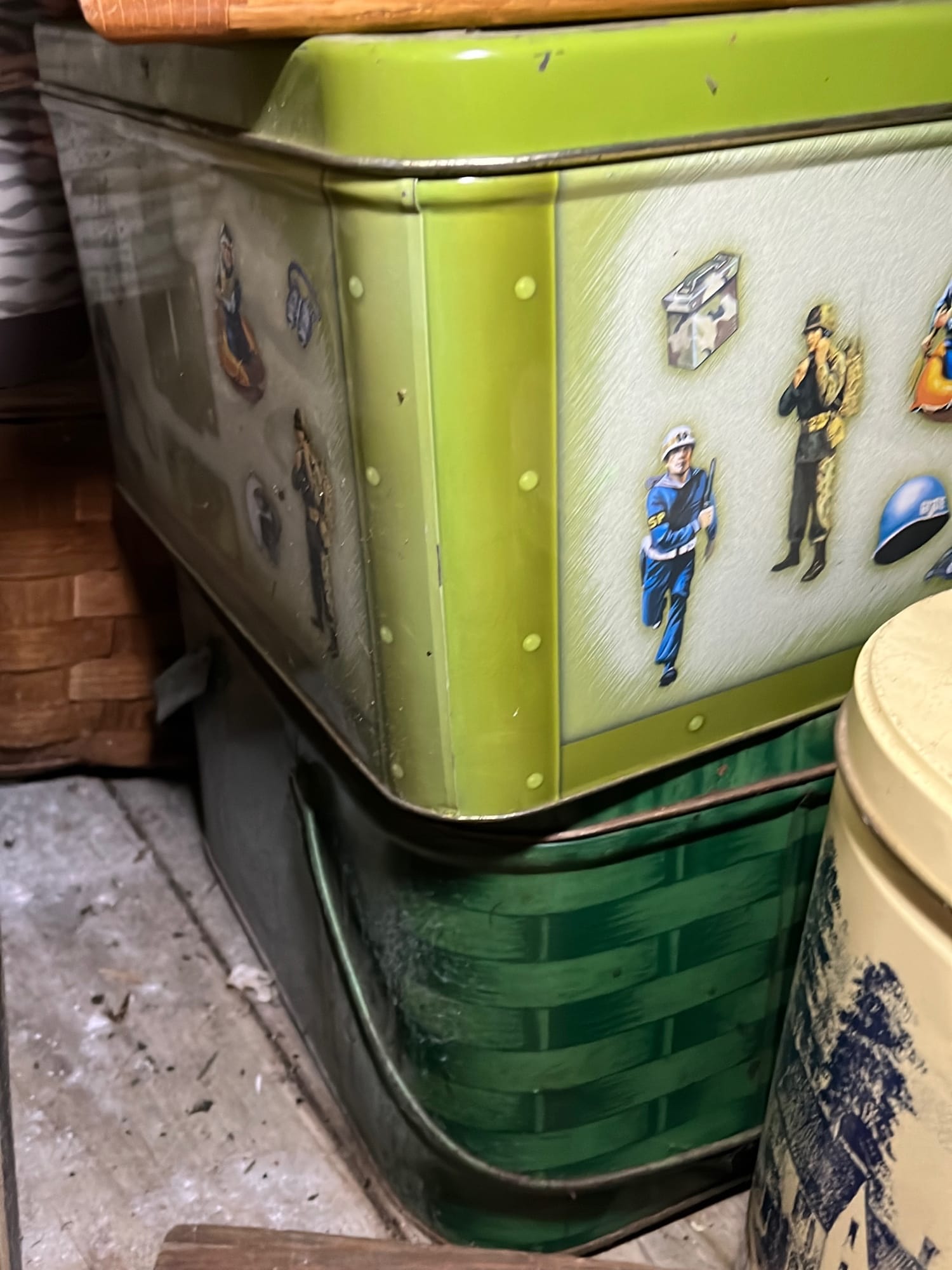475 Metal bread boxes, hat boxes, picnic basket, tin
