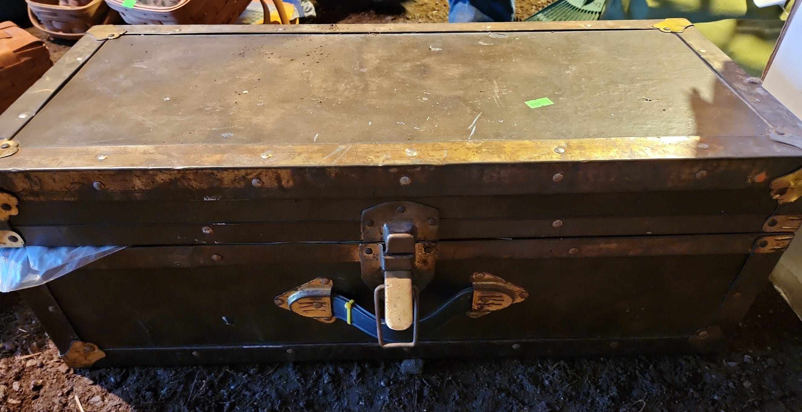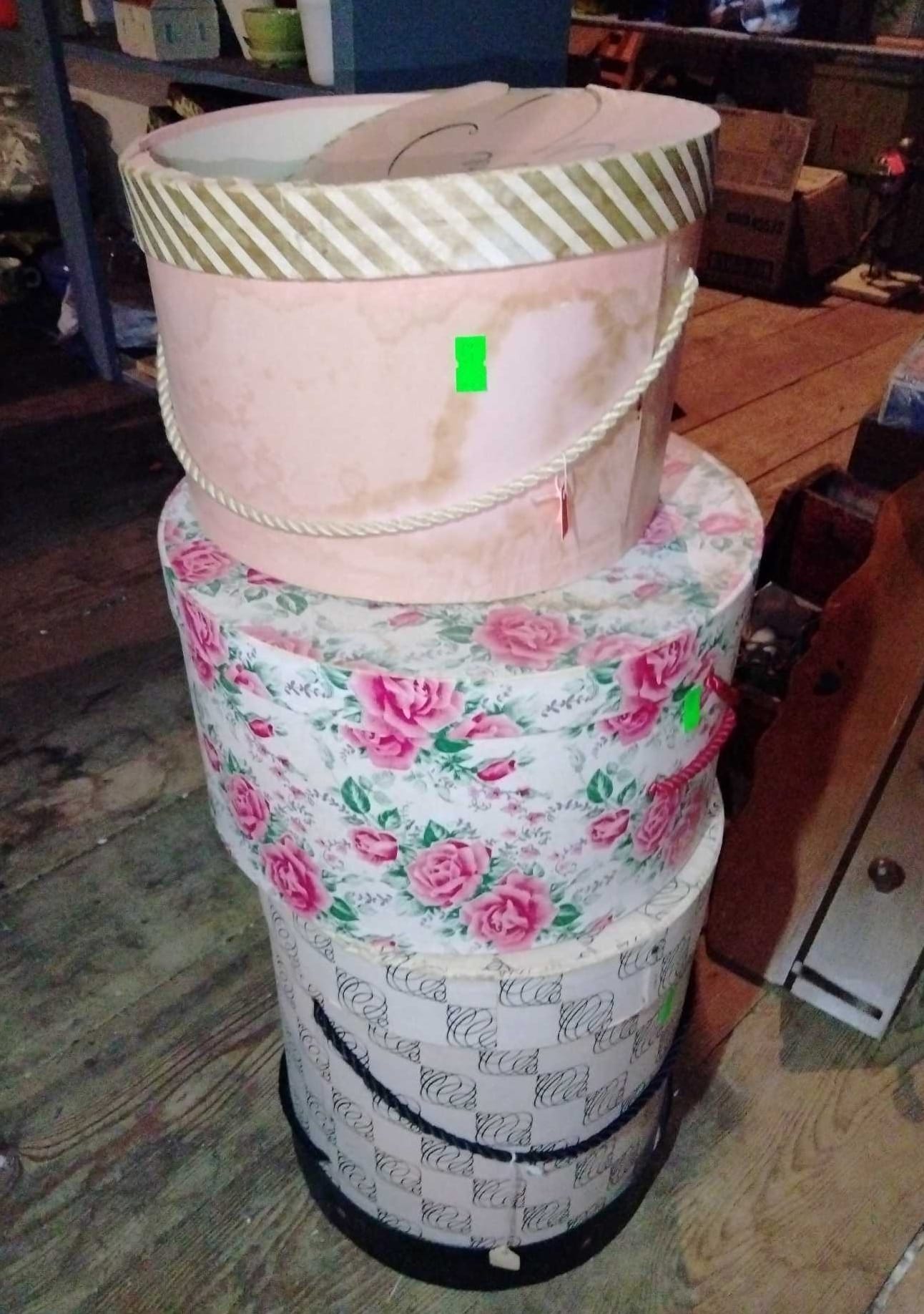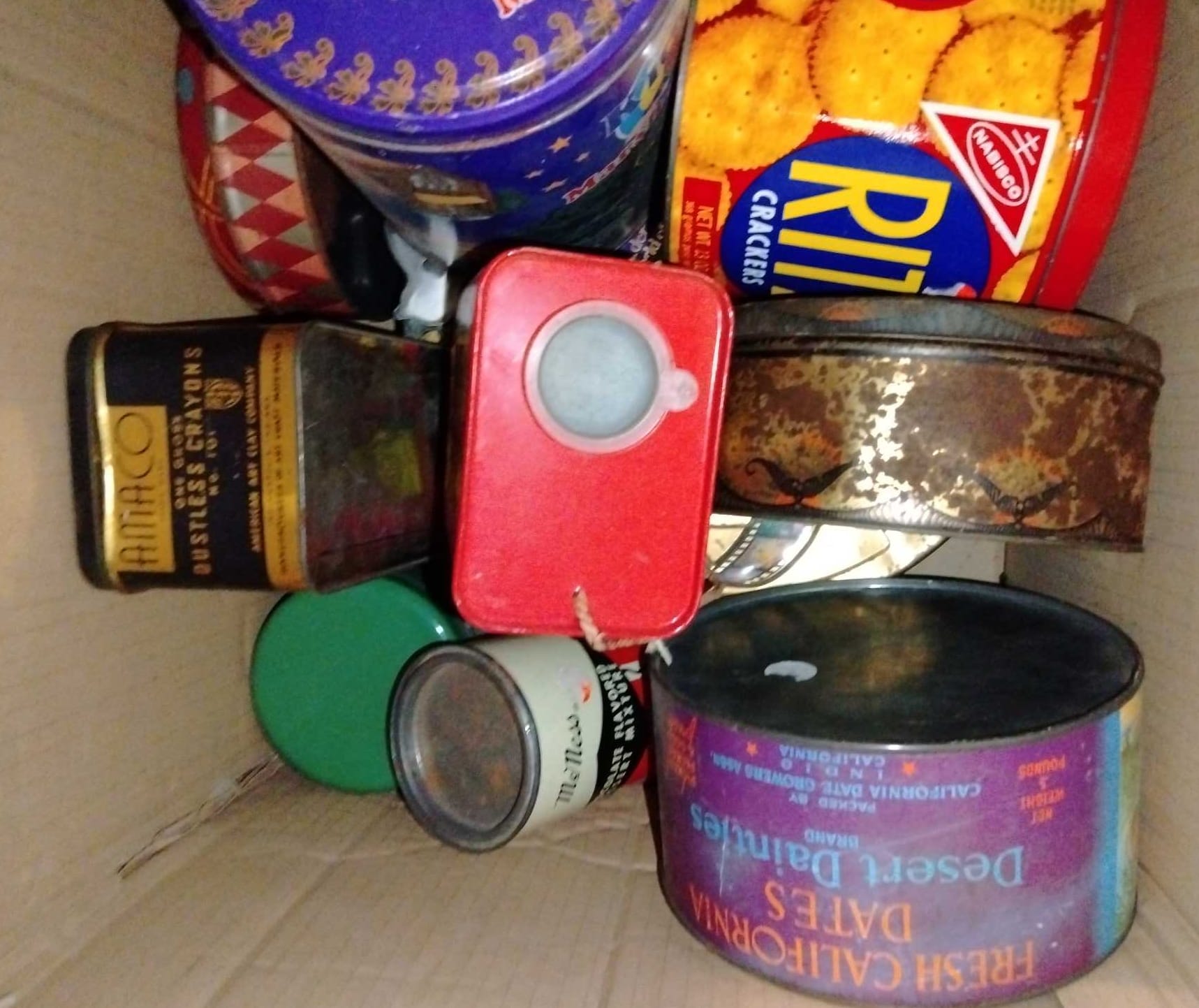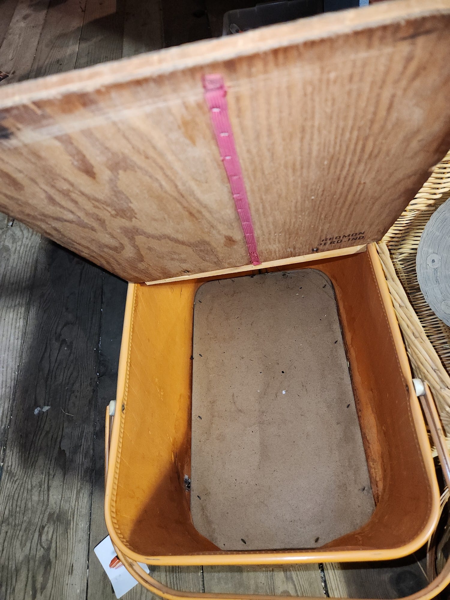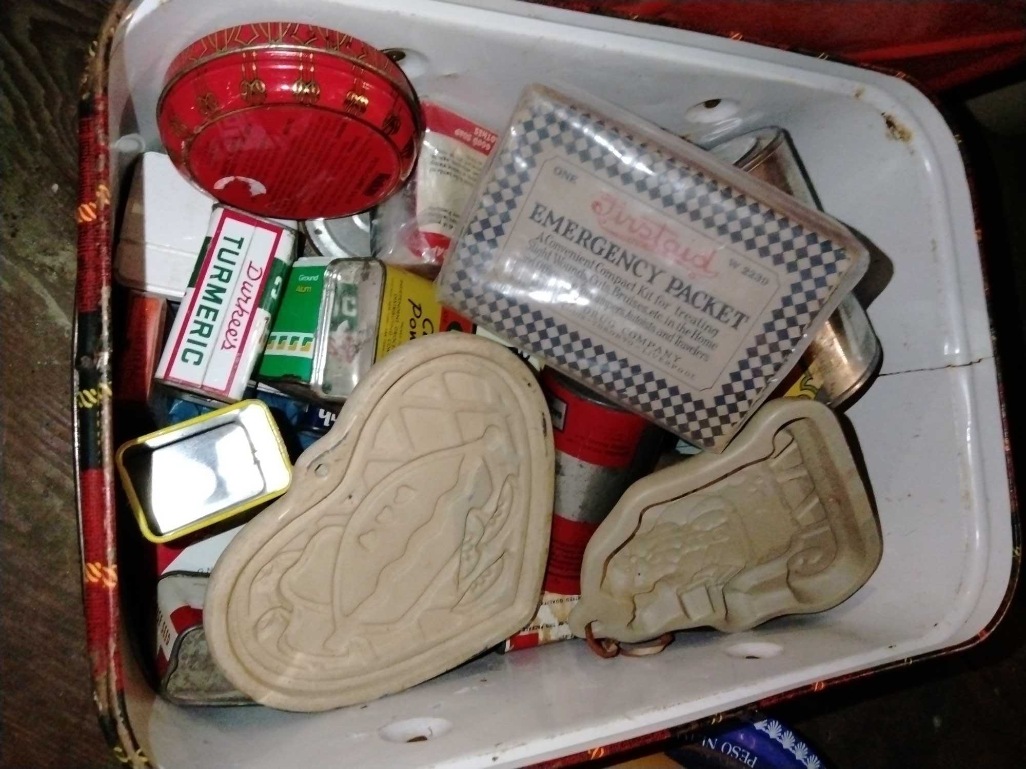 475 Metal bread boxes, hat boxes, picnic basket, tin