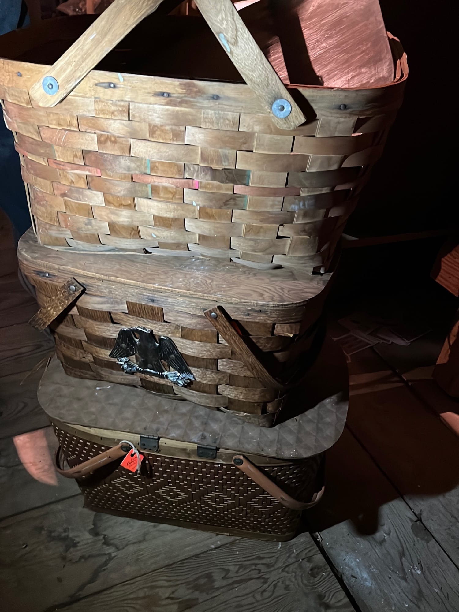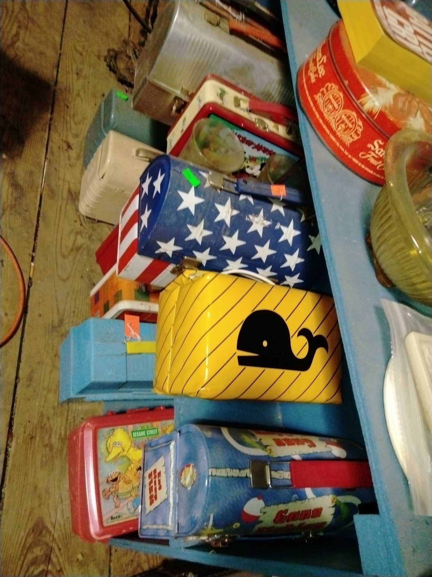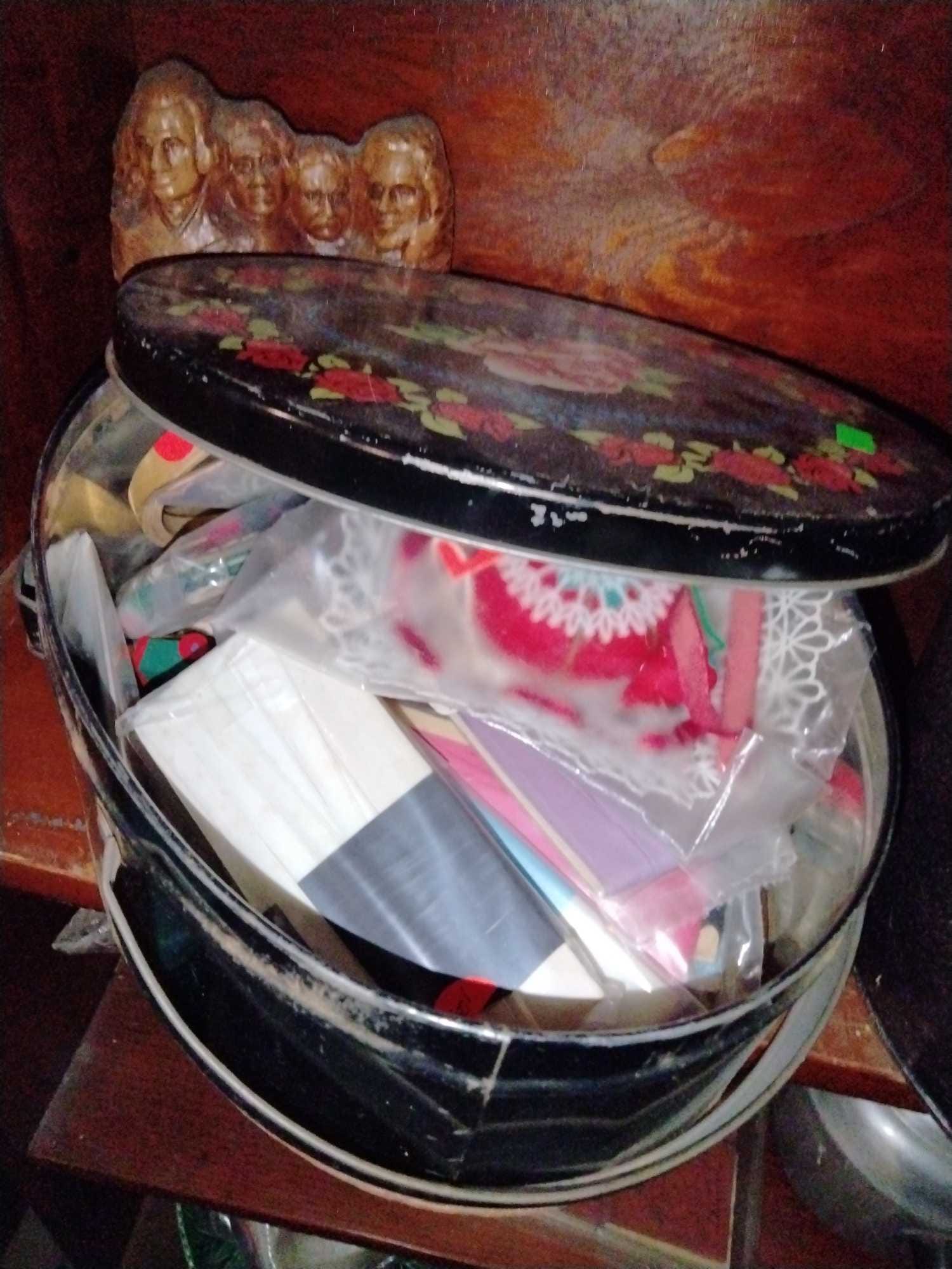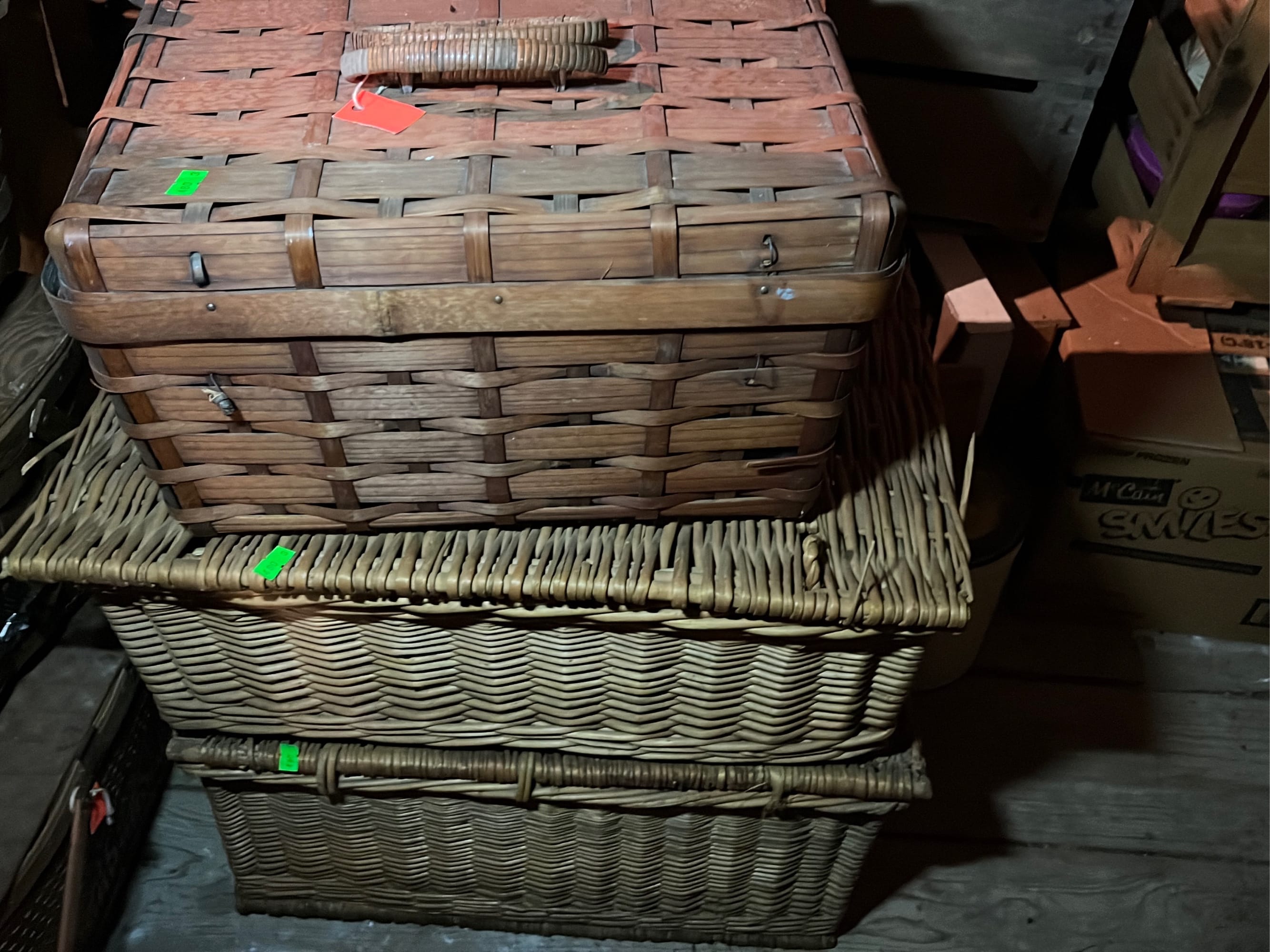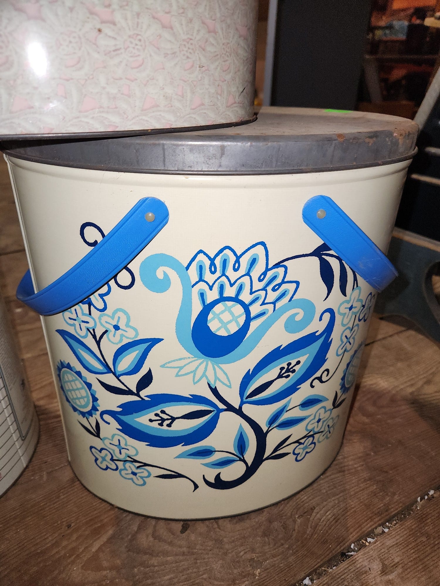 475 Metal bread boxes, hat boxes, picnic basket, tin