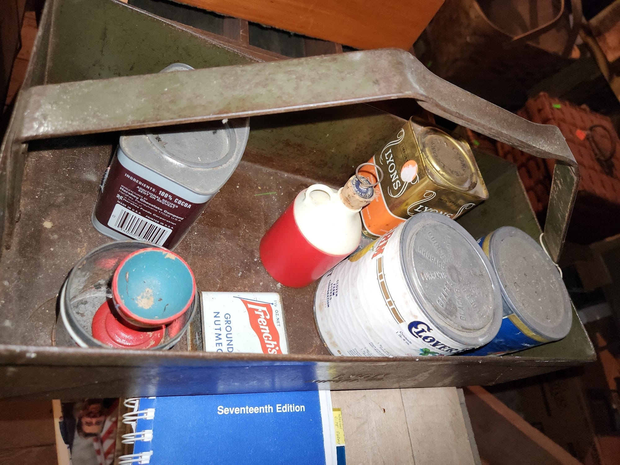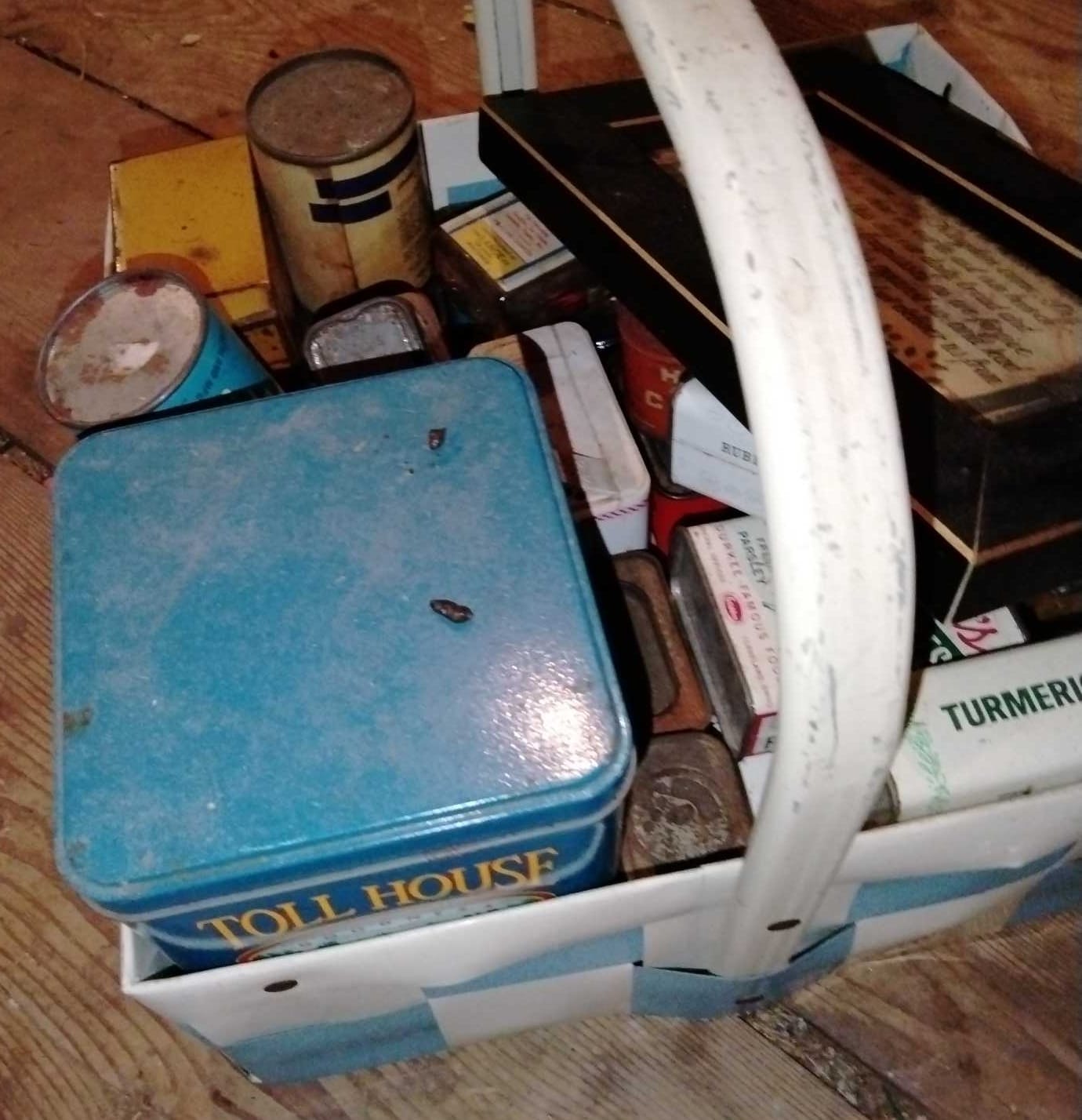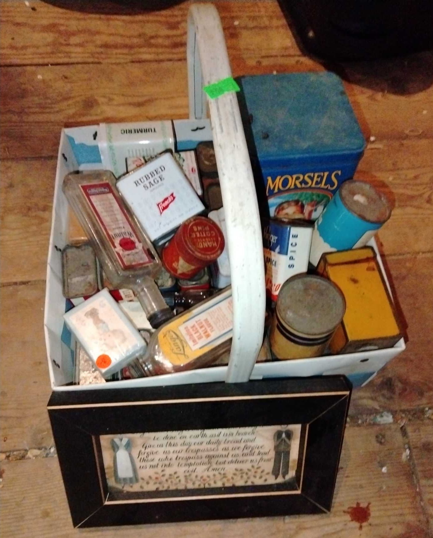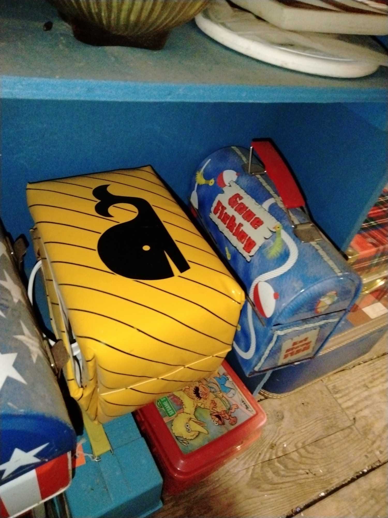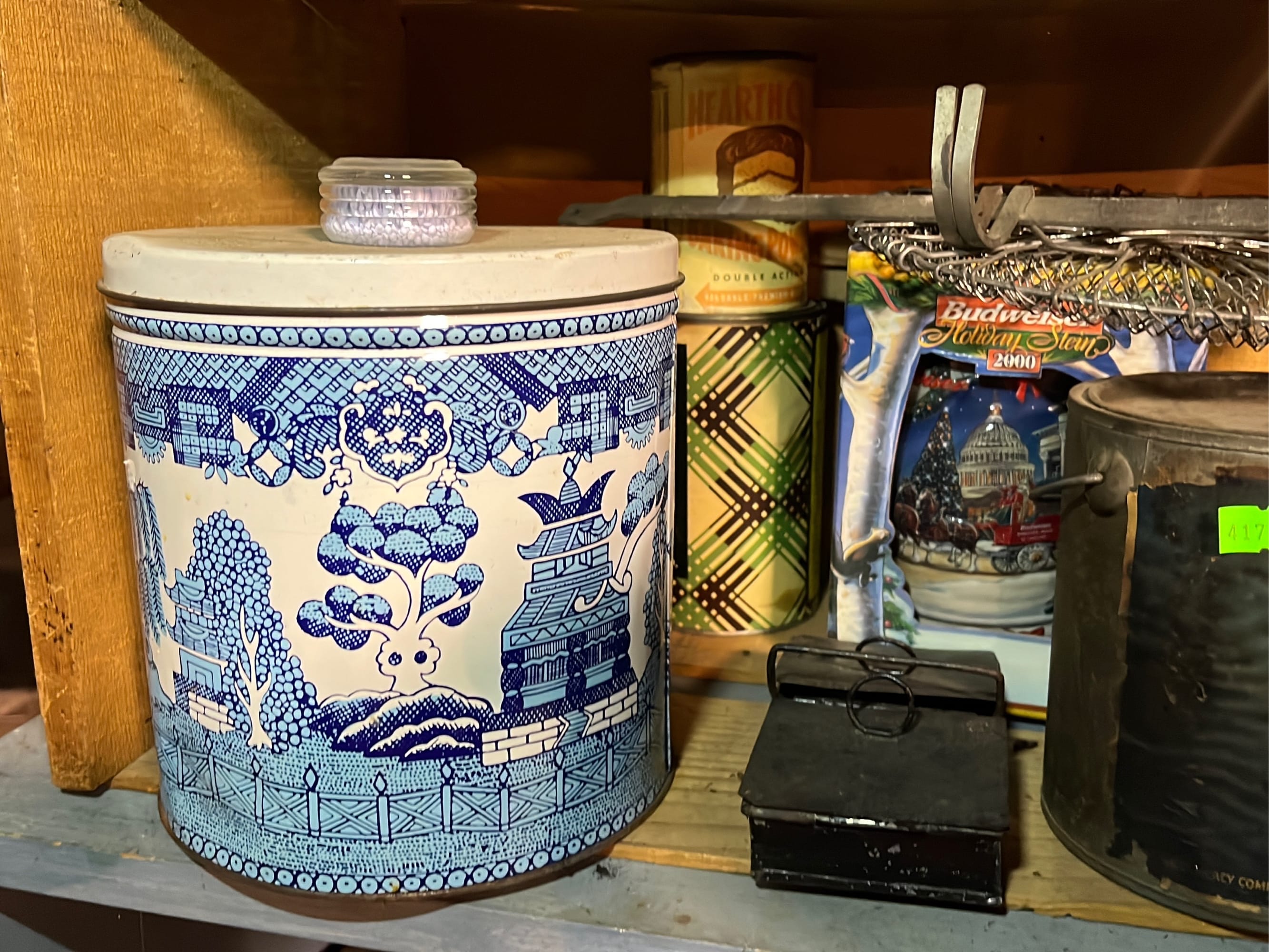 475 Metal bread boxes, hat boxes, picnic basket, tin