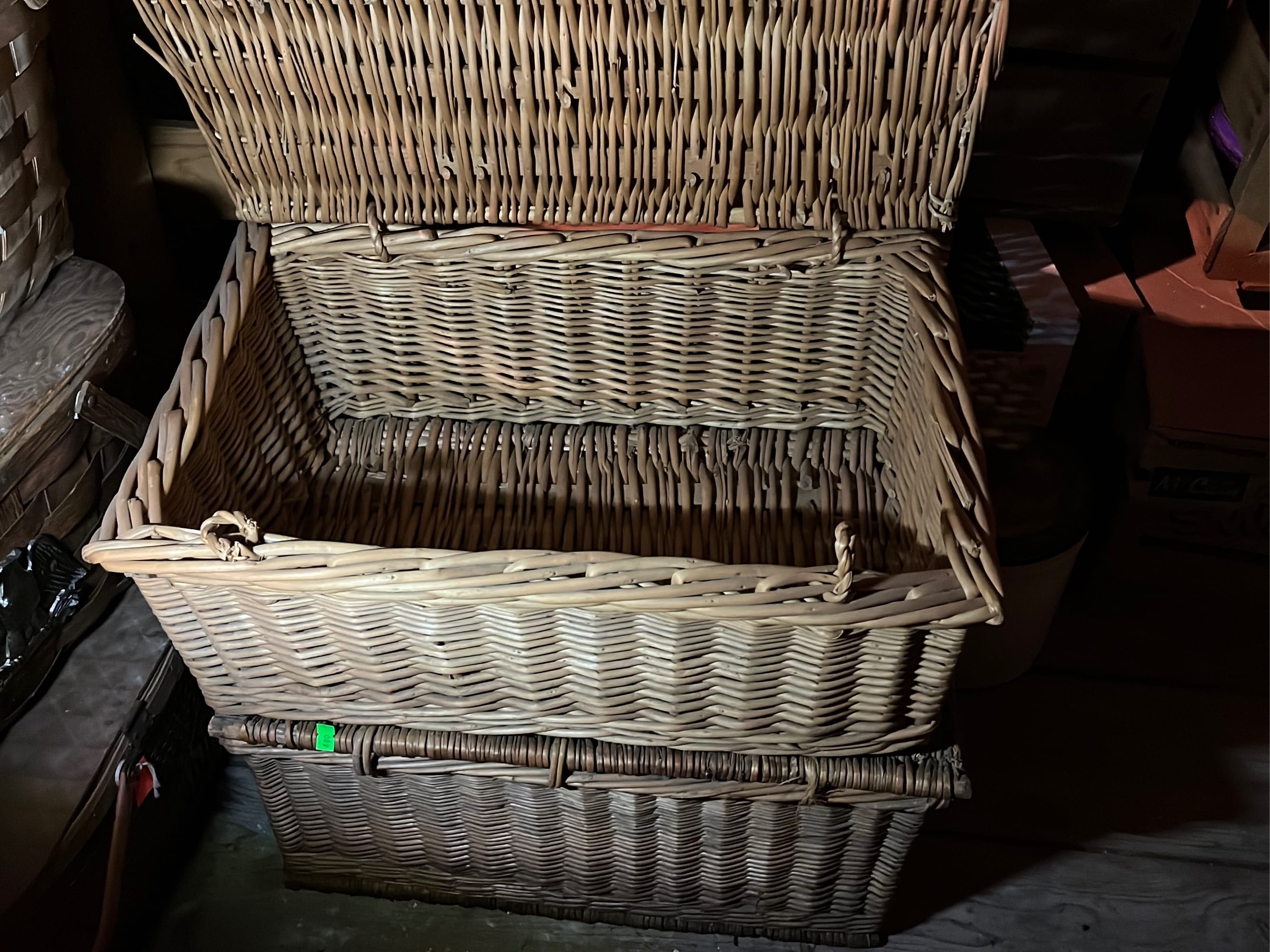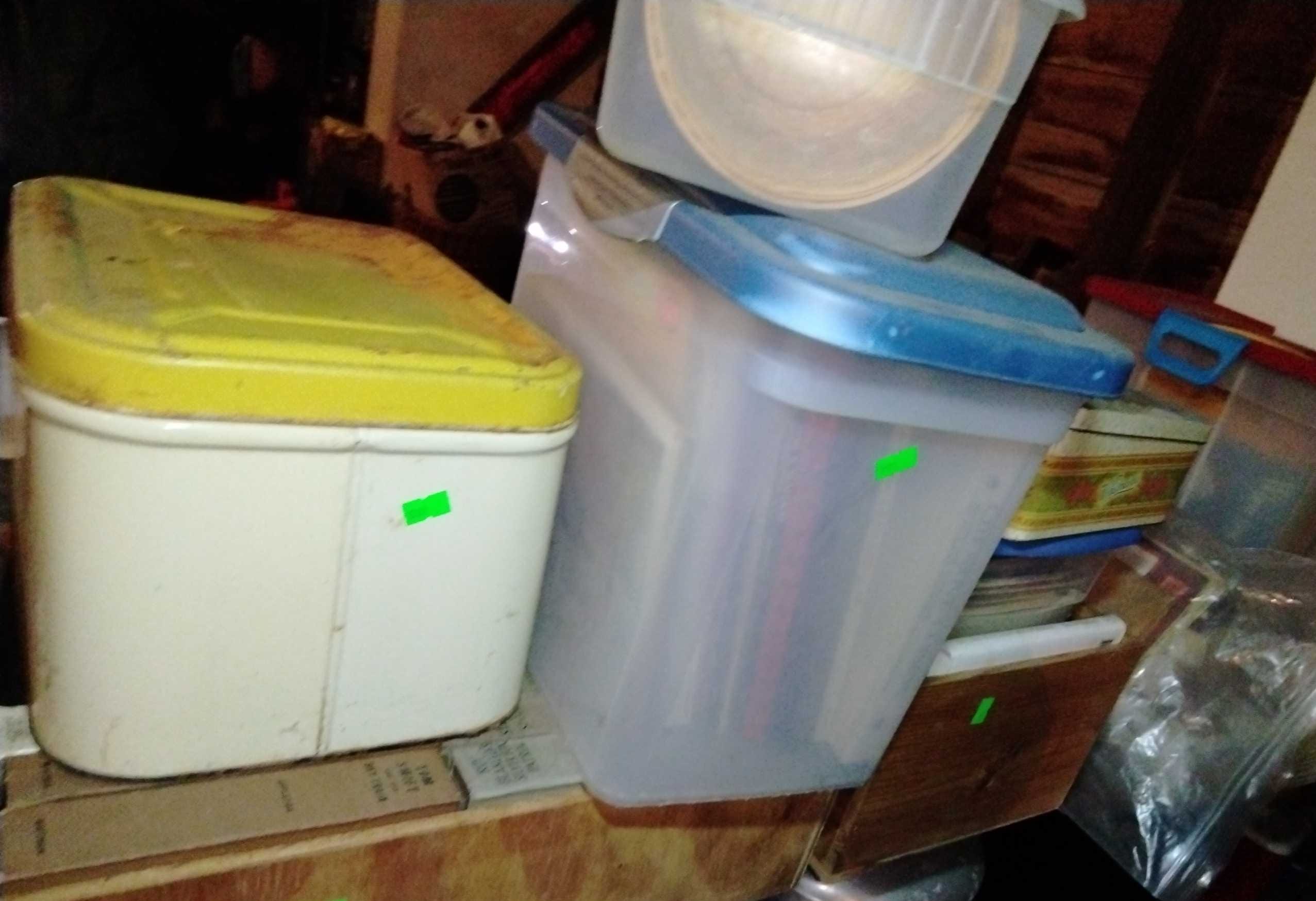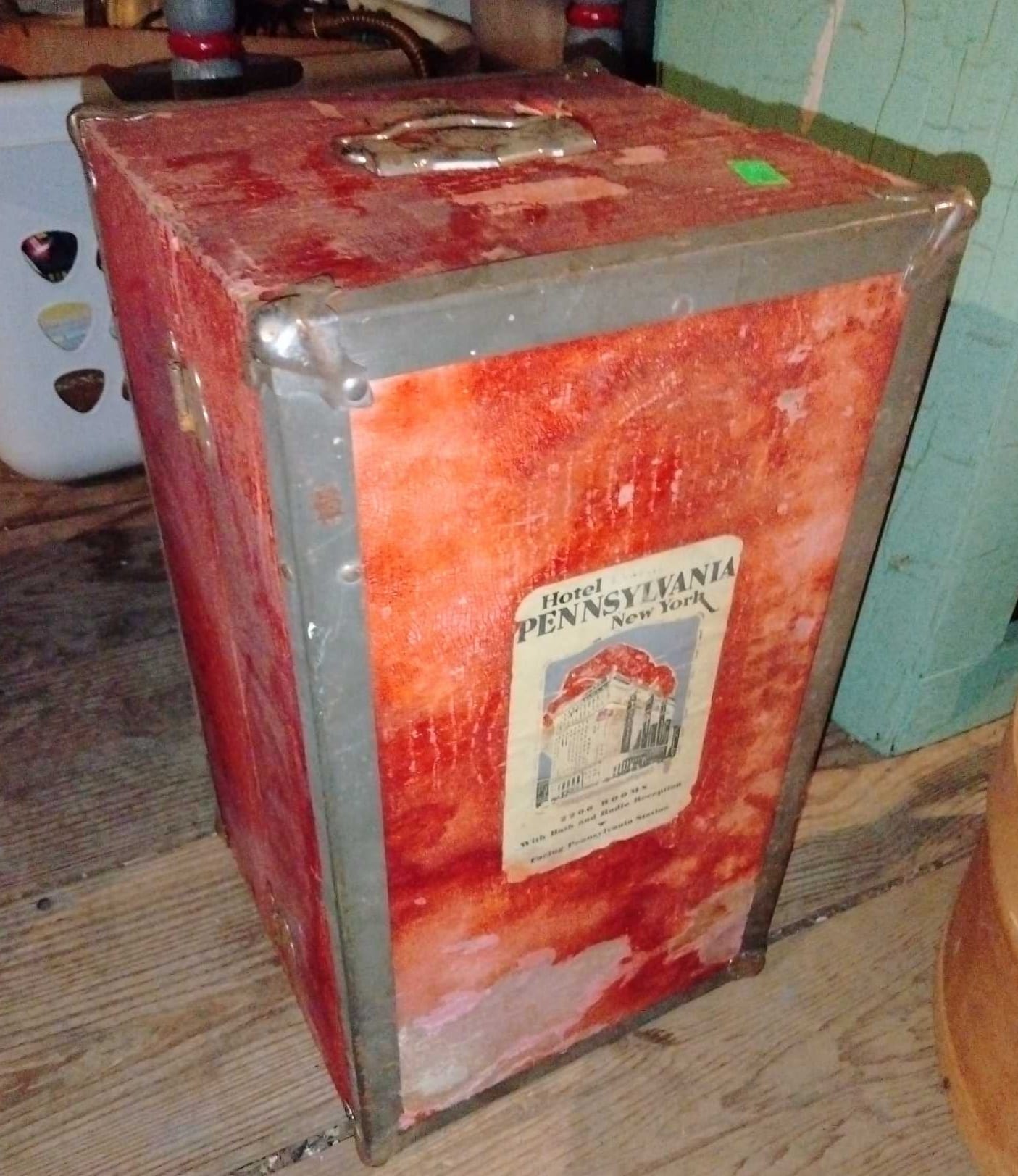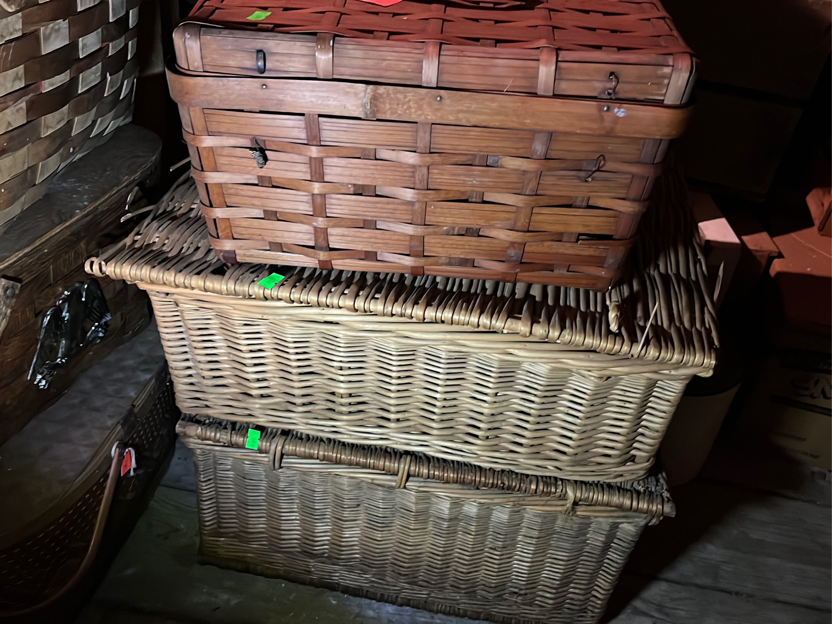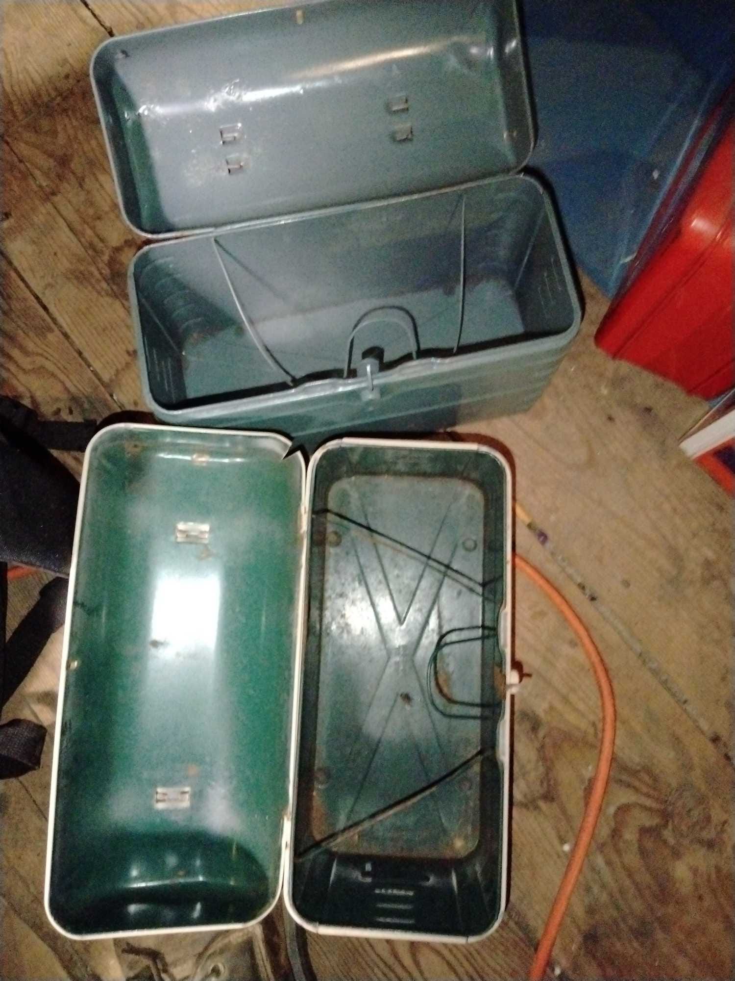 475 Metal bread boxes, hat boxes, picnic basket, tin