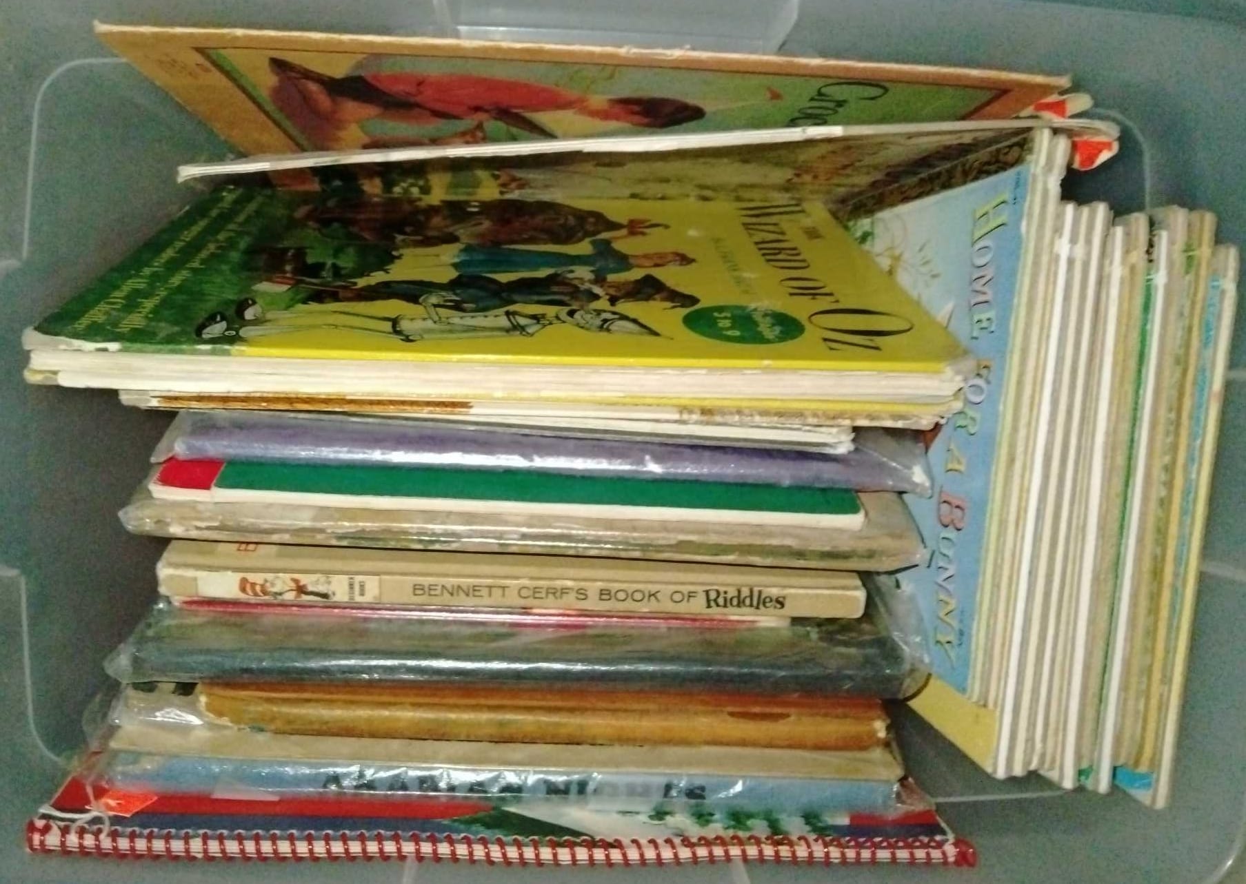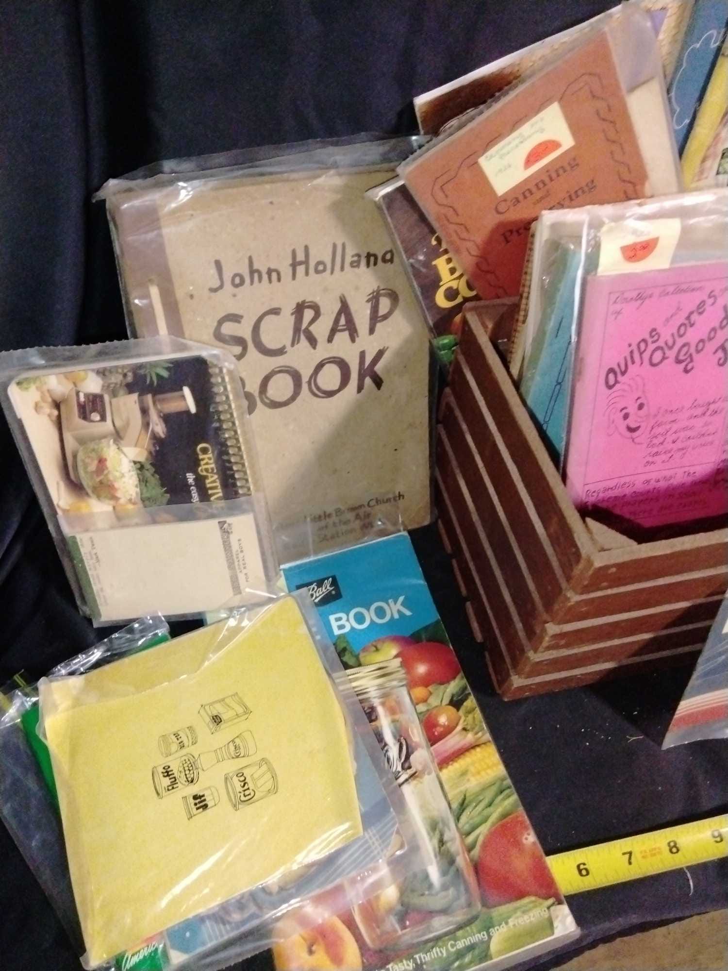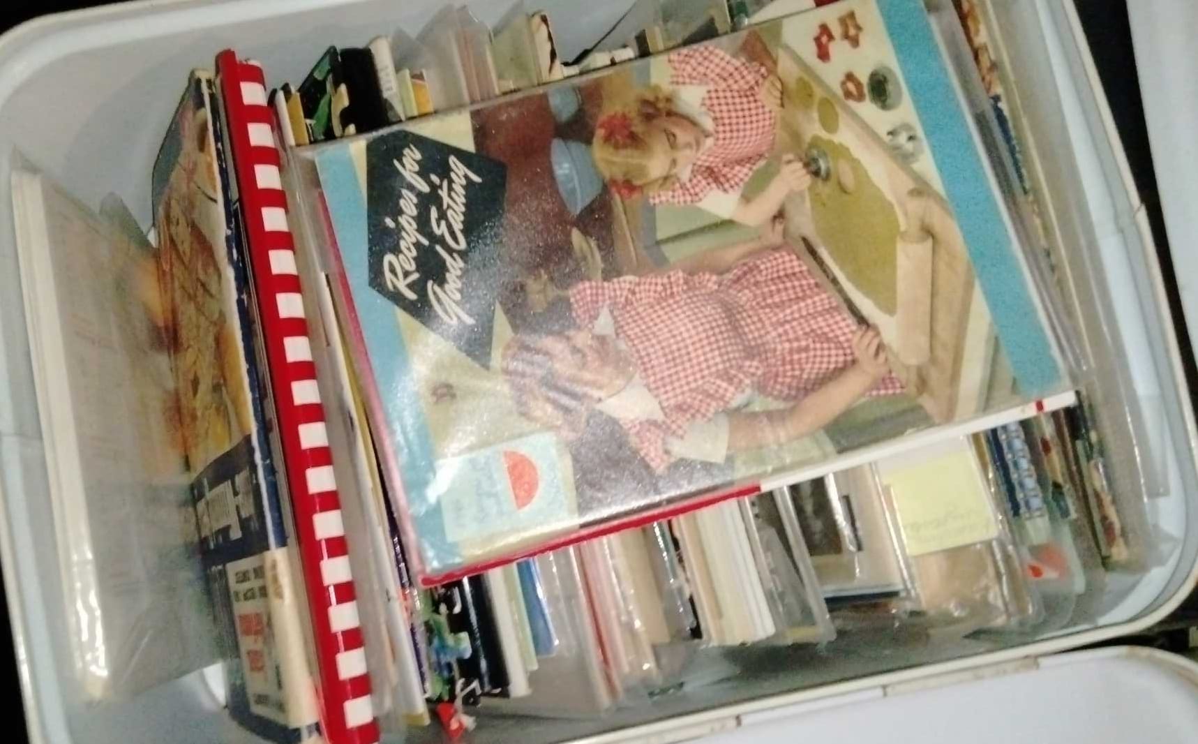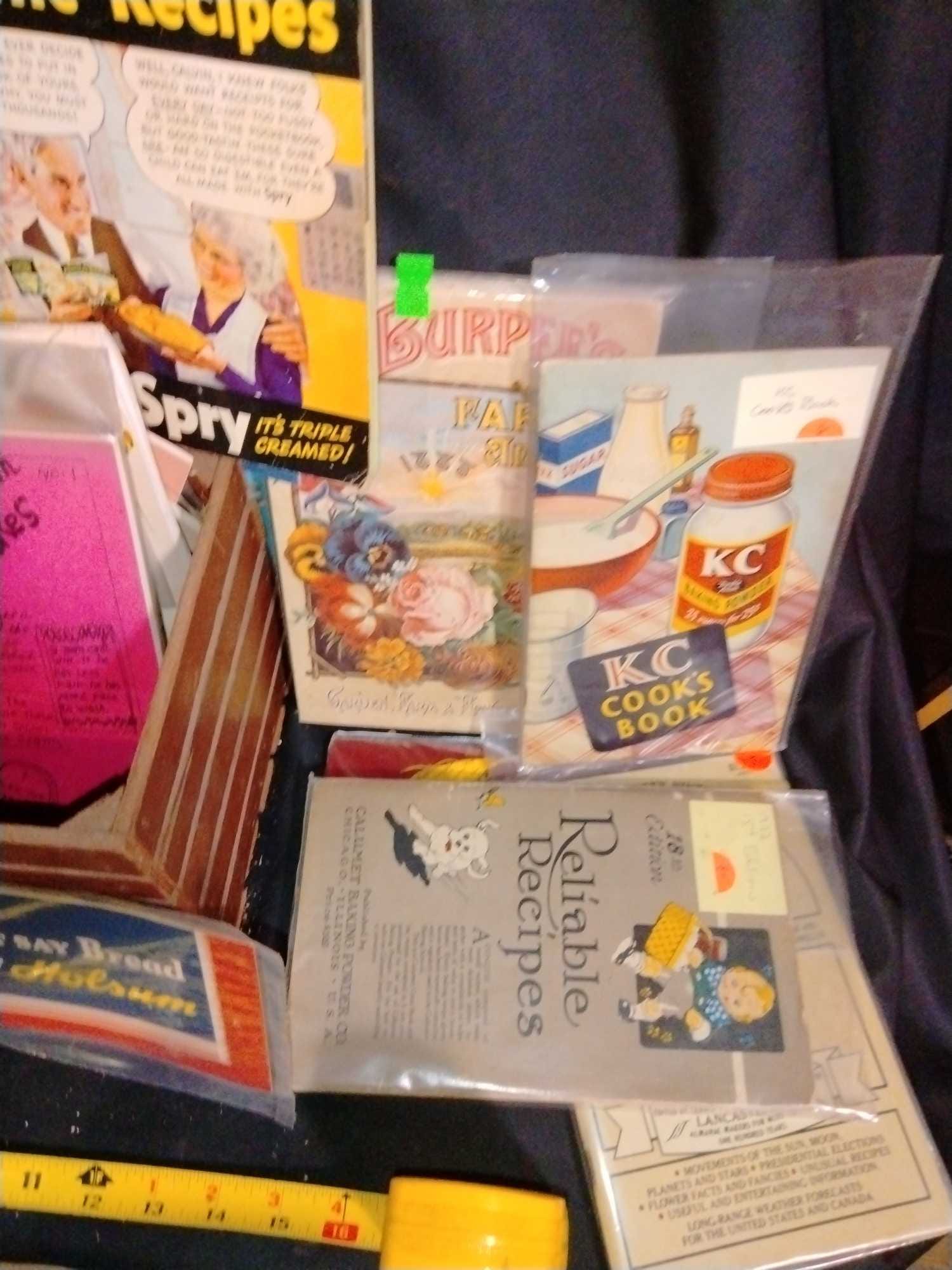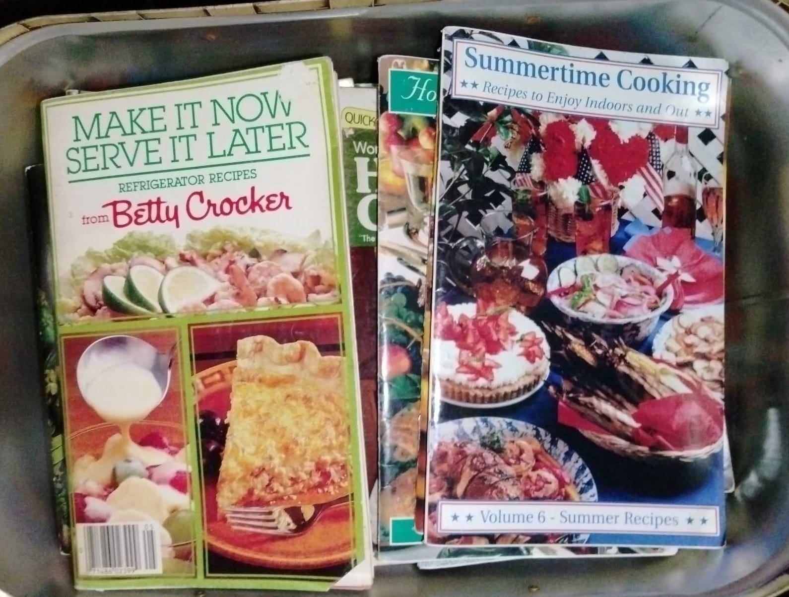223 Children's and Cookbook assortment, metal picnic baskets, metal bread boxes