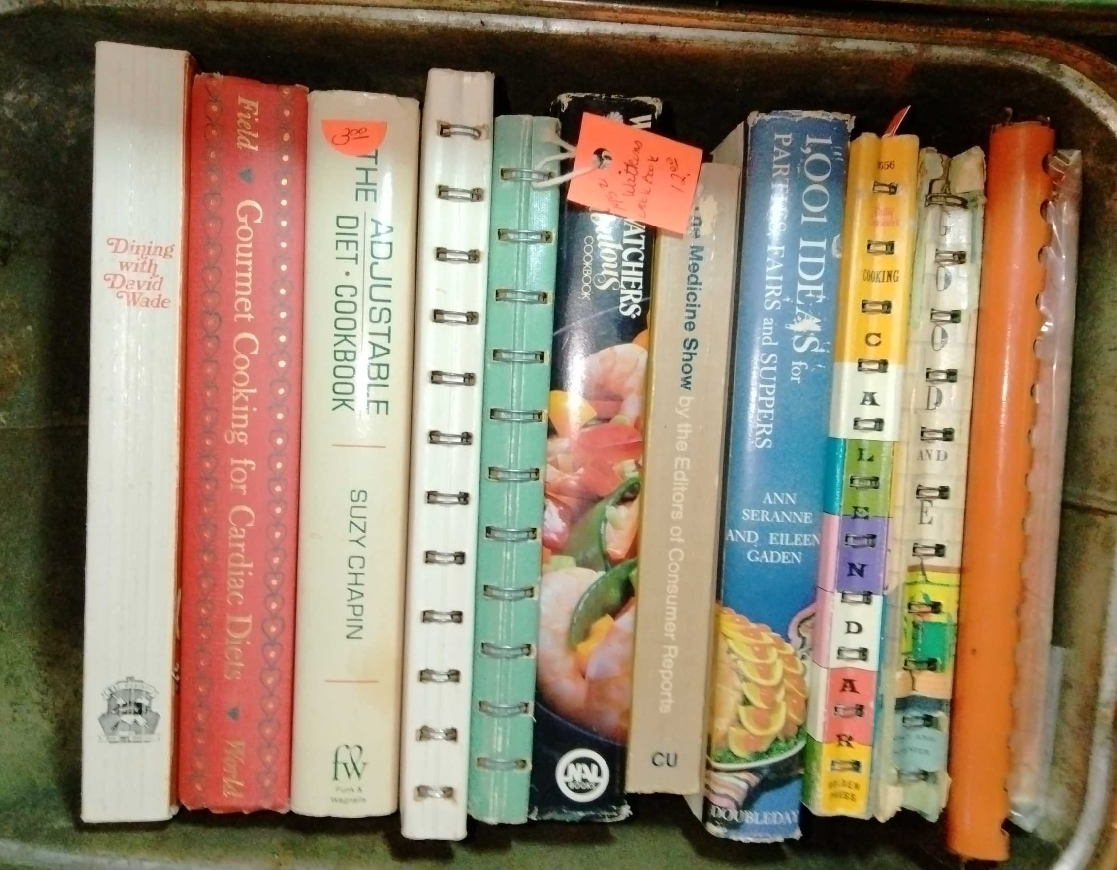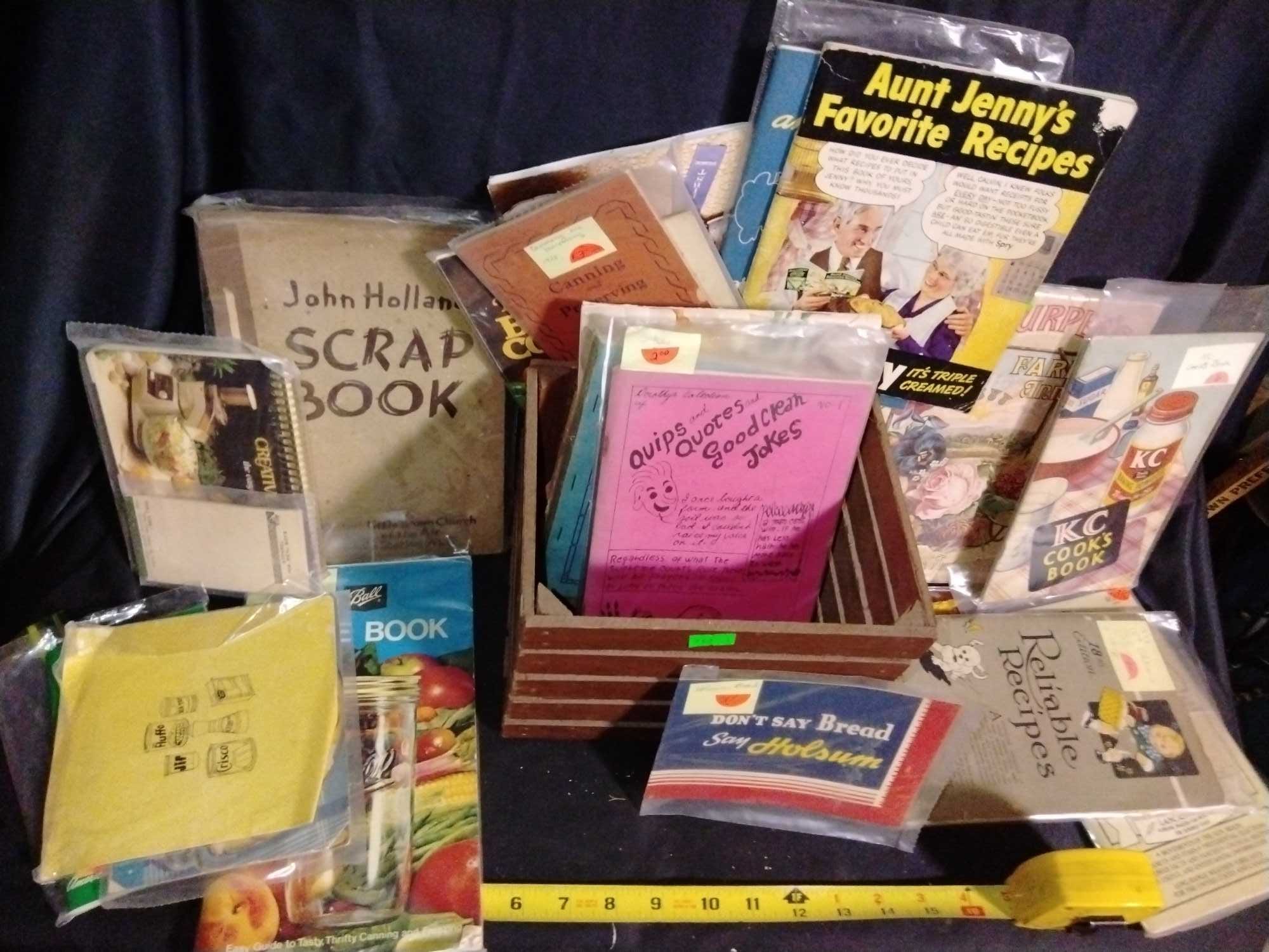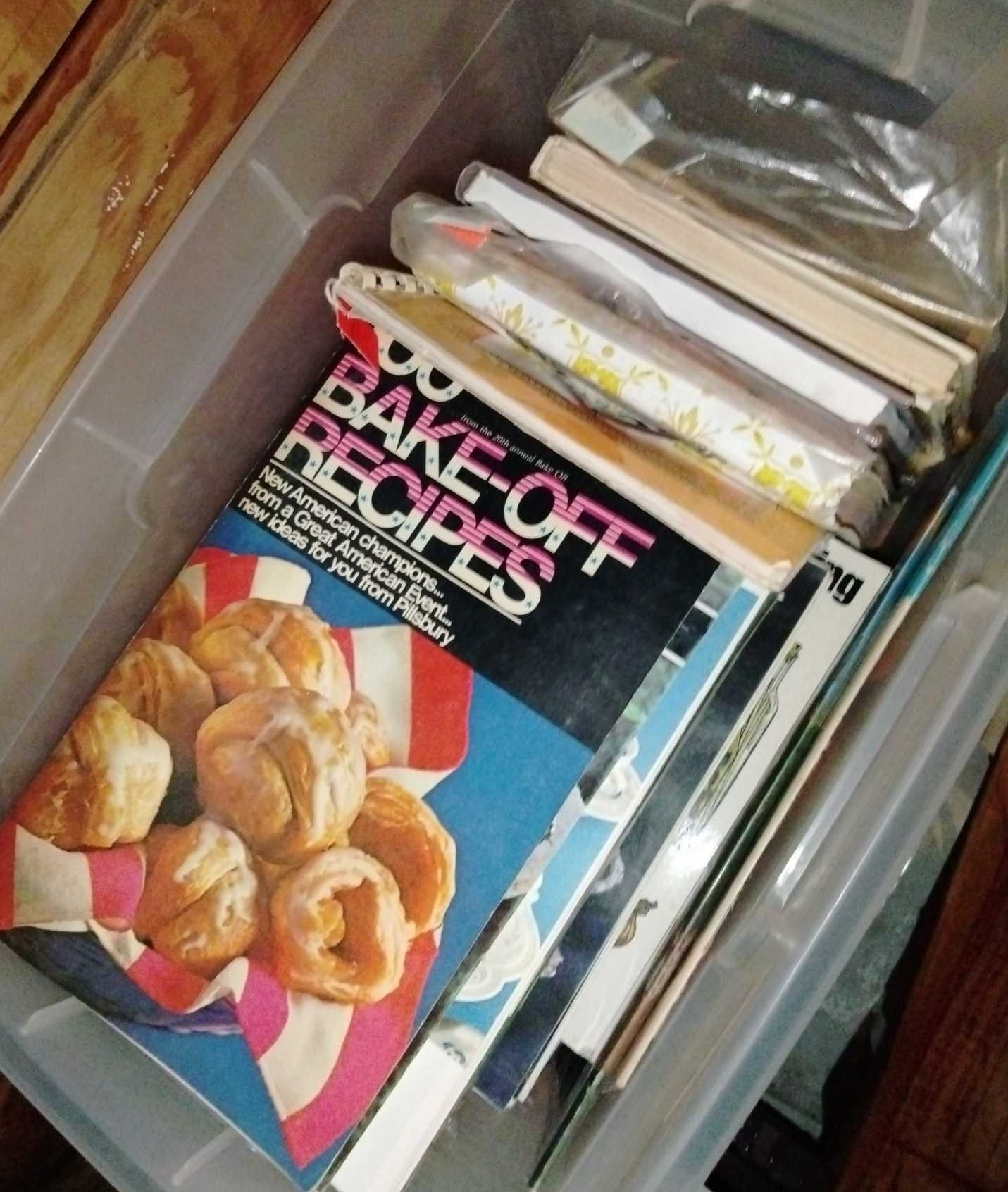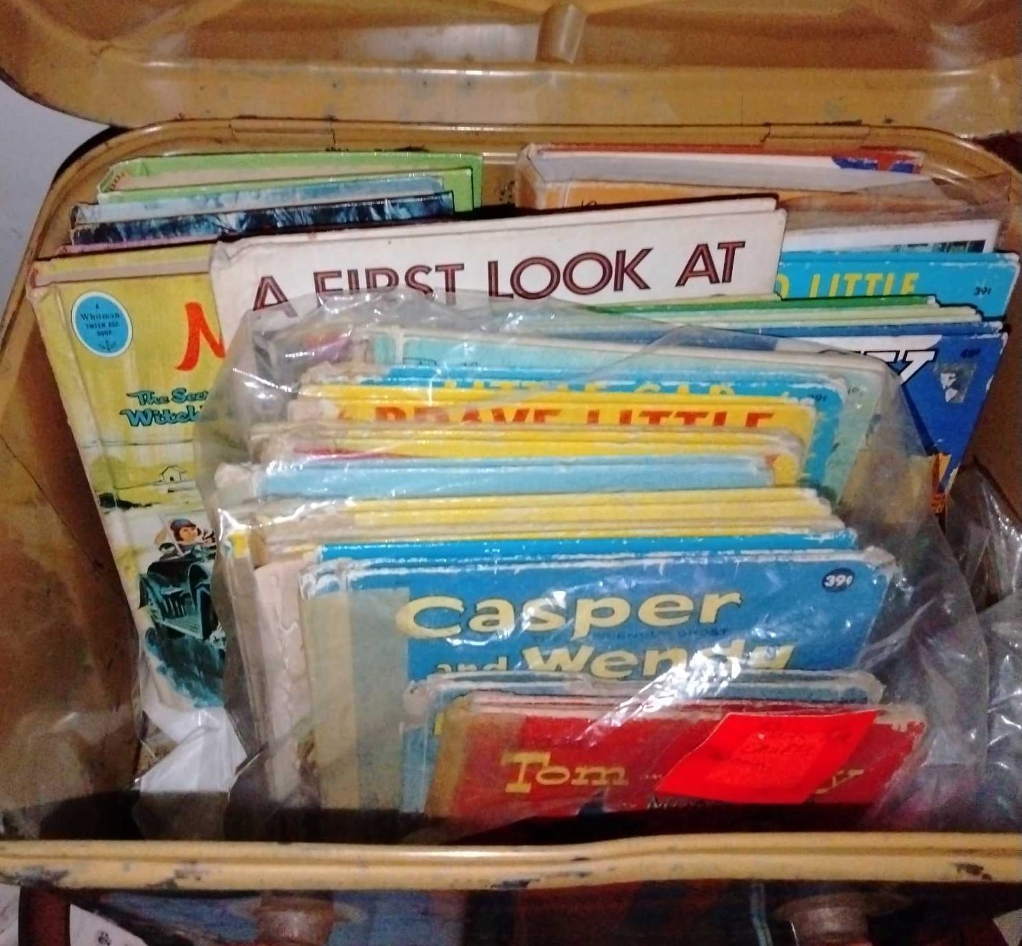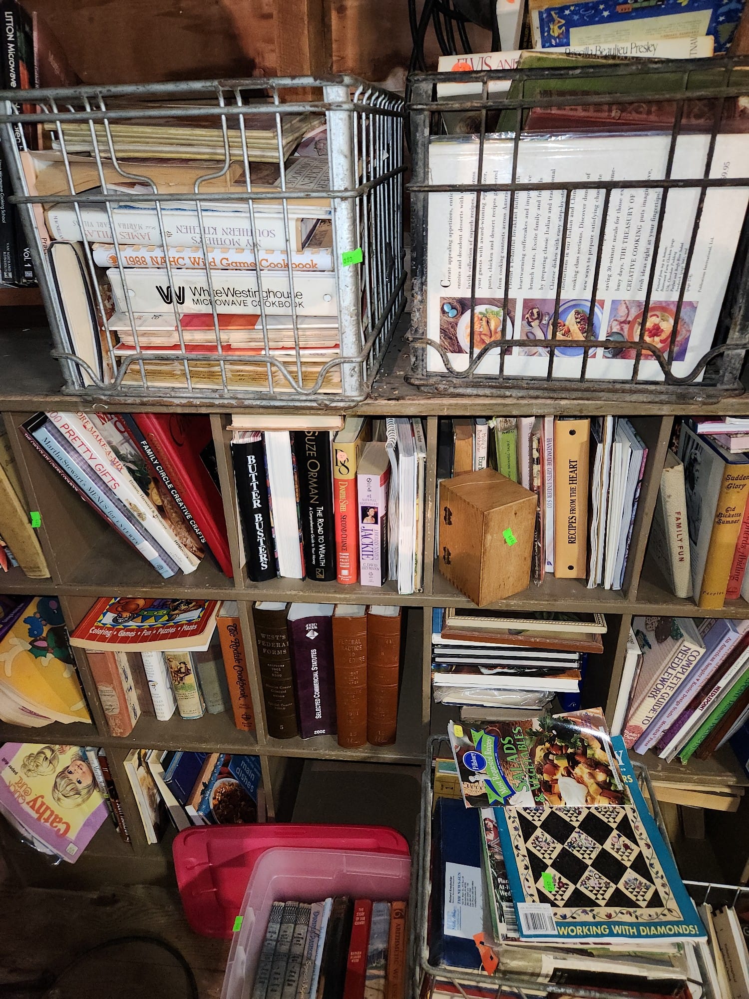 223 Children's and Cookbook assortment, metal picnic baskets, metal bread boxes