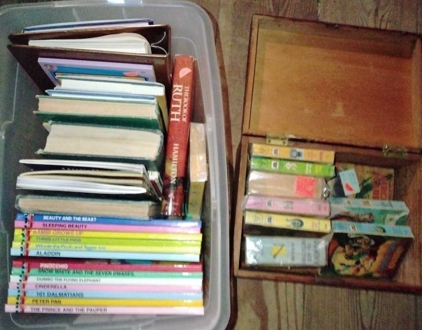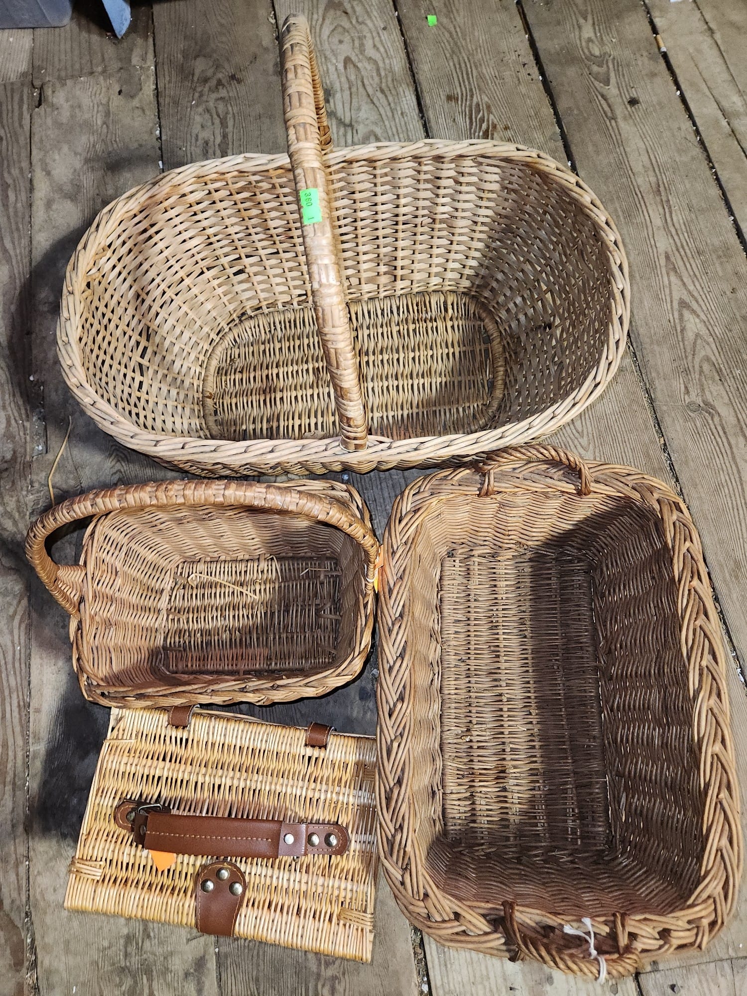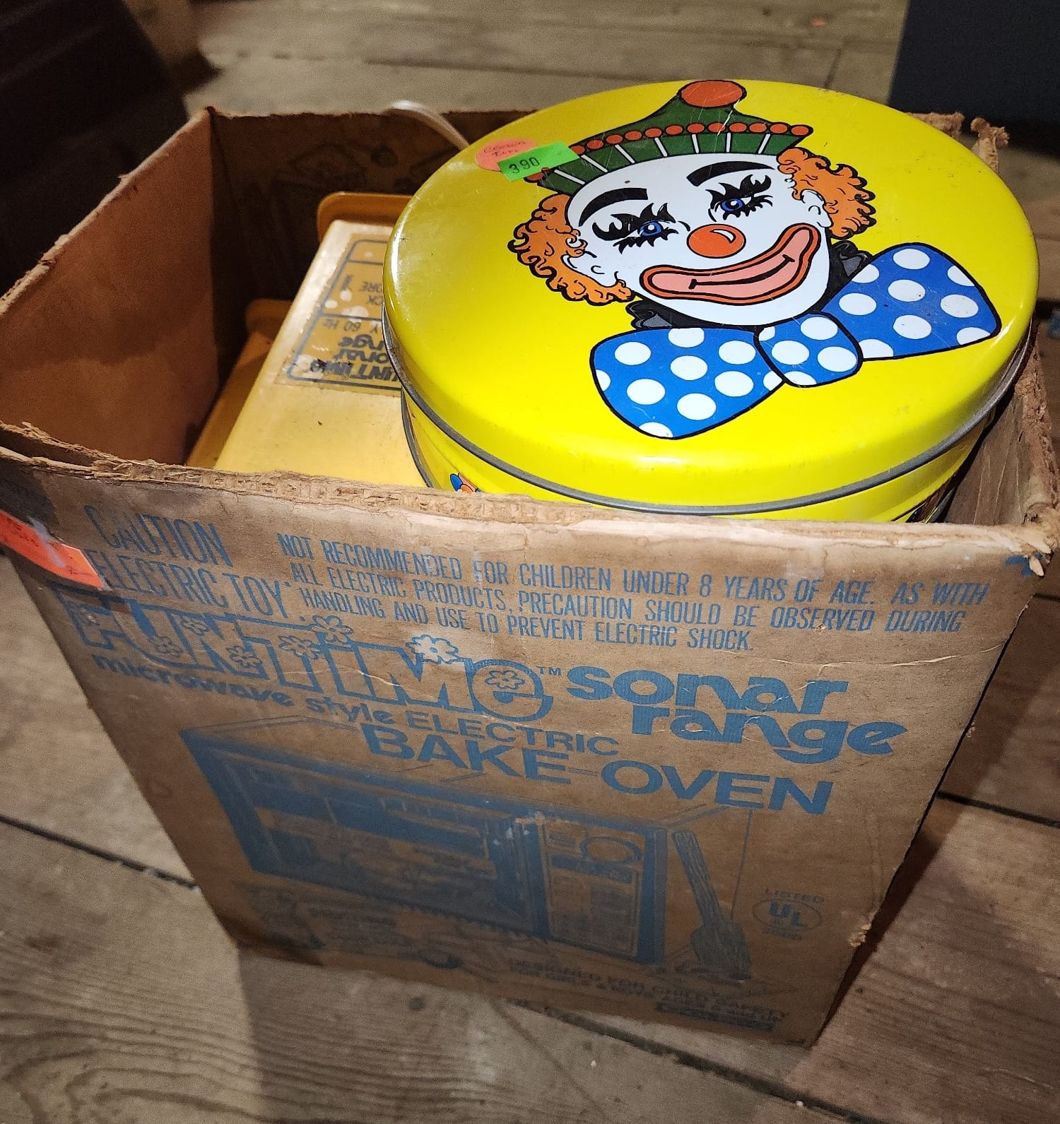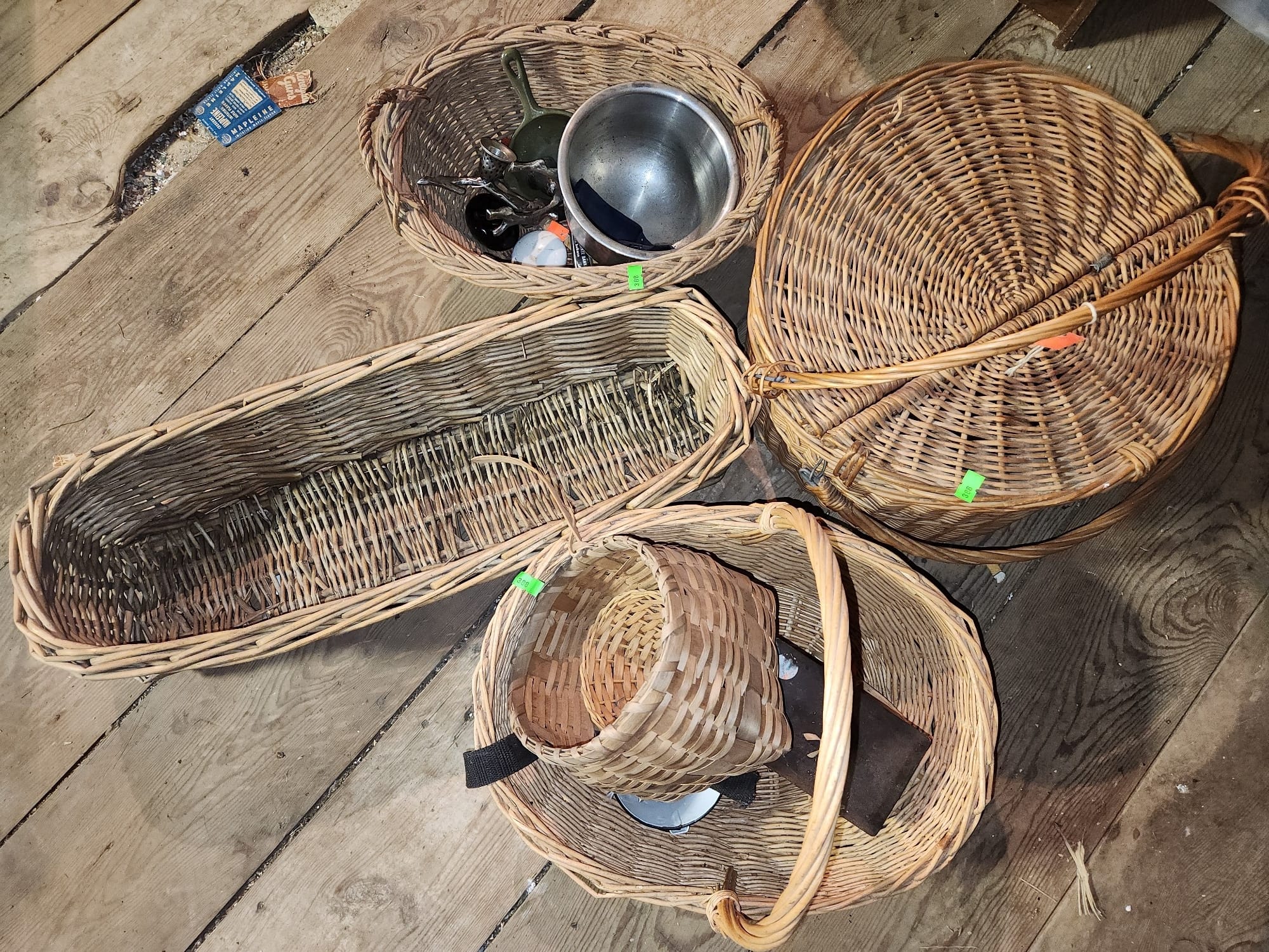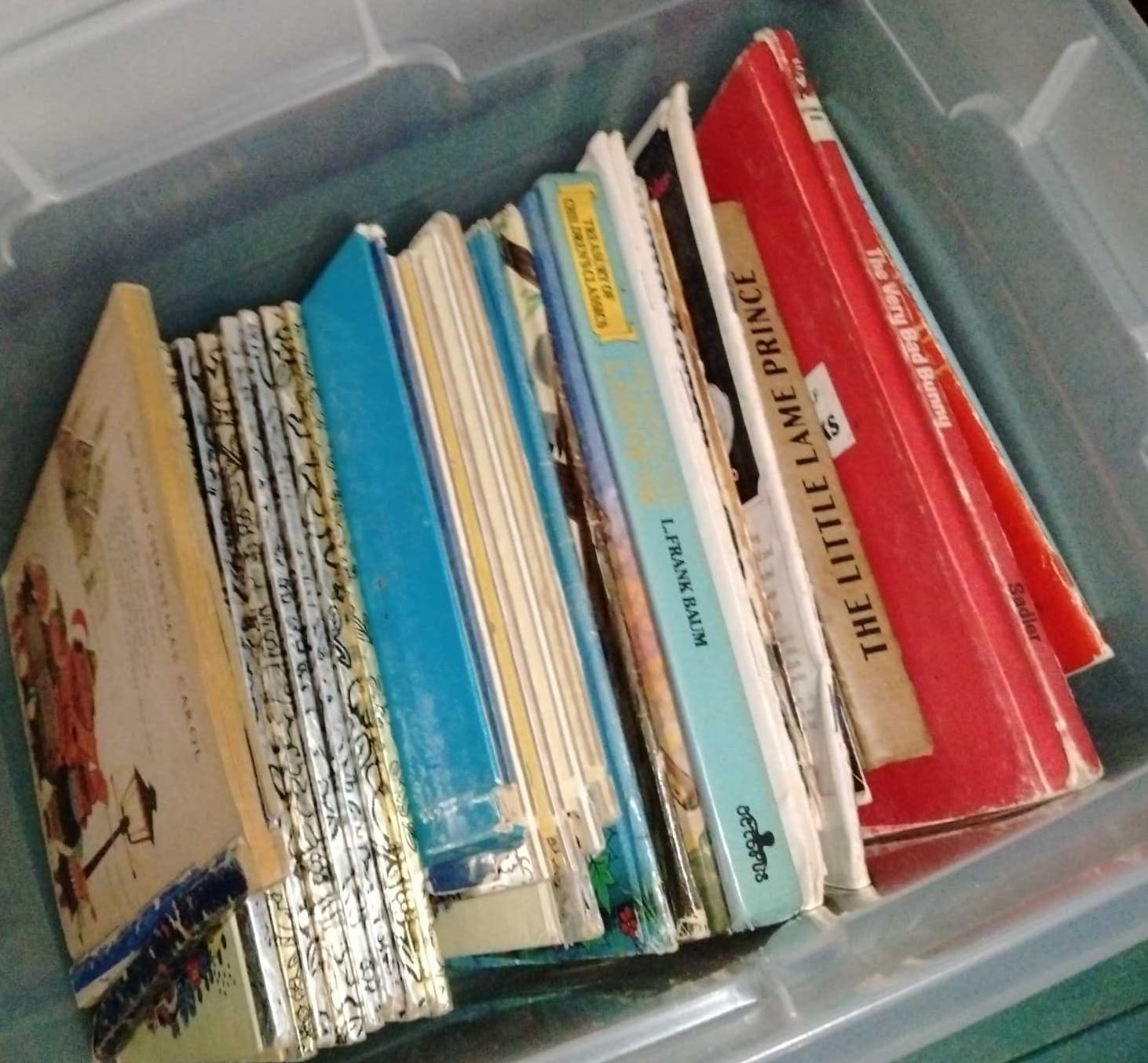 223 Children's and Cookbook assortment, metal picnic baskets, metal bread boxes