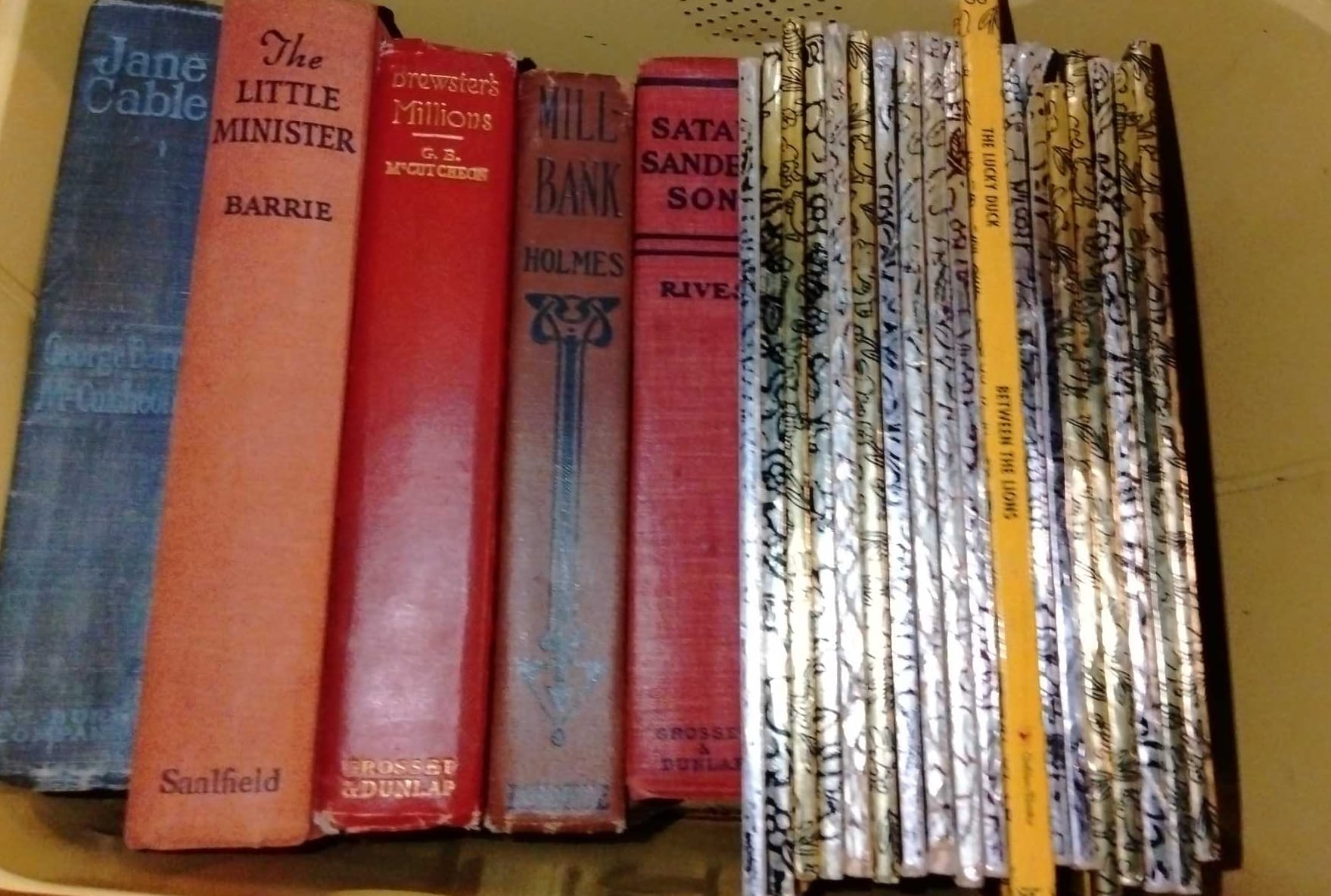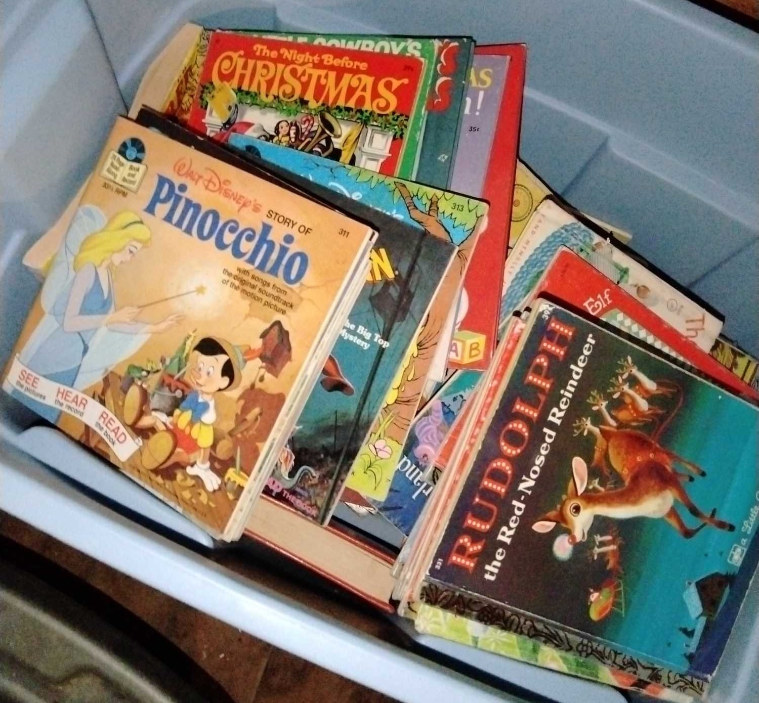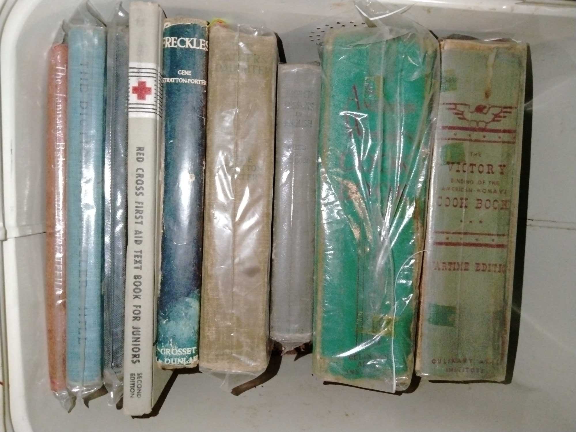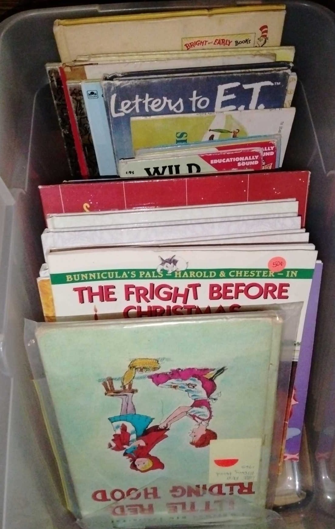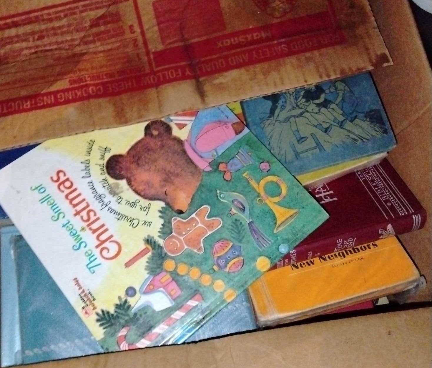 223 Children's and Cookbook assortment, metal picnic baskets, metal bread boxes