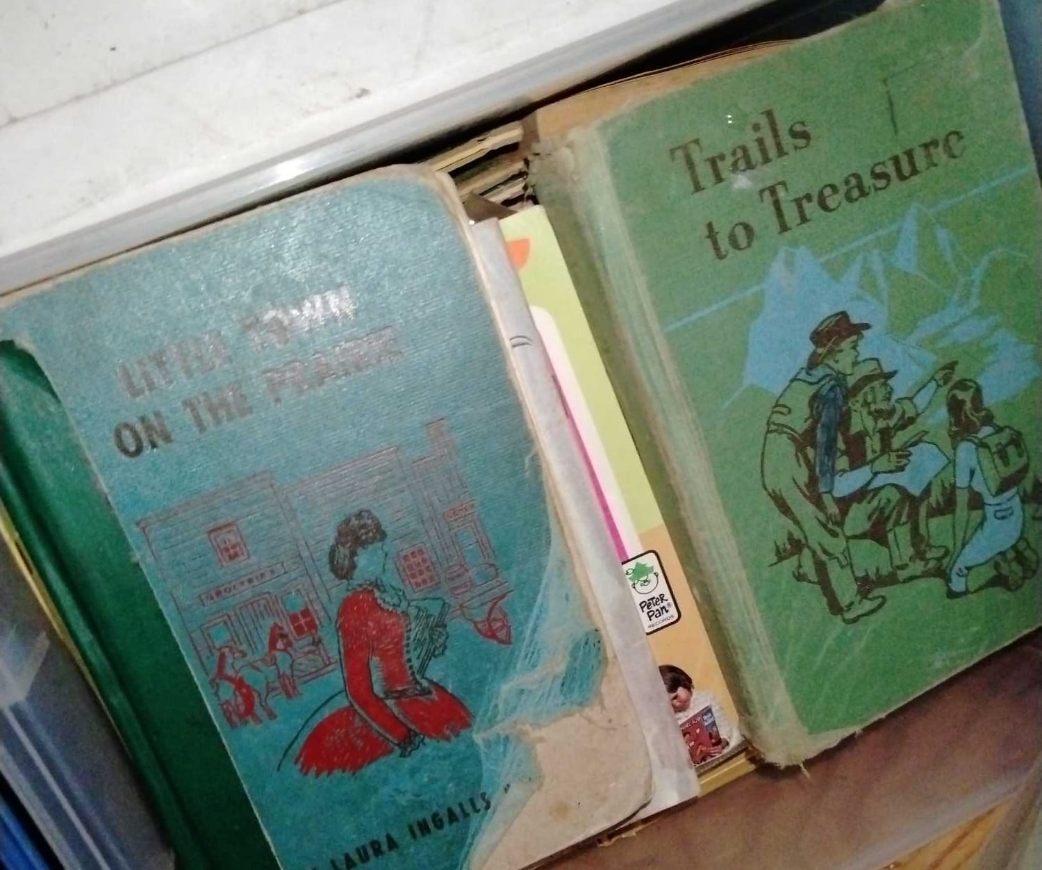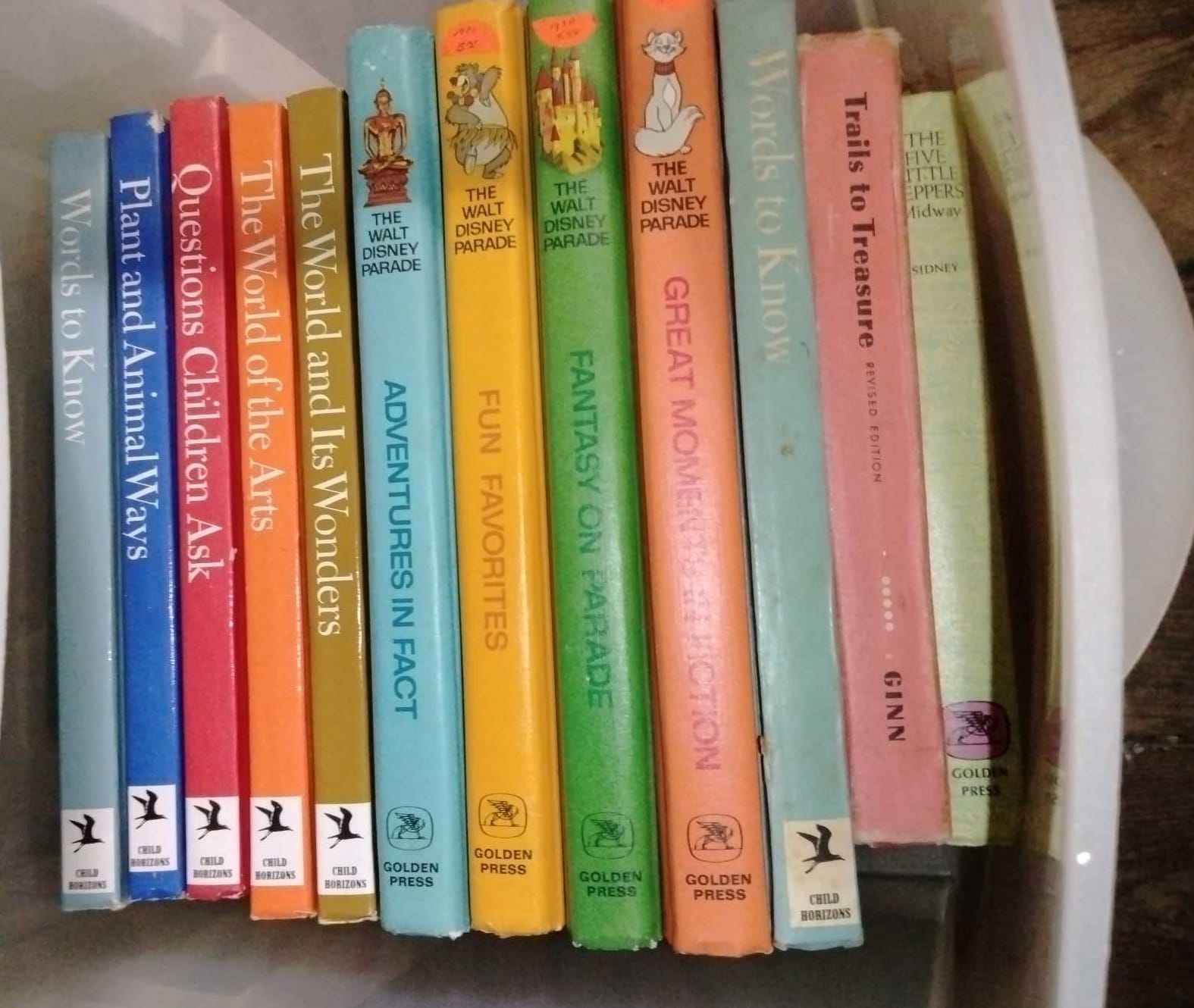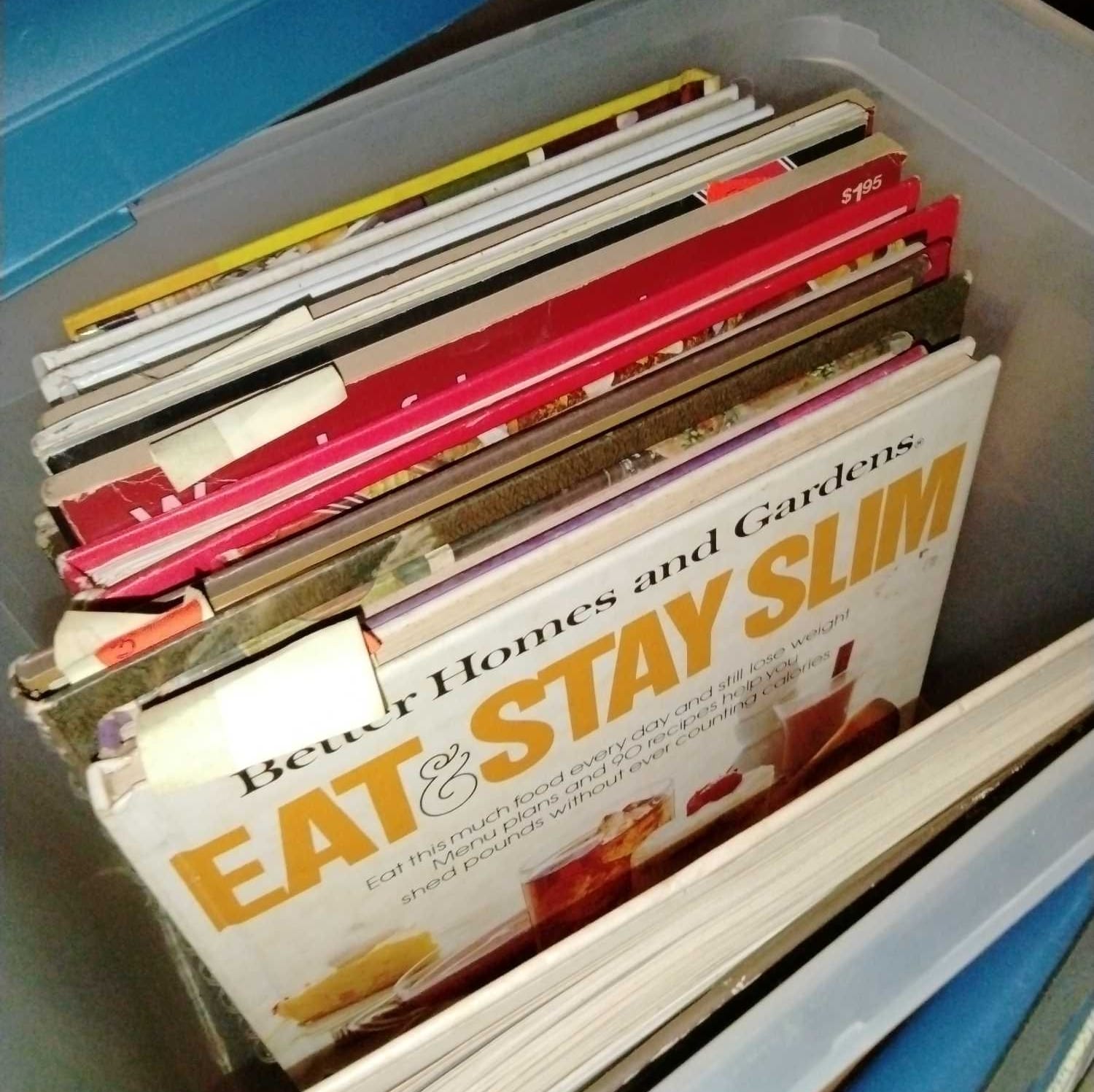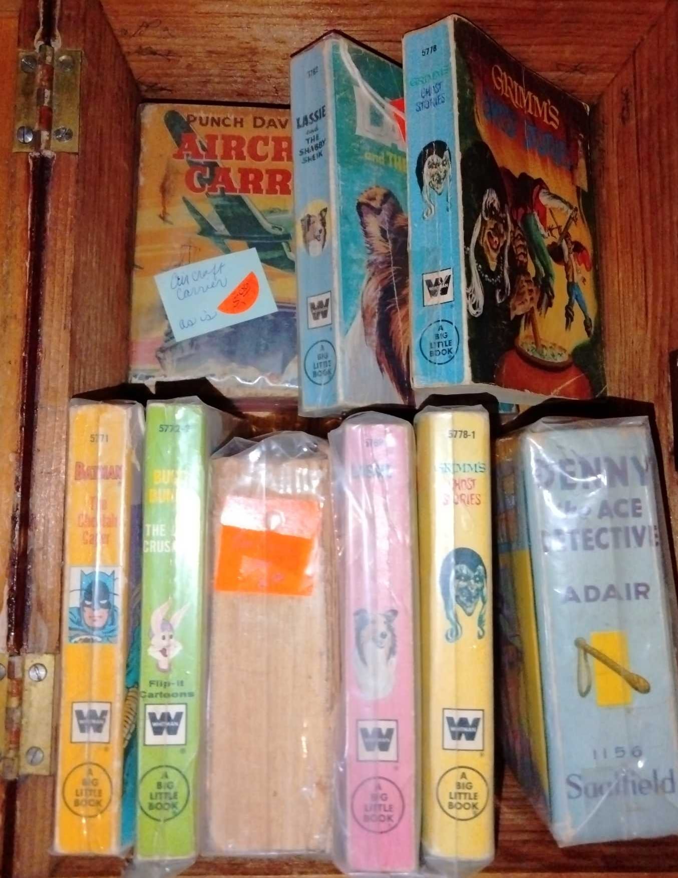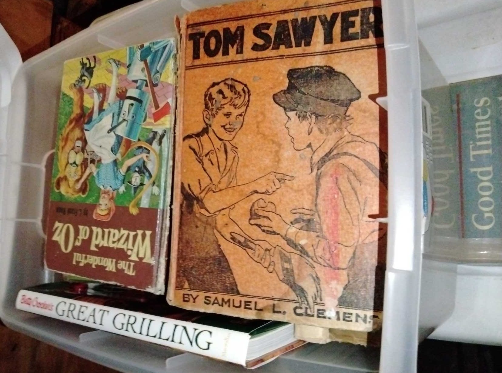 223 Children's and Cookbook assortment, metal picnic baskets, metal bread boxes