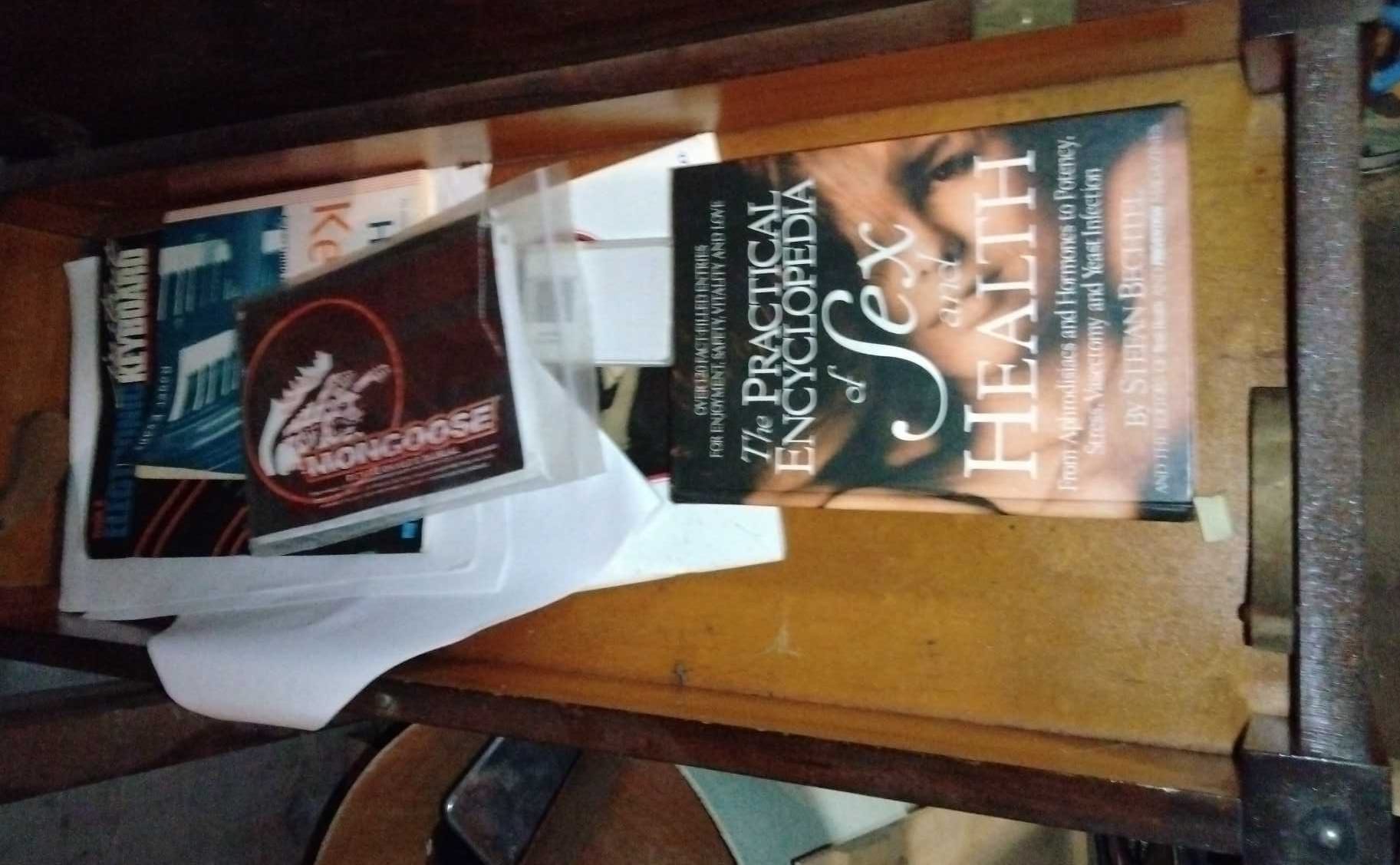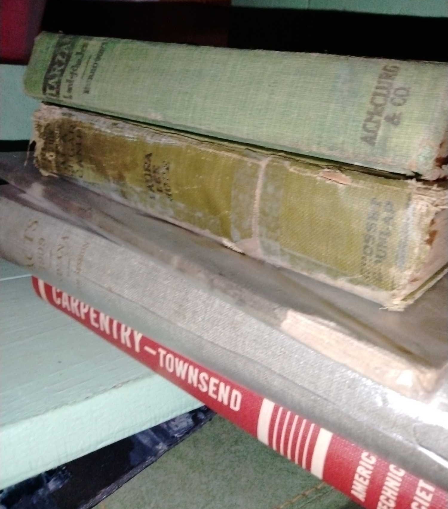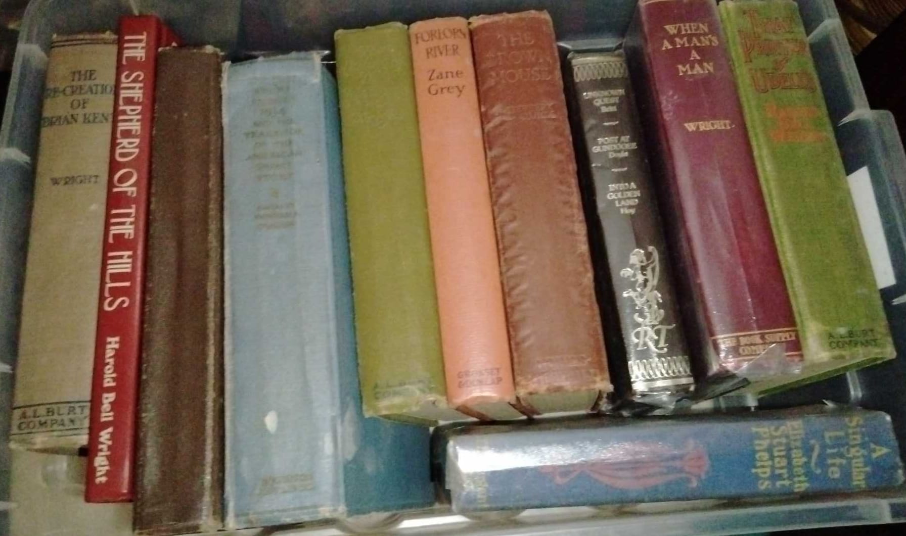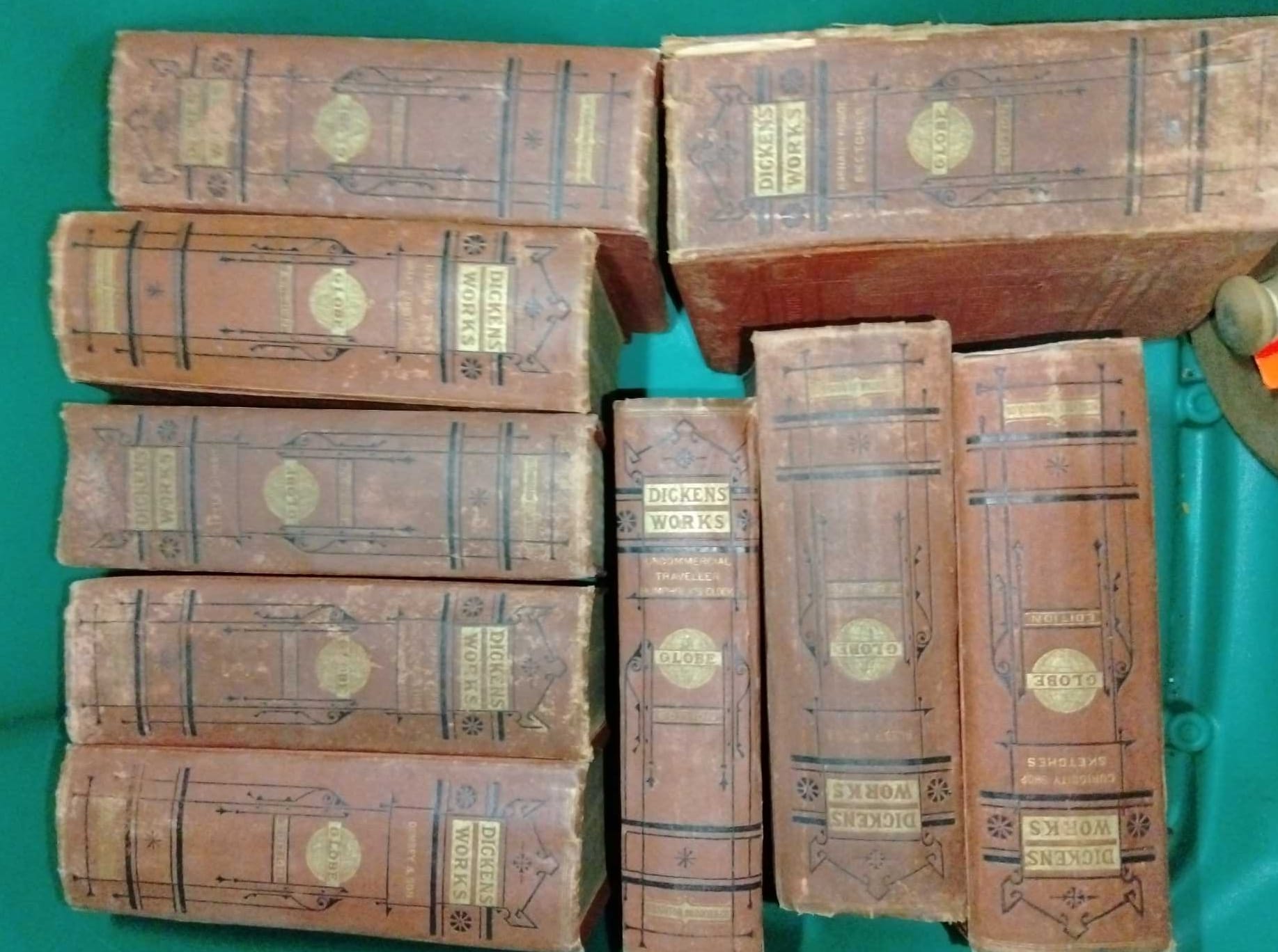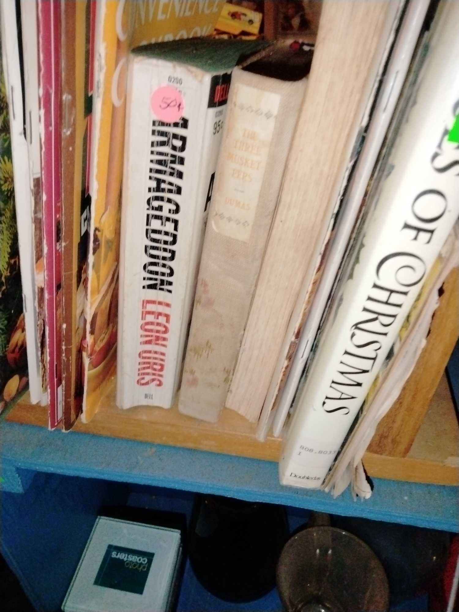 203 Books, suitcase, hanging rack, lamp, picnic basket