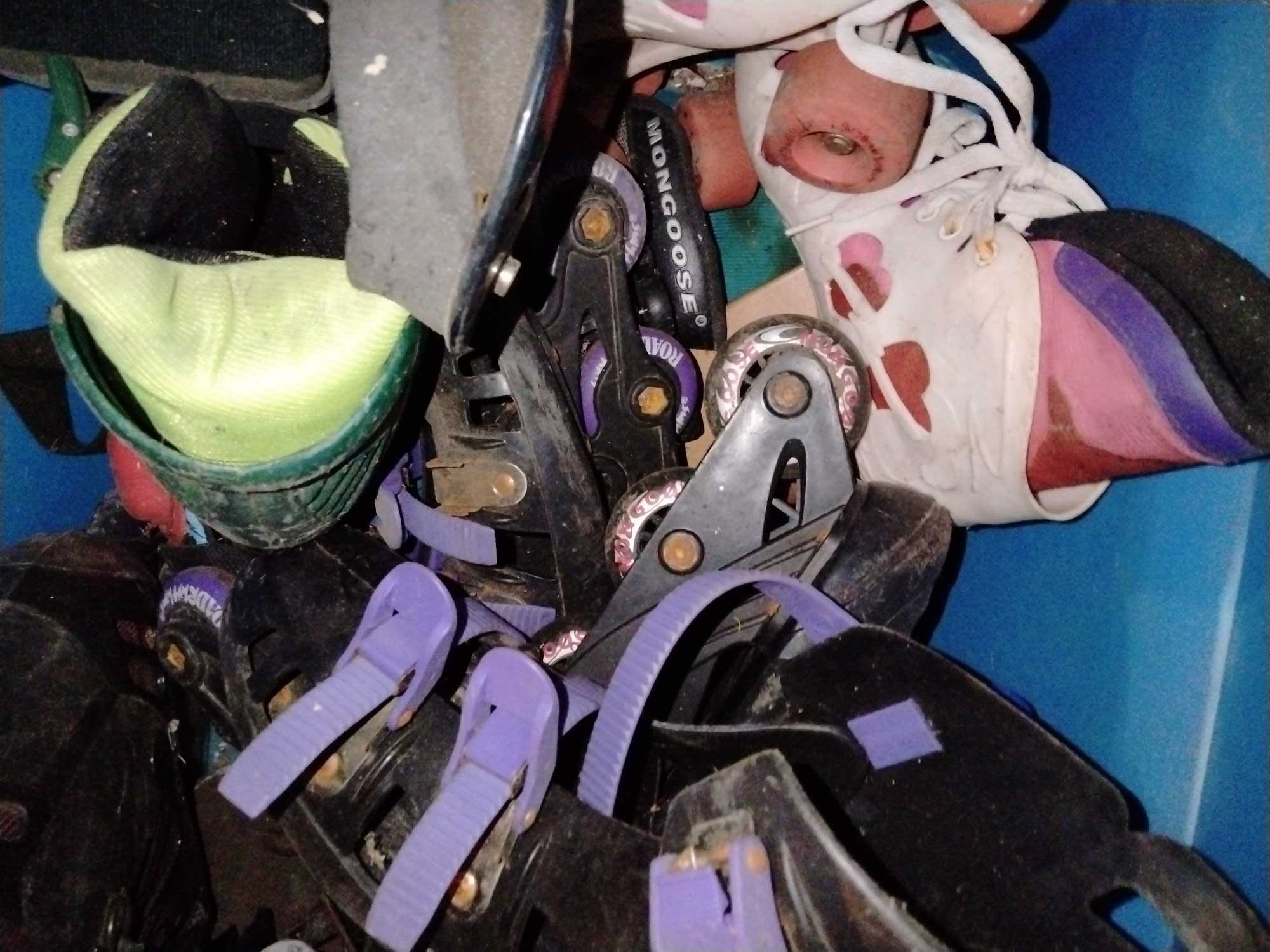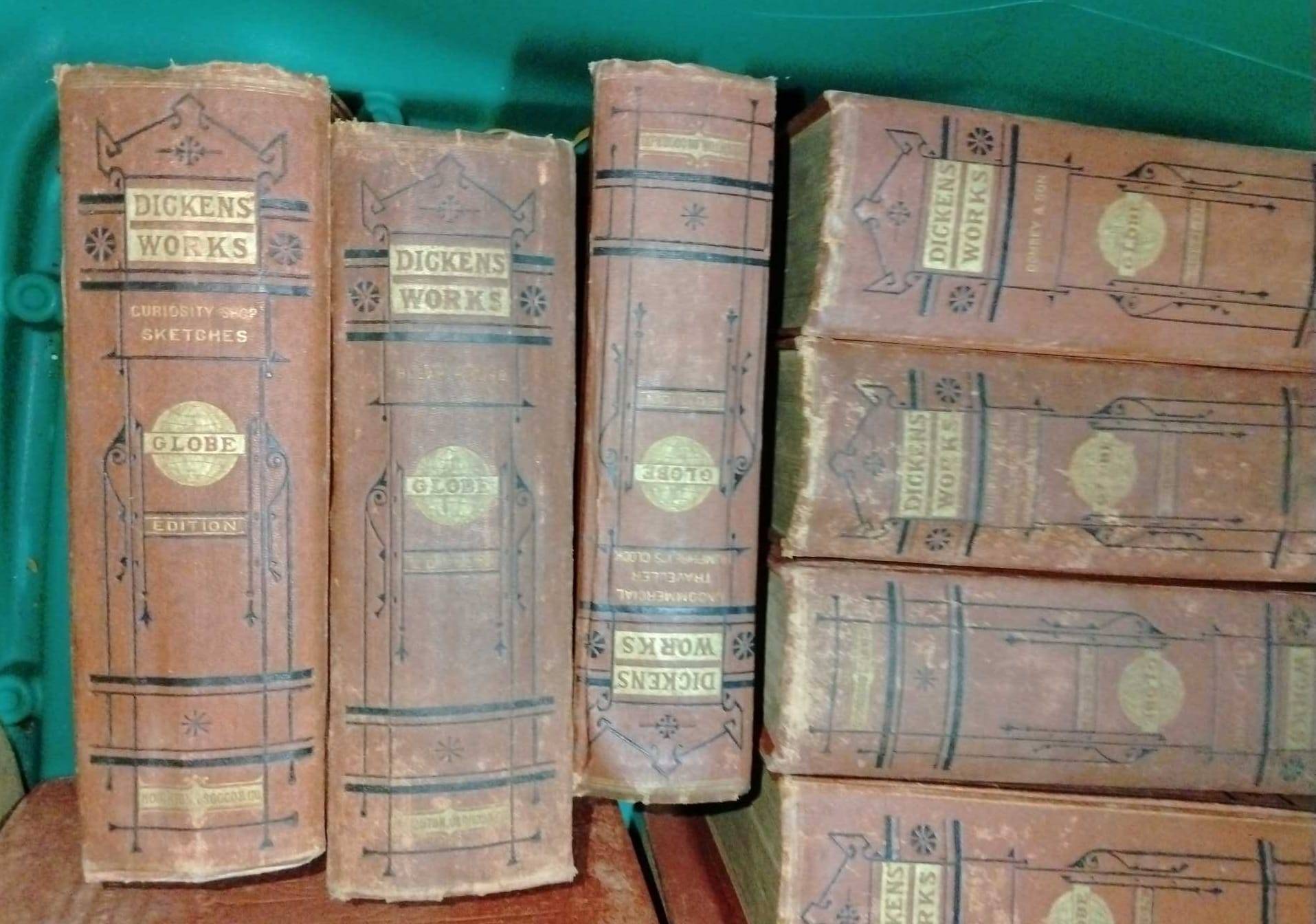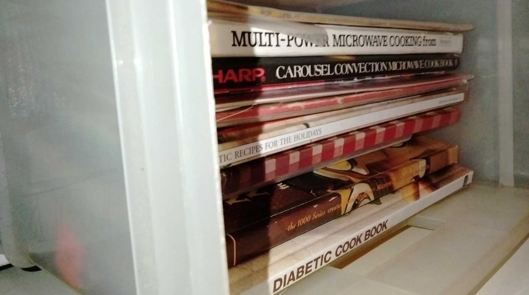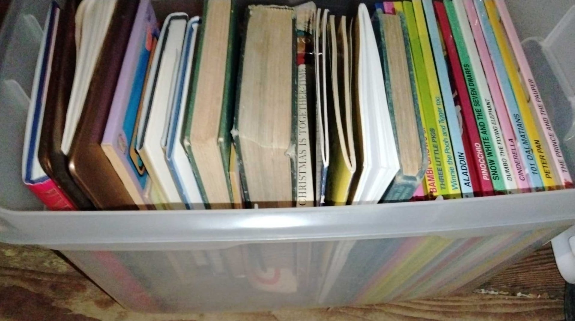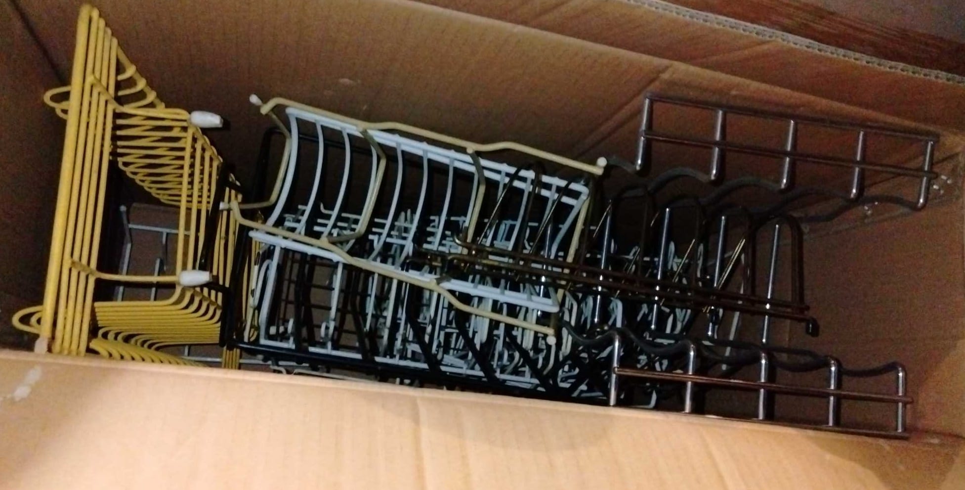 203 Books, suitcase, hanging rack, lamp, picnic basket