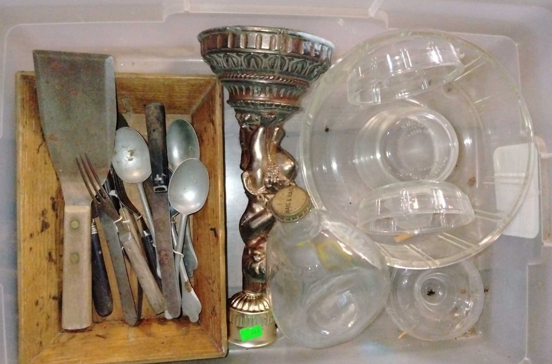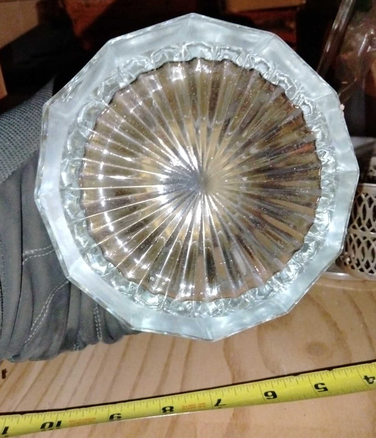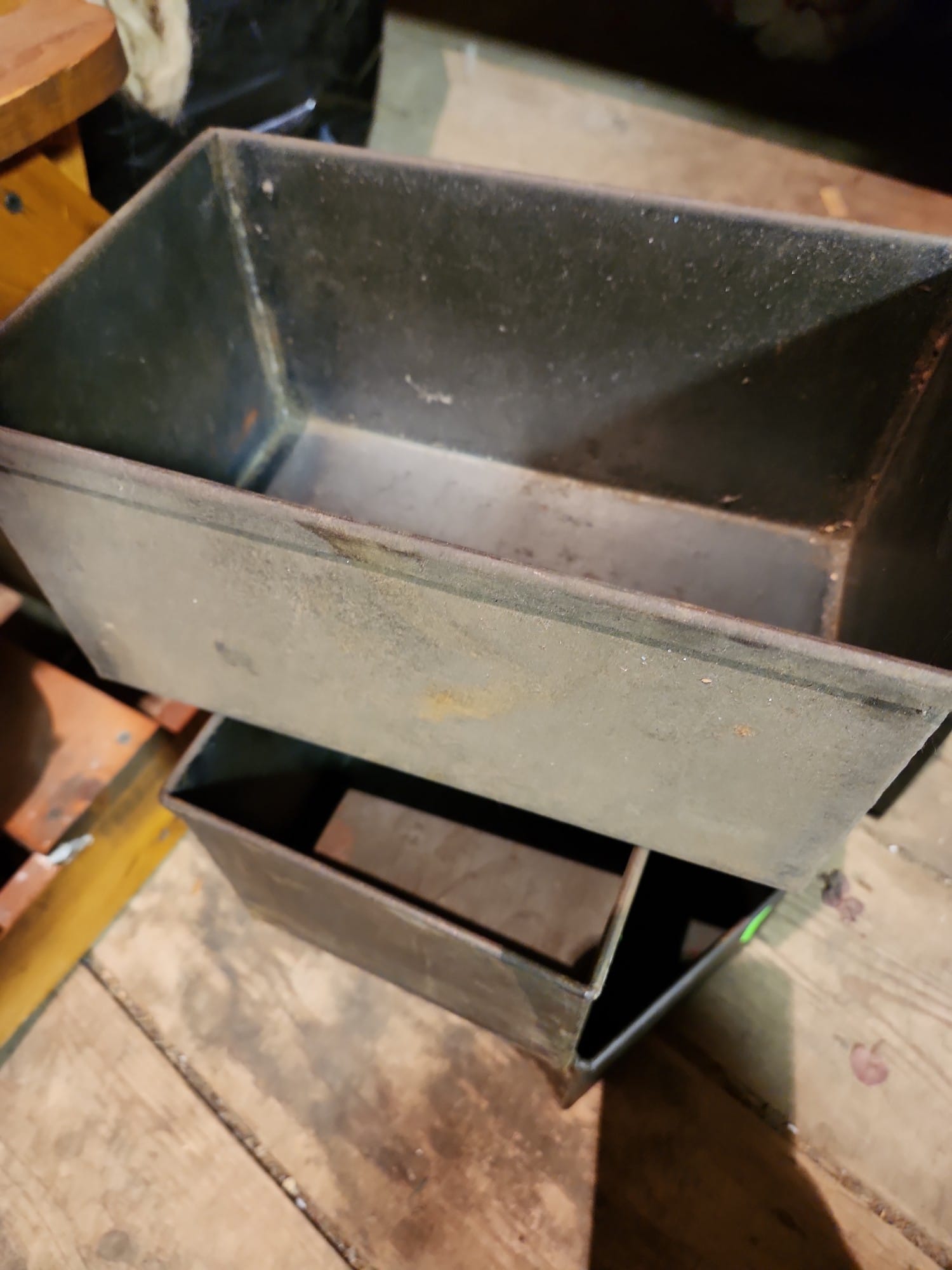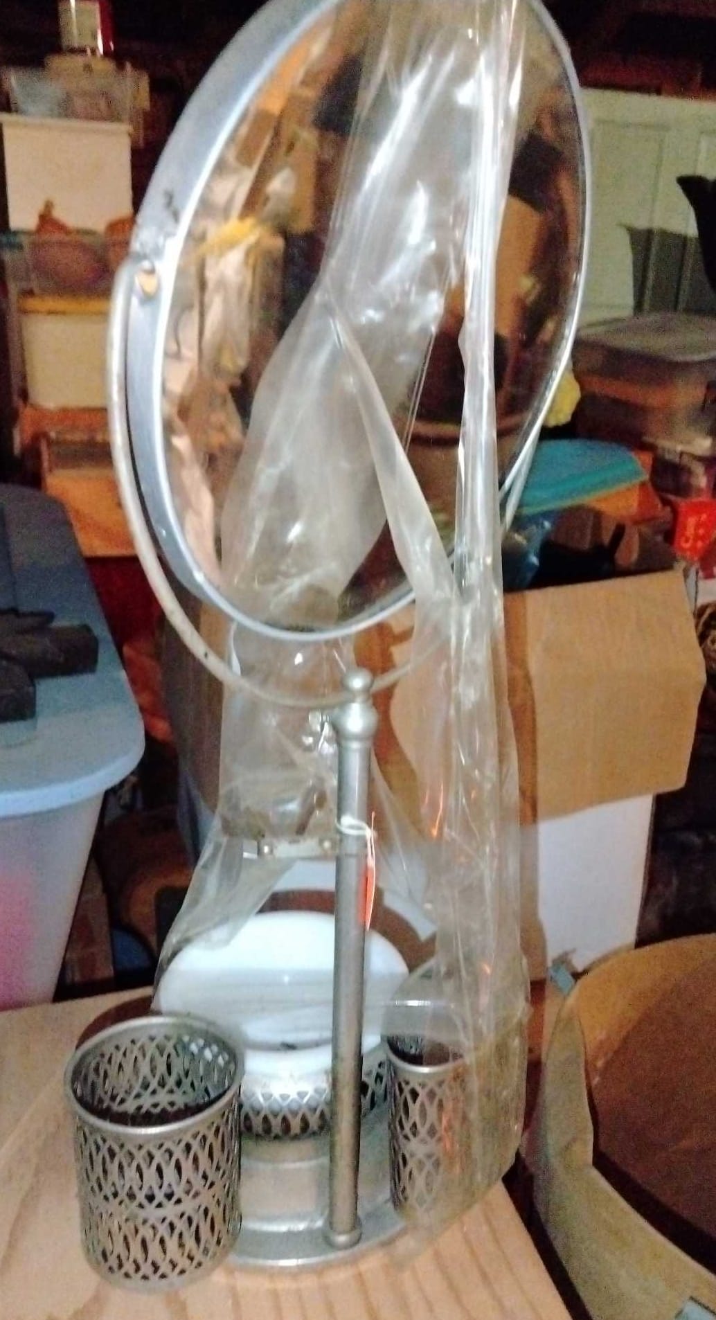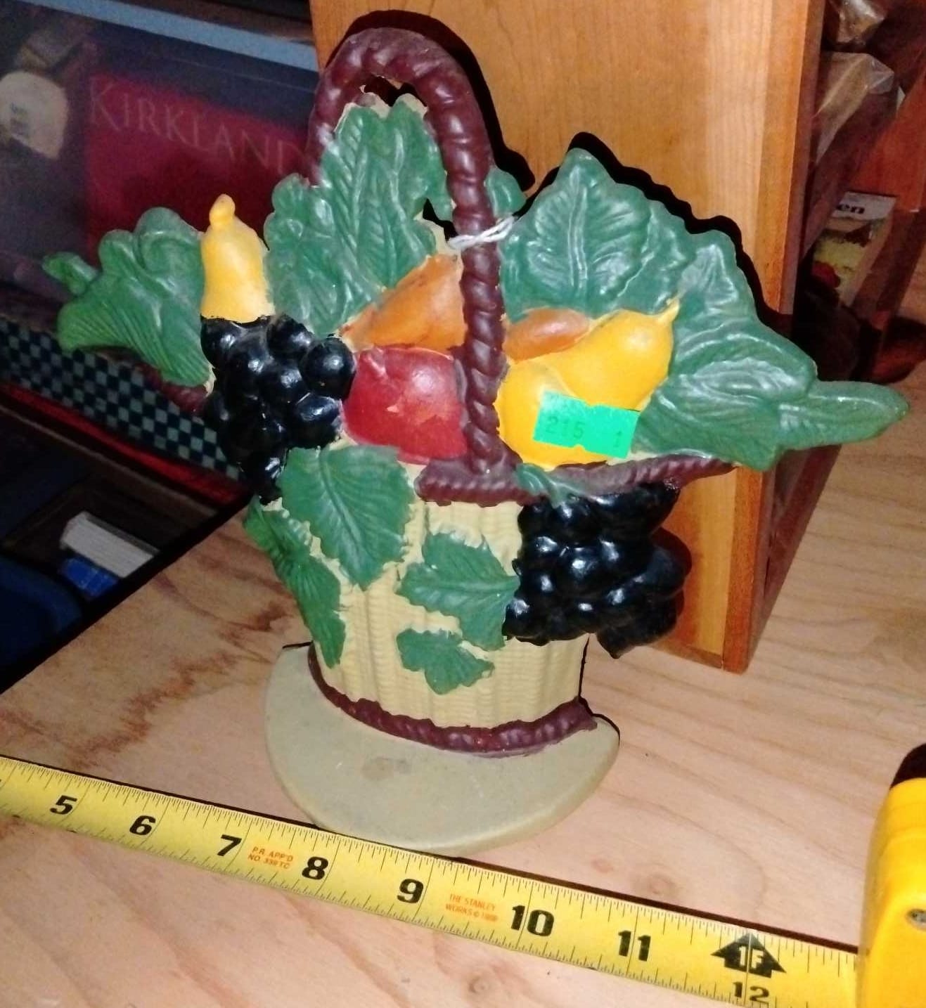 446 Tin cake pan with lid, light, bookends, fuses, planter, glass shade, hat box, cups, fuses, miscellaneous