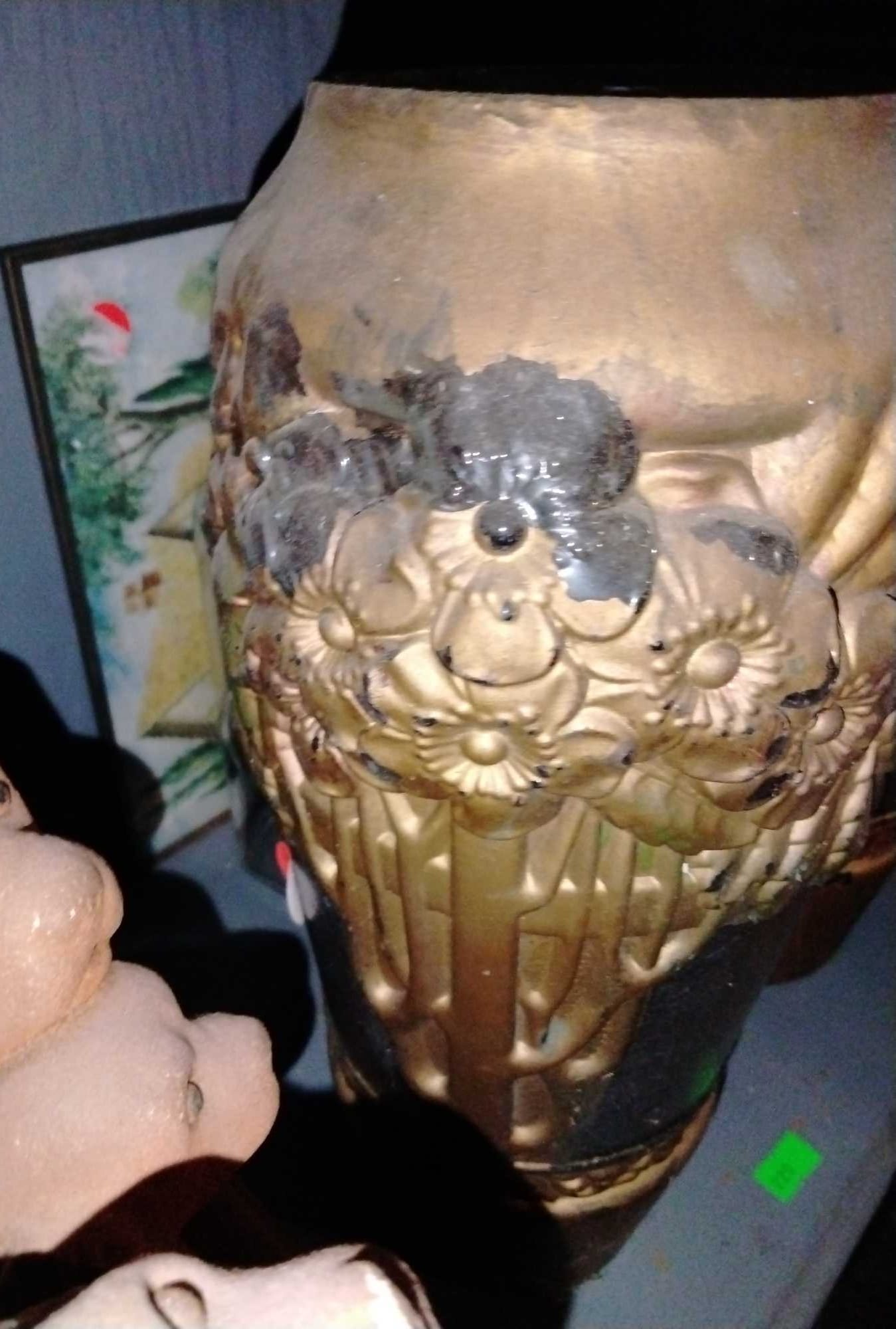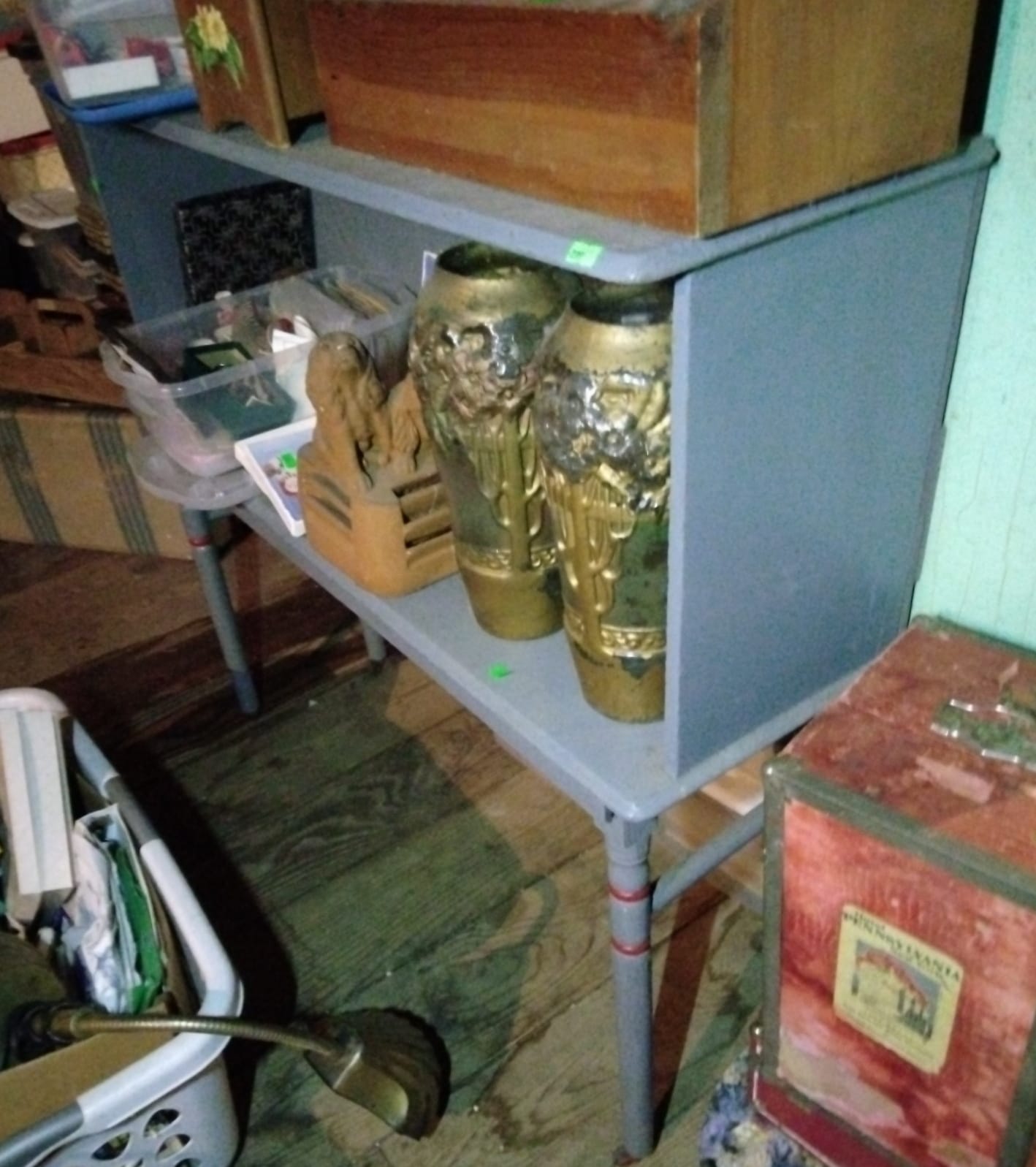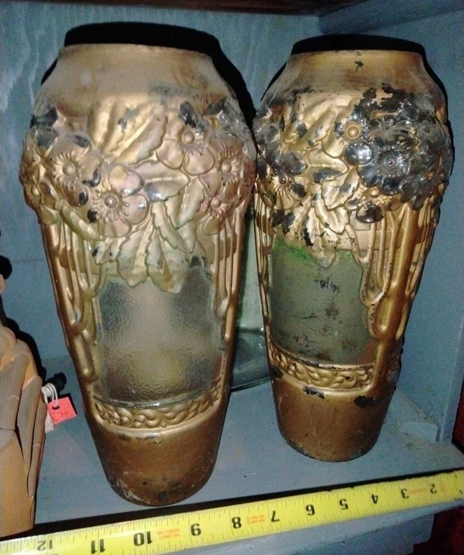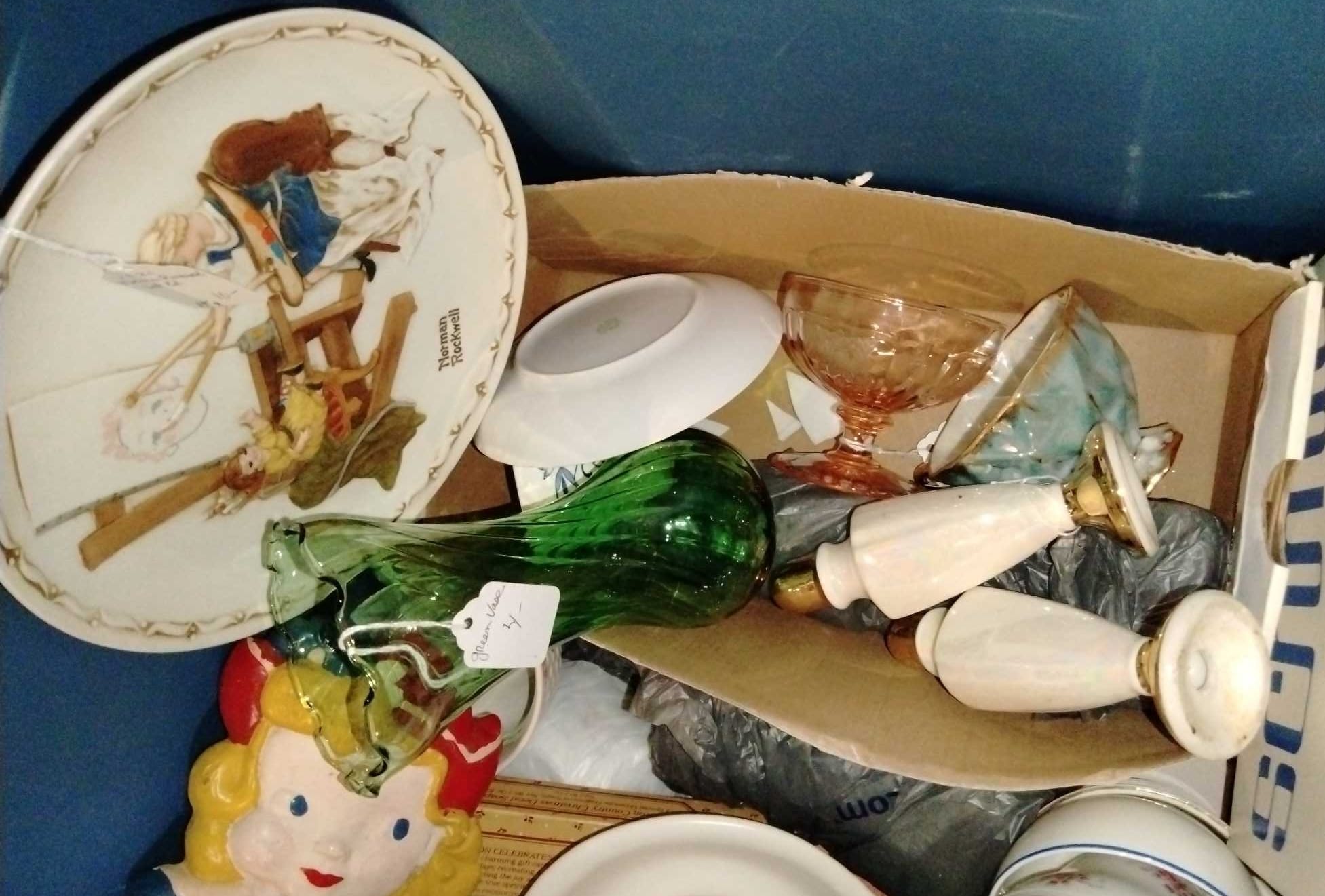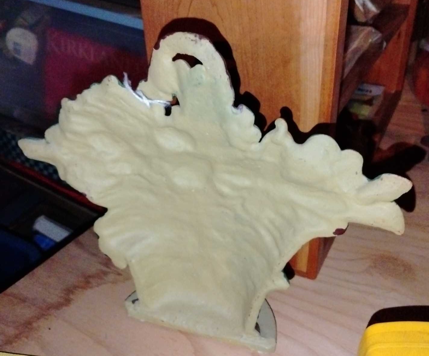 446 Tin cake pan with lid, light, bookends, fuses, planter, glass shade, hat box, cups, fuses, miscellaneous