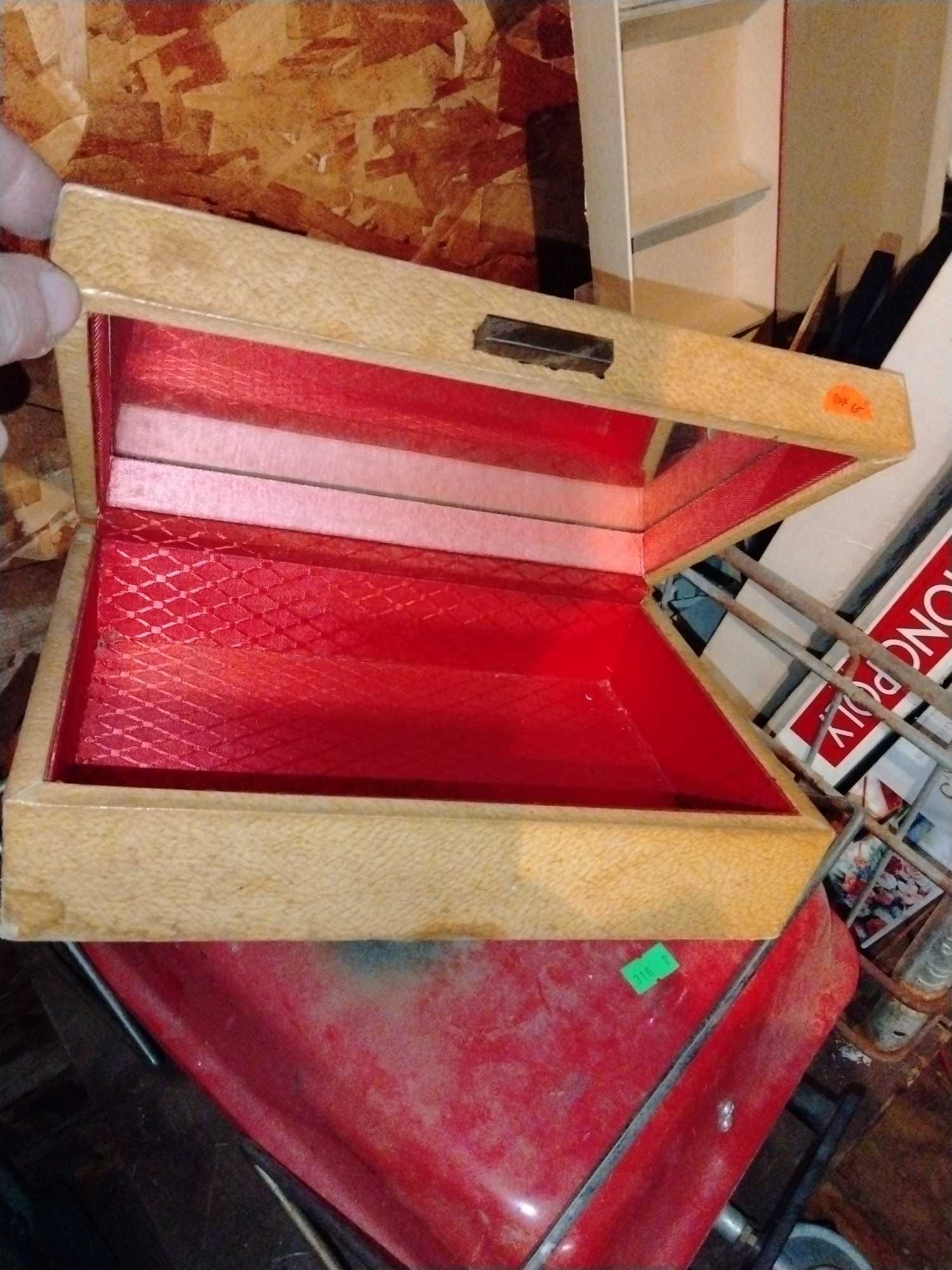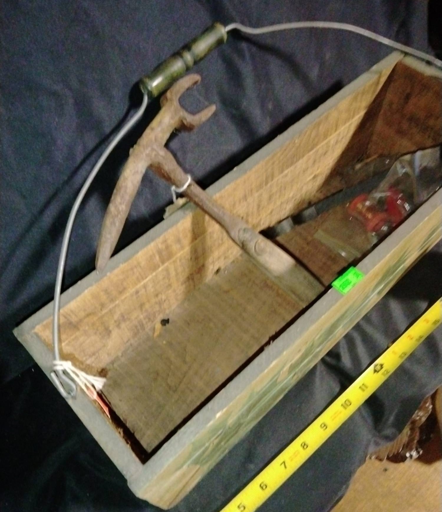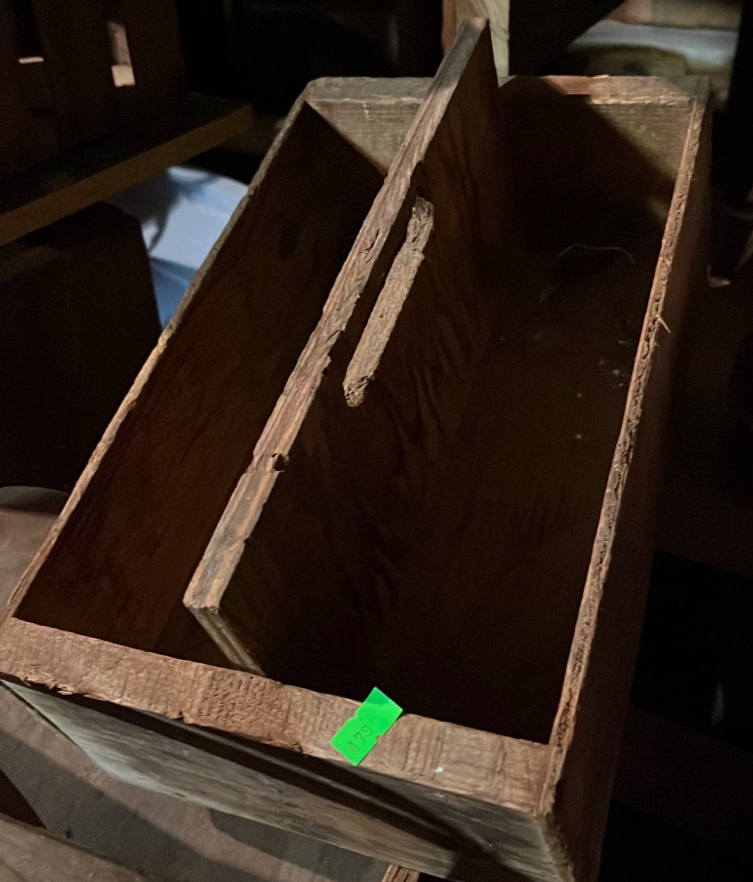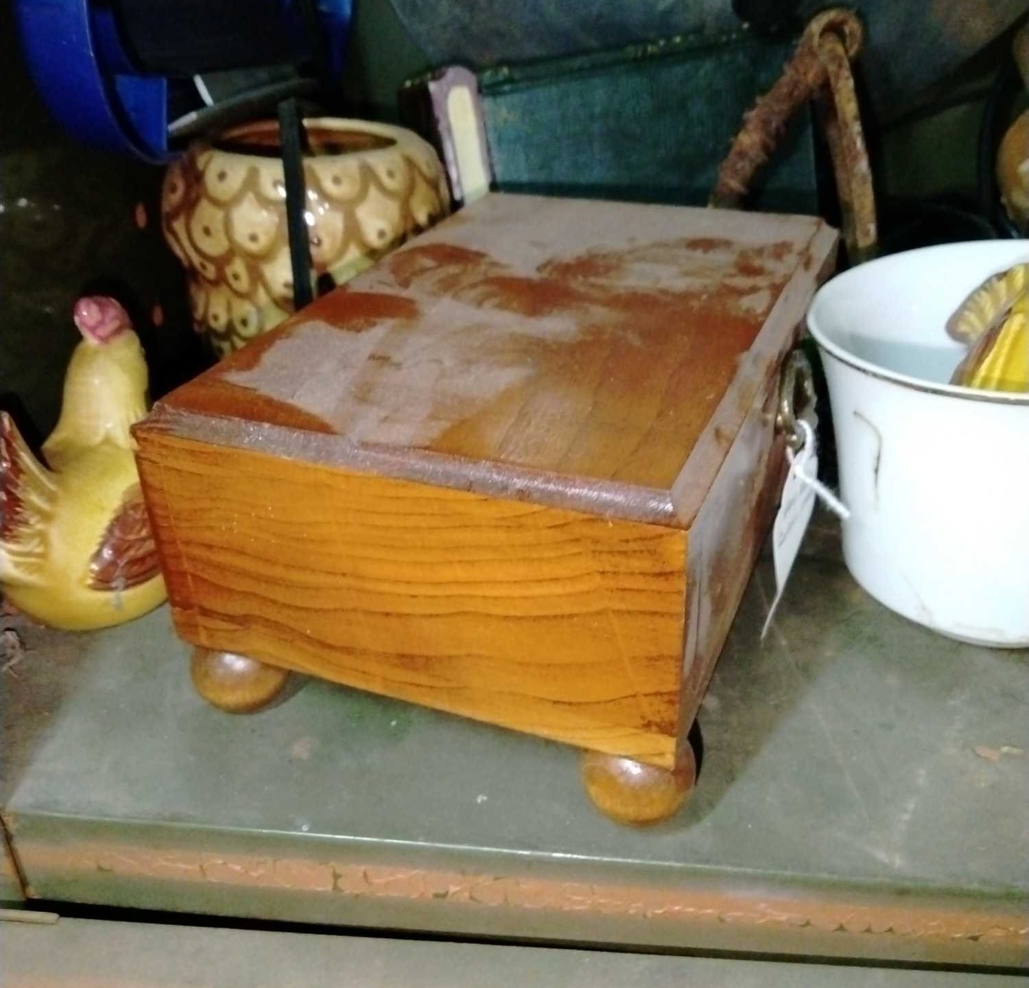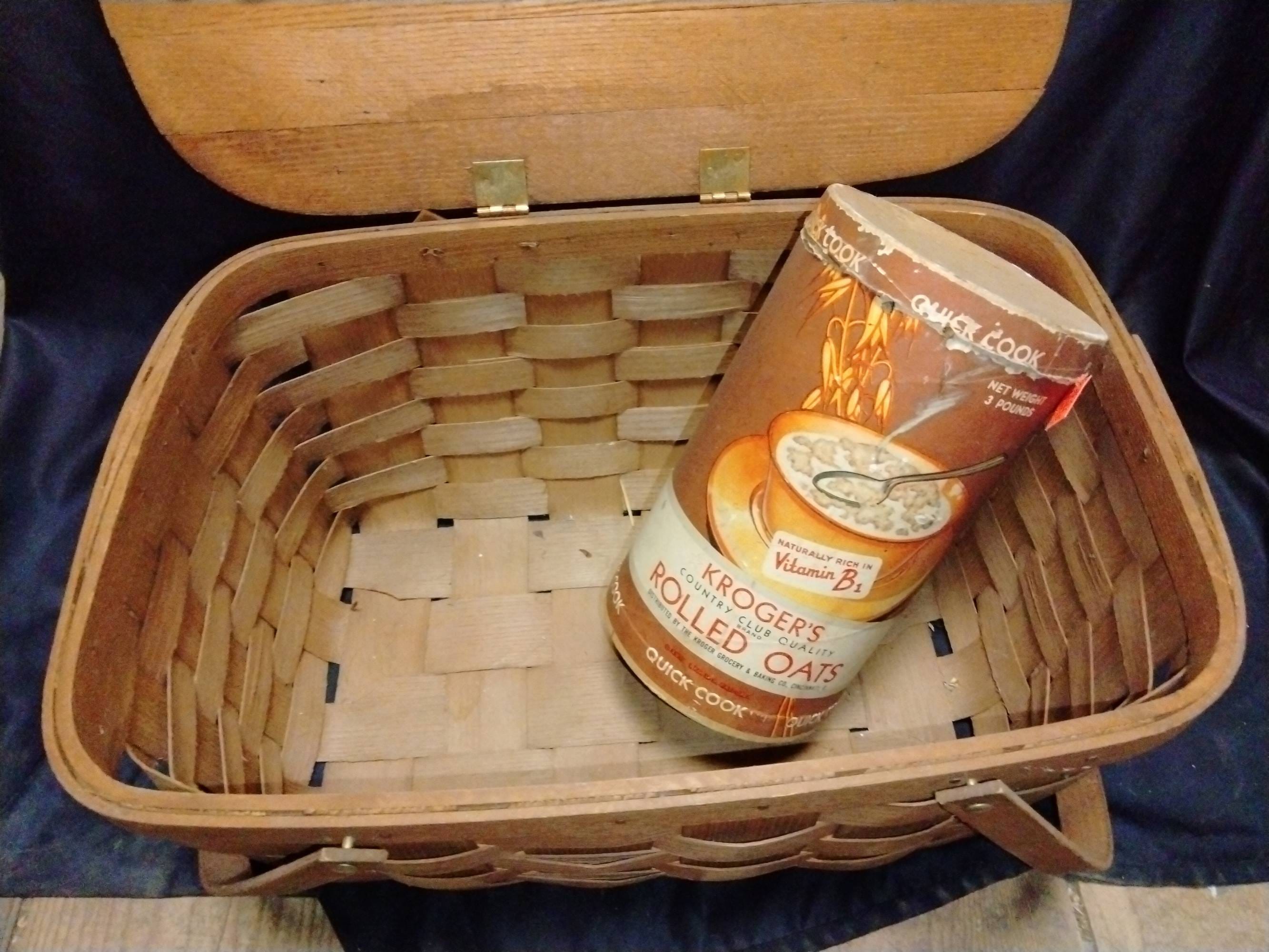 479 Oat box, wood tote, jewelry box, tin - no lid, sewing box