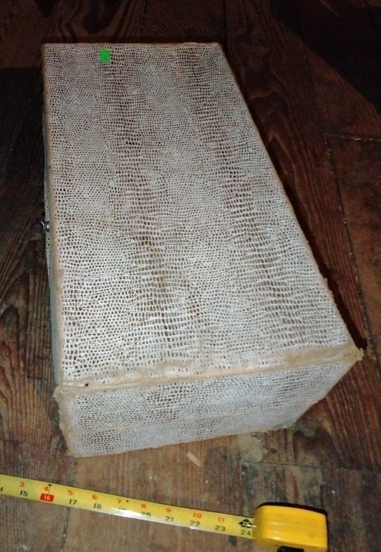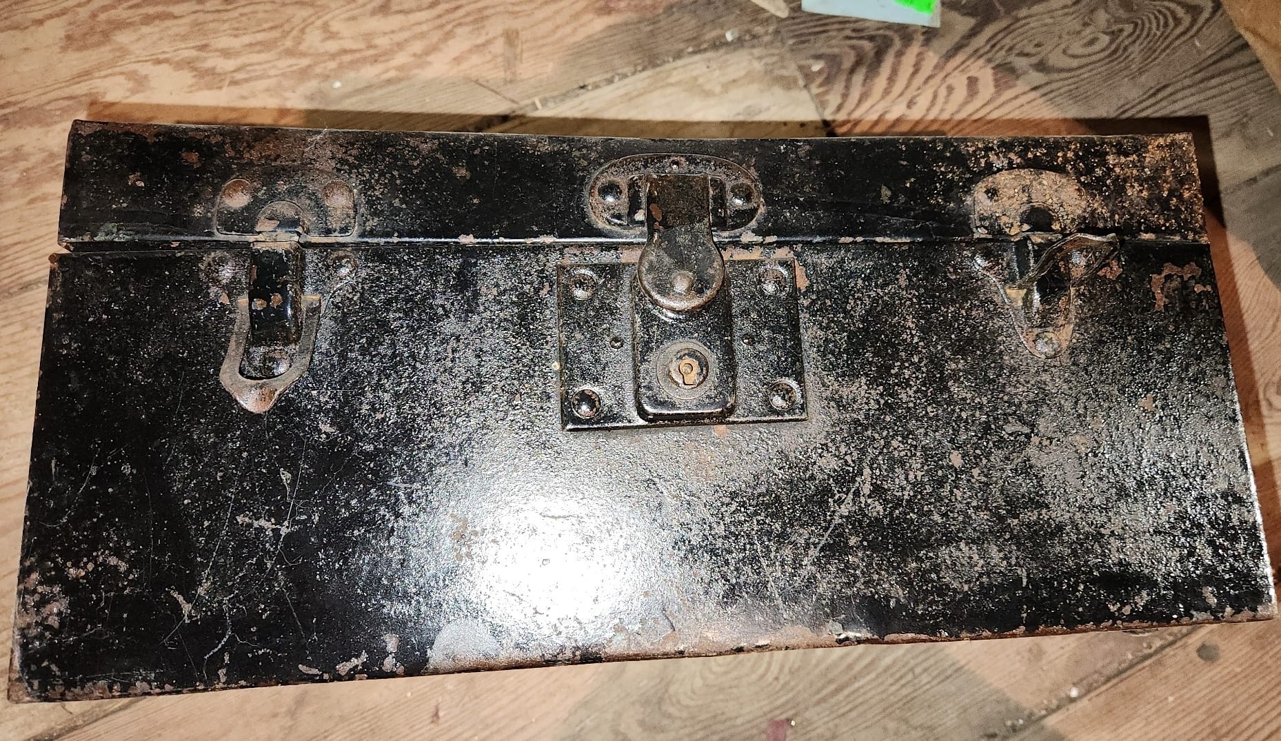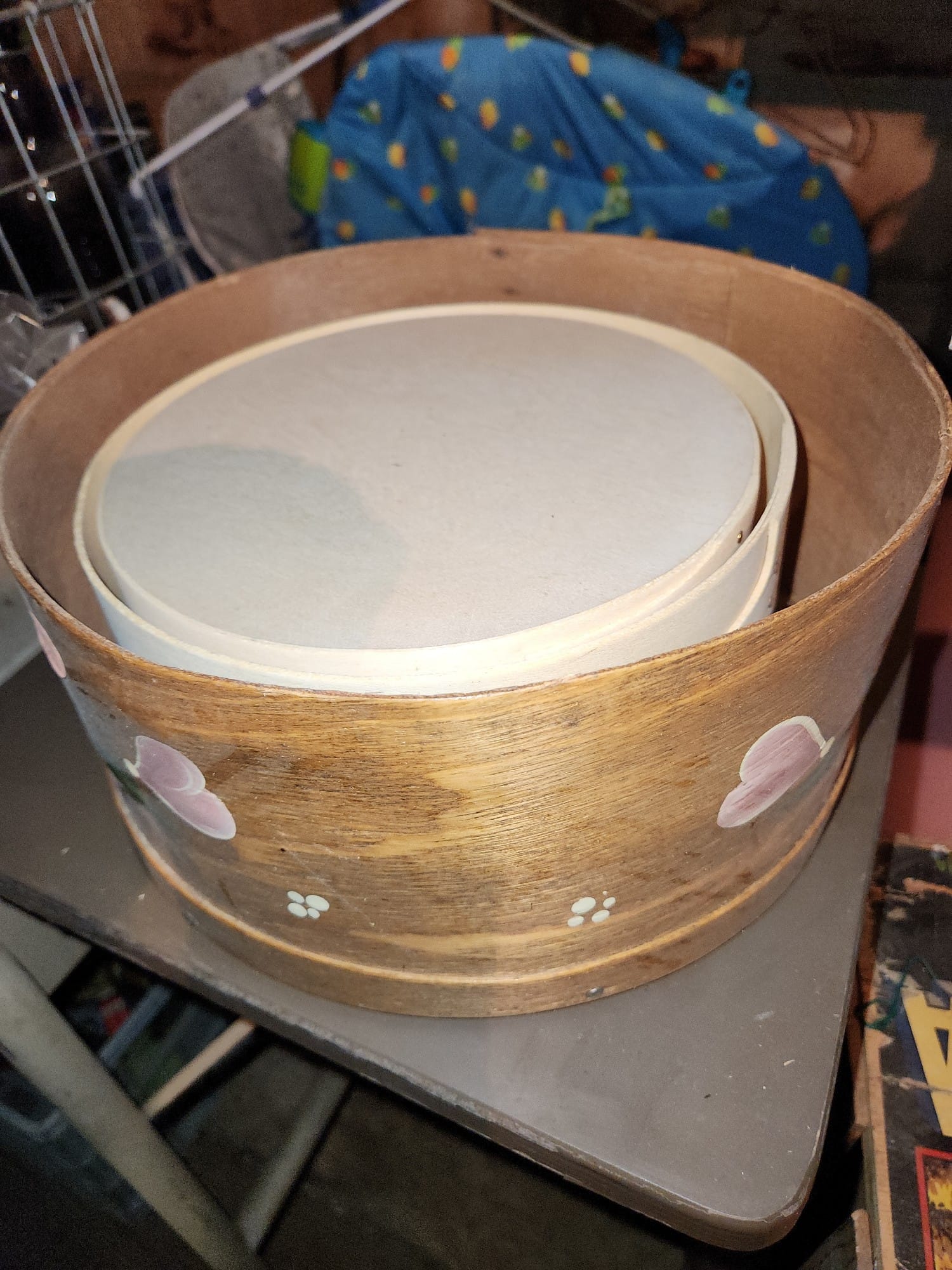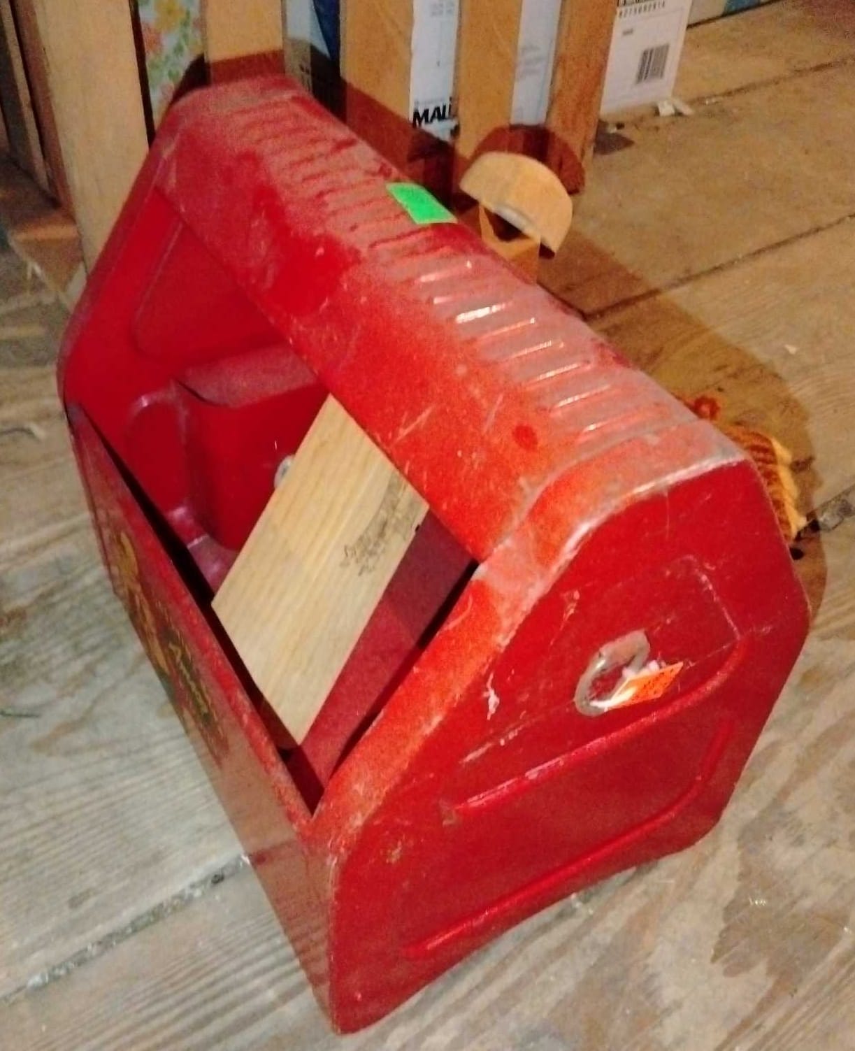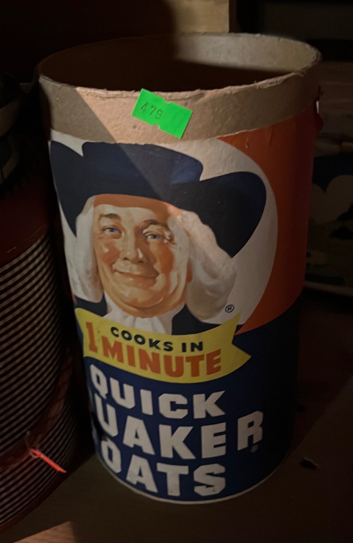 479 Oat box, wood tote, jewelry box, tin - no lid, sewing box