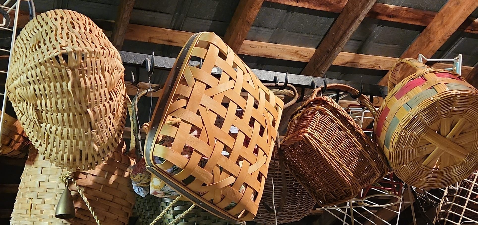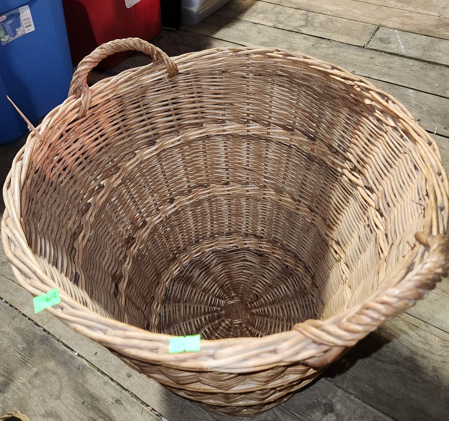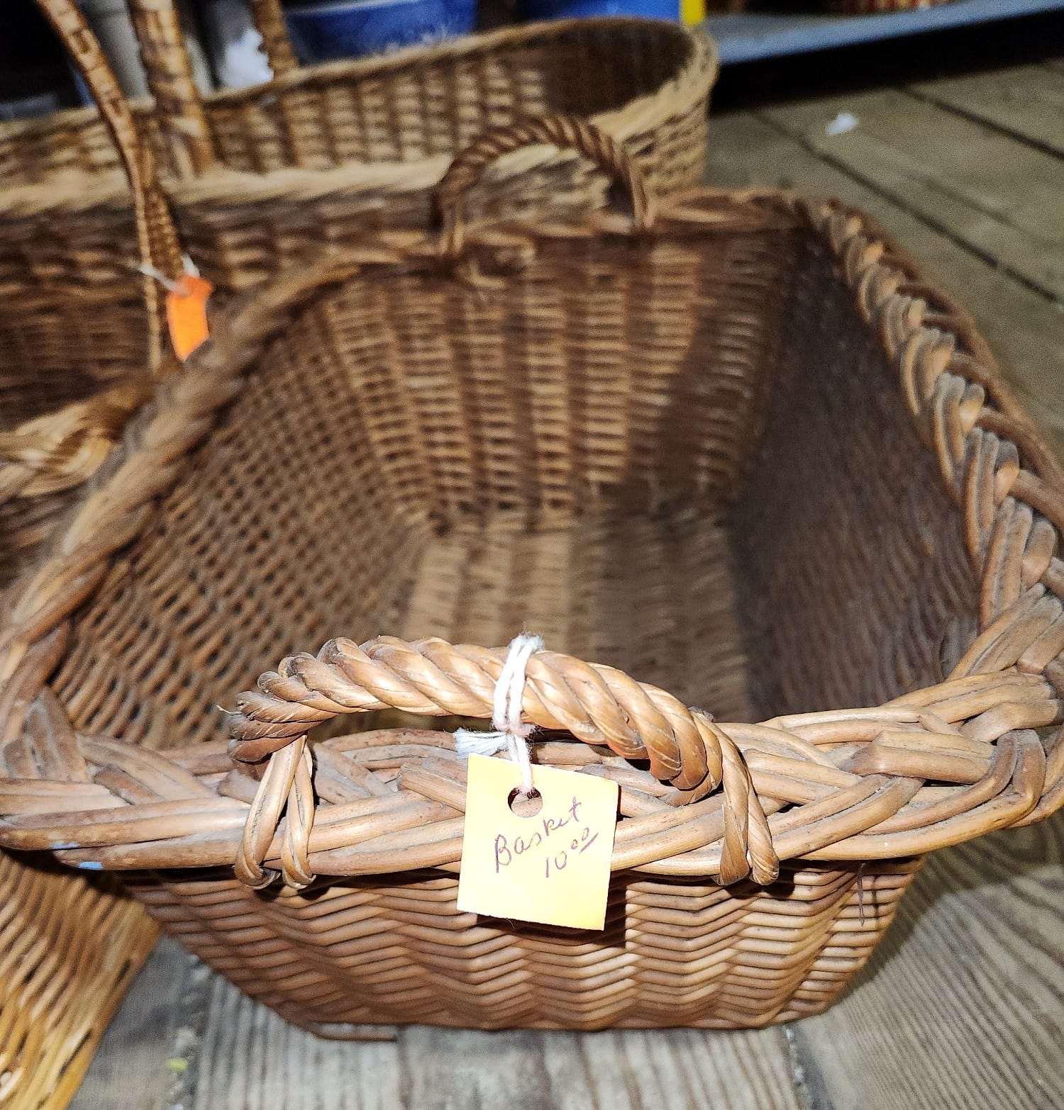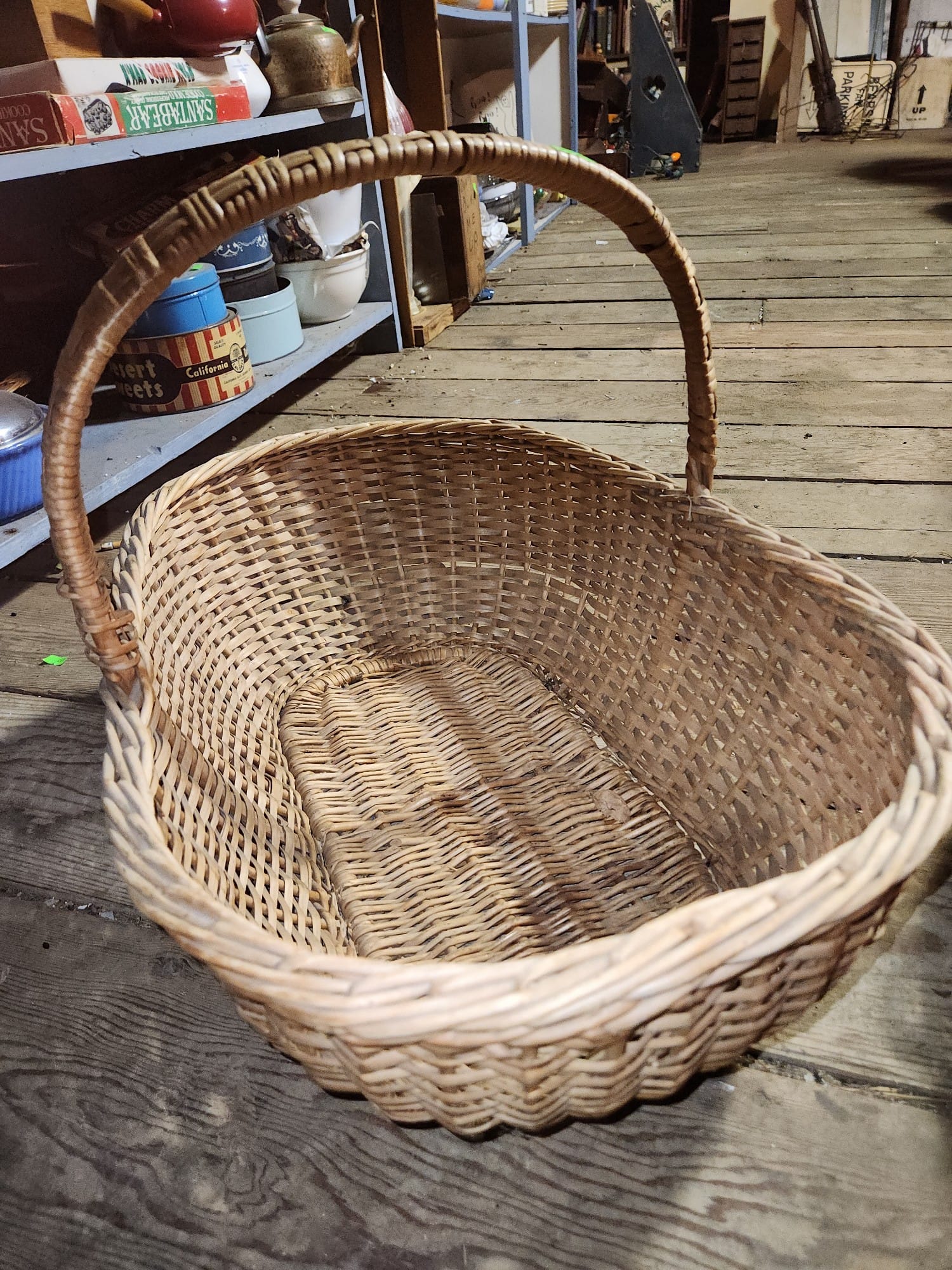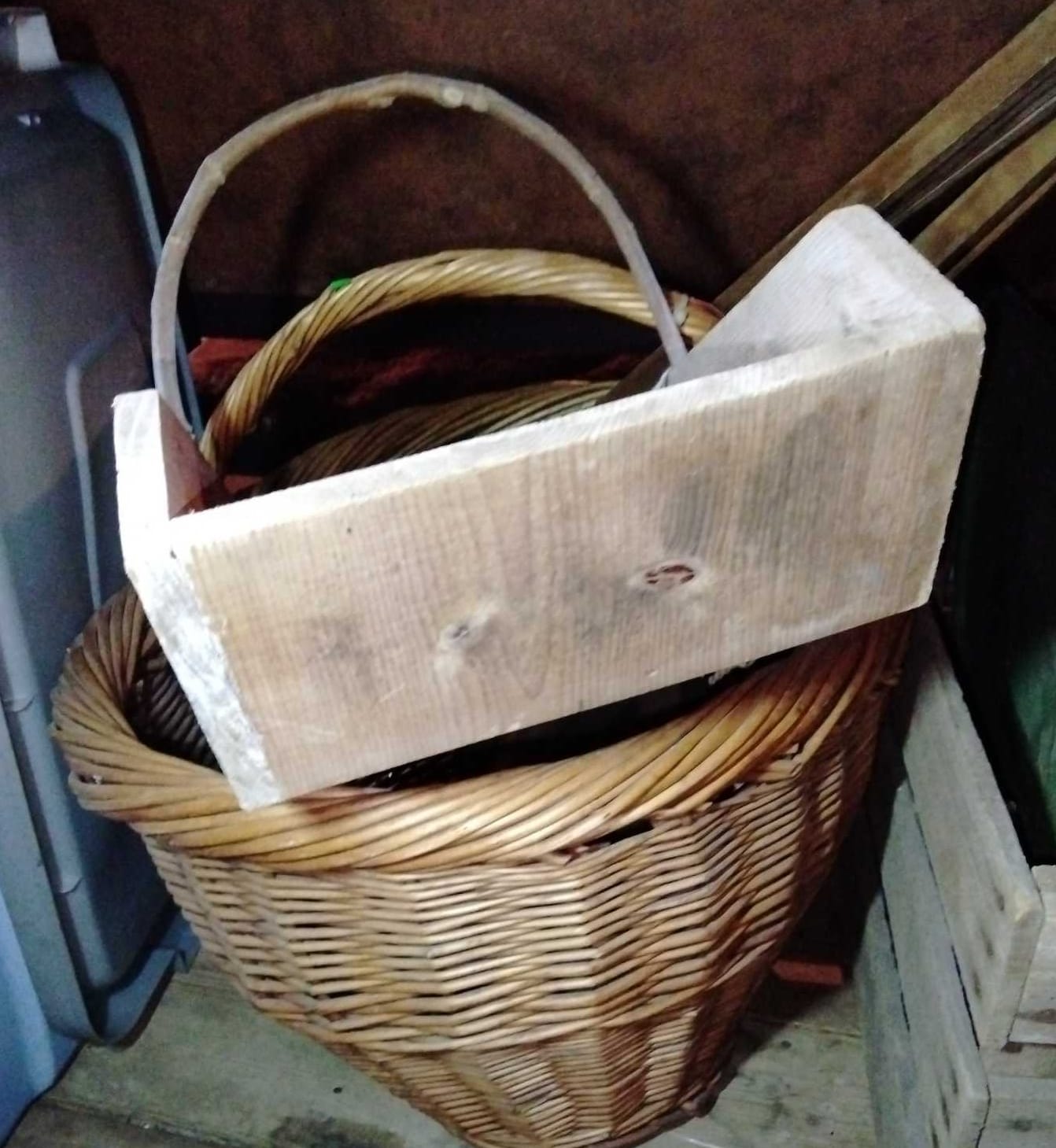 459 Basket, copper teapot - no lid, mugs, miscellaneous