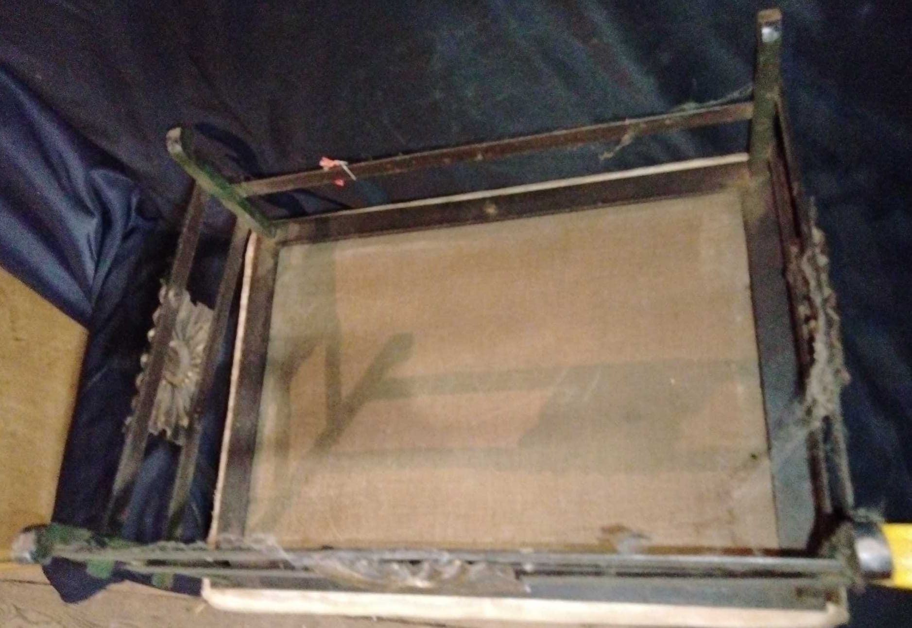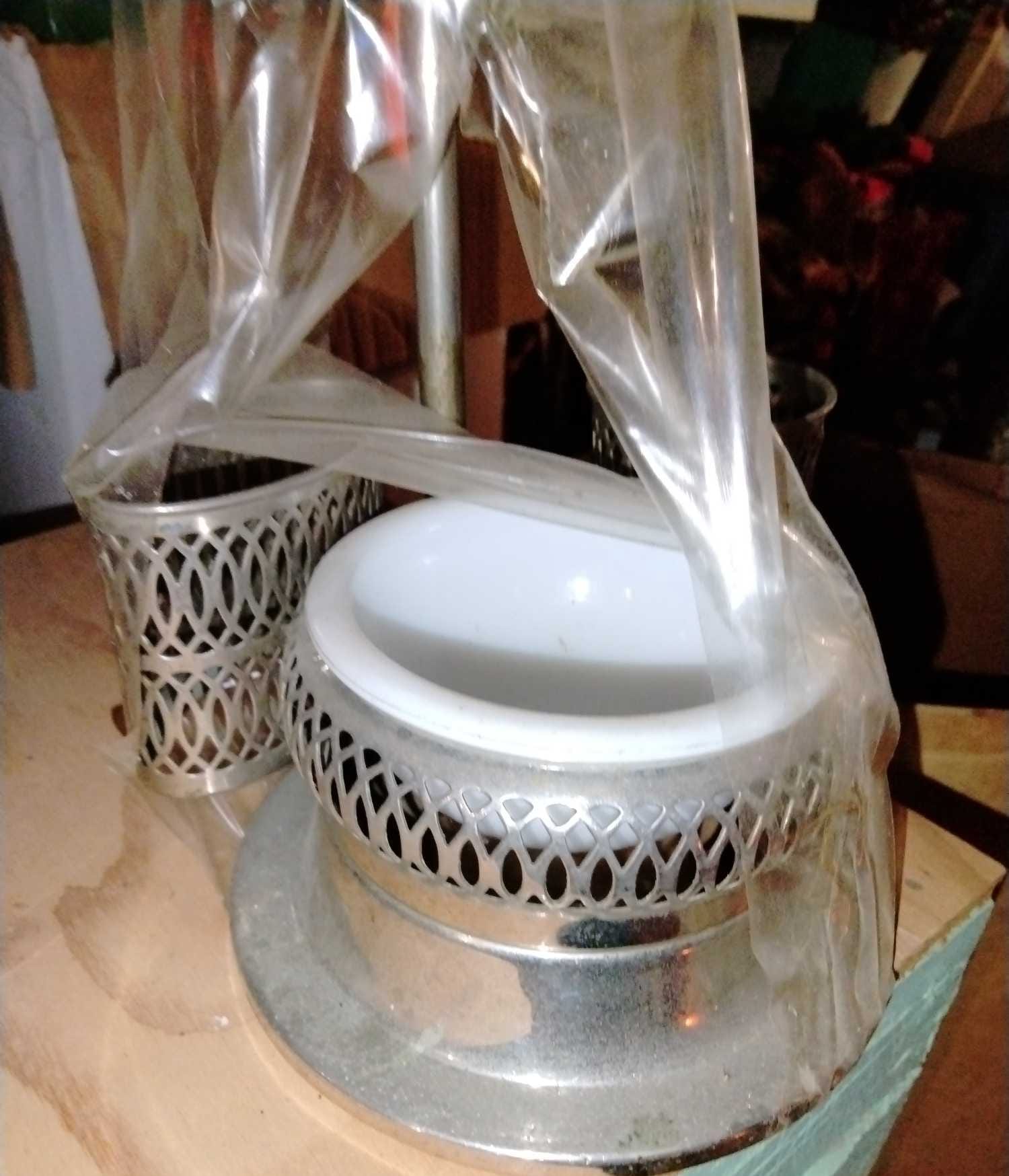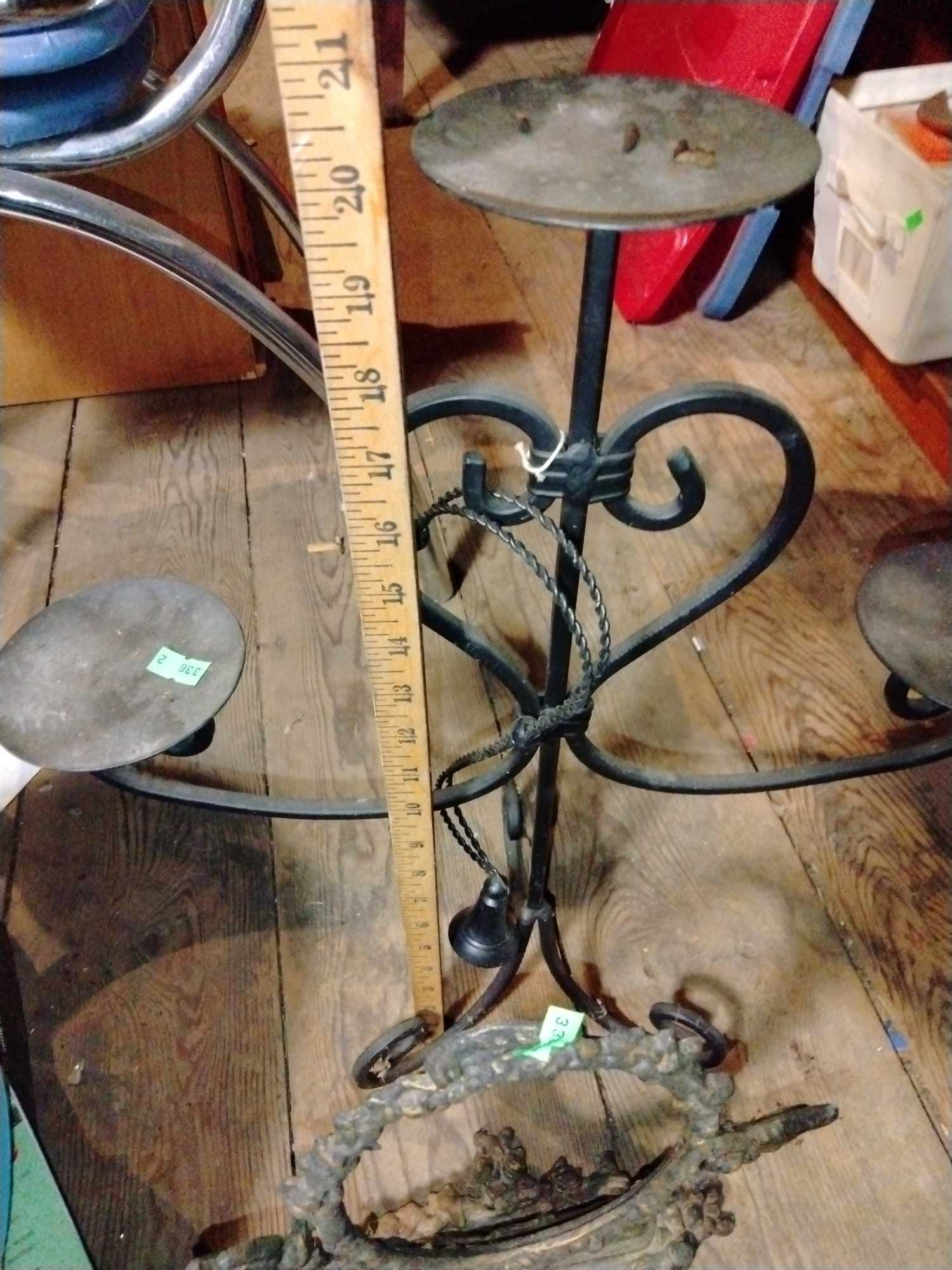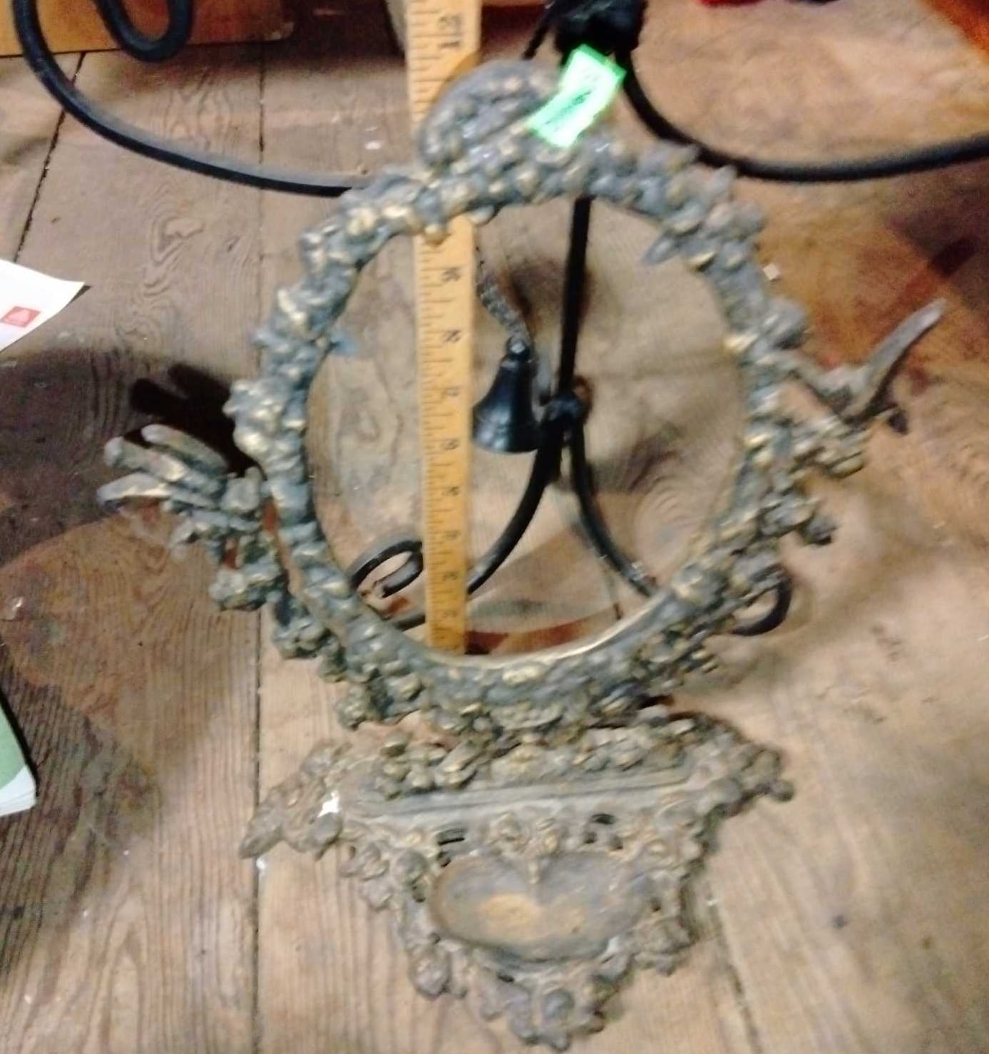 448 Oil lamp base, lanterns - 1 broken globe, shelf