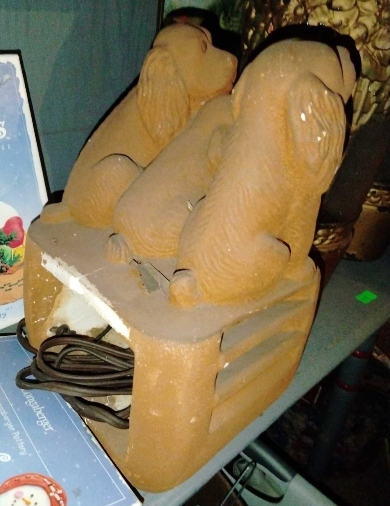 220 Goofus glass vases, dog lamp, Longaberger snow friends, toothpick holders, miscellaneous