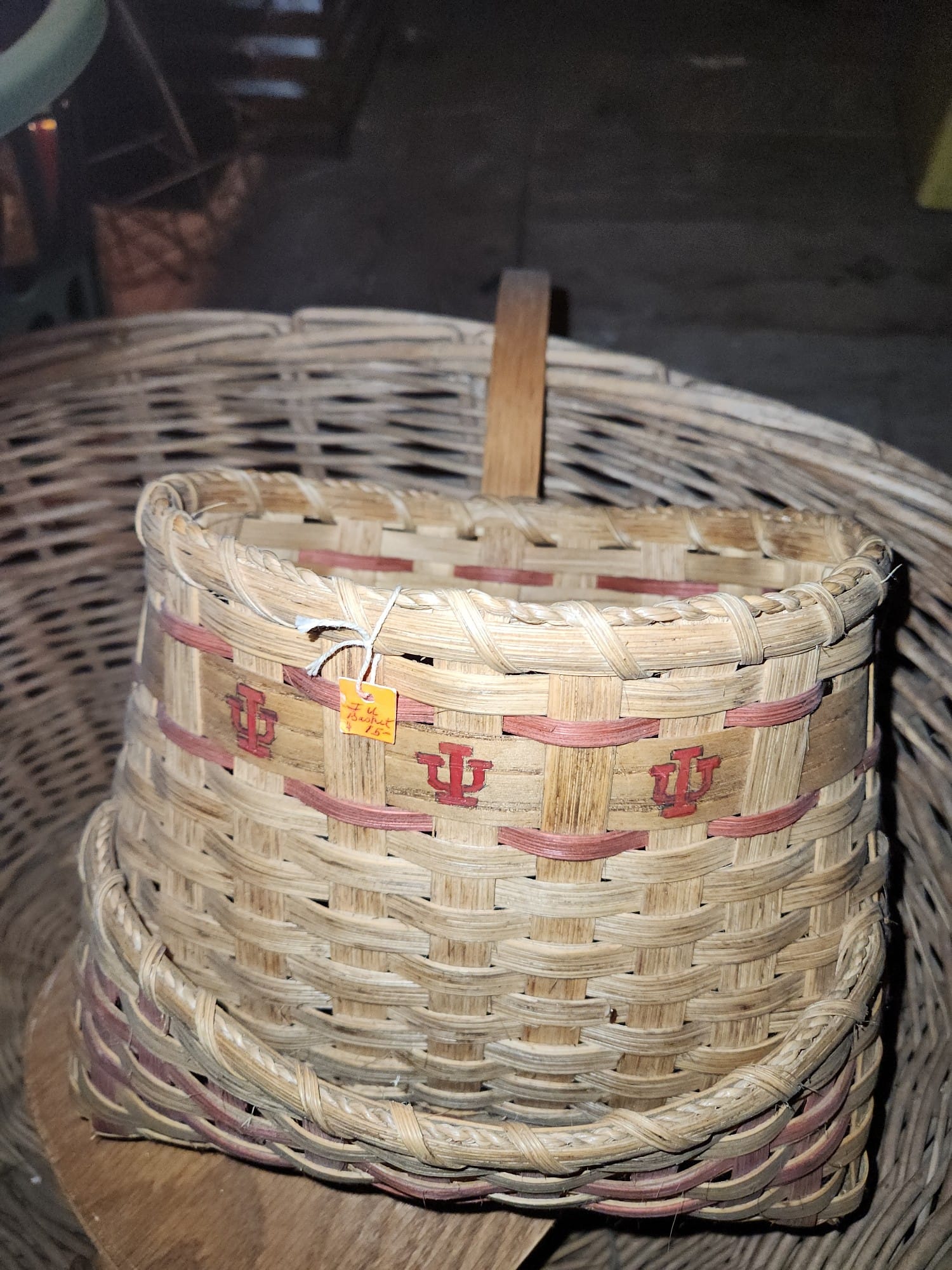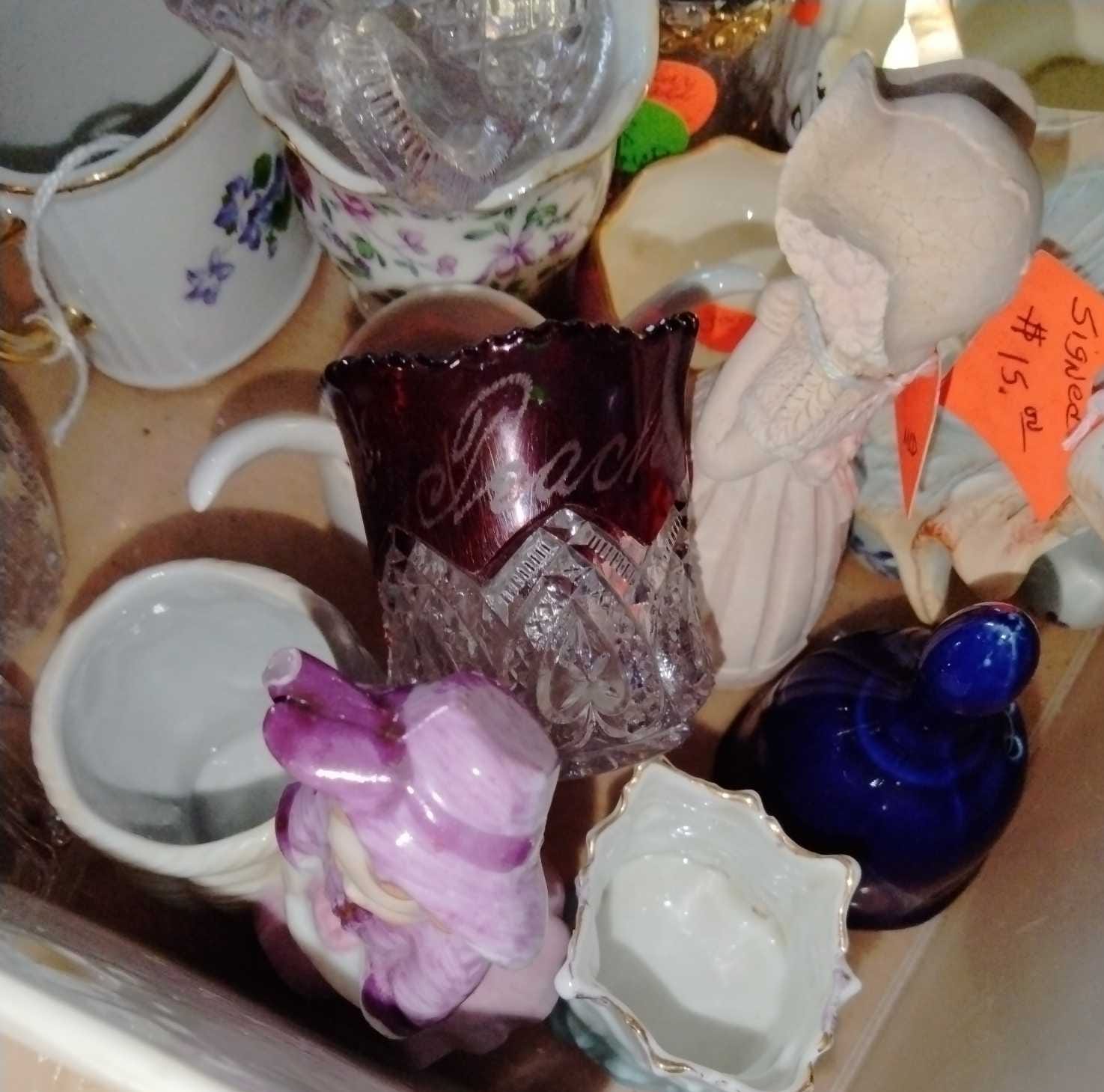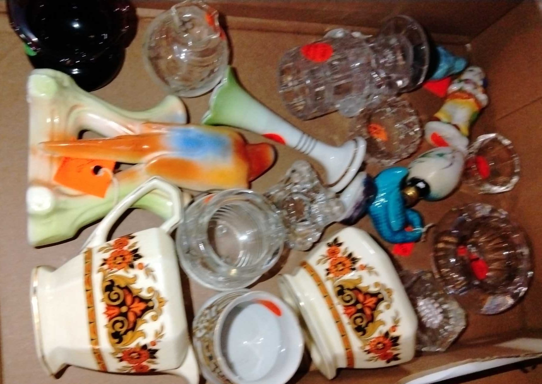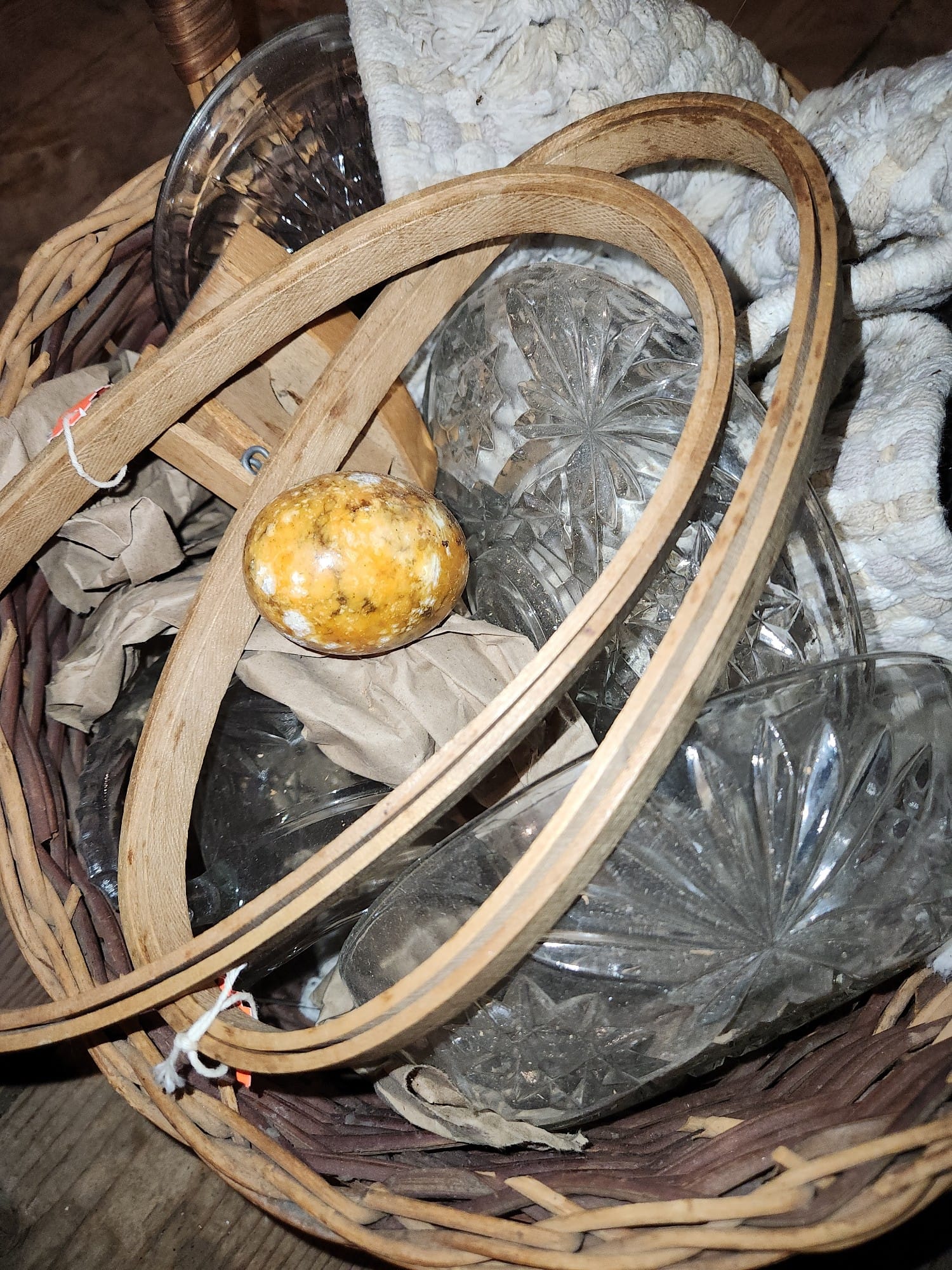 261 Divided basket, Shawnee salt and pepper shakers, Delaware glass, porcelain, Coca-Cola bottle opener, Ruby cigarette holder and ashtray