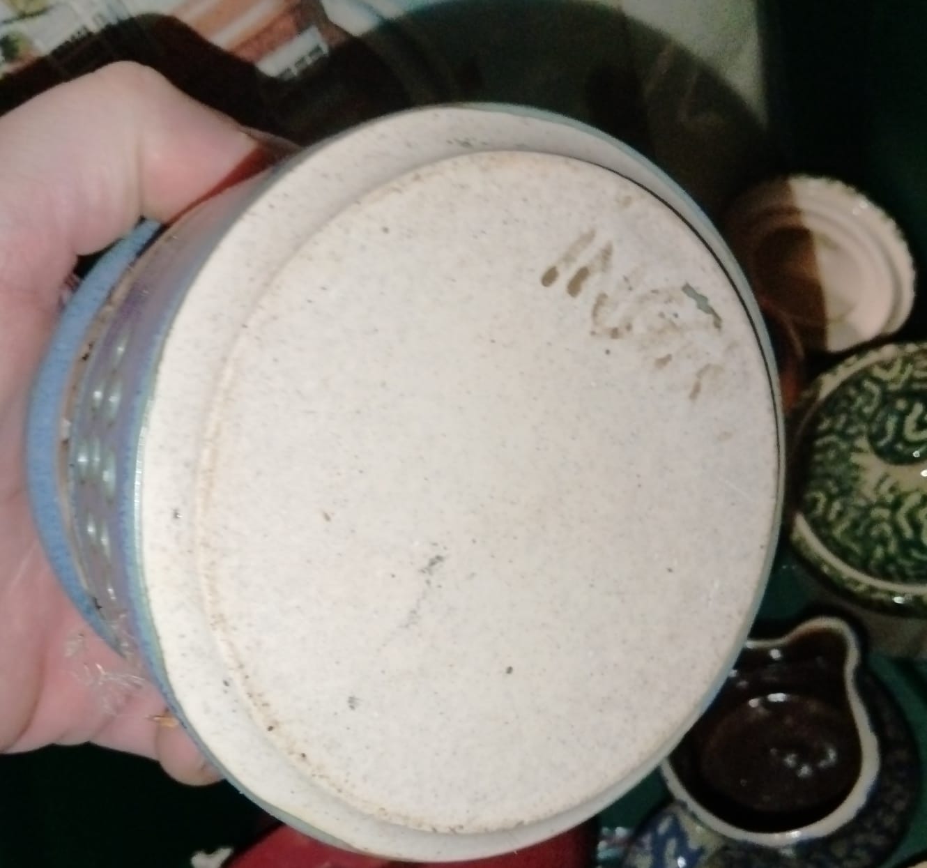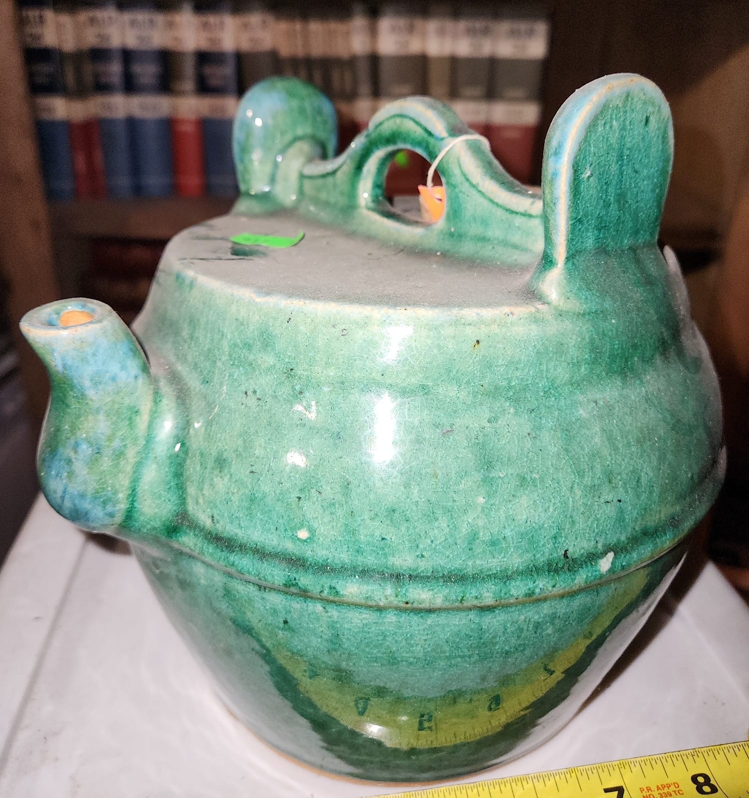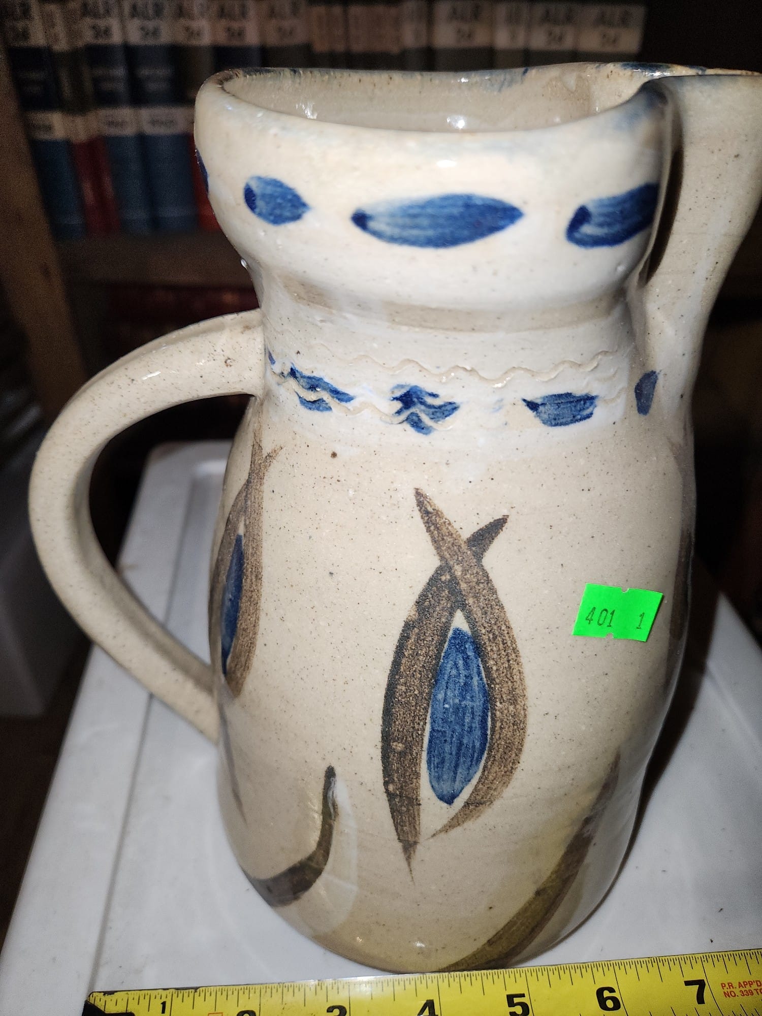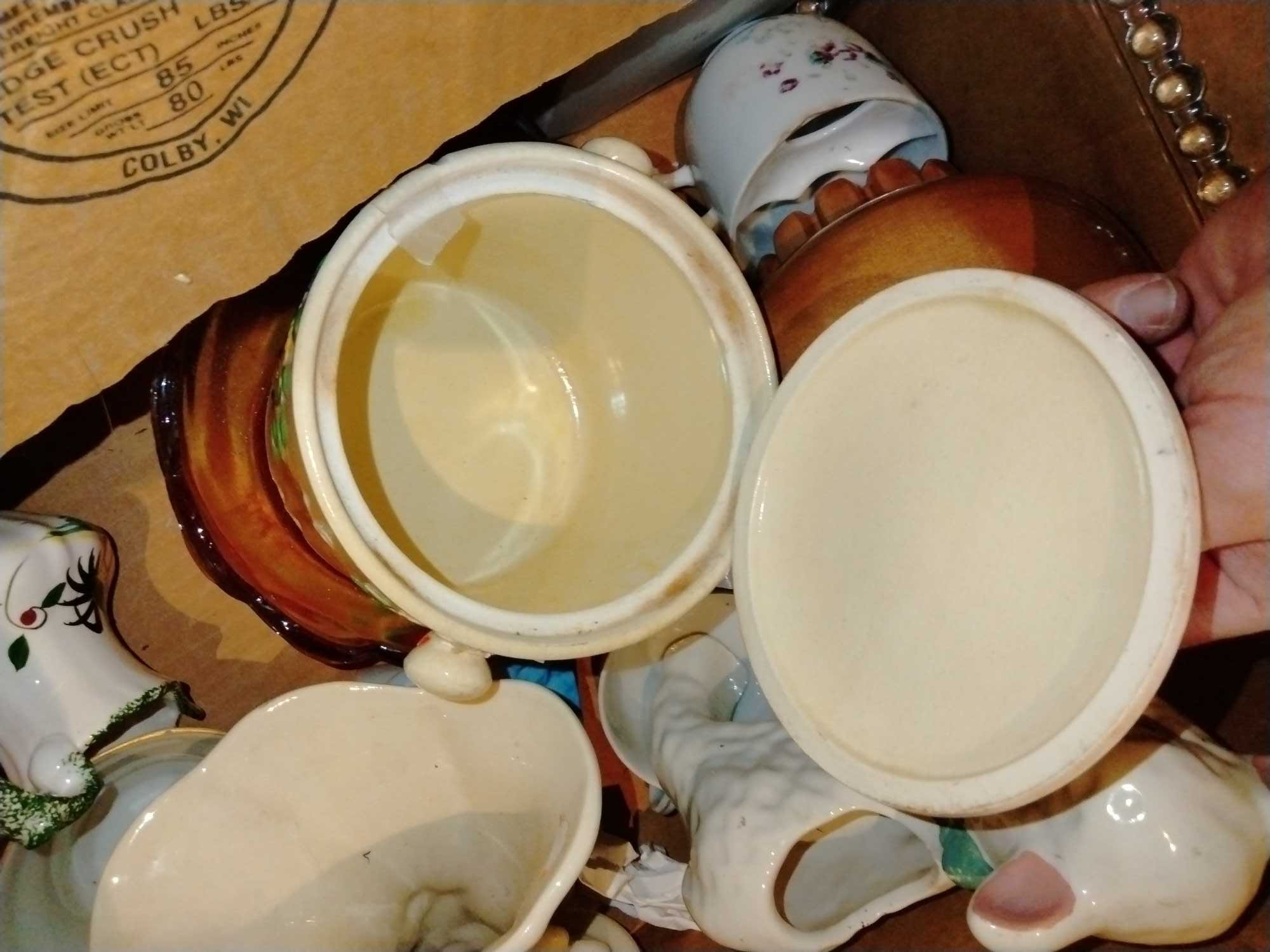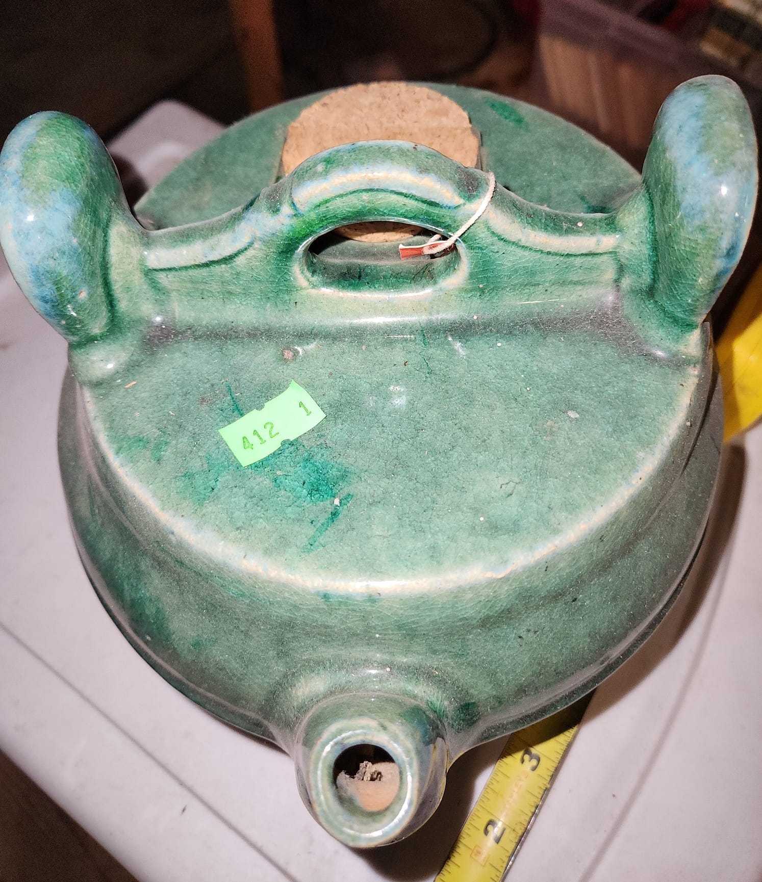 422 Crock covered dish, serving bowl, Roseville crock, porcelain creamer, jello molds, crock dish