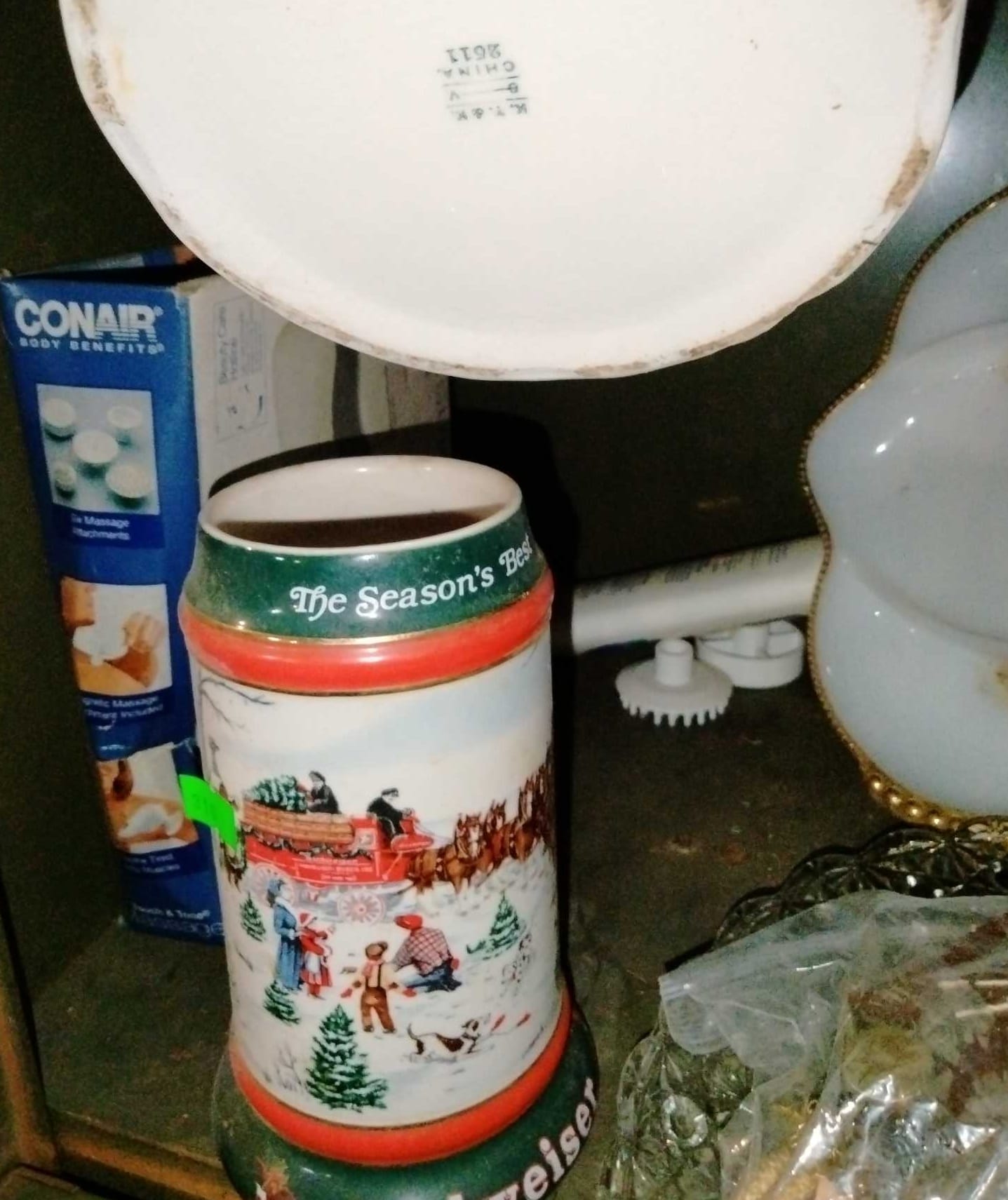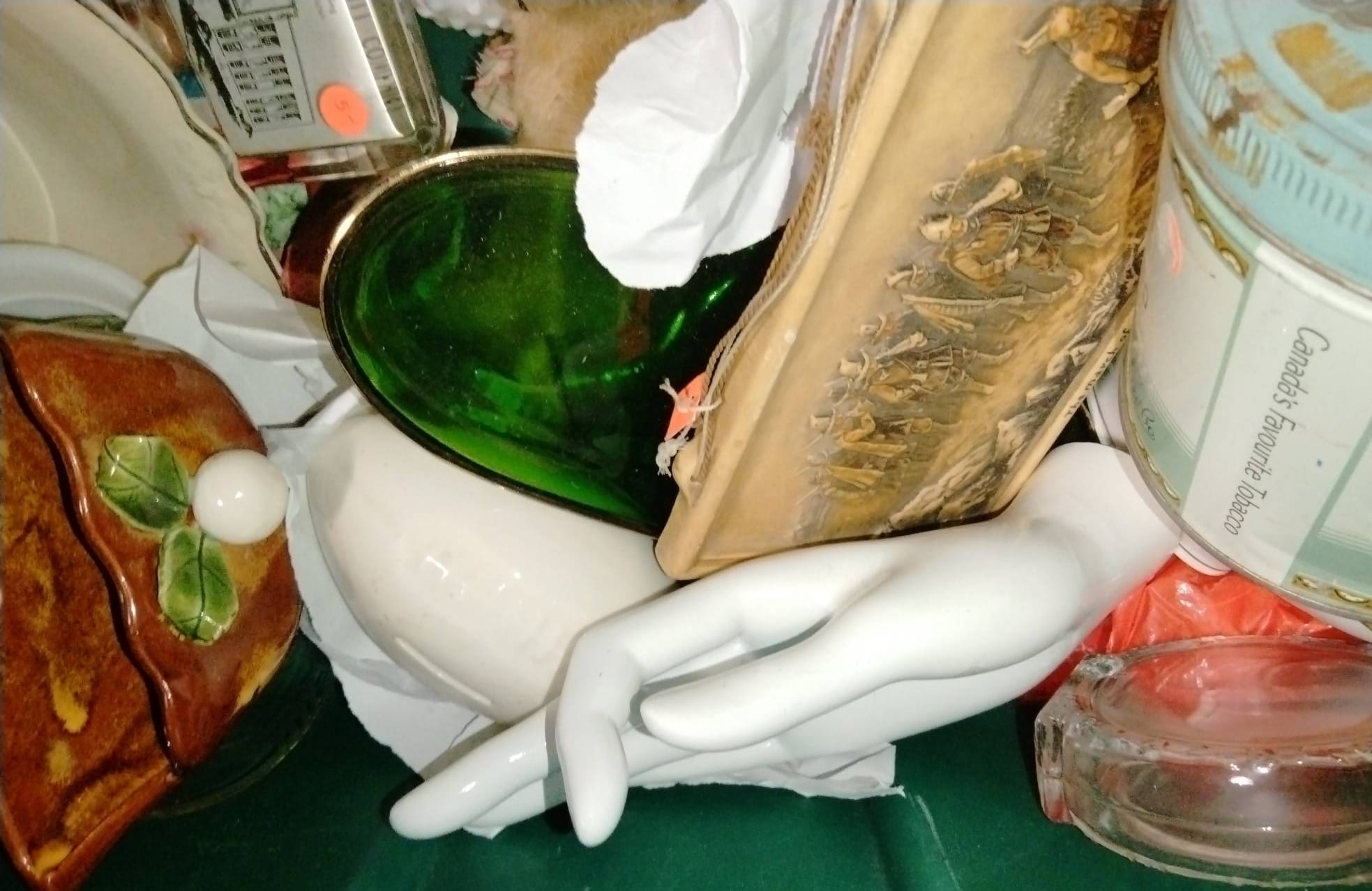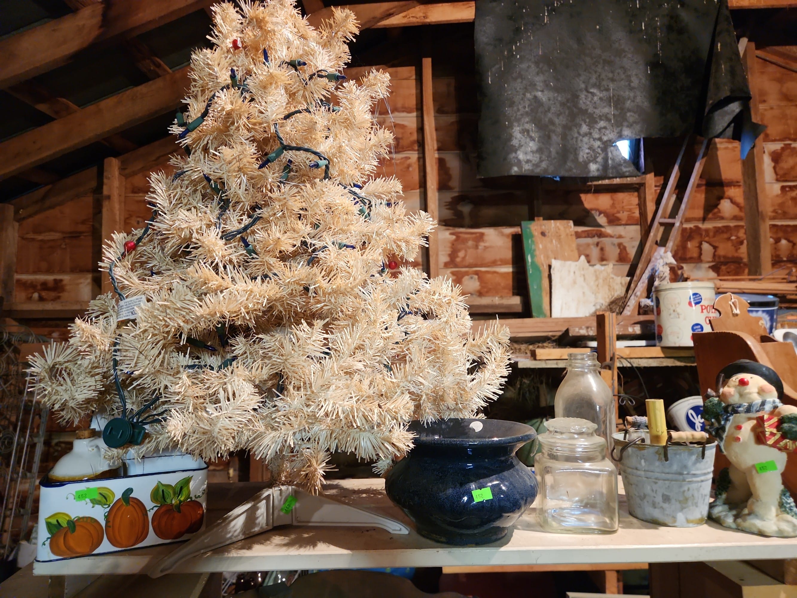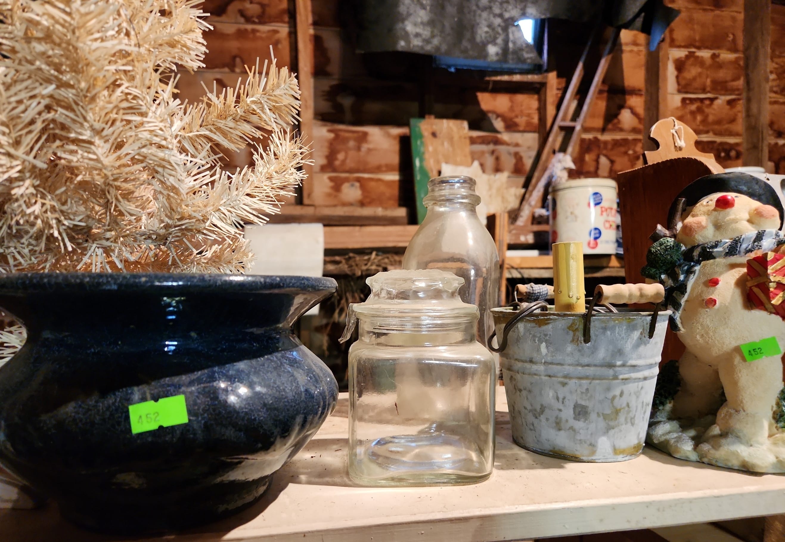 452 Christmas tree, spittoon, canister, milk bottle, miscellaneous