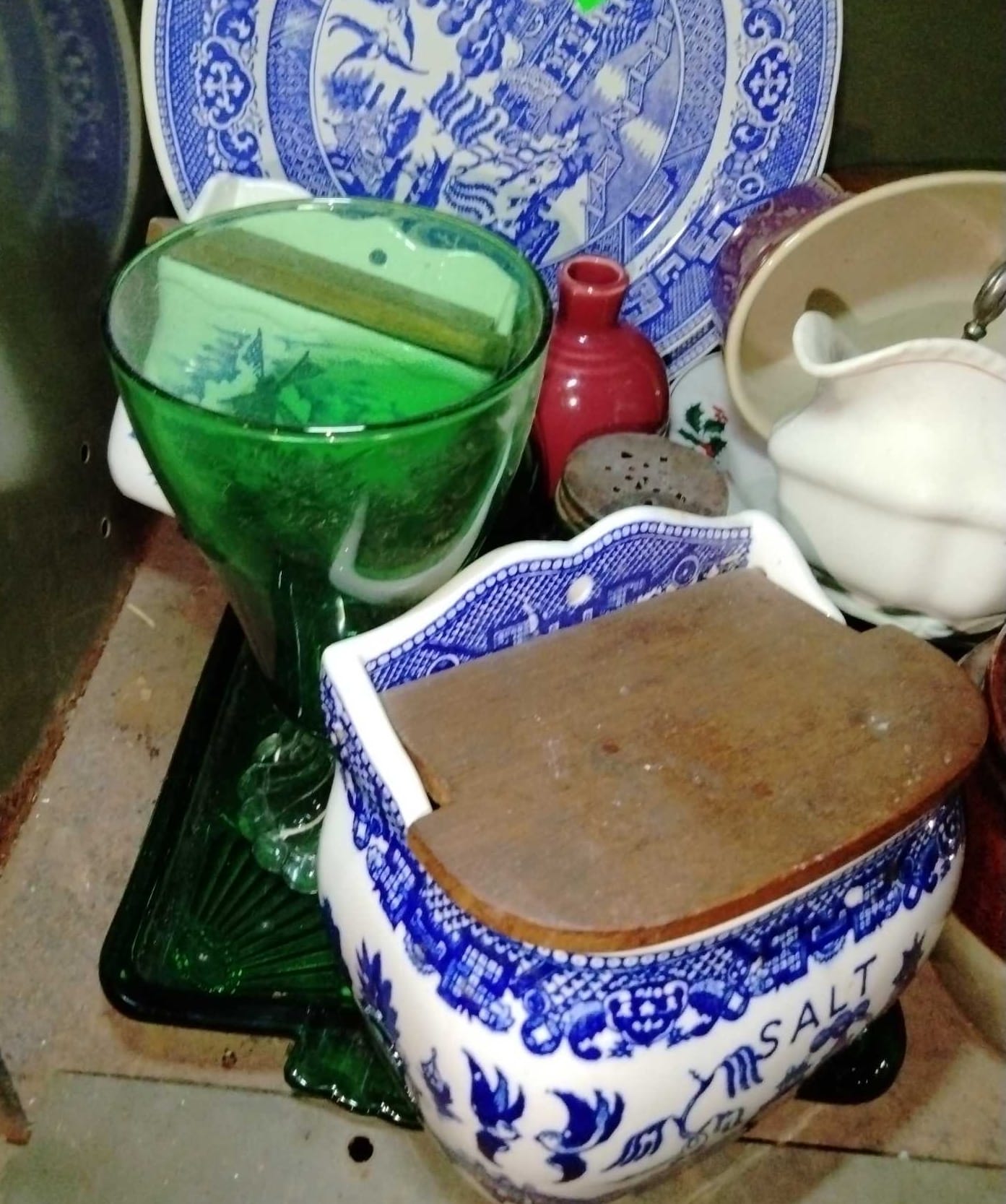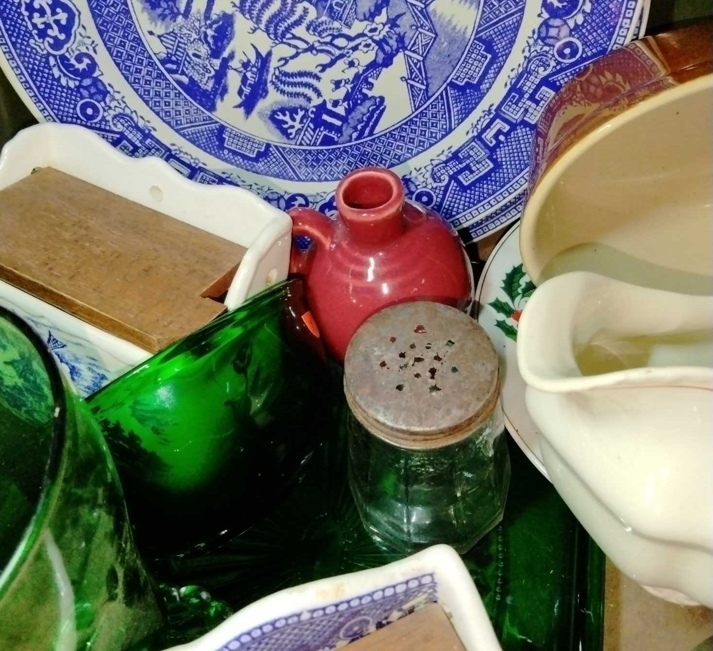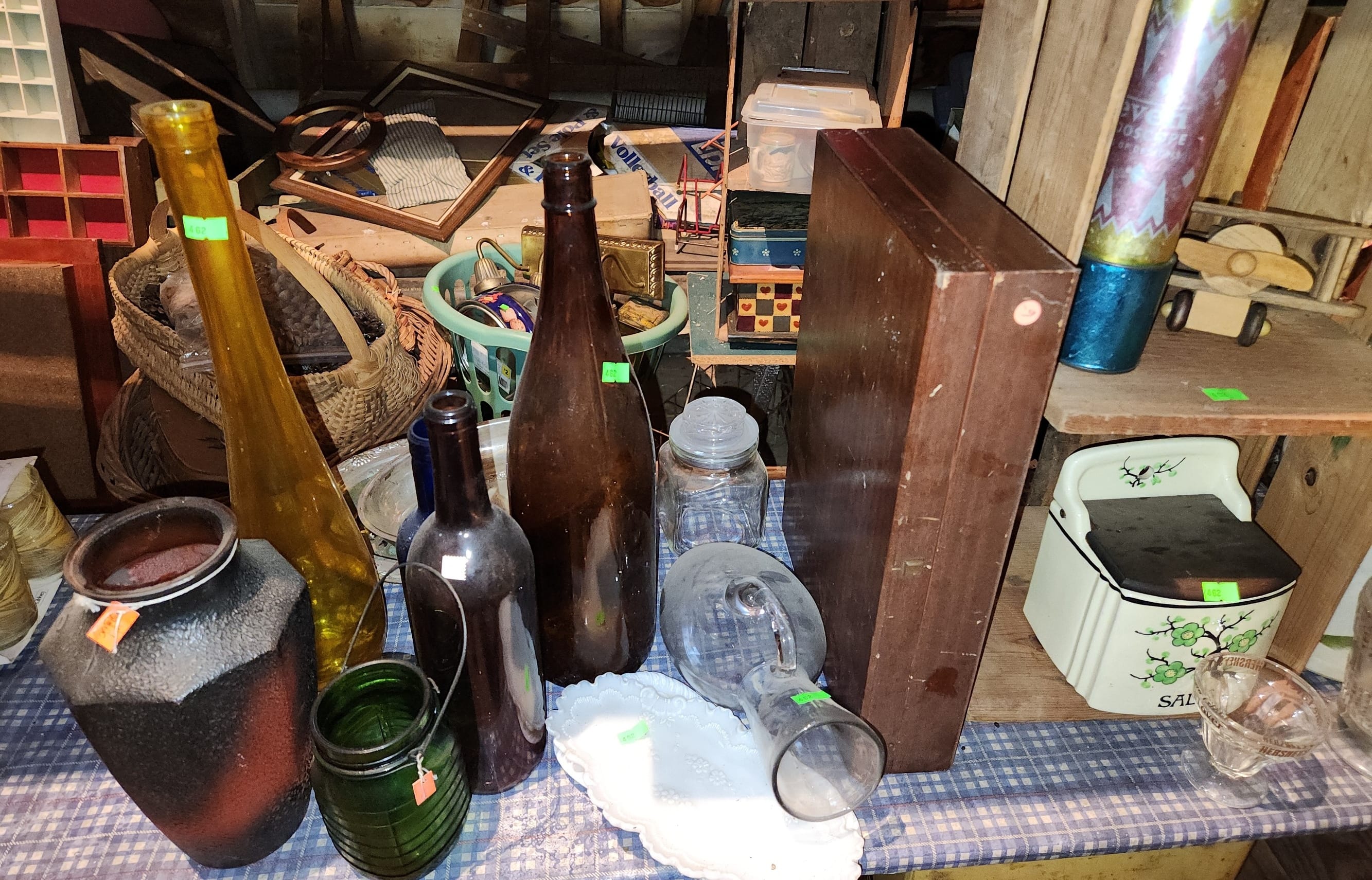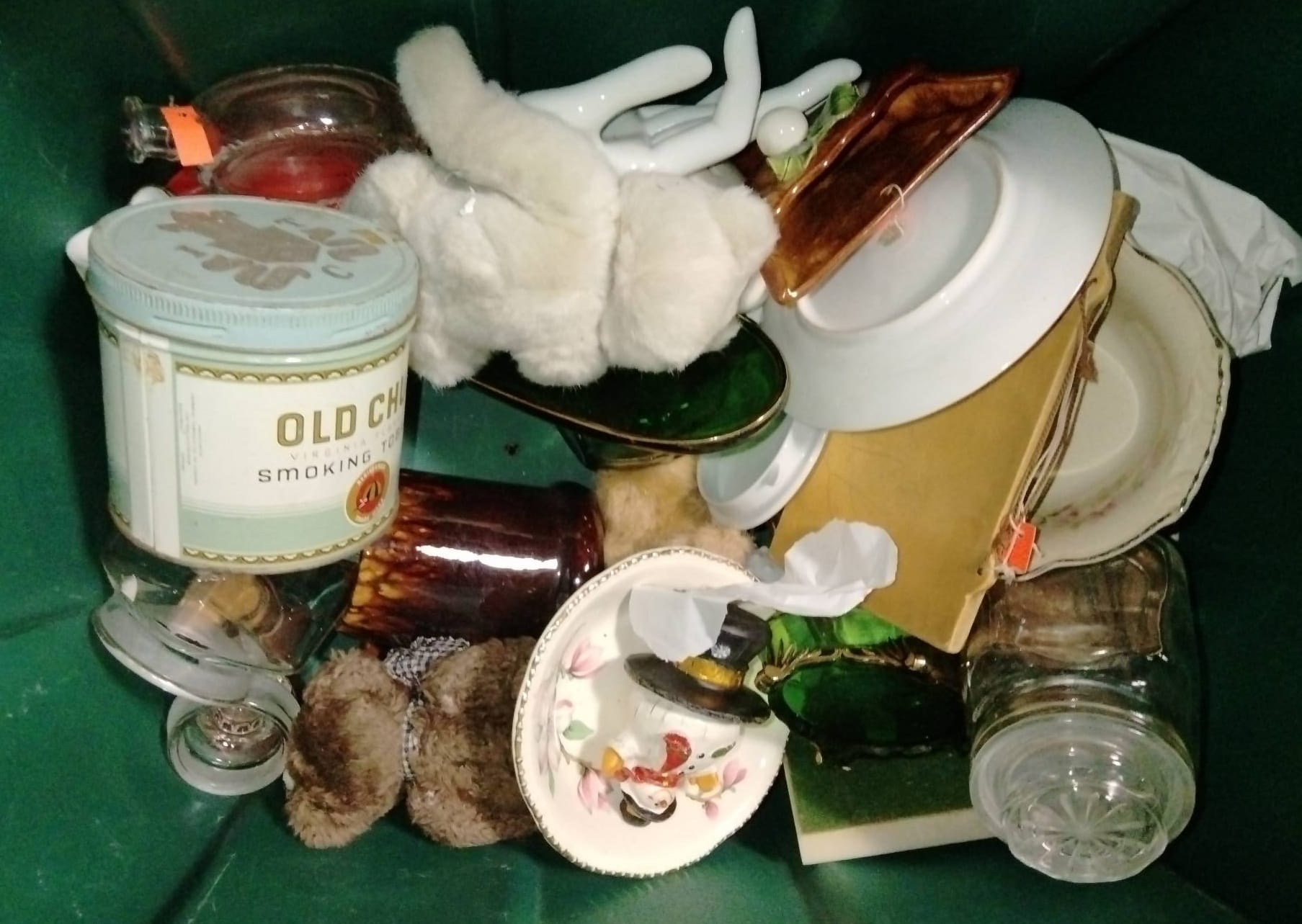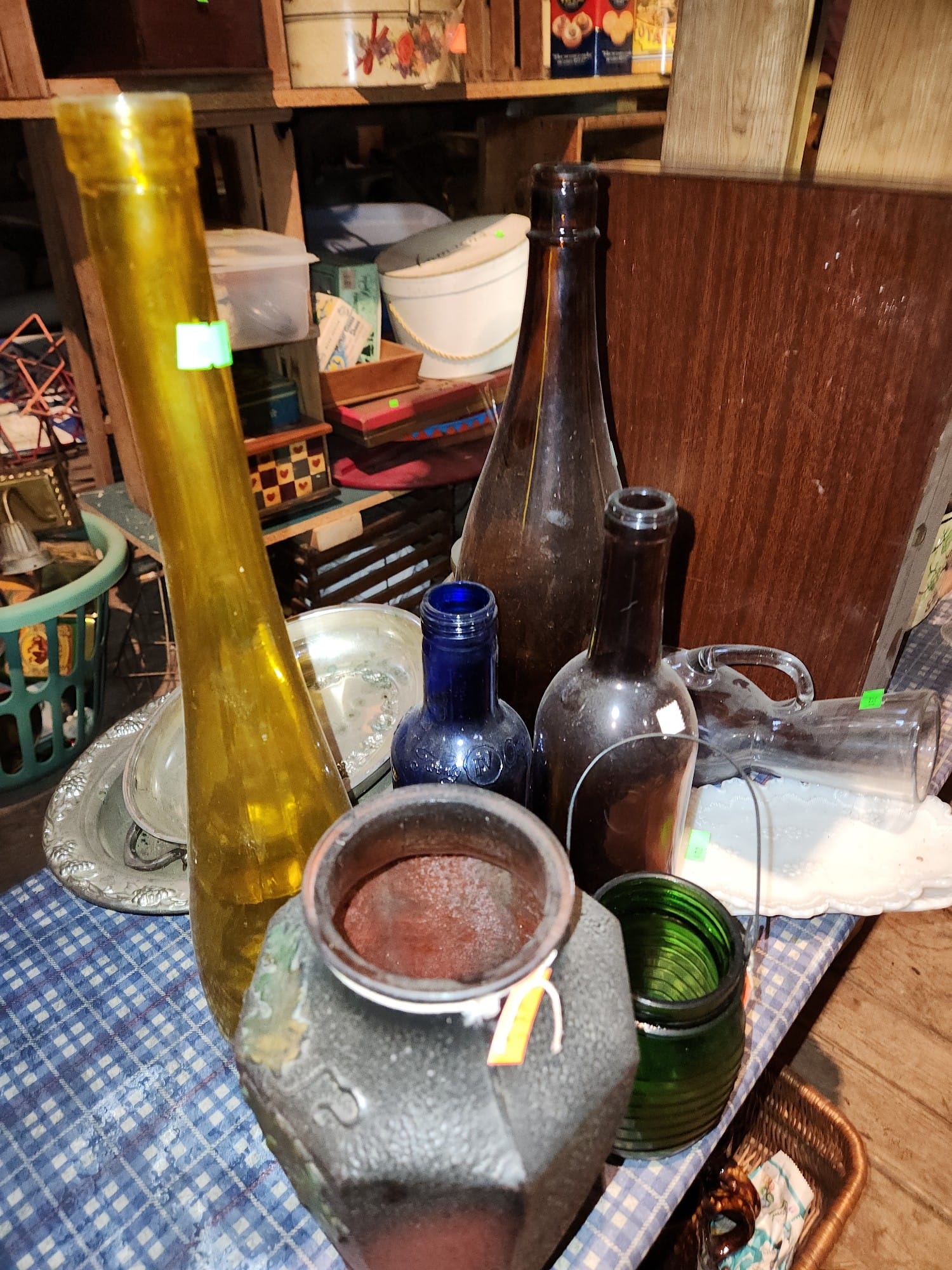 462 Glass bottles, vase, urinal, plates, salt box, kaleidoscope, miscellaneous