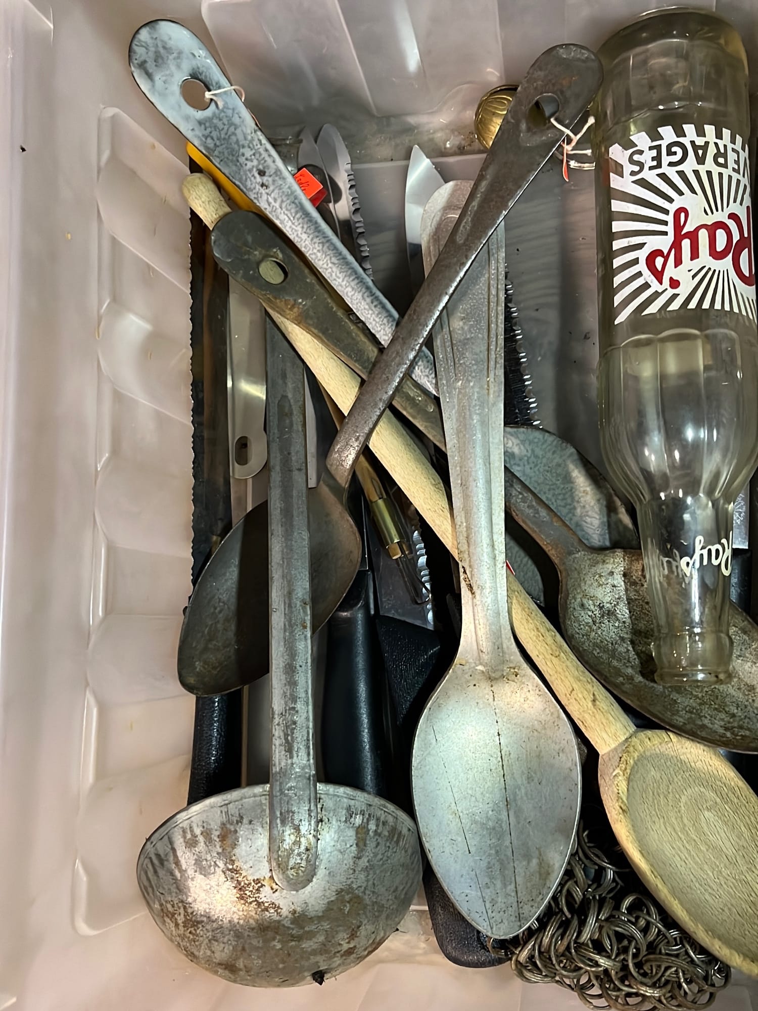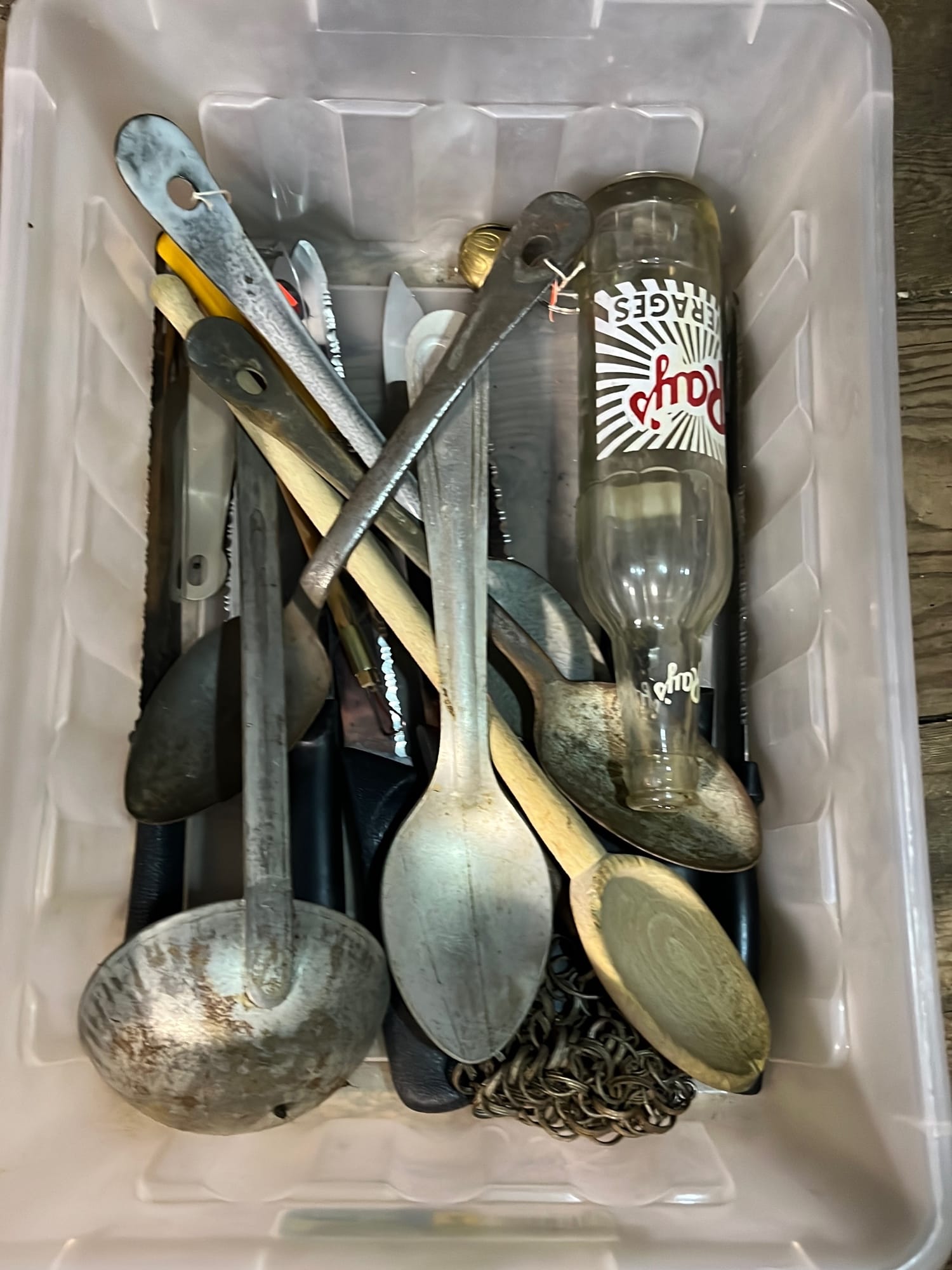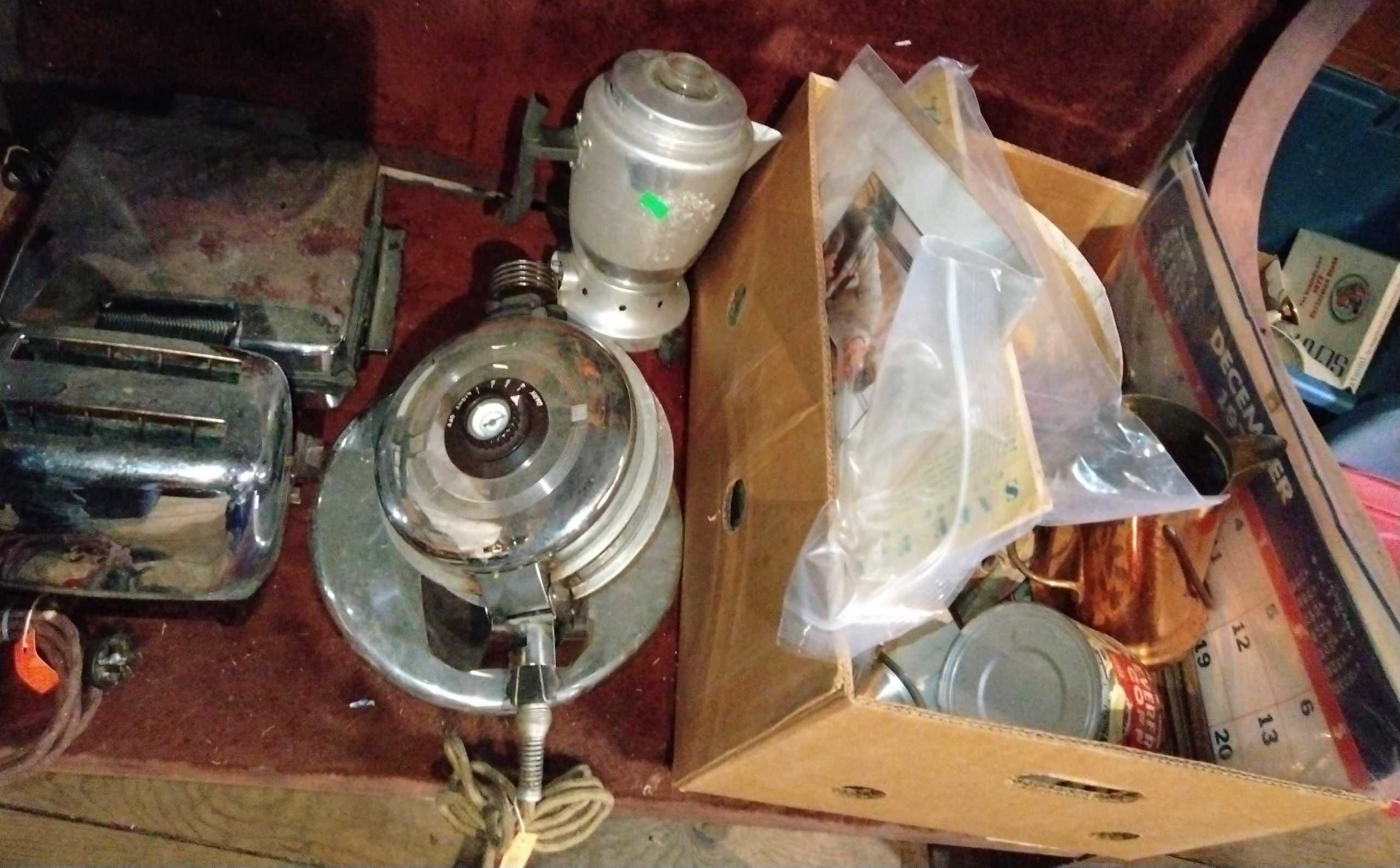 440 Churn, enamel cup, Joe St Clair Bicentennial bells, miscellaneous