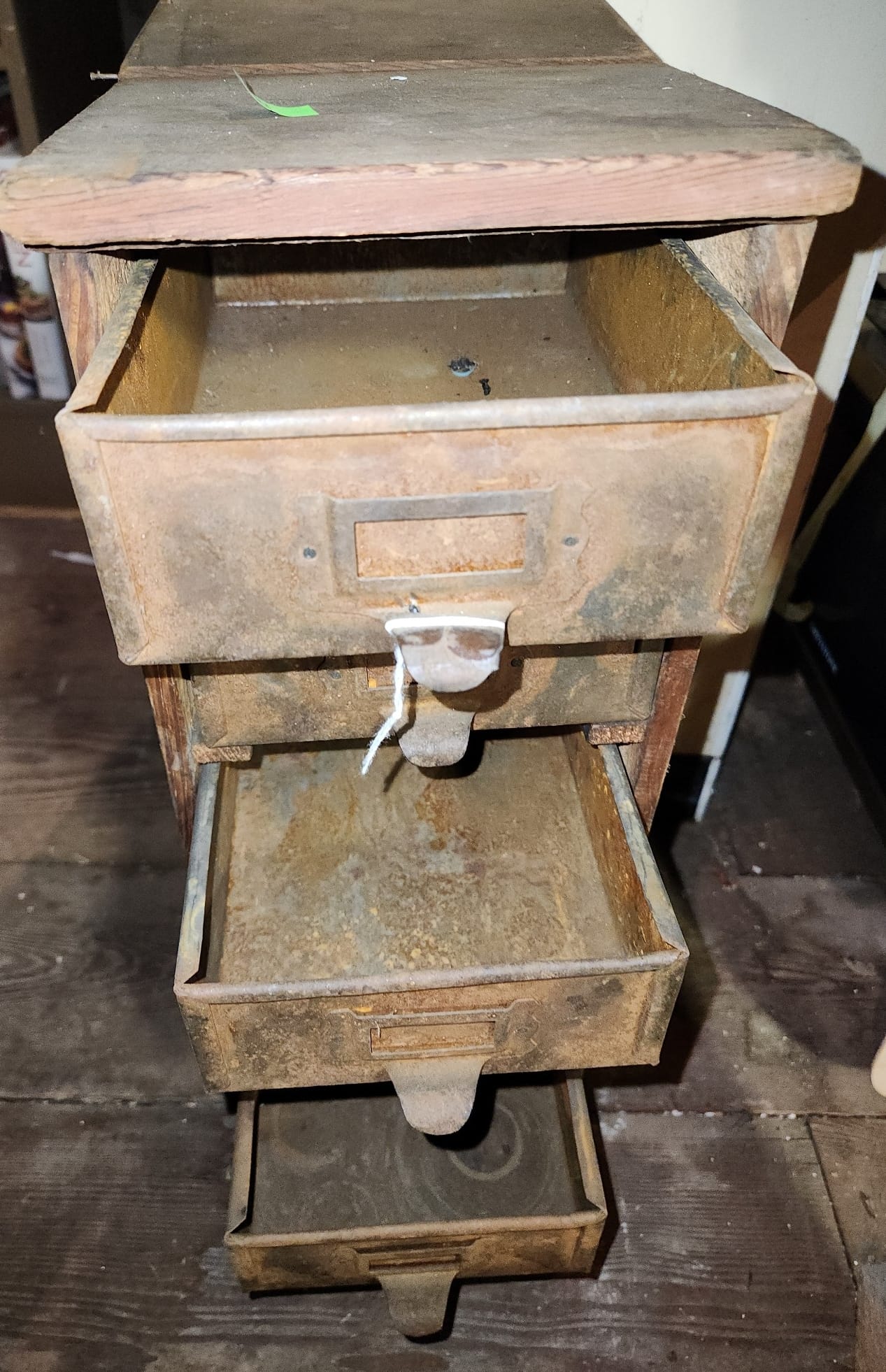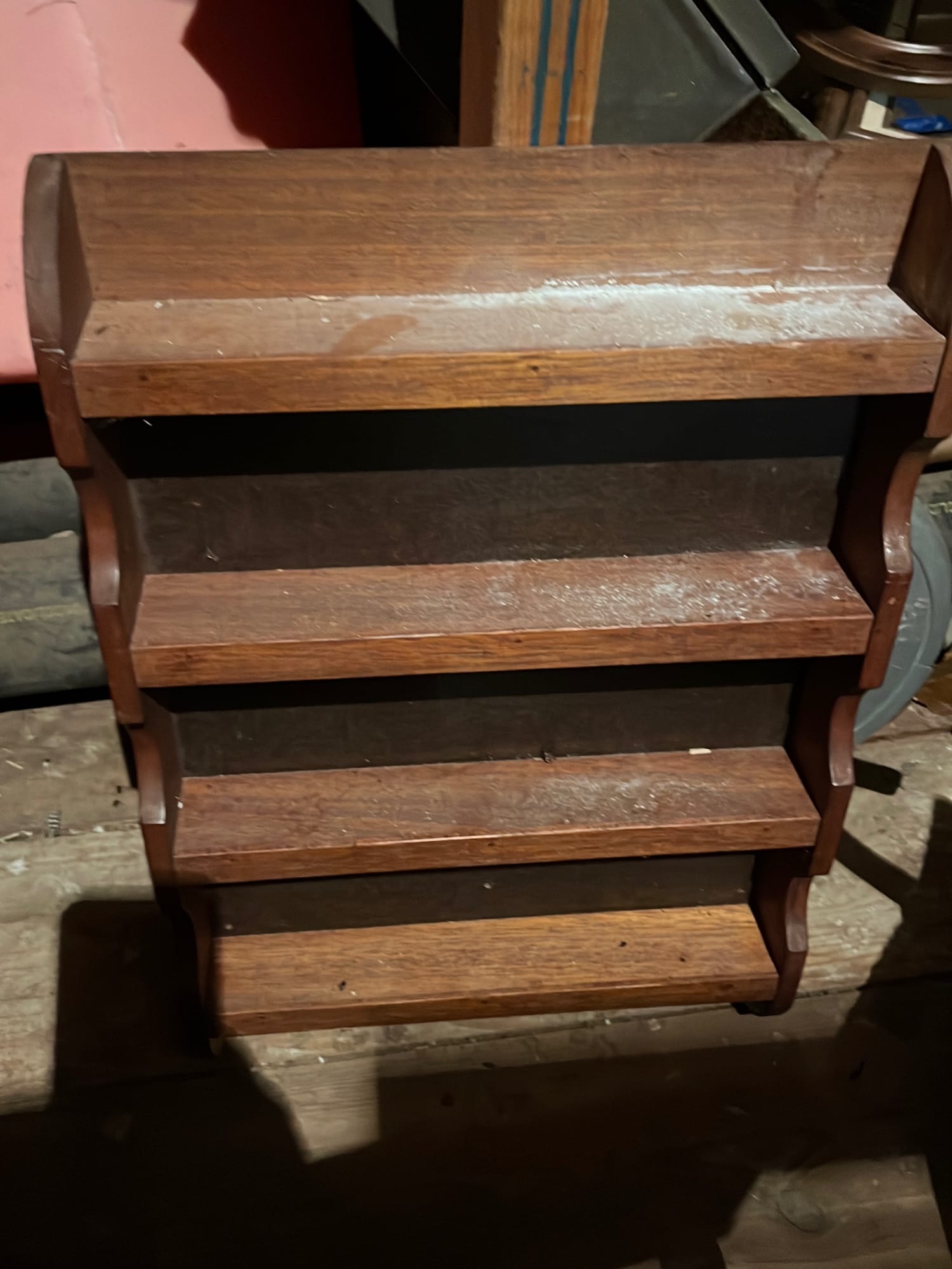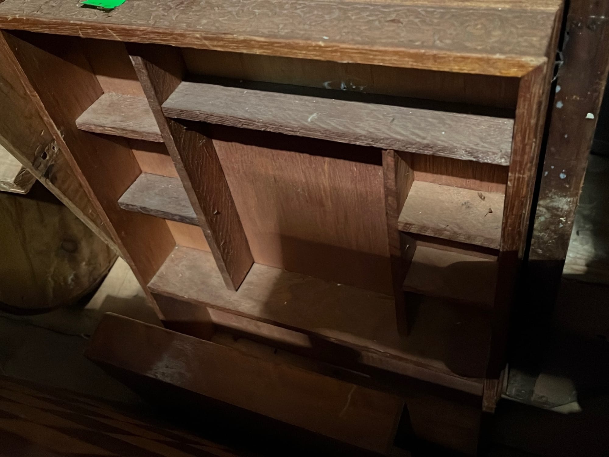 456 Spice rack and drawers - some missing, wood box, lamp base, miscellaneous