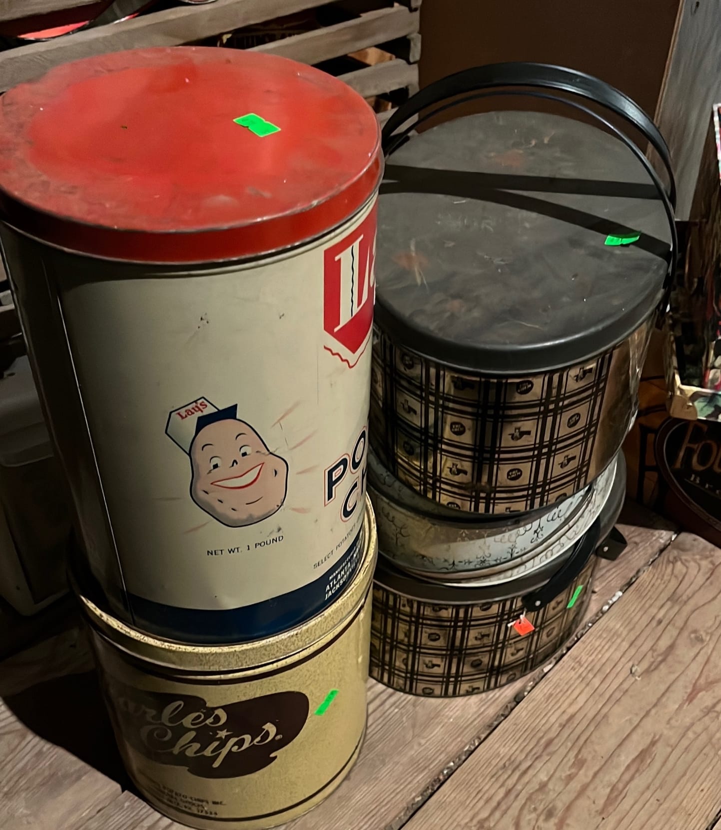471 Lay’s and Charles chip tins, Tri Chem tins, tin