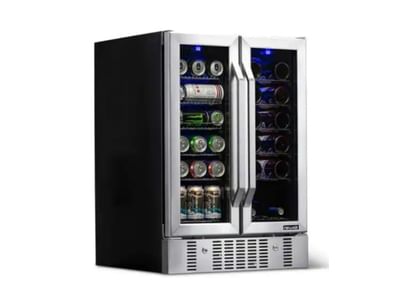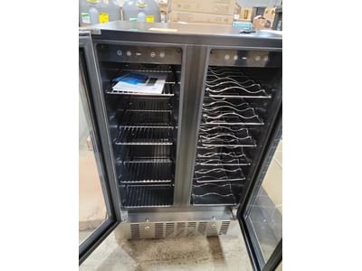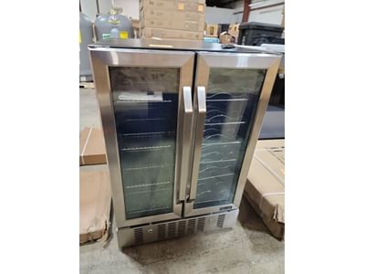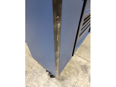 10000 Kool more 3 door refrigerated cooler 71" W x 76" T x 29" D has keys broken glass and dented