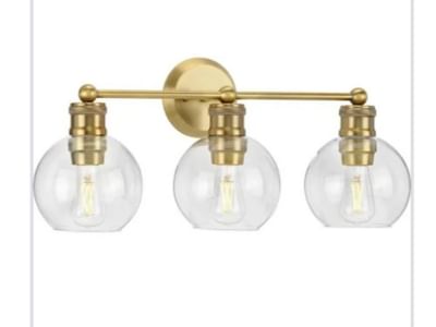 9164 Vess 3-Light Satin Brass Bathroom Vanity Light with Clear Seeded Glass Shades