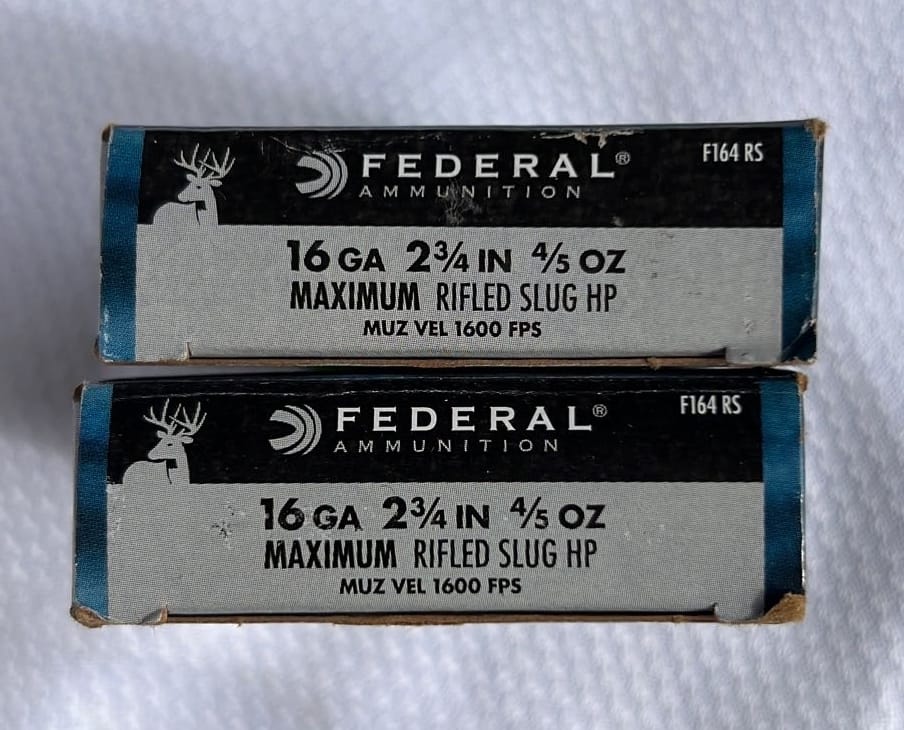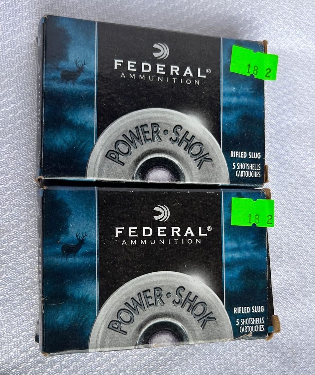 18 (2) Boxes, 5 Each-Federal Power Shok Ammunition 16 GA. 2 3/4 IN 4/5 oz. Maximum Rifled Slug HP