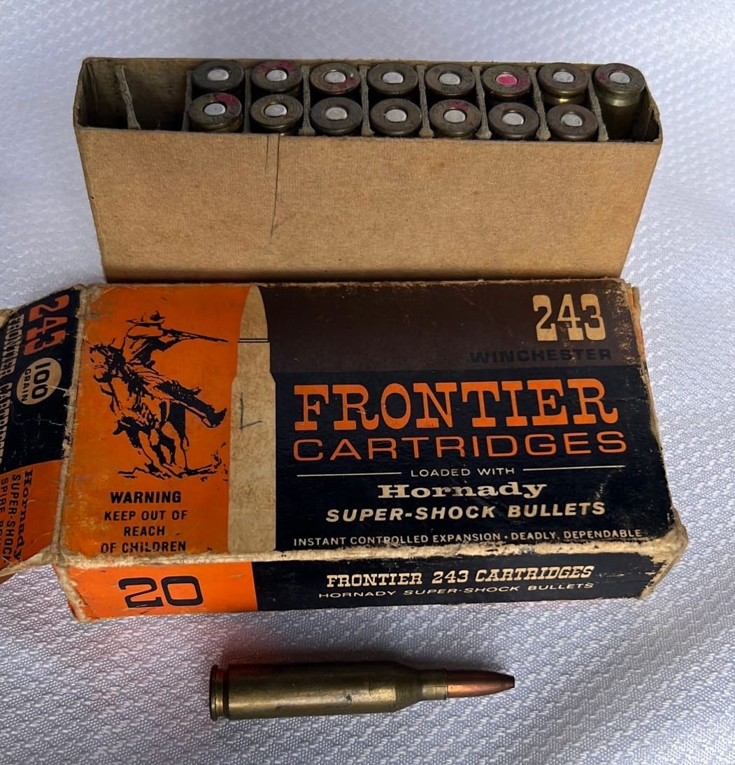 19 Winchester .243 Frontier Cartridges Loaded with Hornady Super-Shock Bullets • 100 grain • 16 Cartridges