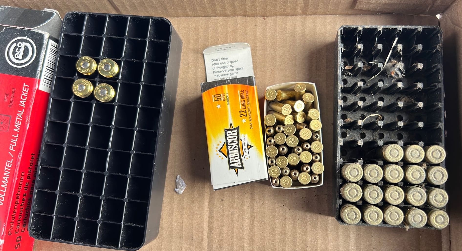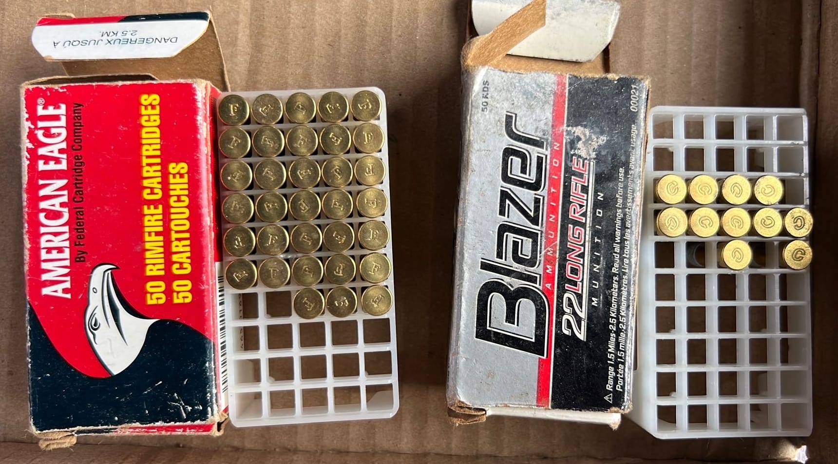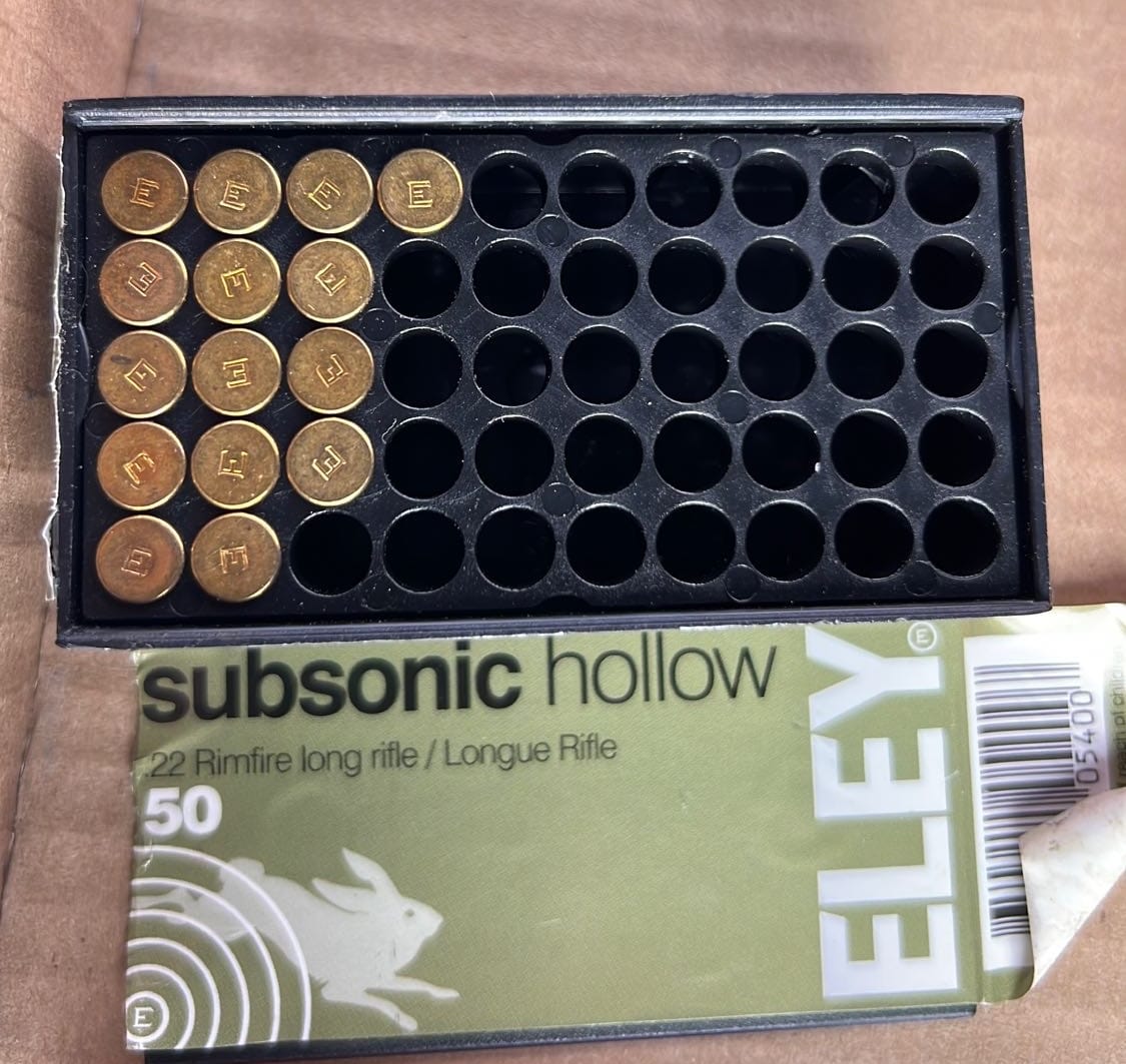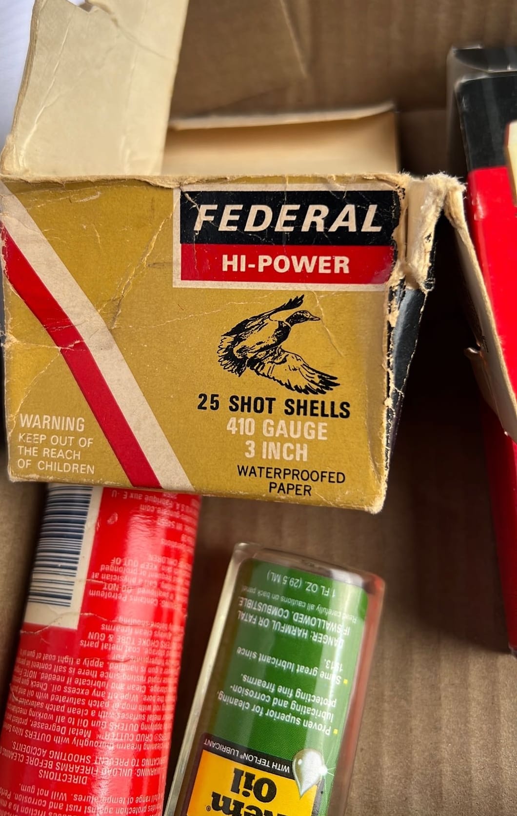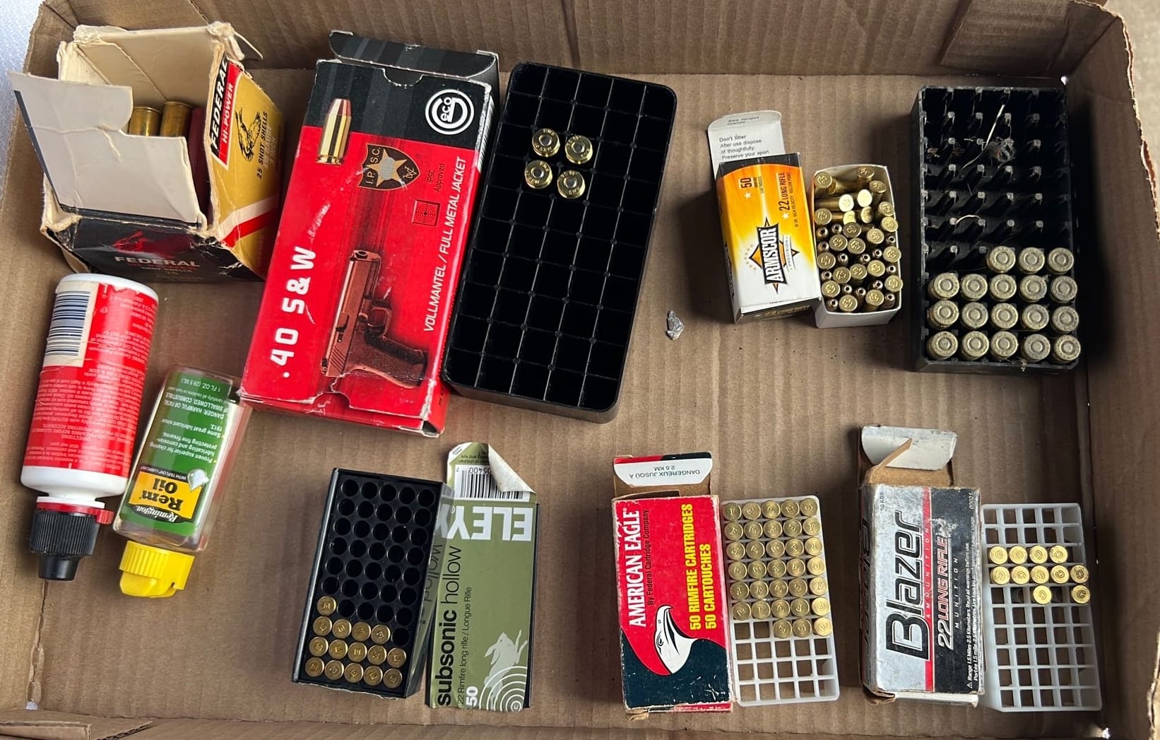 24 Ammo Asst. Partial Boxes - Subsonic Hollow .22 Rimfire long Rifle • American Eagle .22 long rifle Cartridges • Blazer .22 Long Rifle Cartridges • 9mm luger • Armscor .22 long rifle 36 Gr. Hollow Point • .40 S&W 180 gr Full Metal Jacket • Federal High Power Shot Shells .410 Gauge 3 inch & Remington Rim Oil & partial bottle Outers Gun Oil