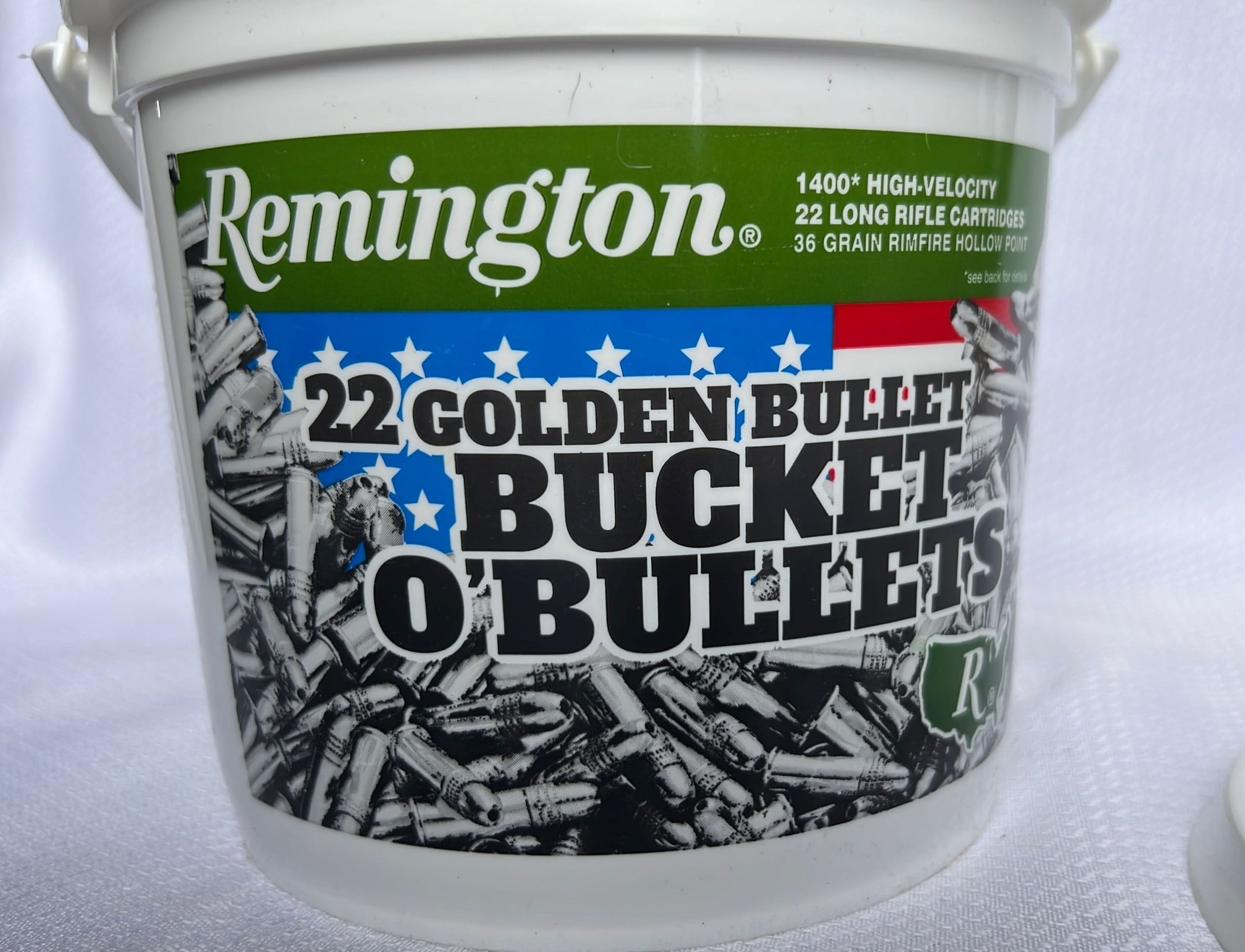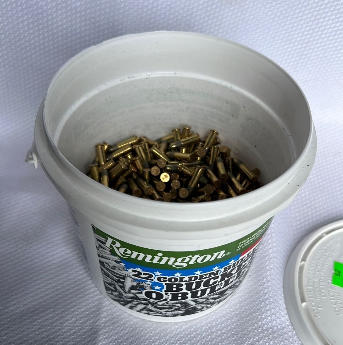 25 Partial Bucket of Remington .22 Long Rifle Golden Bullet Bucket
