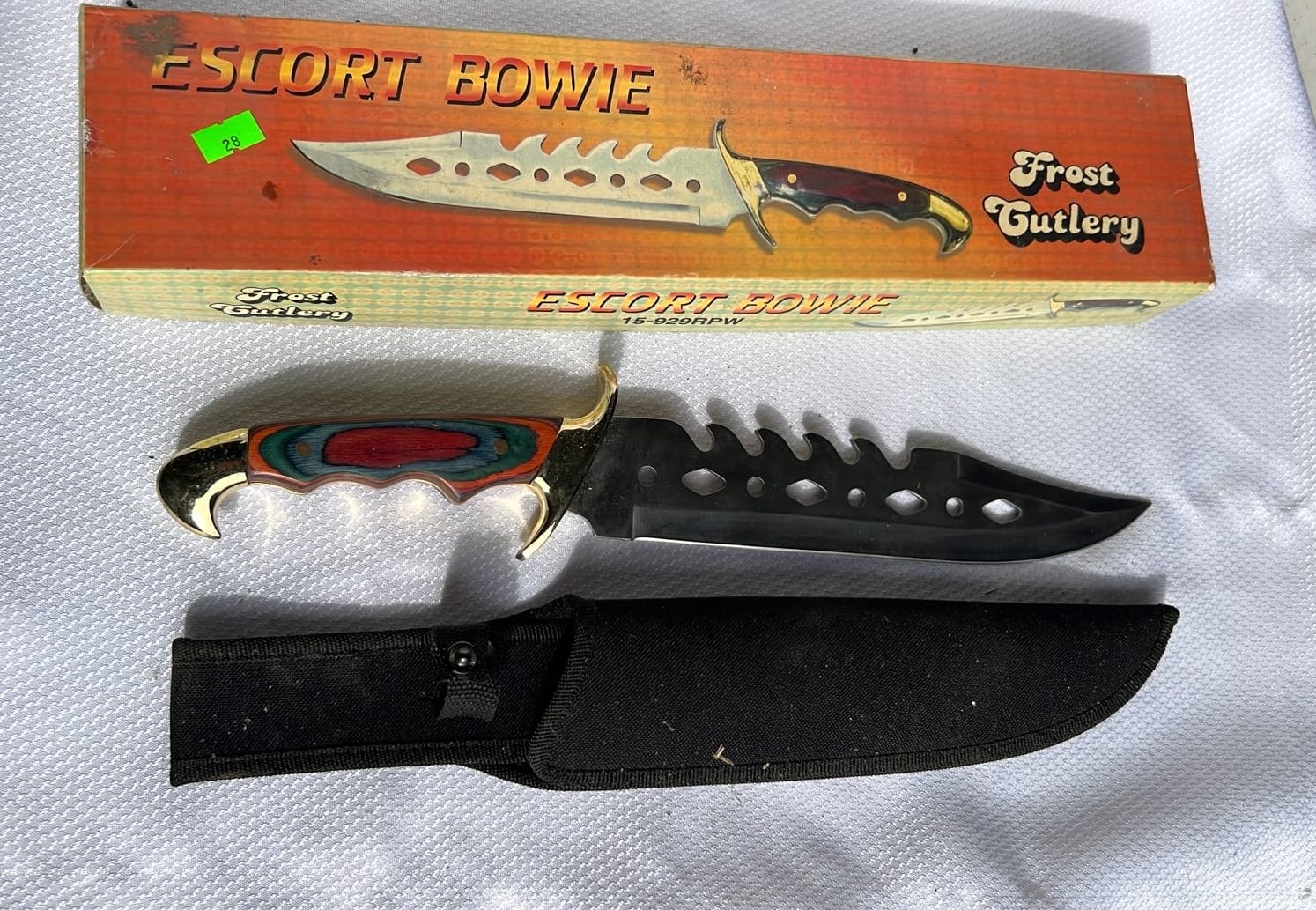 28 Escort Bowie Frost Cutlery with Sheath 17” in box