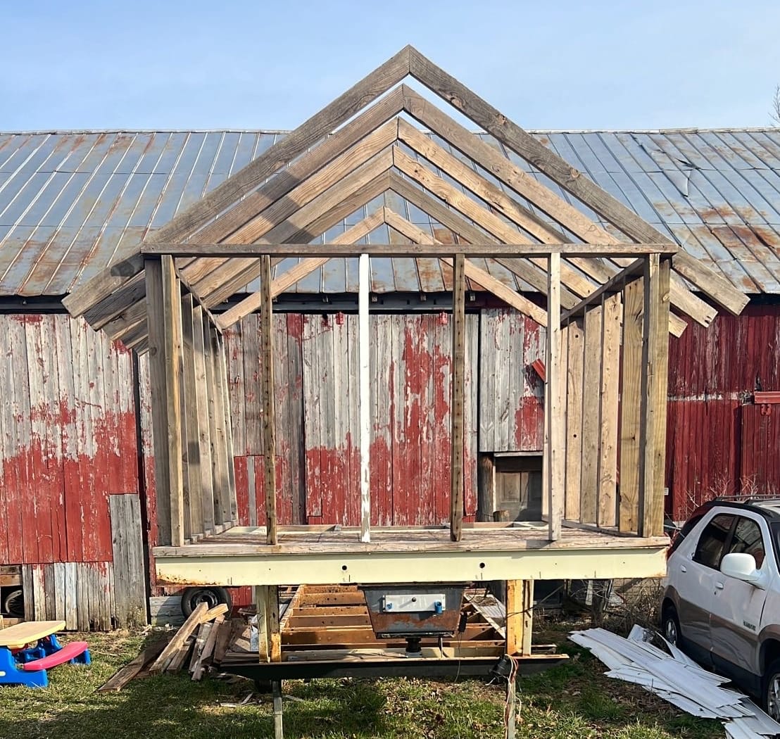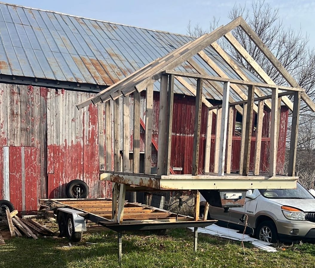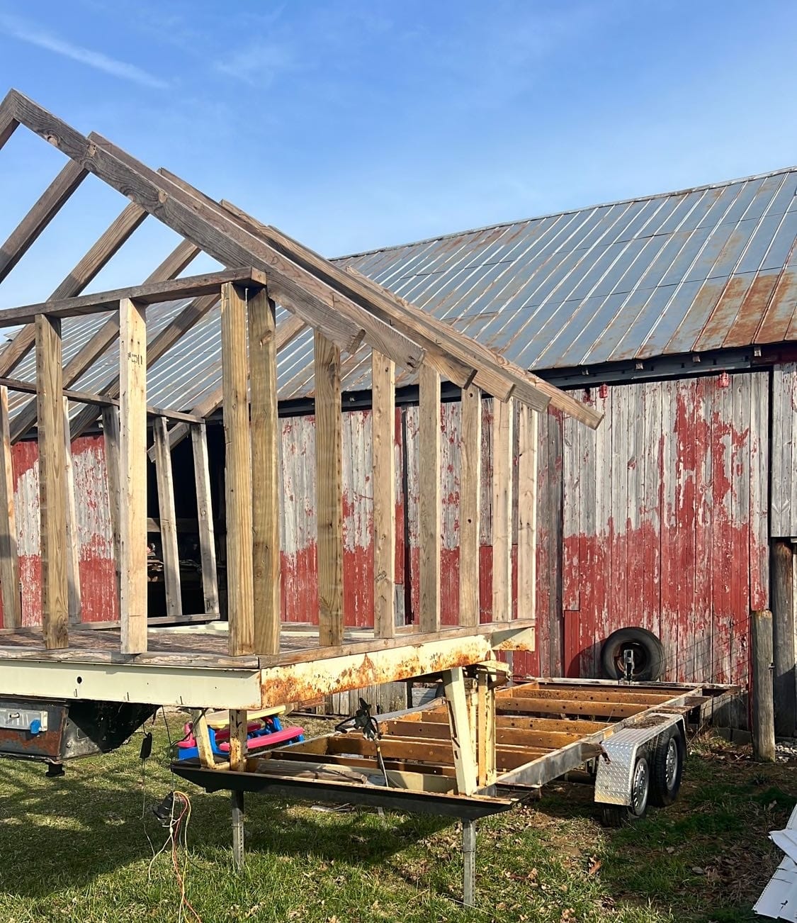 54 Tandem Axle 5th Wheel Trailer (NO TITLE) - One tire flat and a couple are soft, 26’x7’5”, the wooden frame is attached to the trailer