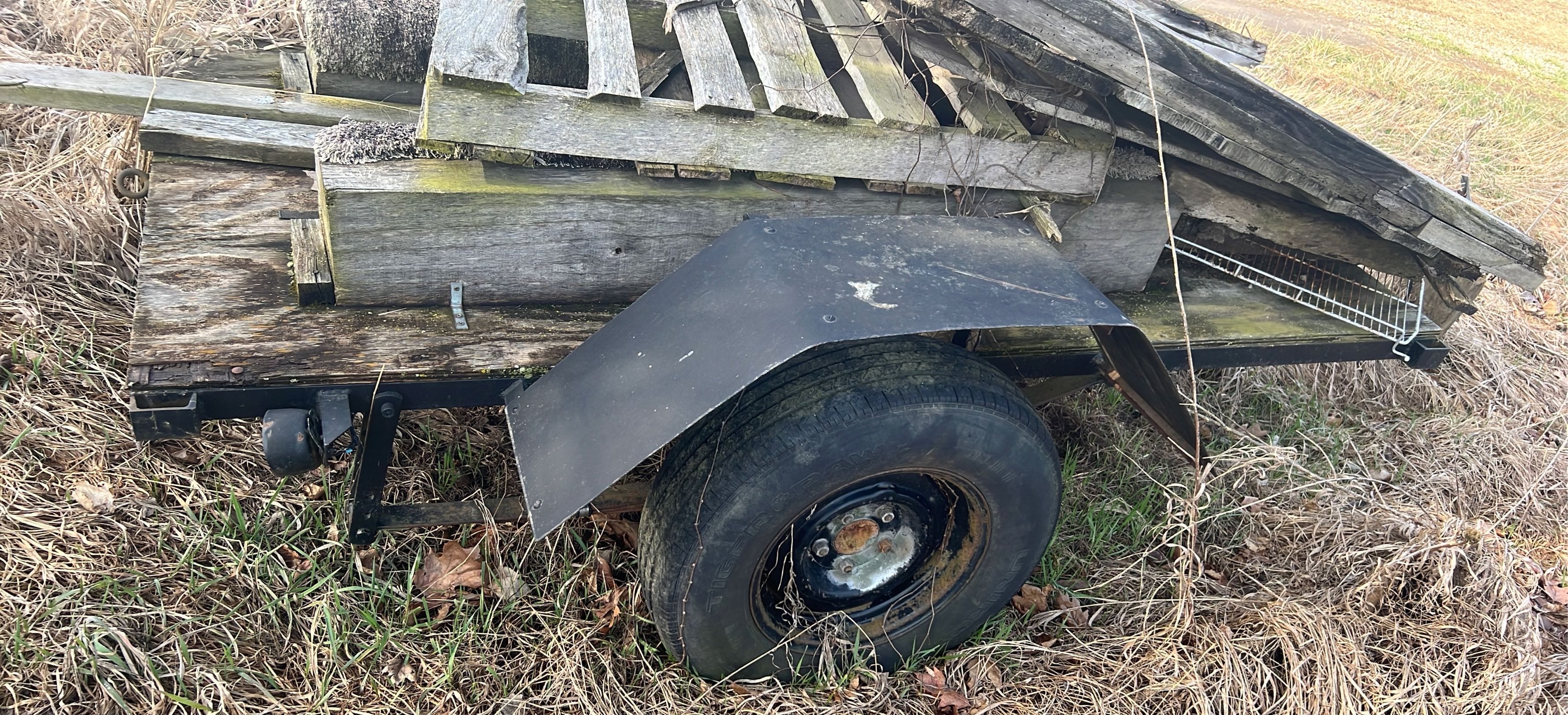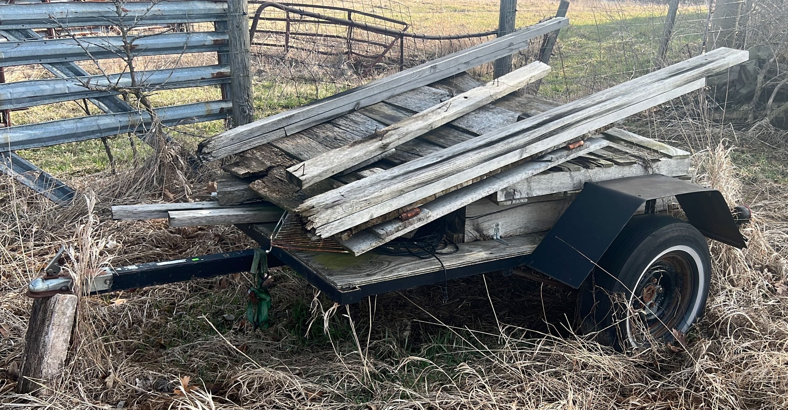 54a Single Axle Trailer with Plywood Floor and scrap wood, VIN # MVIN200543IND