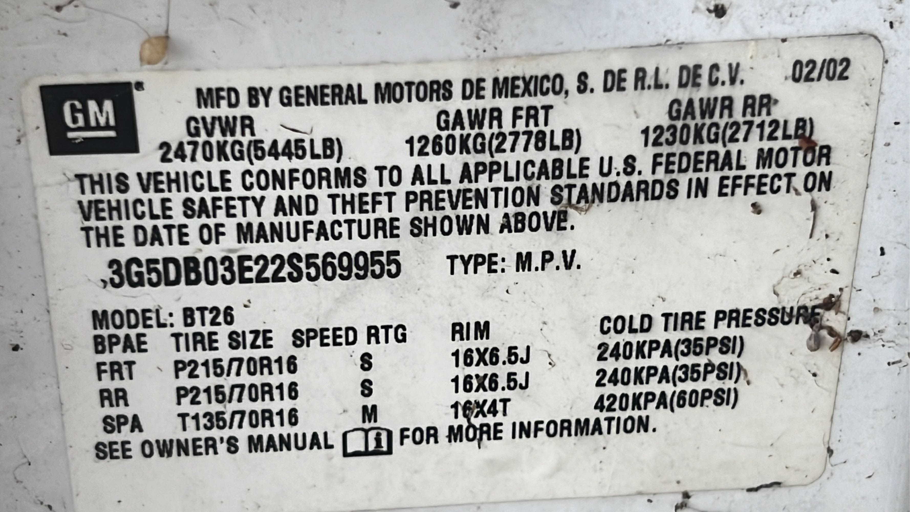 55 Buick Rendezvous 4-door Parts Car (has blown head gasket) VIN # 3G5DB03E22S569955 - $25.00 Title administration fee will be added to this lot