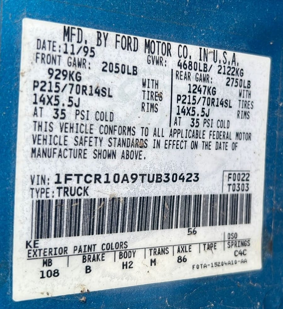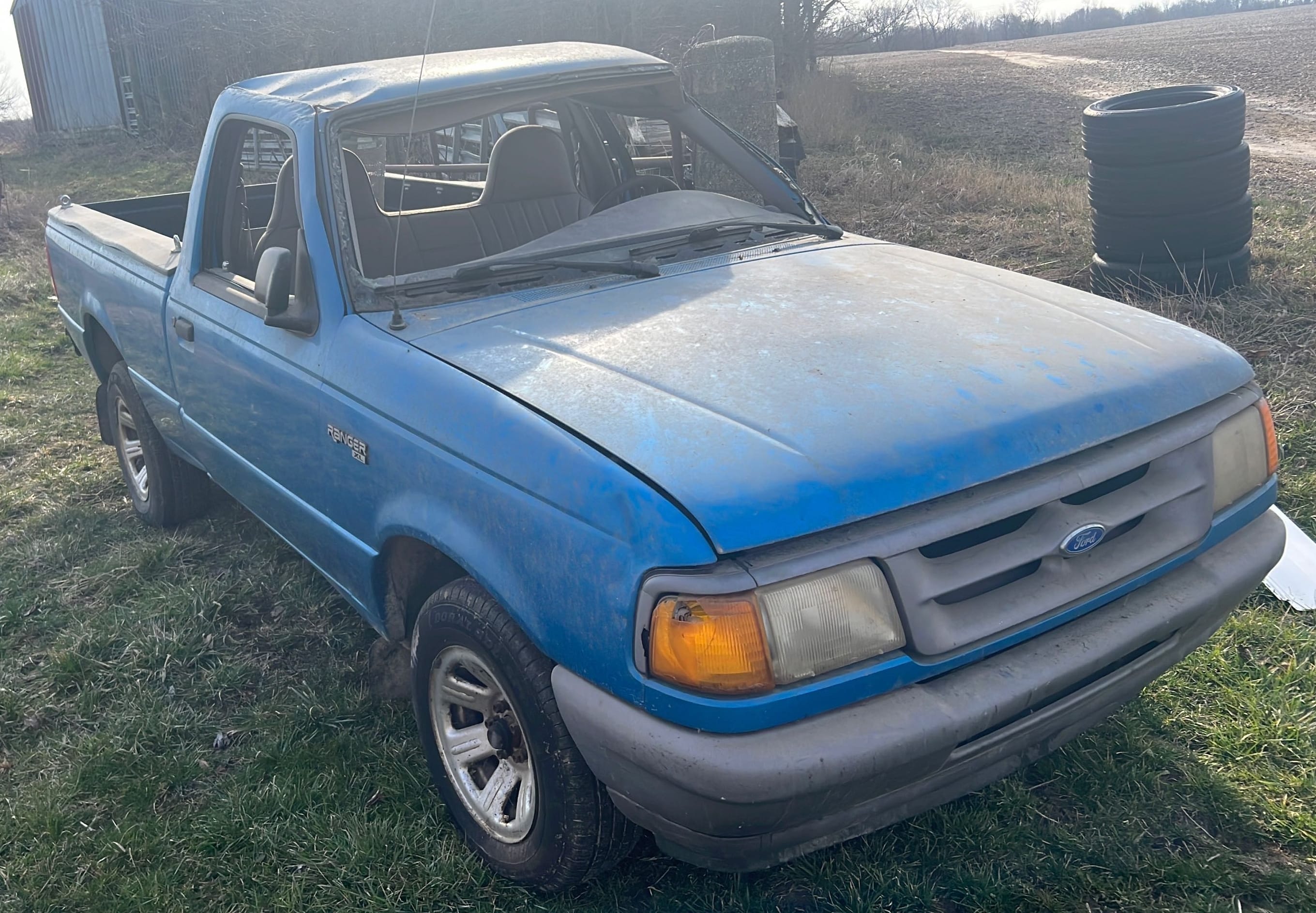 56 Ford Ranger XL parts vehicle (142,845 mileage) - runs & drives (has title & car's been rolled) - glass broken out - VIN #1FTCR10A9TUB30423 - $25.00 Title administration fee will be added to this lot