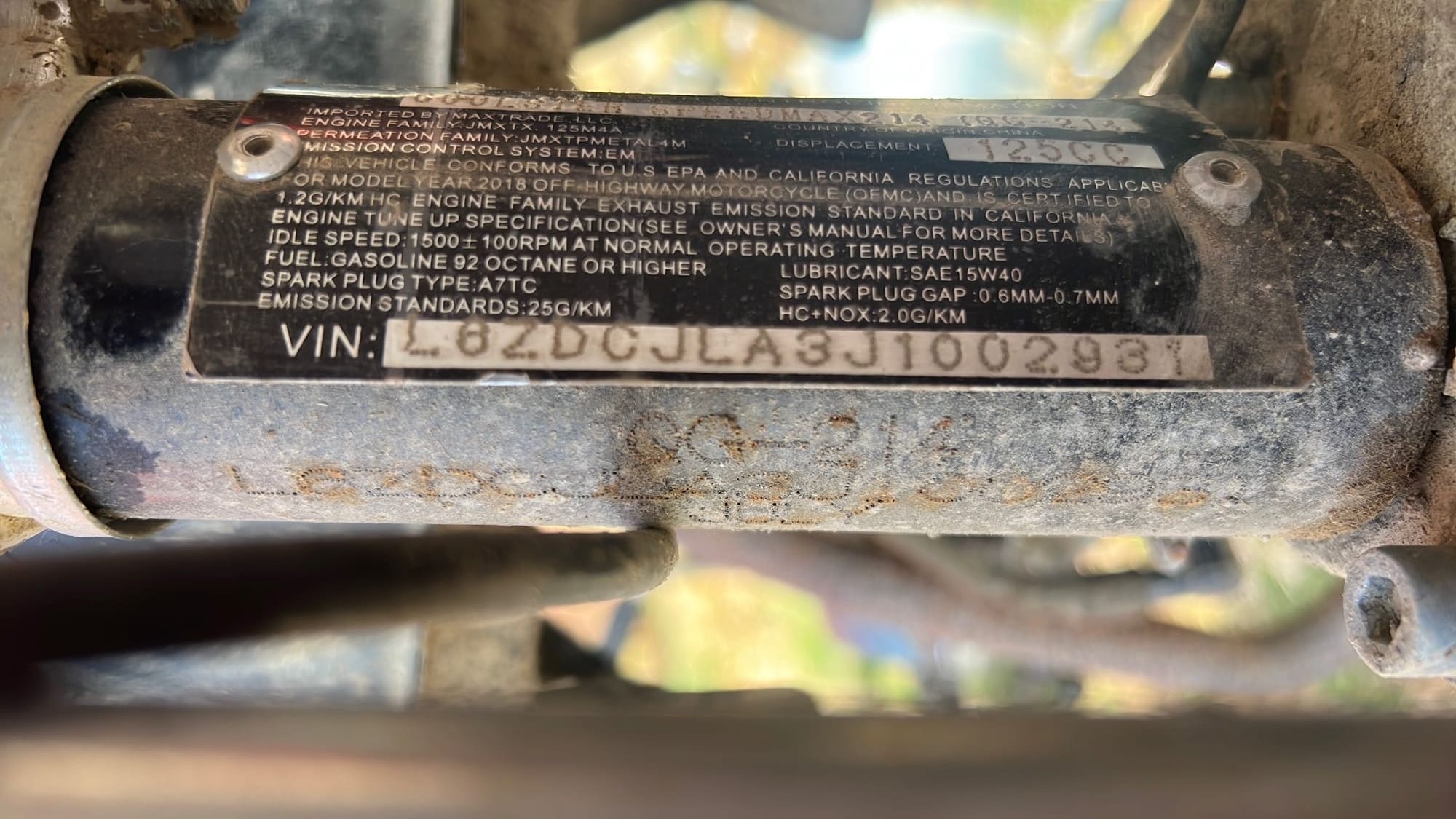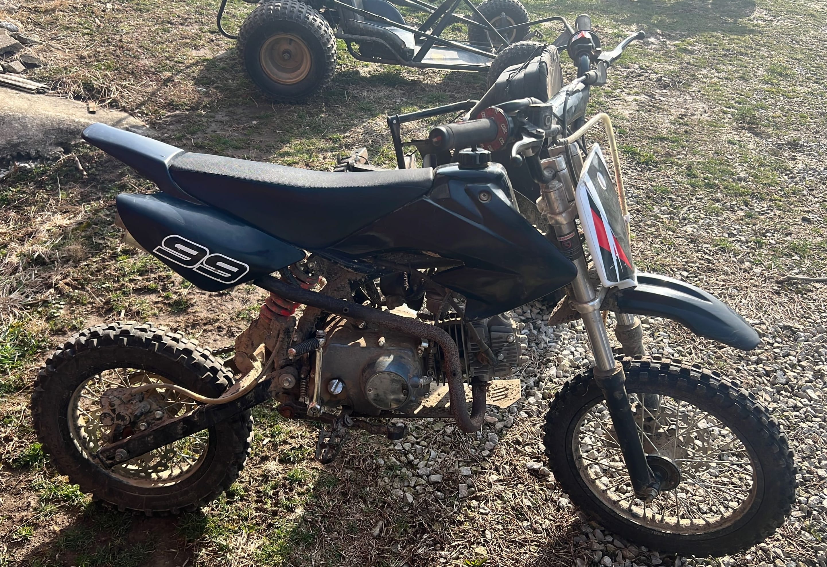 60 Qiye Dirt Bike (runs) Model #Coolster SpeedMax 214 QG–214 VIN l6zdcjla3j1002931 • Comes with extra plastic shields -$25.00 Title administration fee will be added to this lot