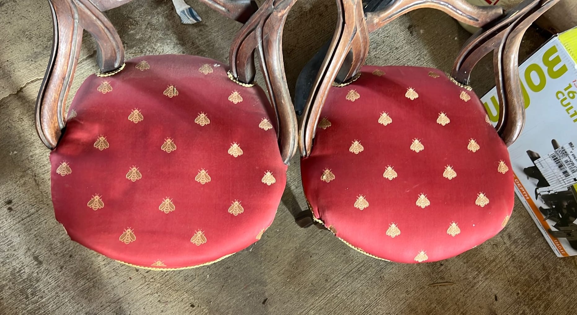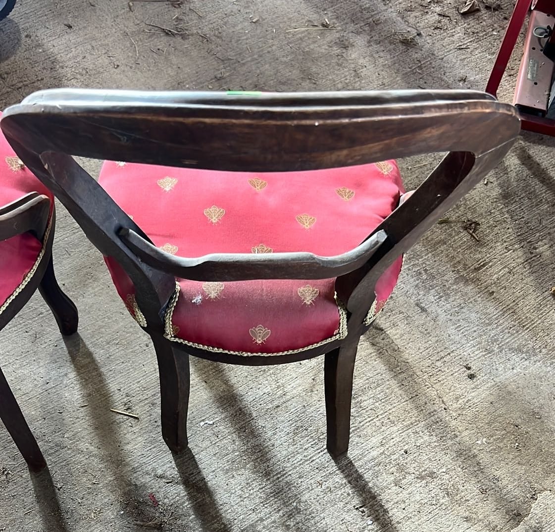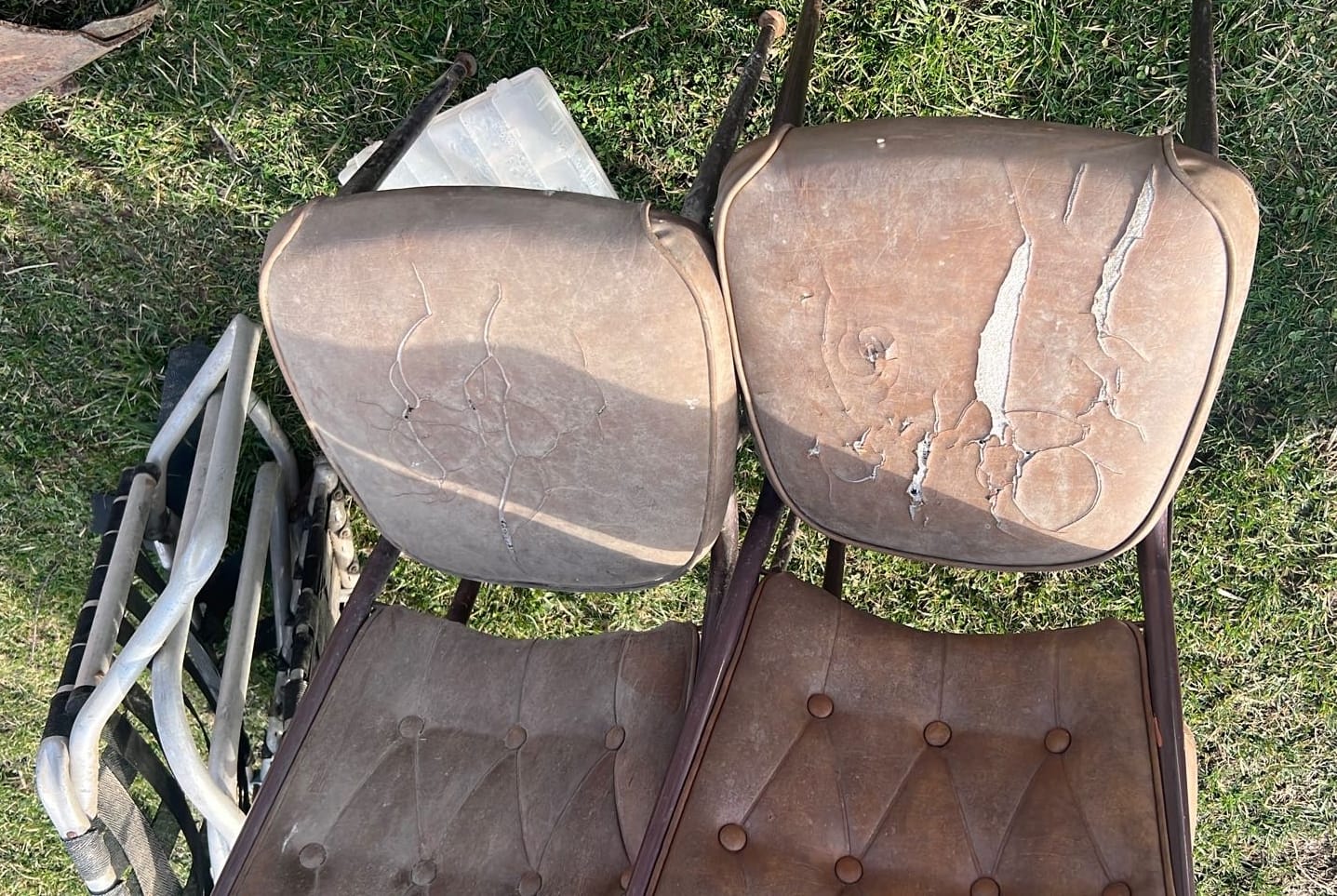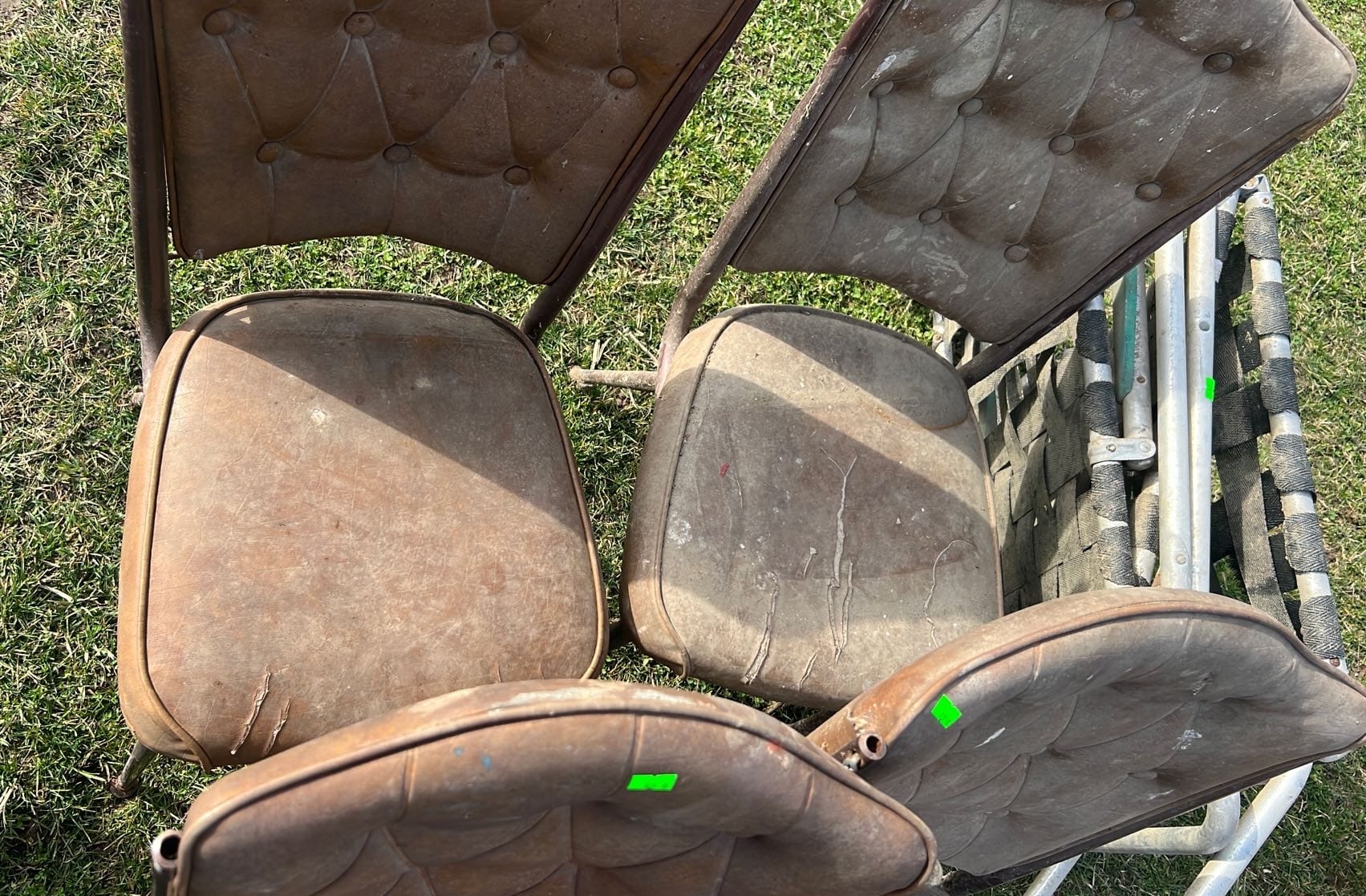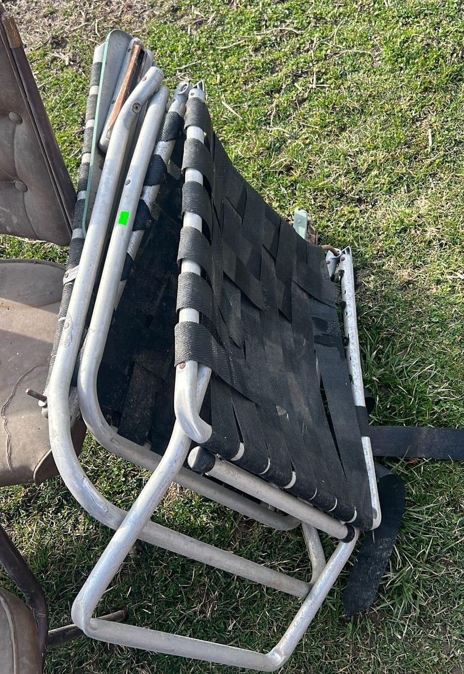 69 (4) Metal Frame Dining Chairs (rough condition), (2) Metal Lawn Chairs with webbing (needs work)