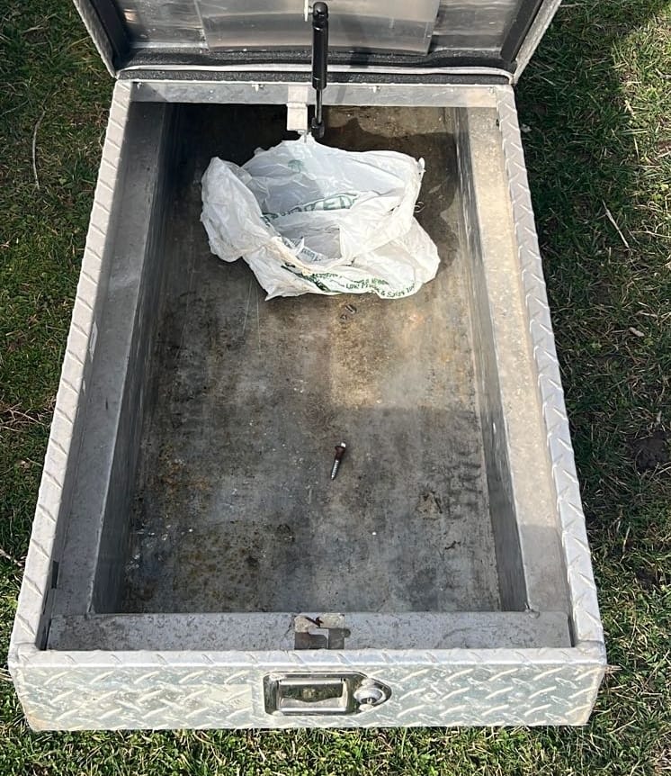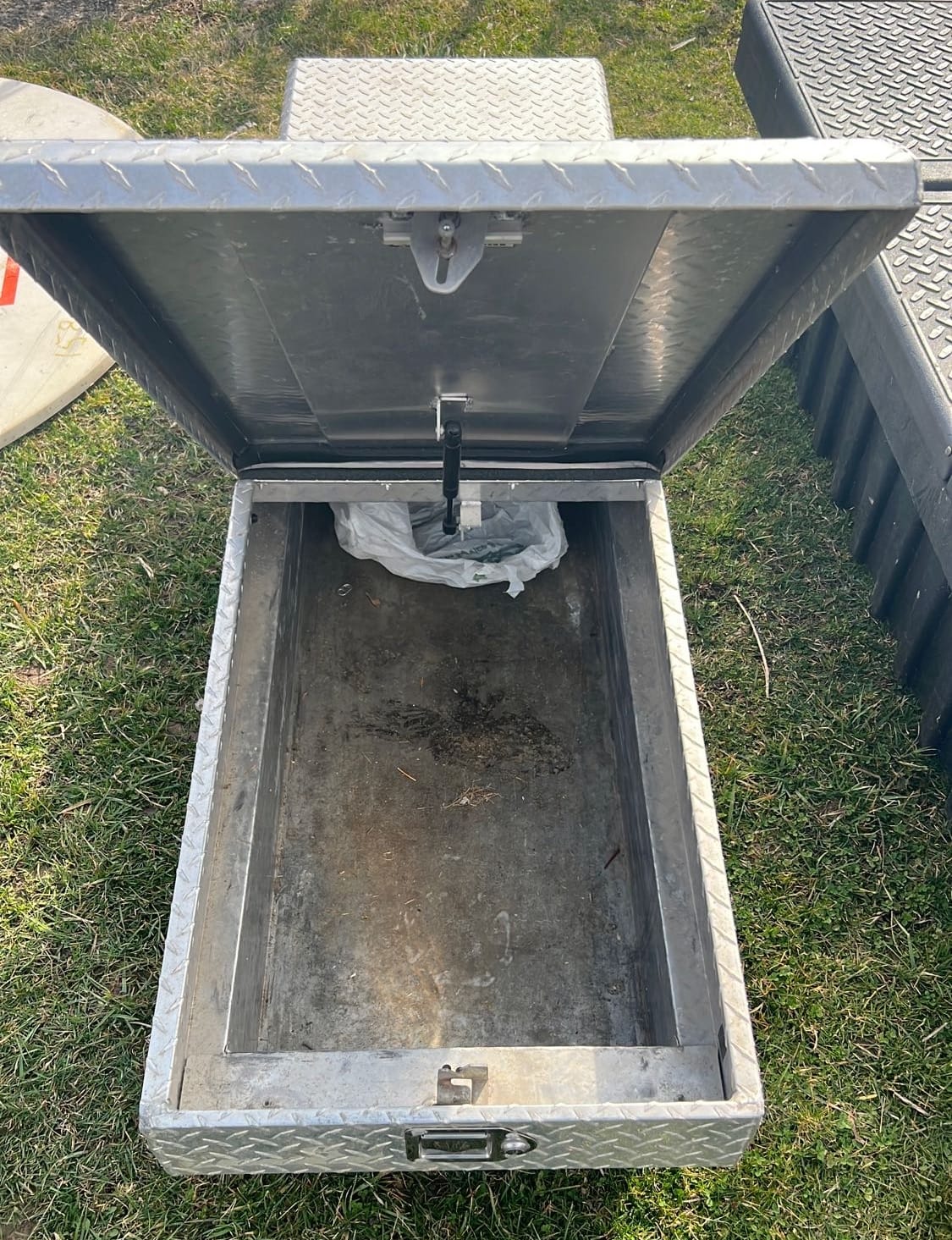 71 Plastic Truck Toolbox - latch is broke on one side, 70”x16.5”x21”