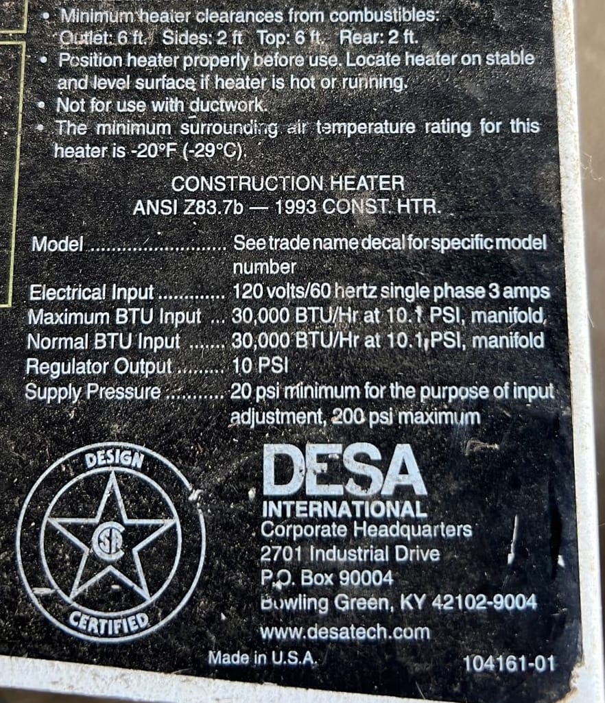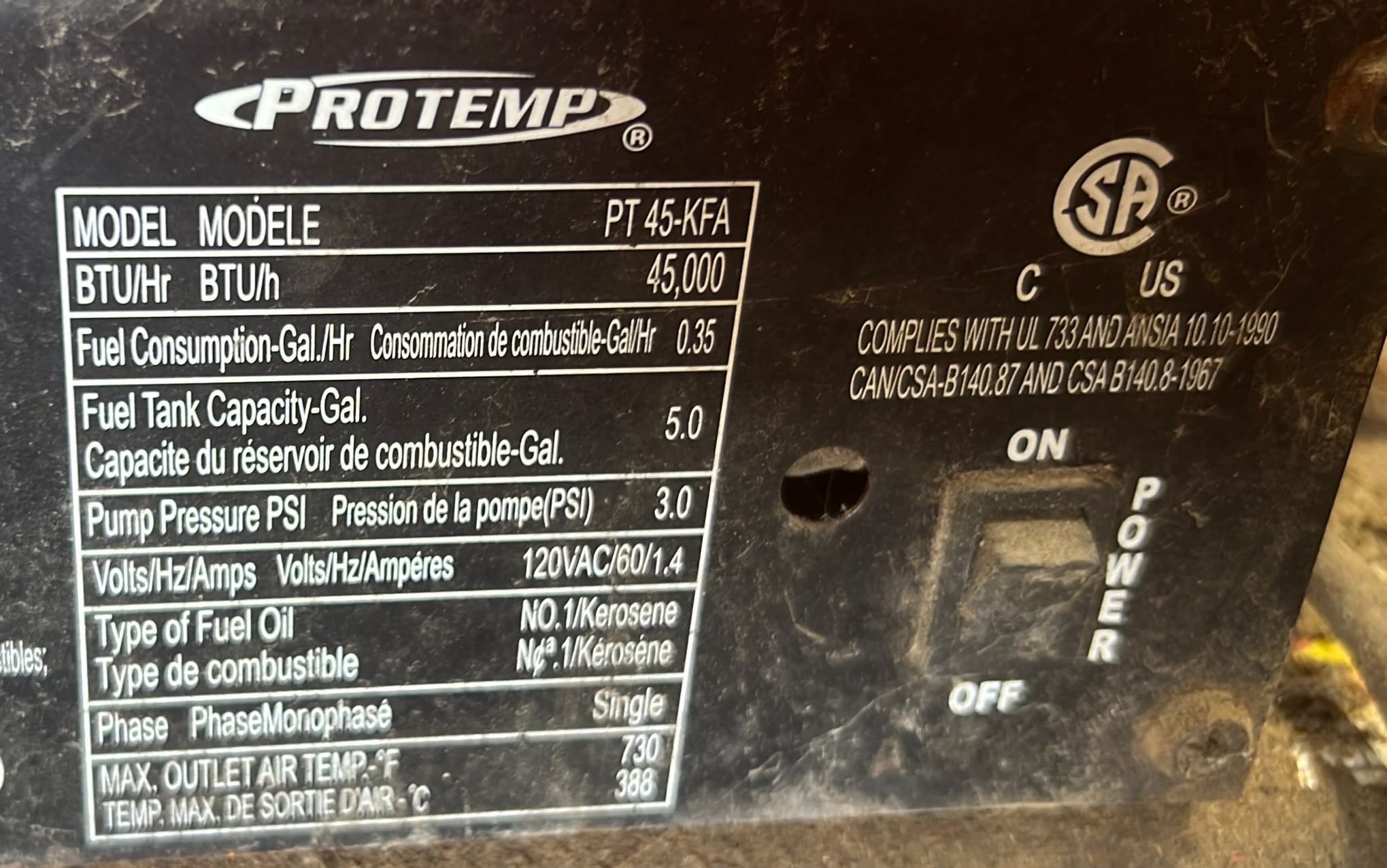 96 ProTemp PT-45-KFA 45000 BTU heater